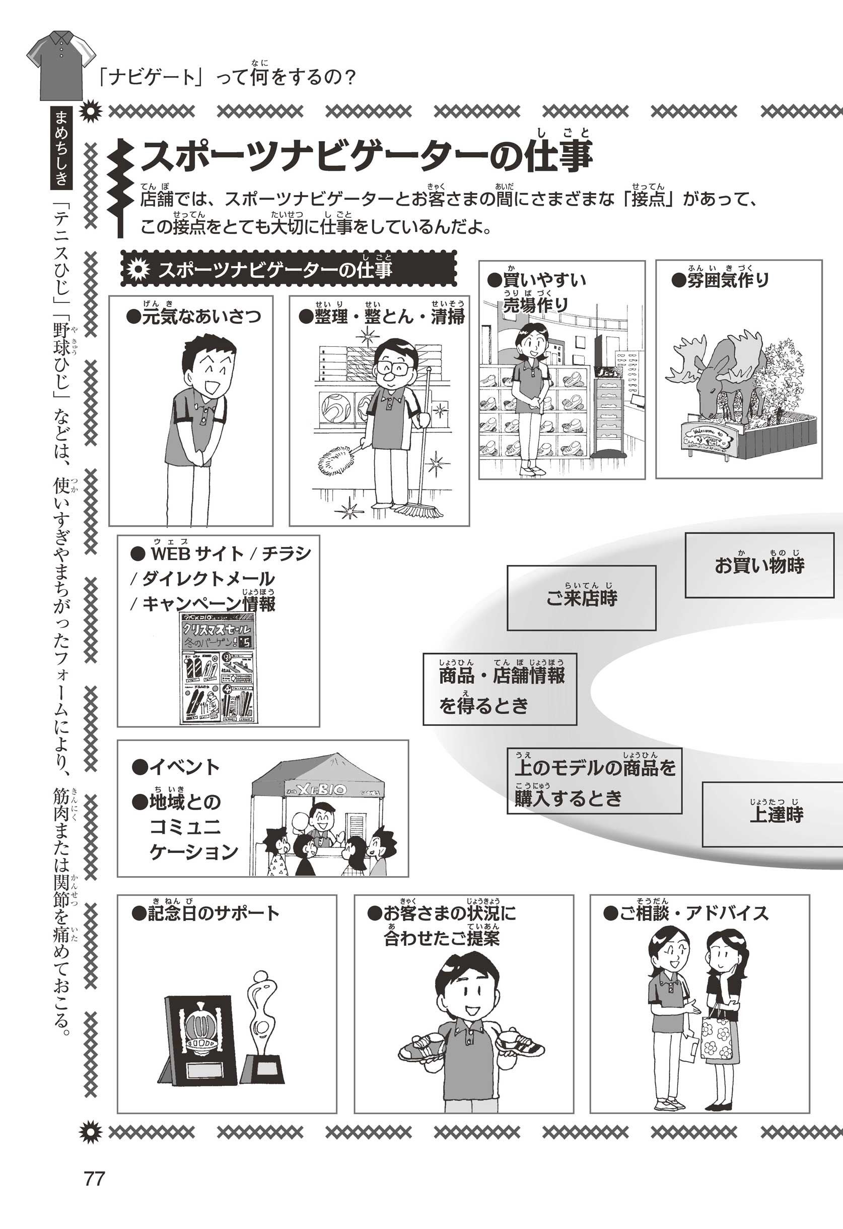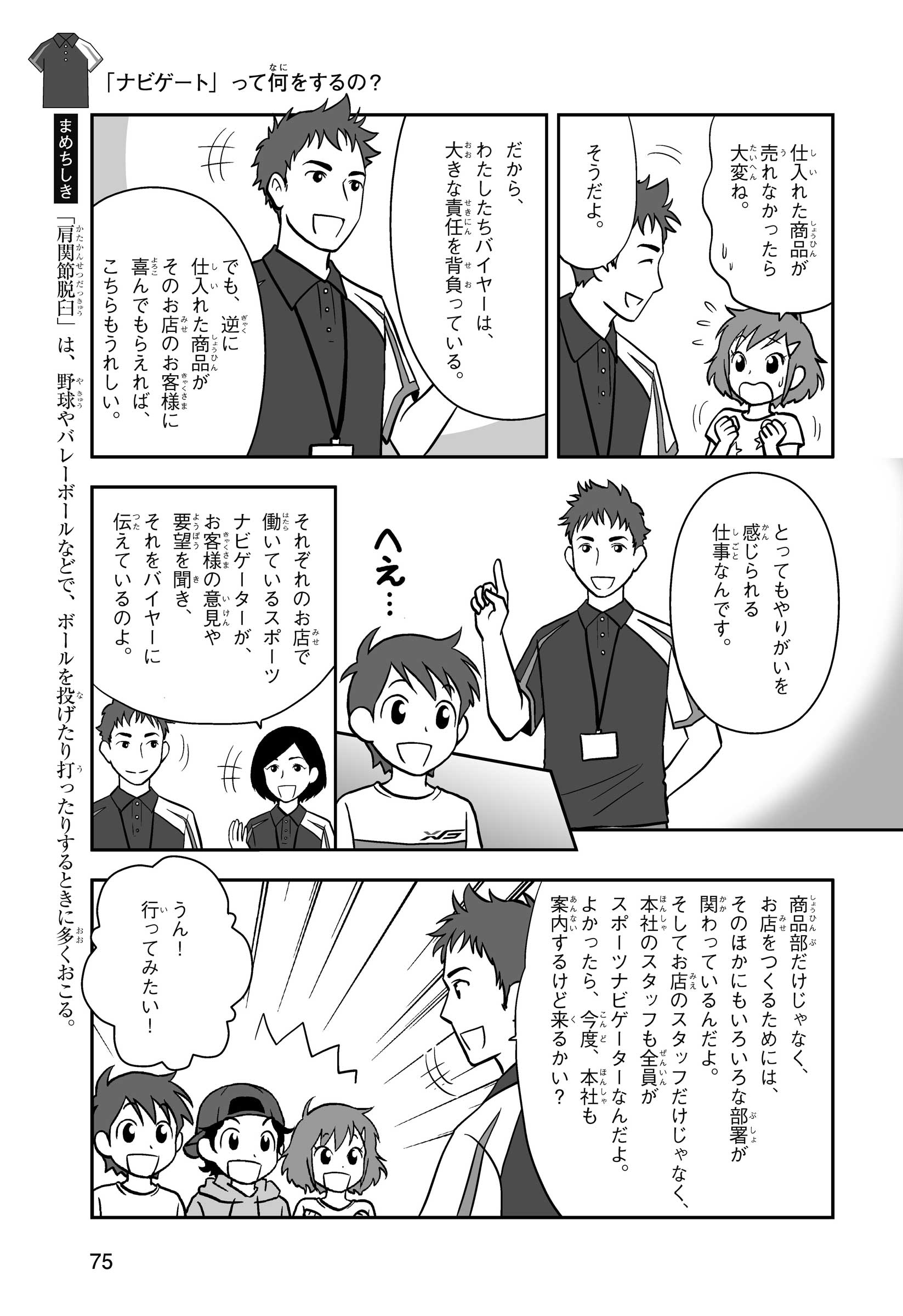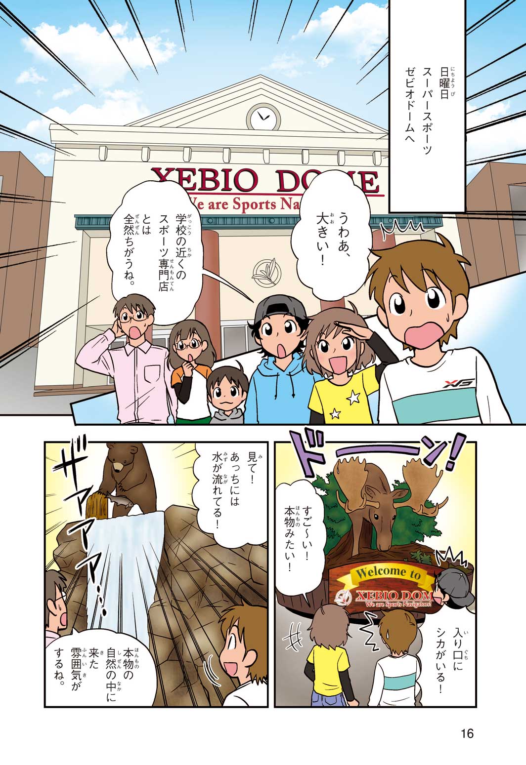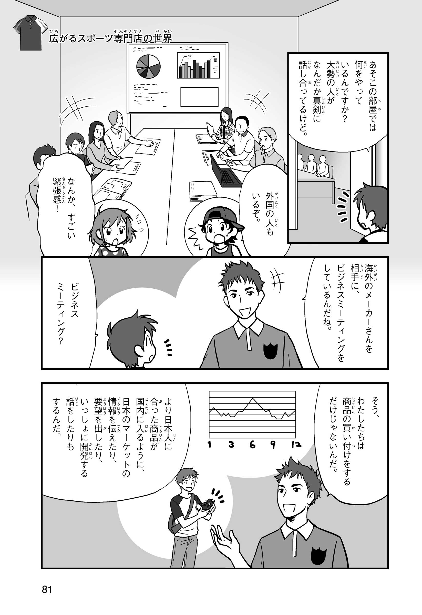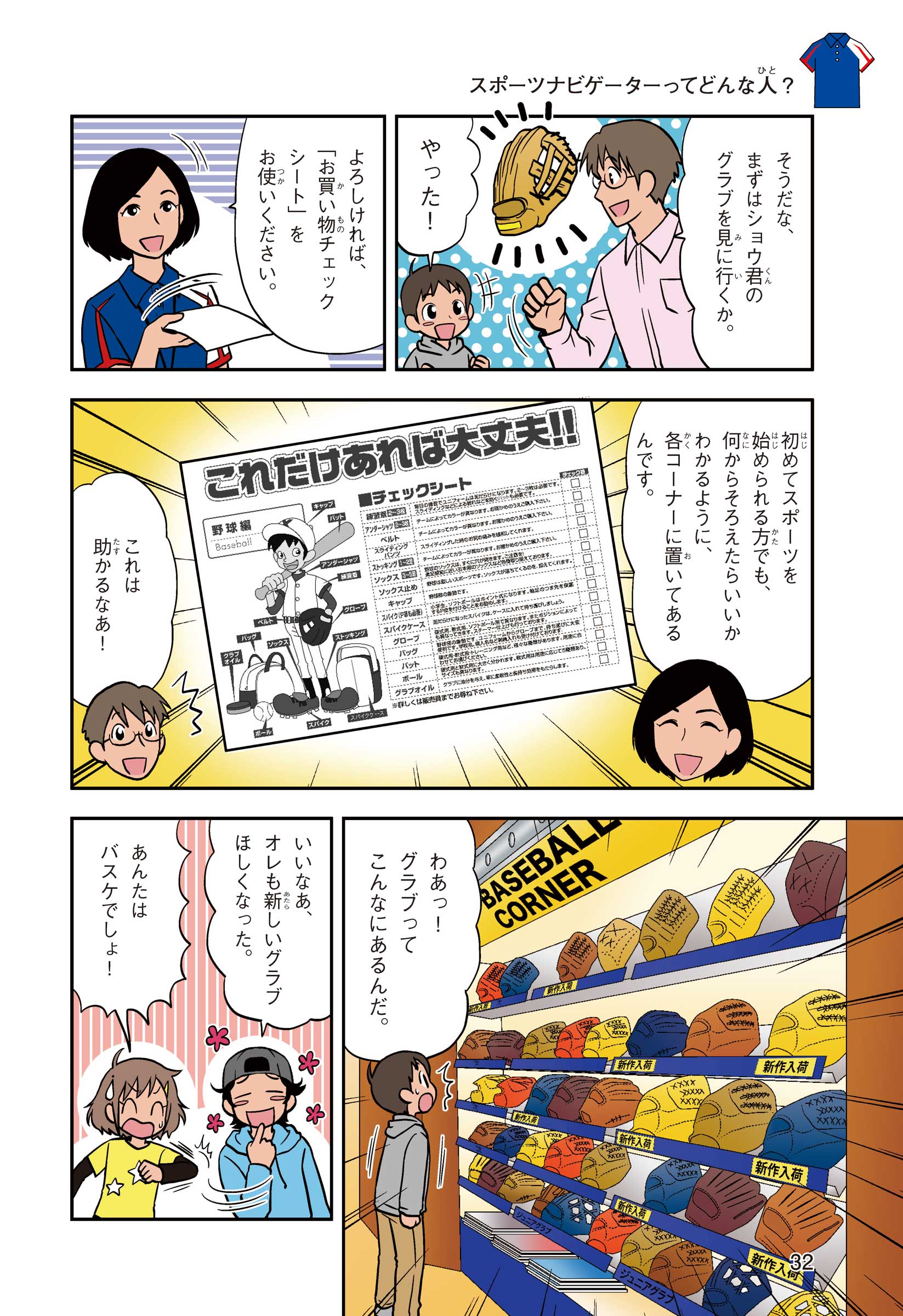 そこで、みんなでいっしょにスポーツ用品店に行ってみたんだ。お店で出むかえてくれたのは、スポーツのプロ“スポーツナビゲーター”の伊藤さんという人で…