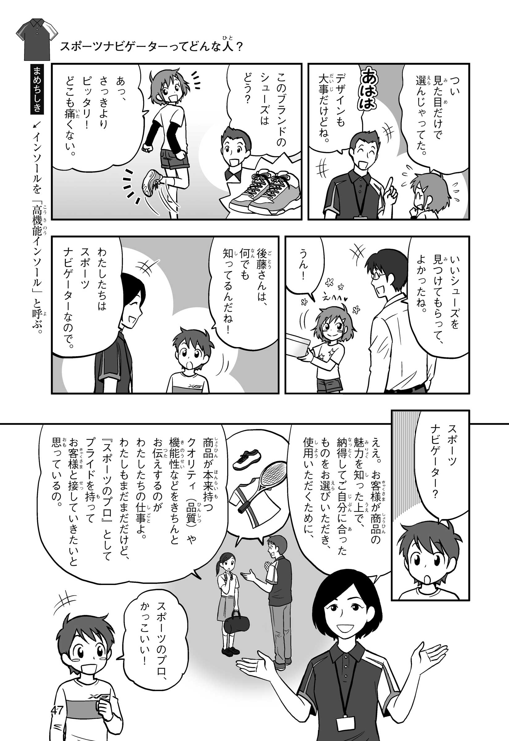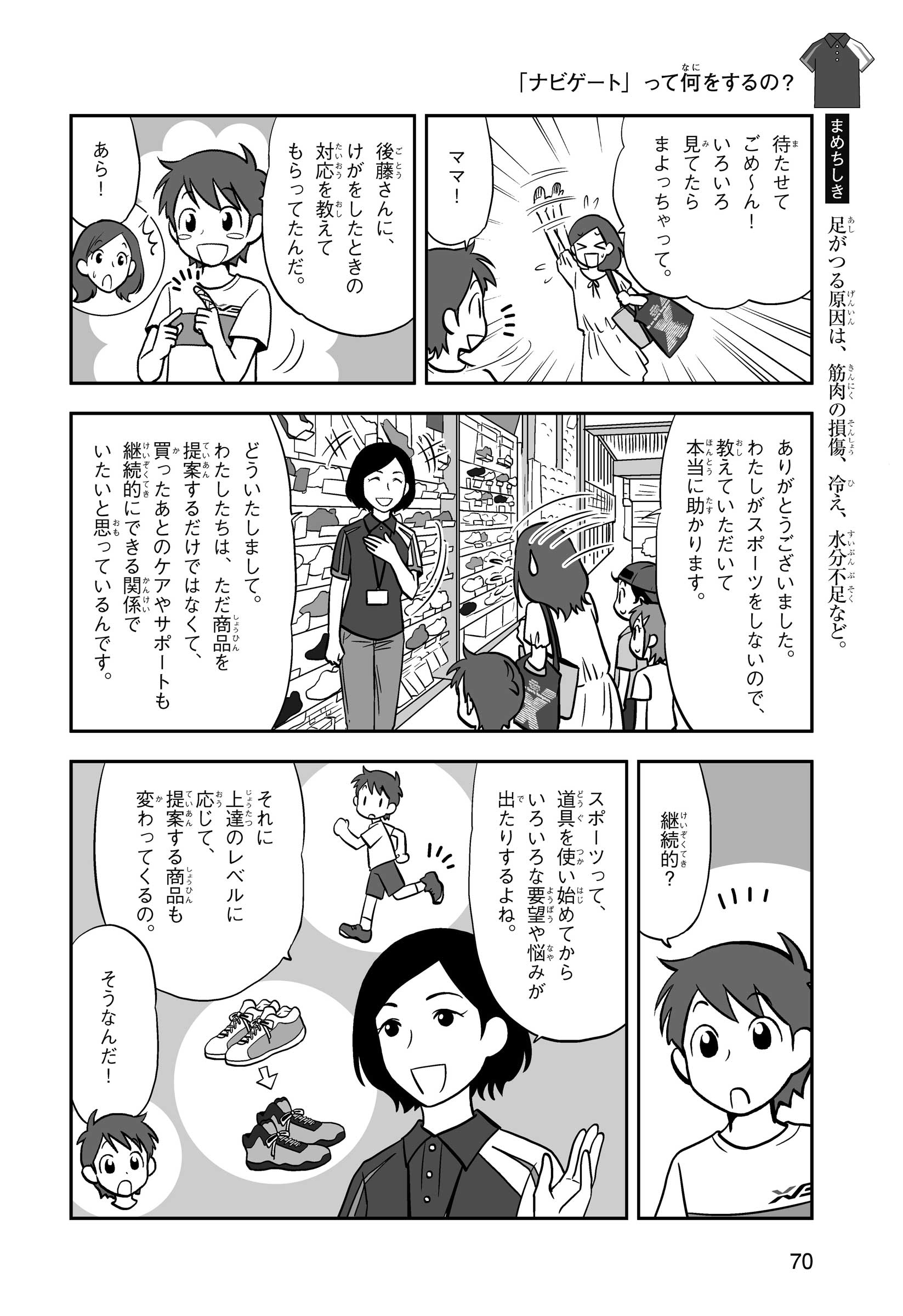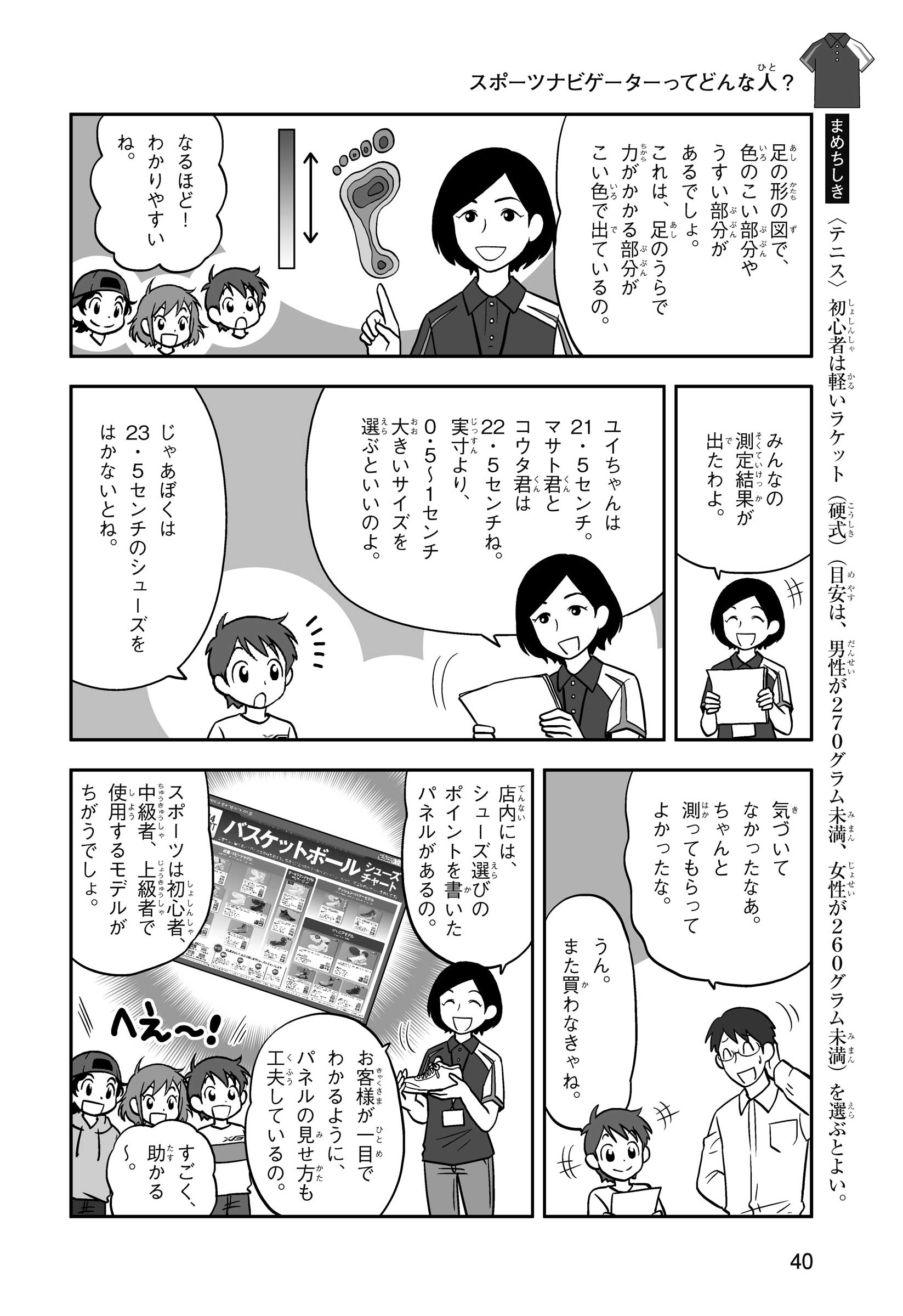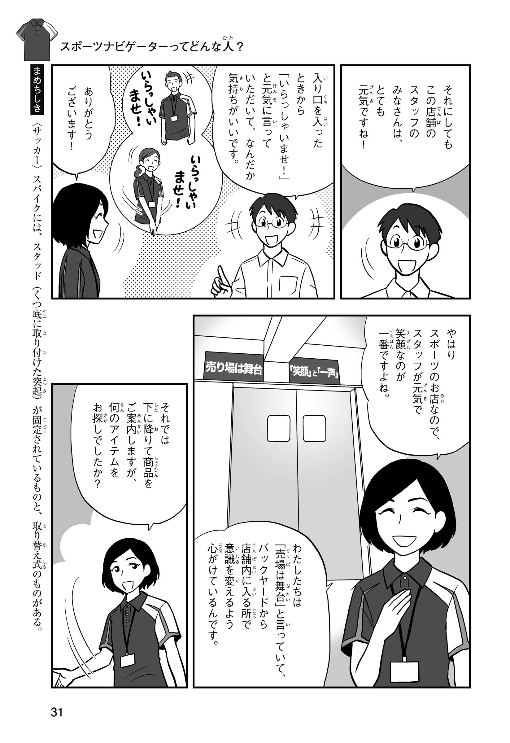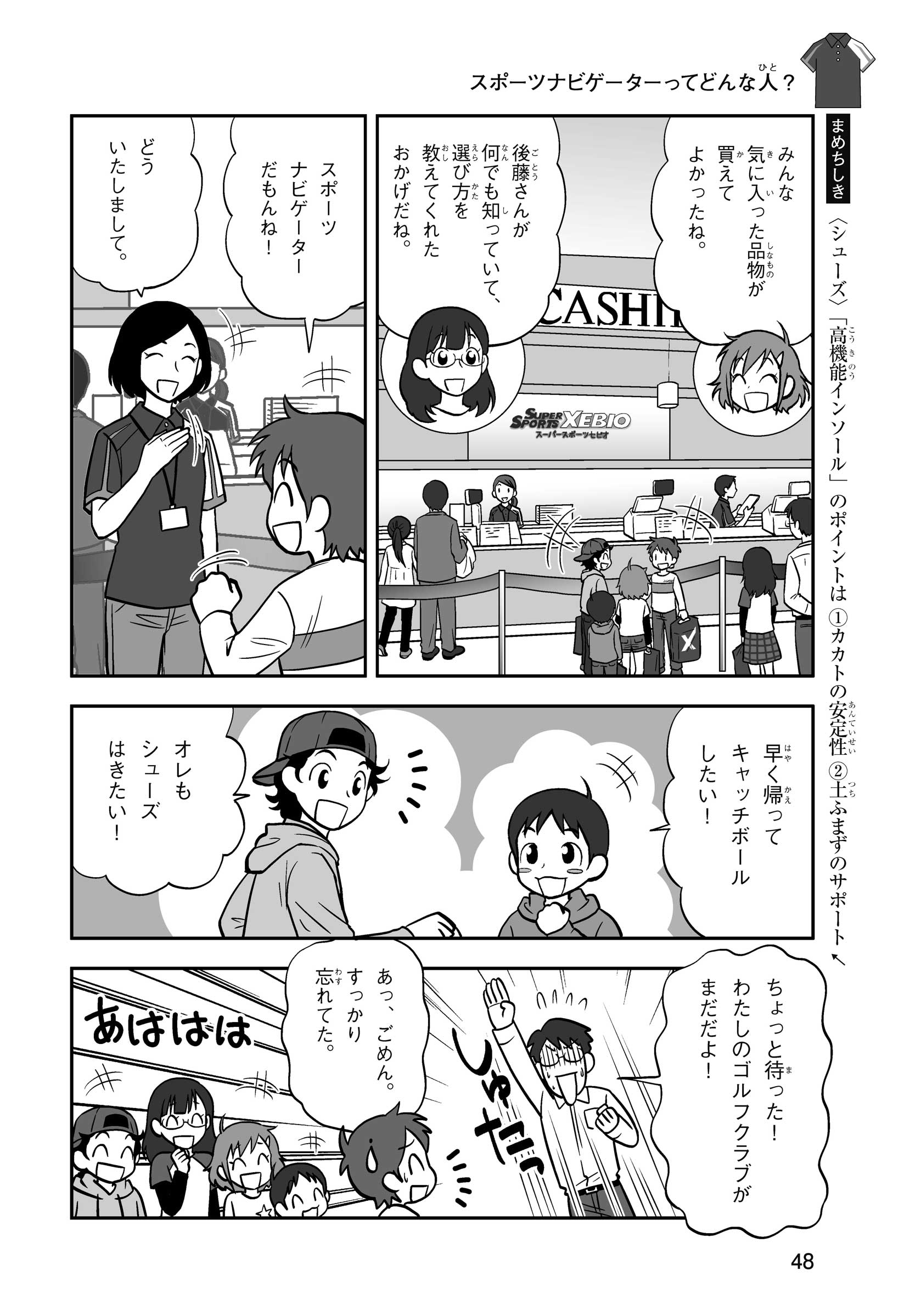 そこで、みんなでいっしょにスポーツ用品店に行ってみたんだ。お店で出むかえてくれたのは、スポーツのプロ“スポーツナビゲーター”の伊藤さんという人で…