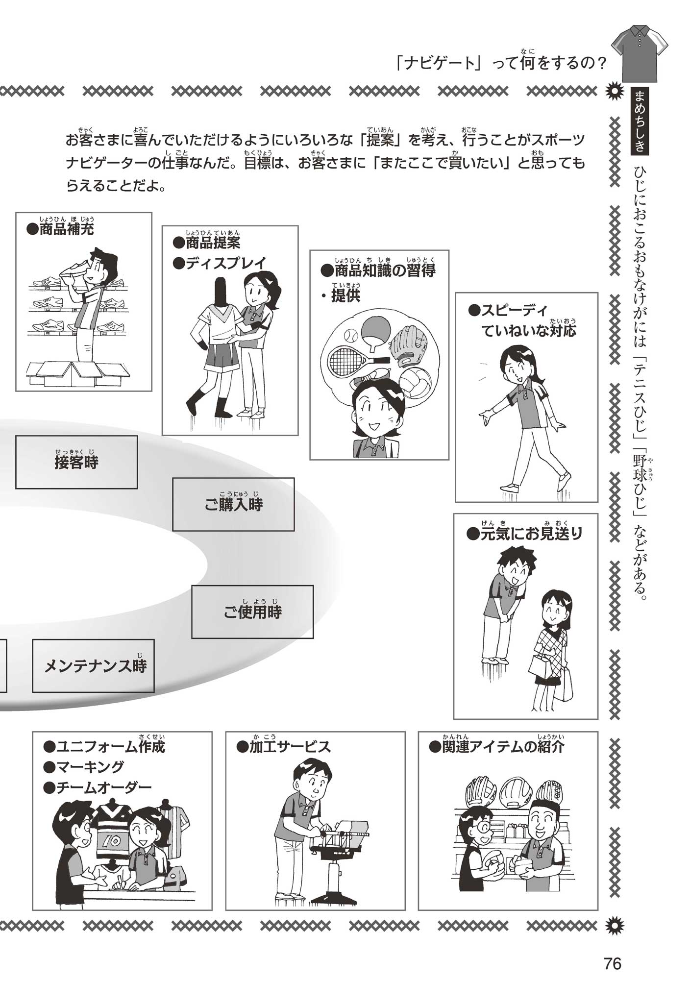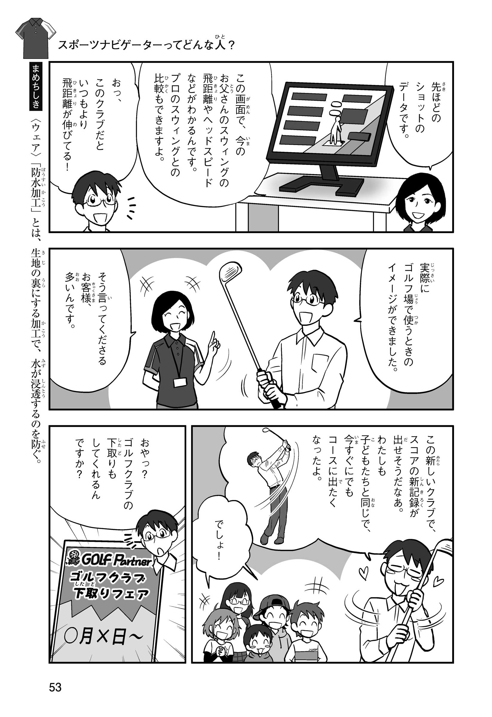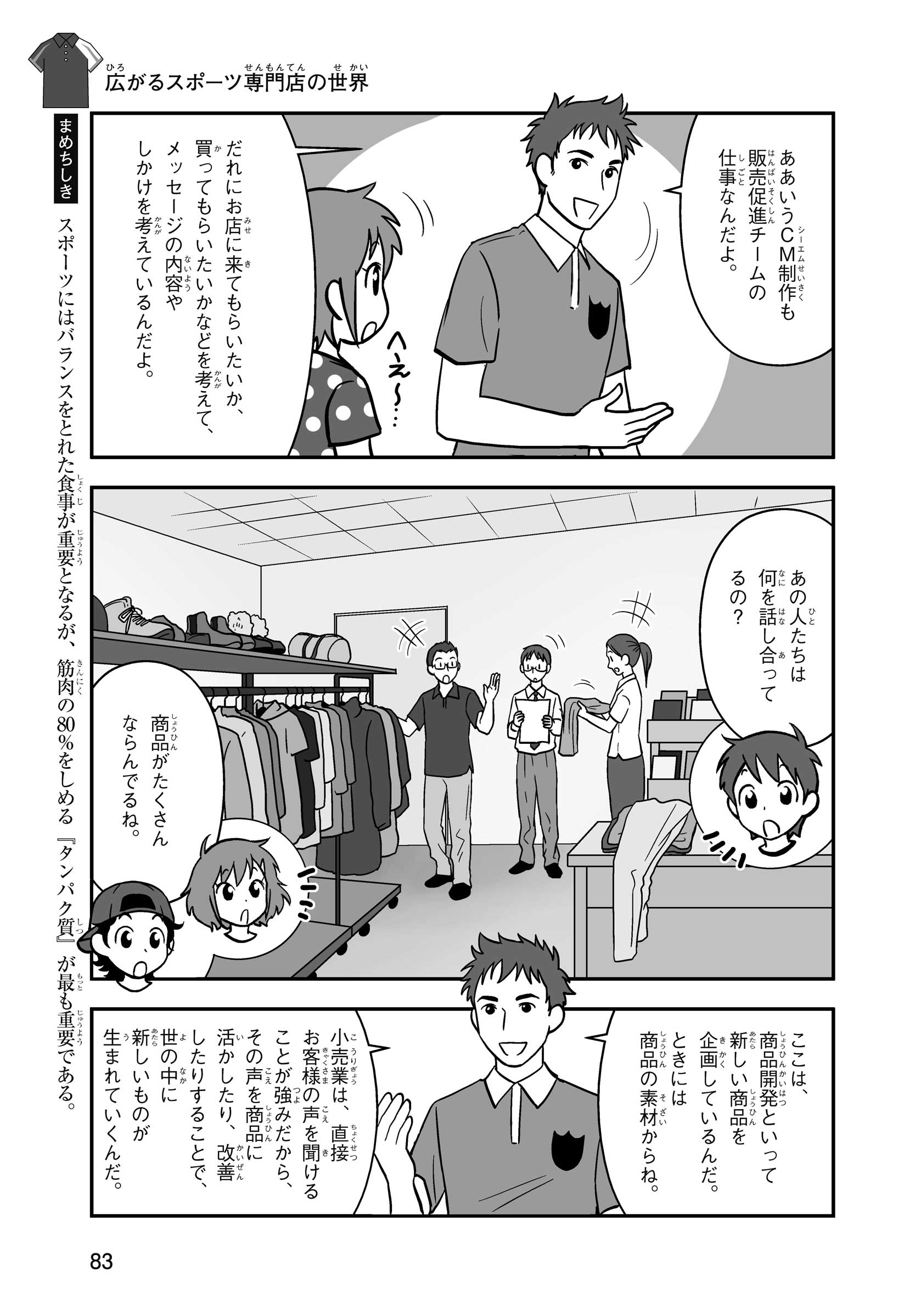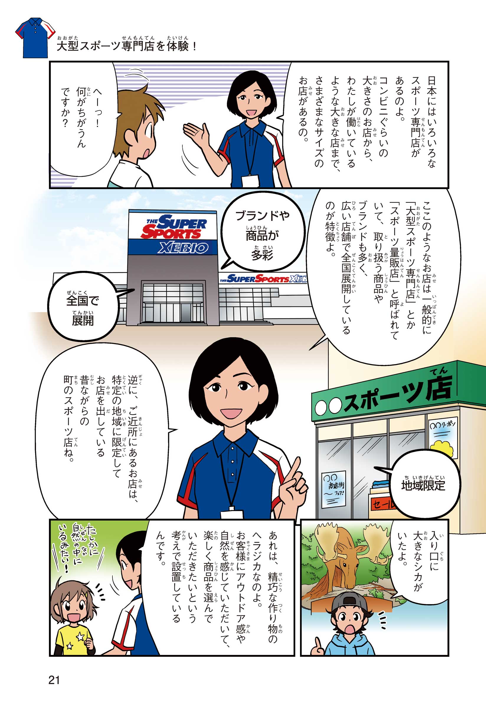 そこで、みんなでいっしょにスポーツ用品店に行ってみたんだ。お店で出むかえてくれたのは、スポーツのプロ“スポーツナビゲーター”の伊藤さんという人で…