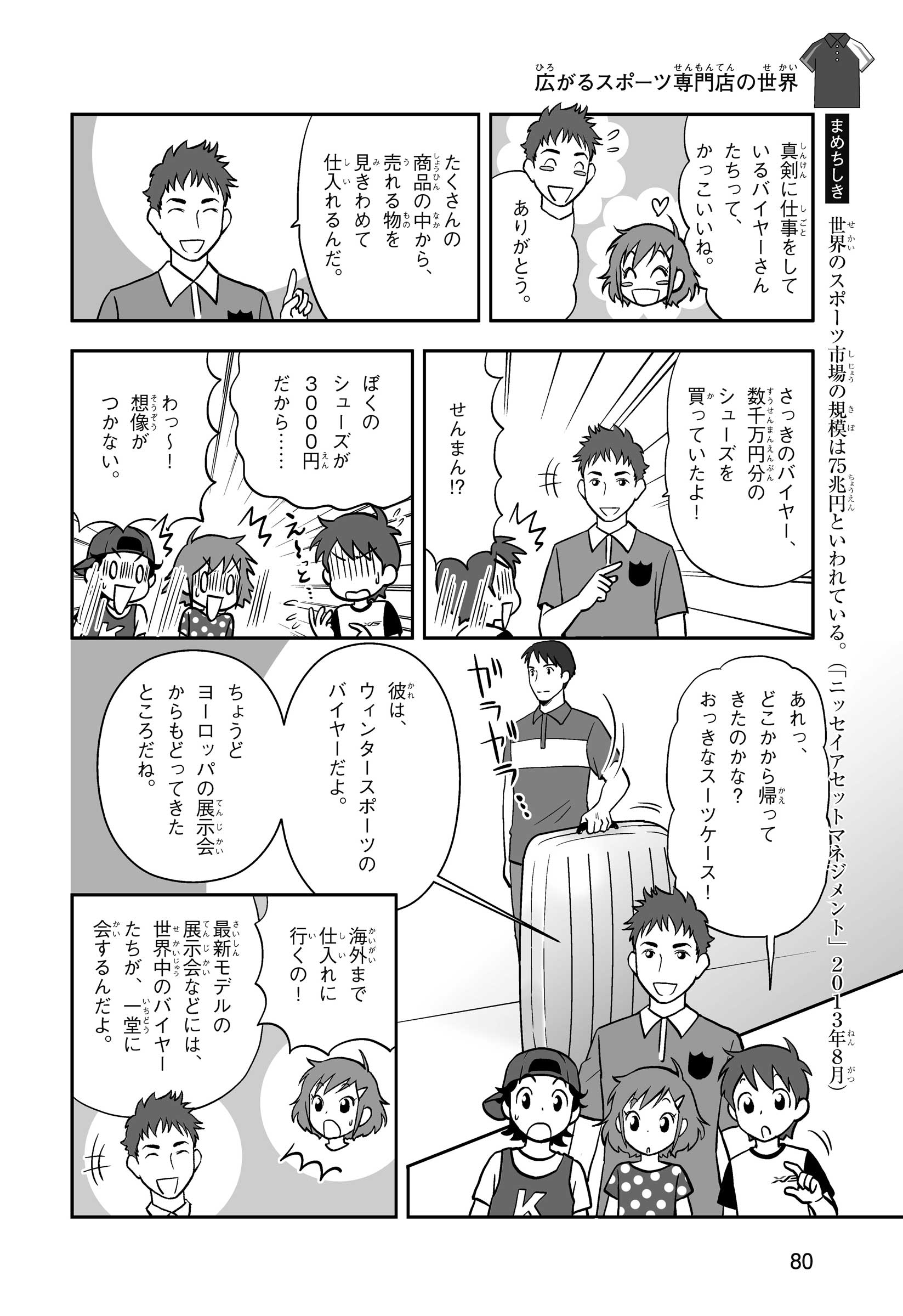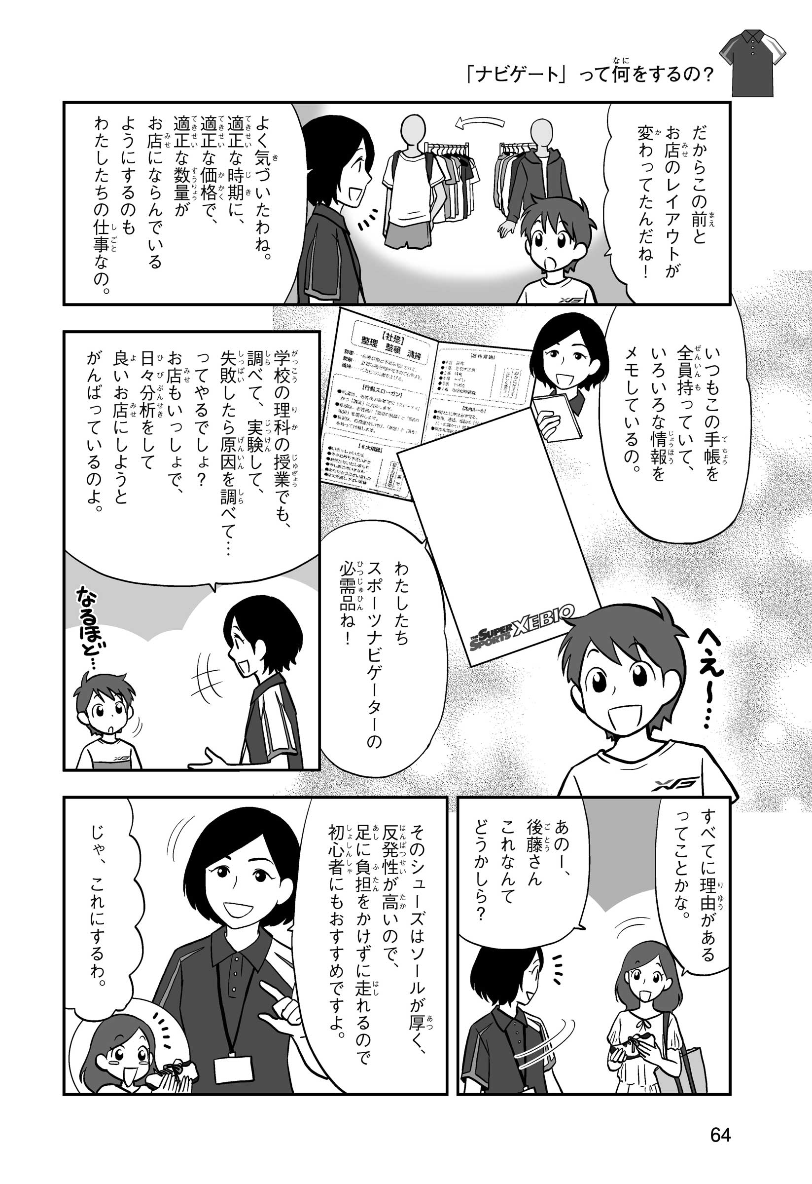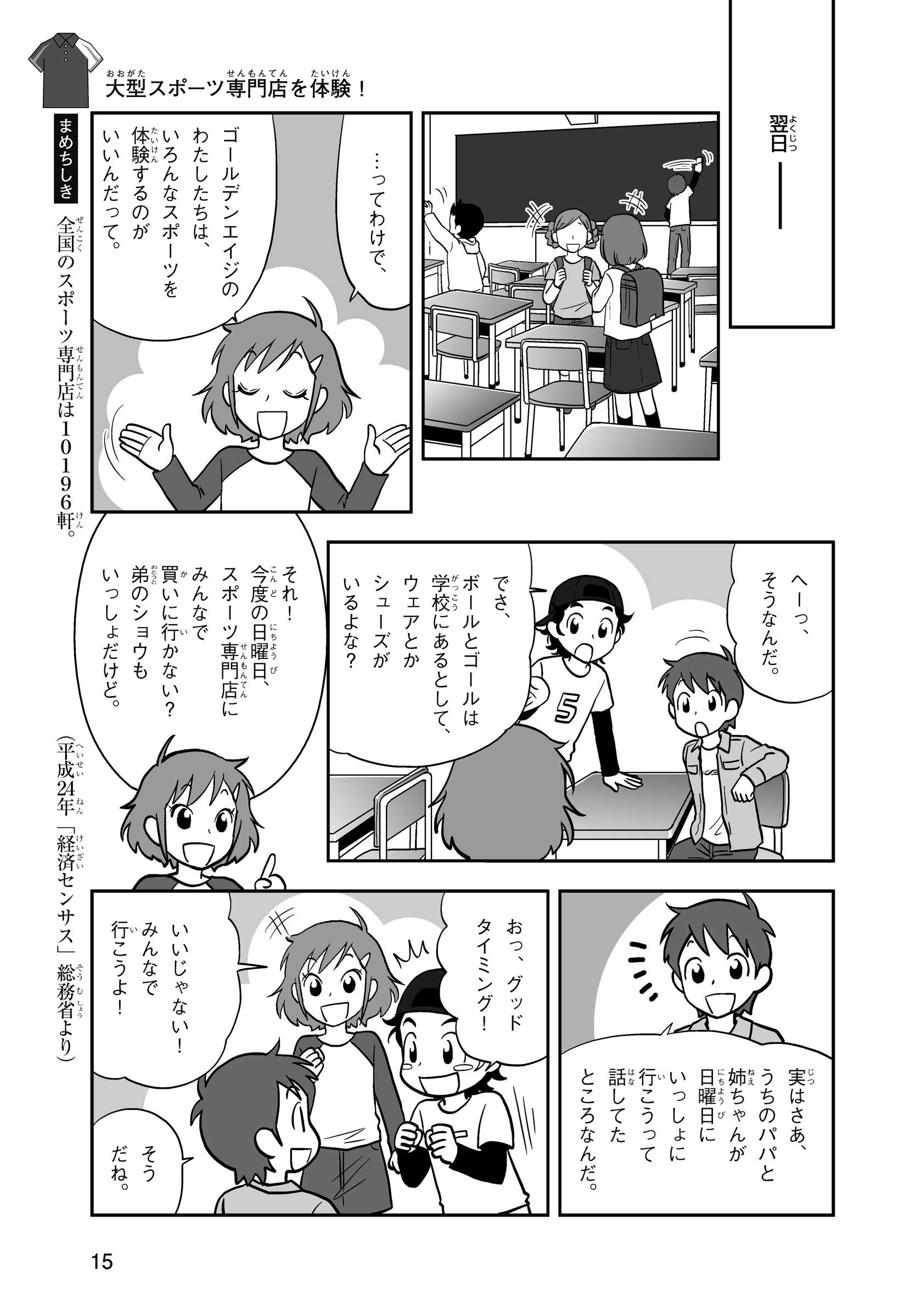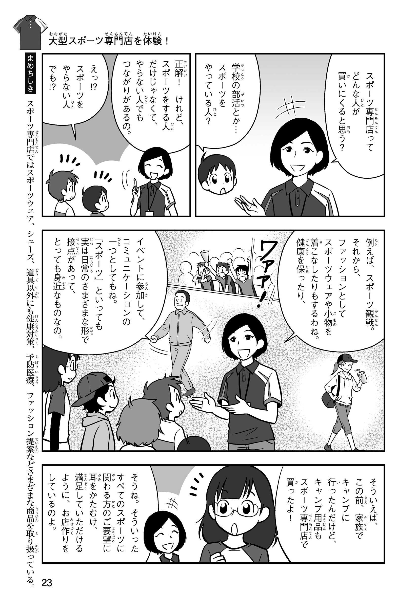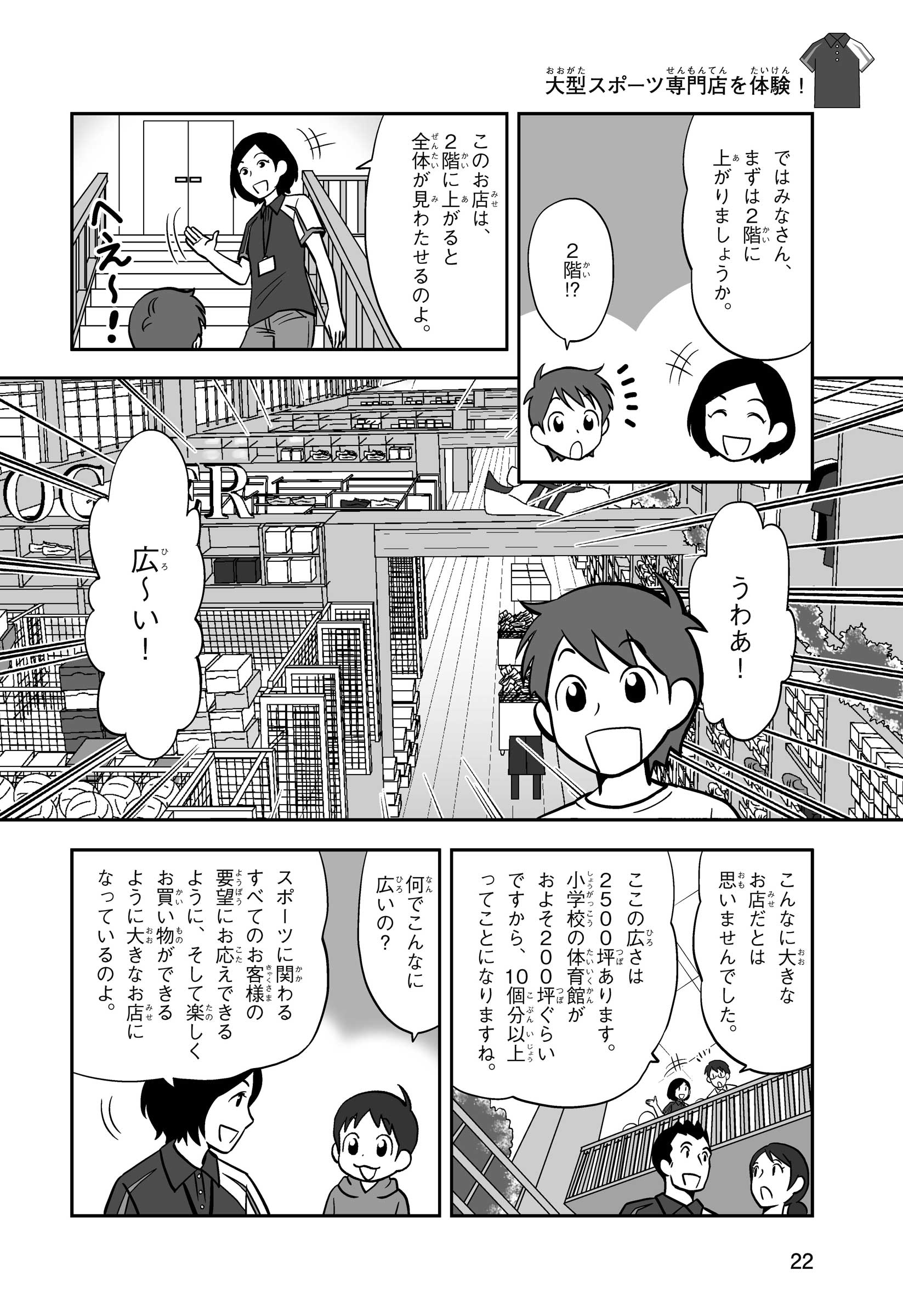 そこで、みんなでいっしょにスポーツ用品店に行ってみたんだ。お店で出むかえてくれたのは、スポーツのプロ“スポーツナビゲーター”の伊藤さんという人で…