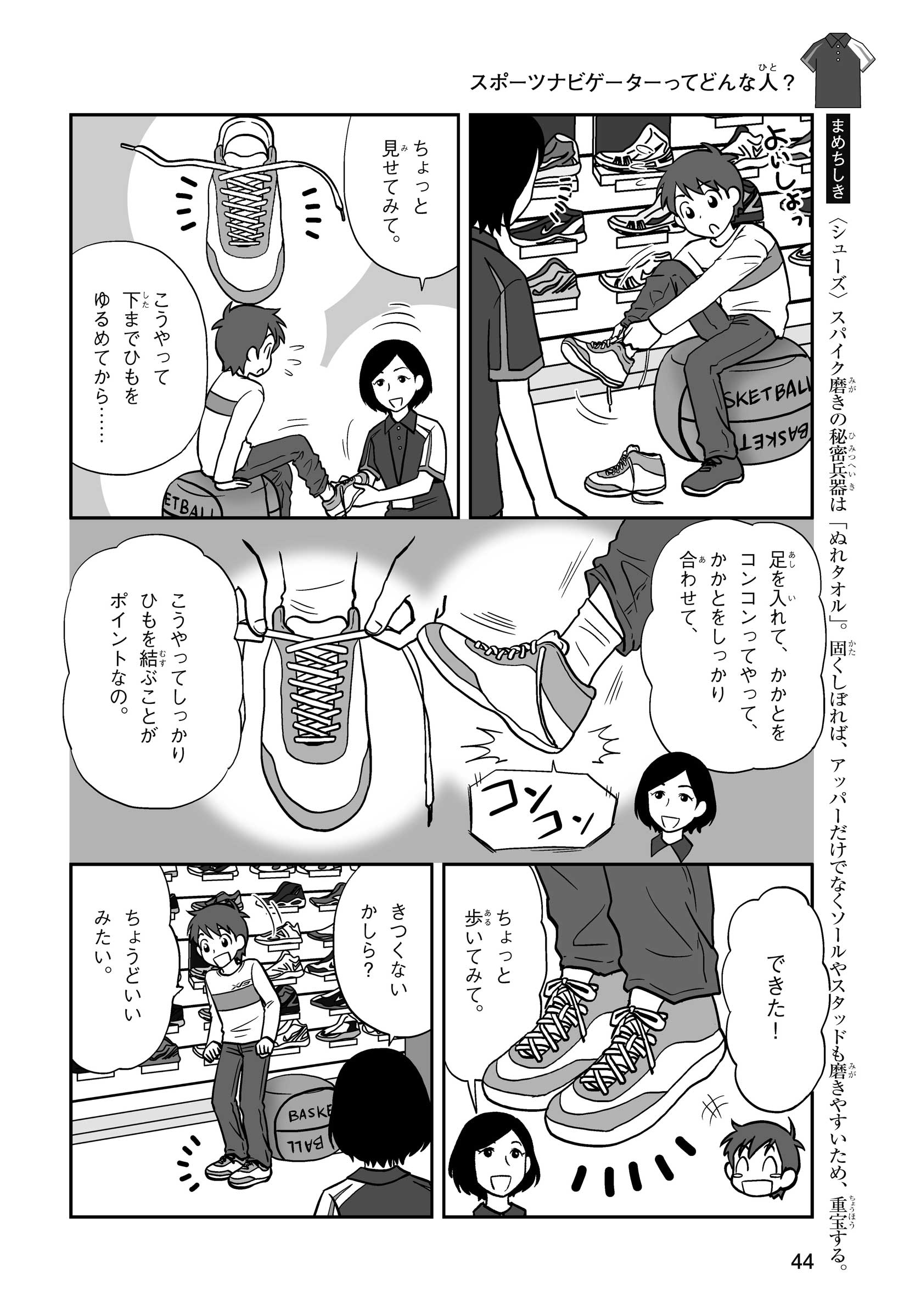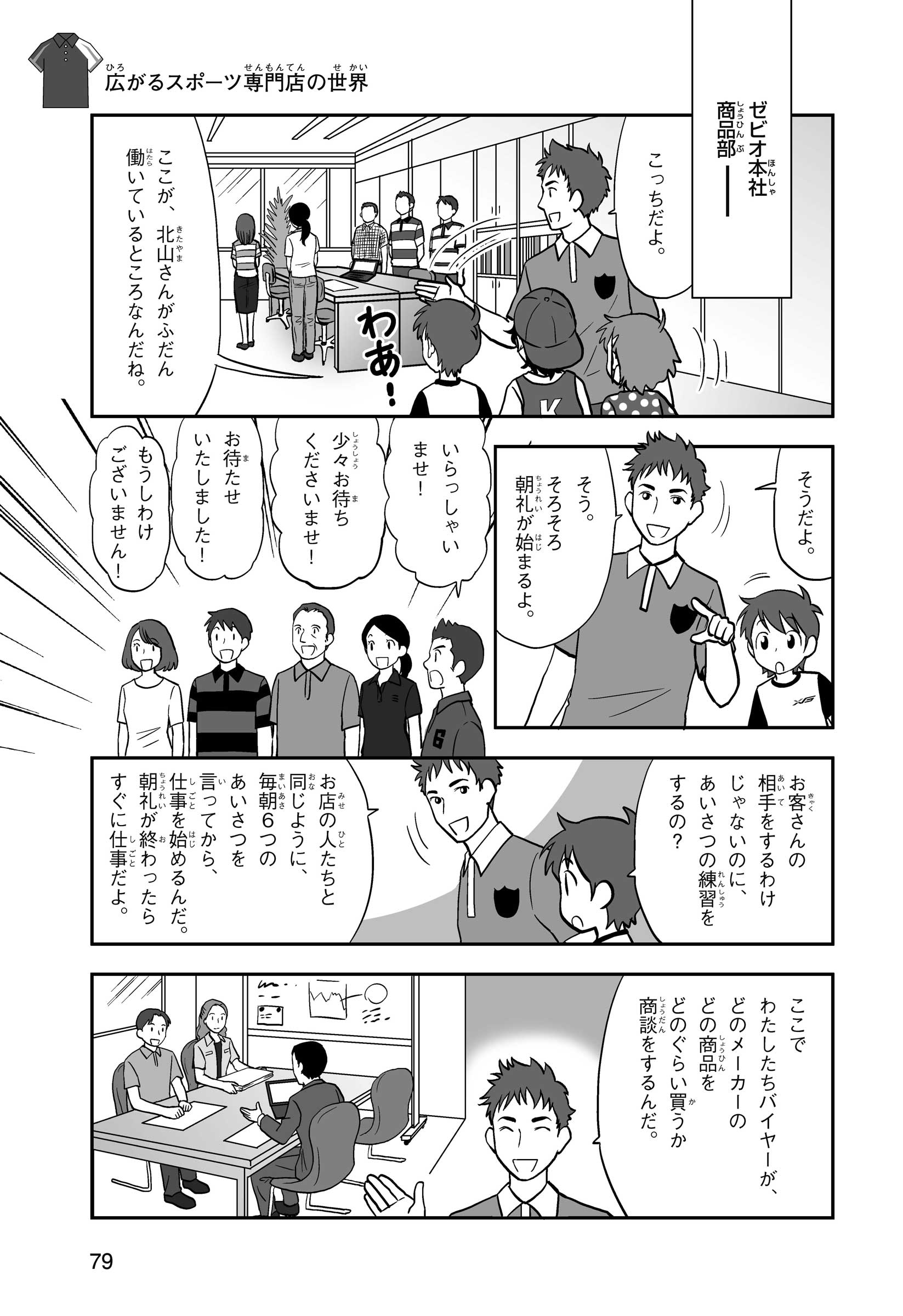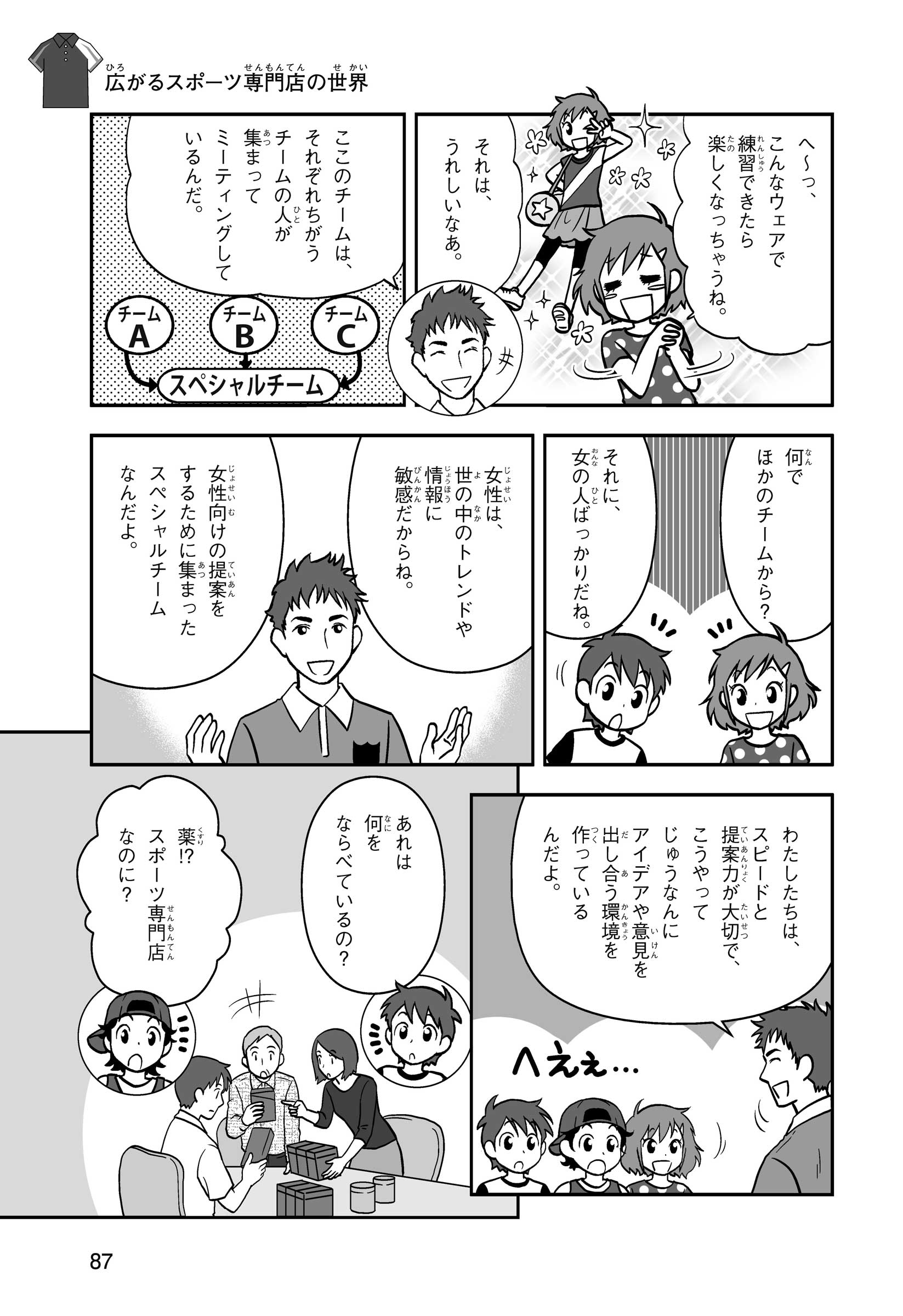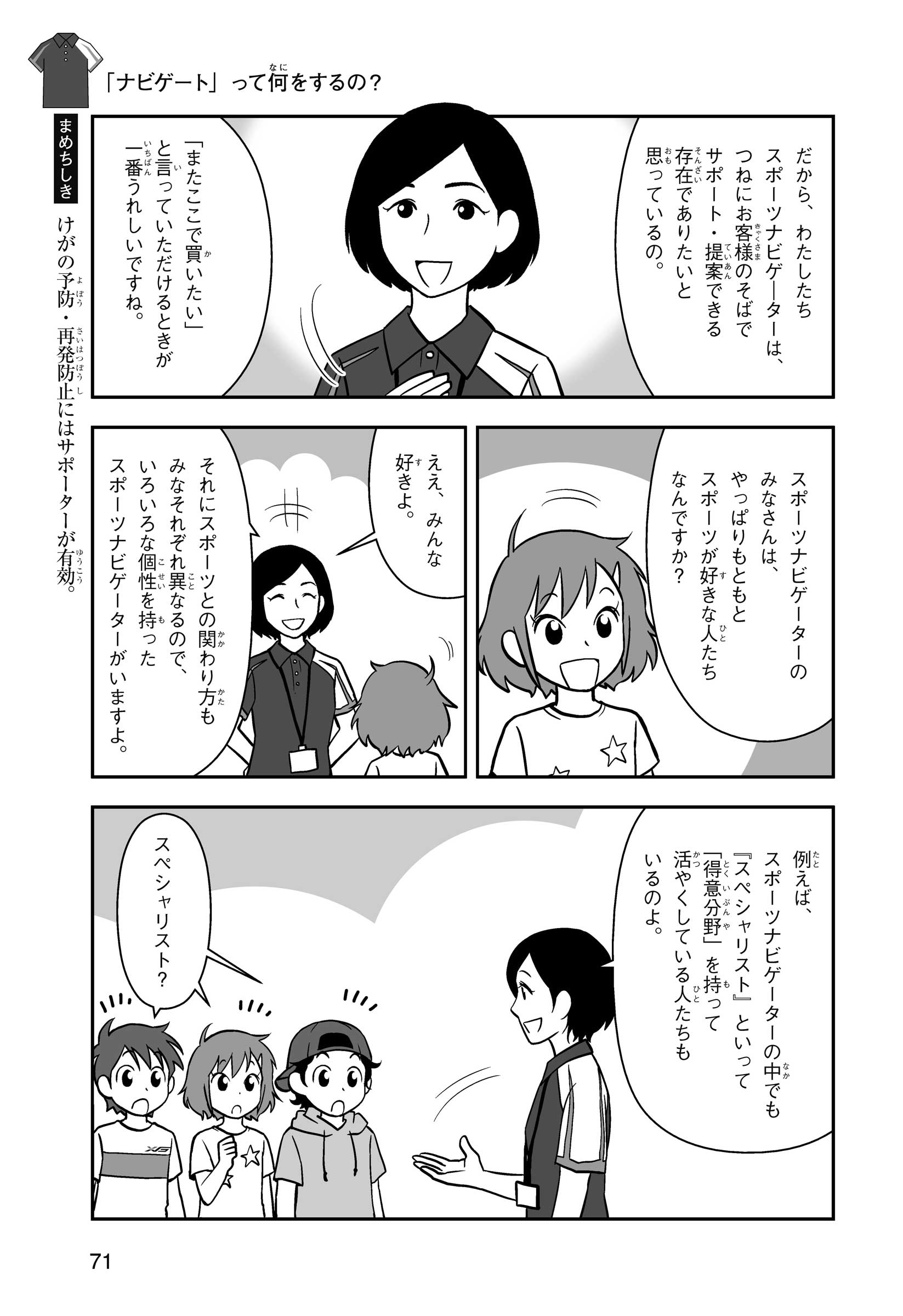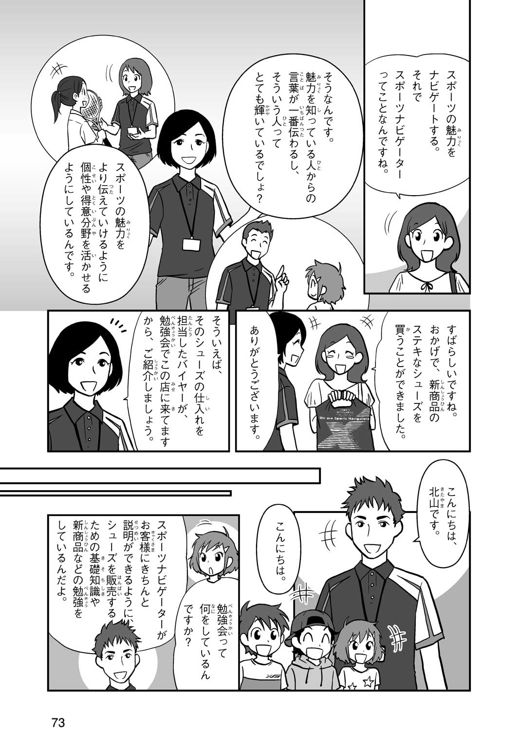 そこで、みんなでいっしょにスポーツ用品店に行ってみたんだ。お店で出むかえてくれたのは、スポーツのプロ“スポーツナビゲーター”の伊藤さんという人で…