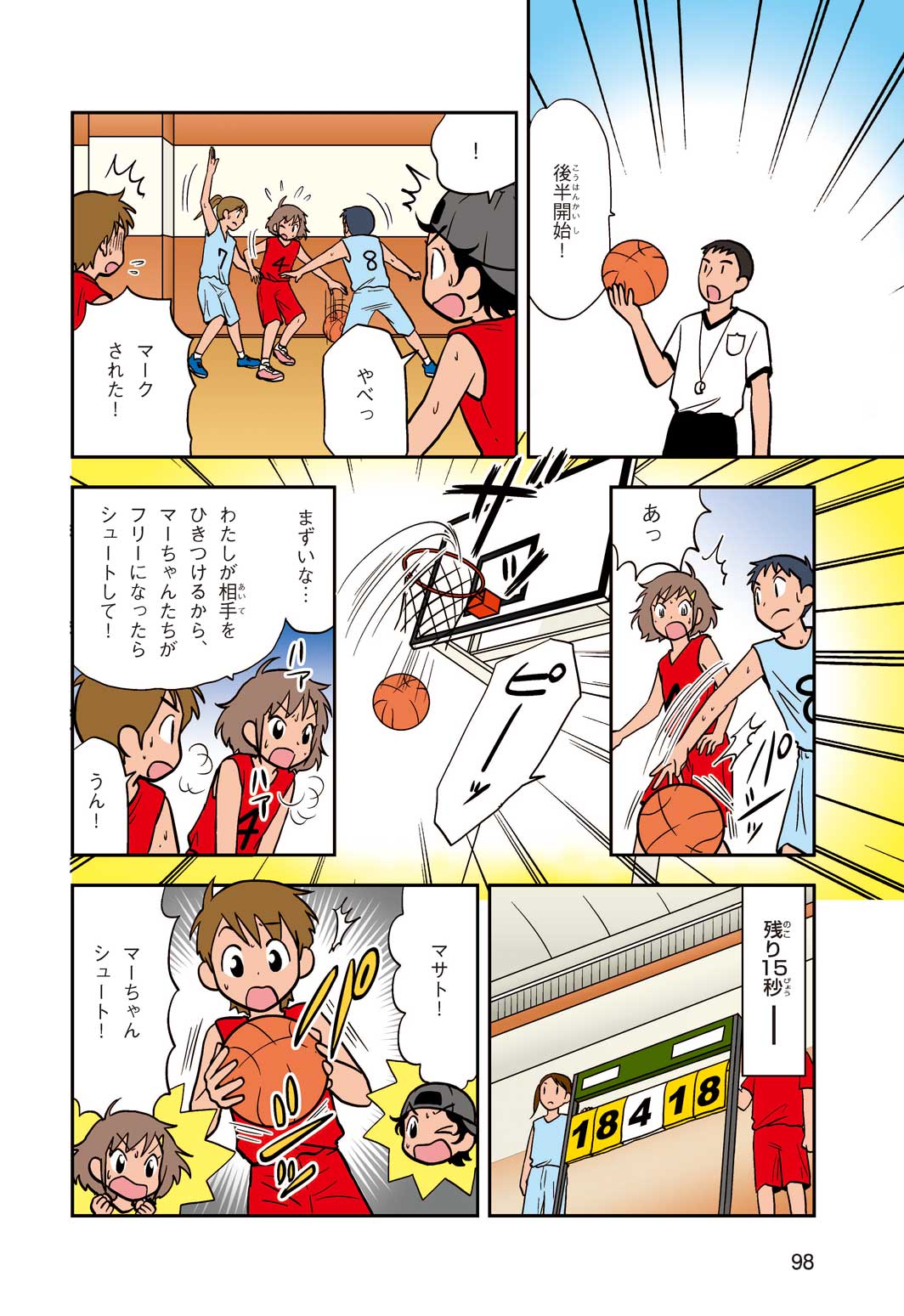 4年生のマサトはスポーツが苦手。おさななじみのユイとユウタにさそわれて、バスケットボールクラブに入部したけれど、シューズ選びや練習方法、スポーツによい食べ物ってなに…? わからないことがいっぱい!