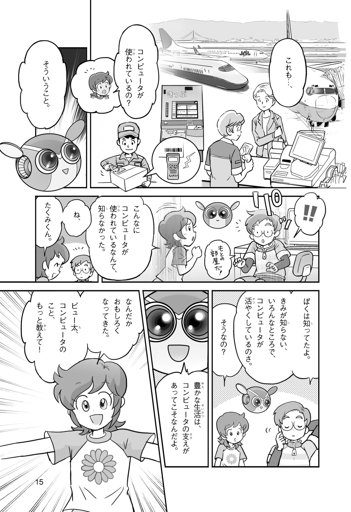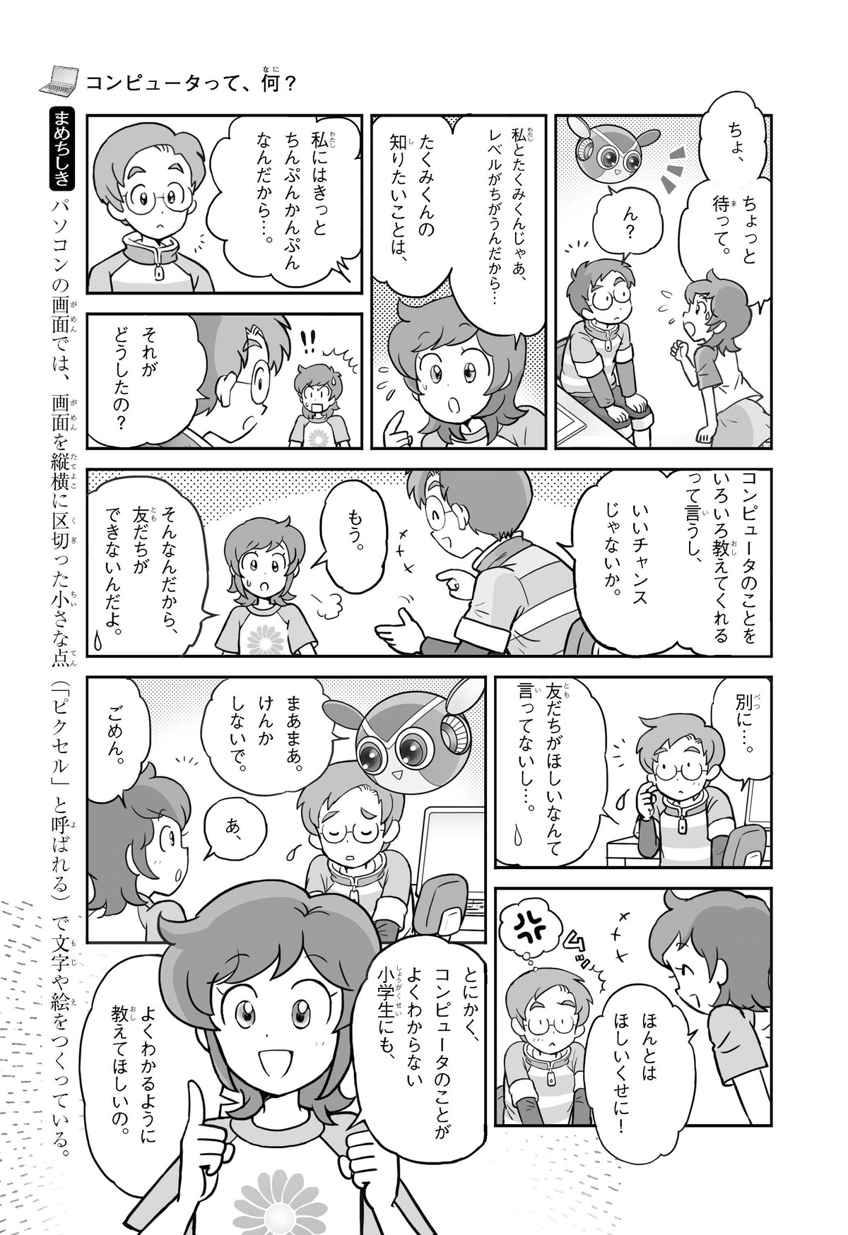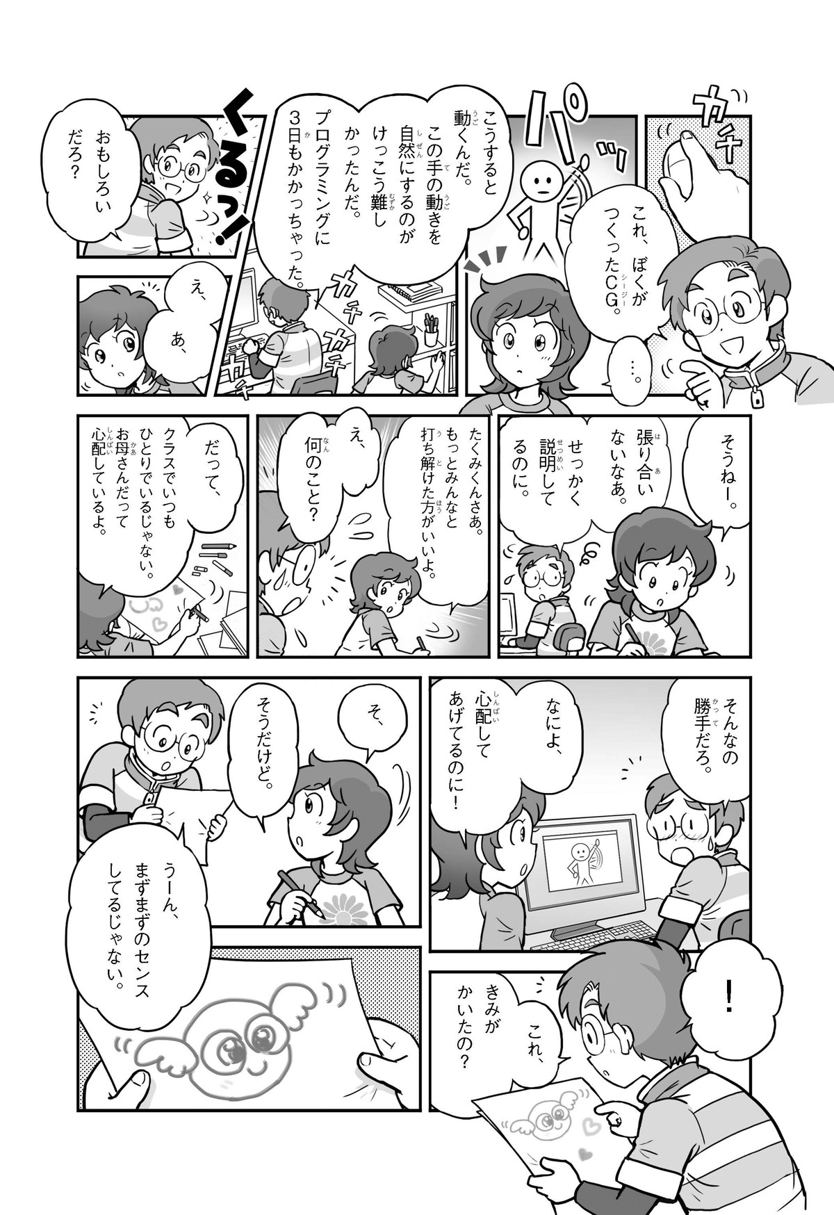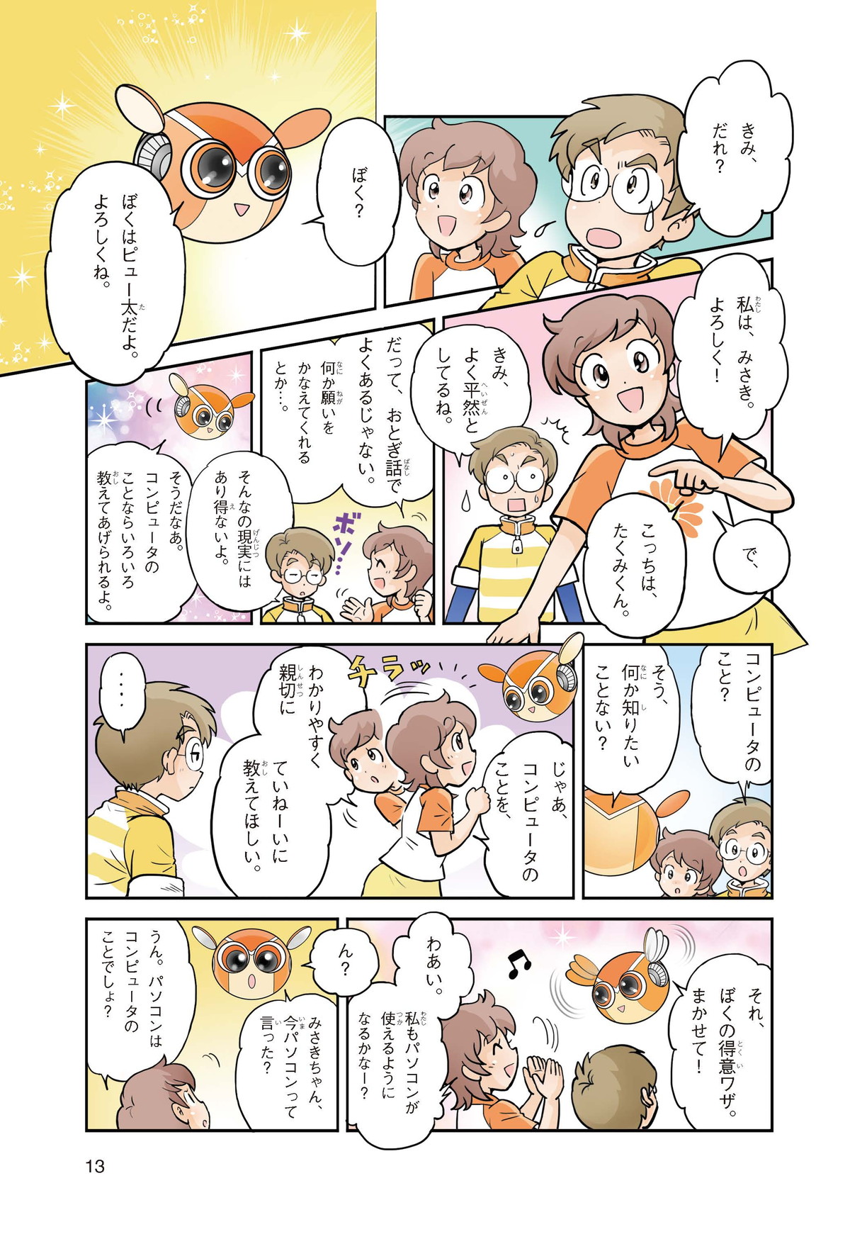 ある日、みさきのマンションにクラスメイトのたくみが引っこしてきた。たくみの荷物の中にはパソコンやコンピュータ機器がいっぱい! 算数の成績(せいせき)はいいのに友だちとはなかなか打ちとけないたくみが、コンピュータの話になるととっても楽しそう。みさきが落書きしたイラストをたくみがCGで動かそうとすると、パソコンの中からとつぜん、“ピュー太”があらわれた!
