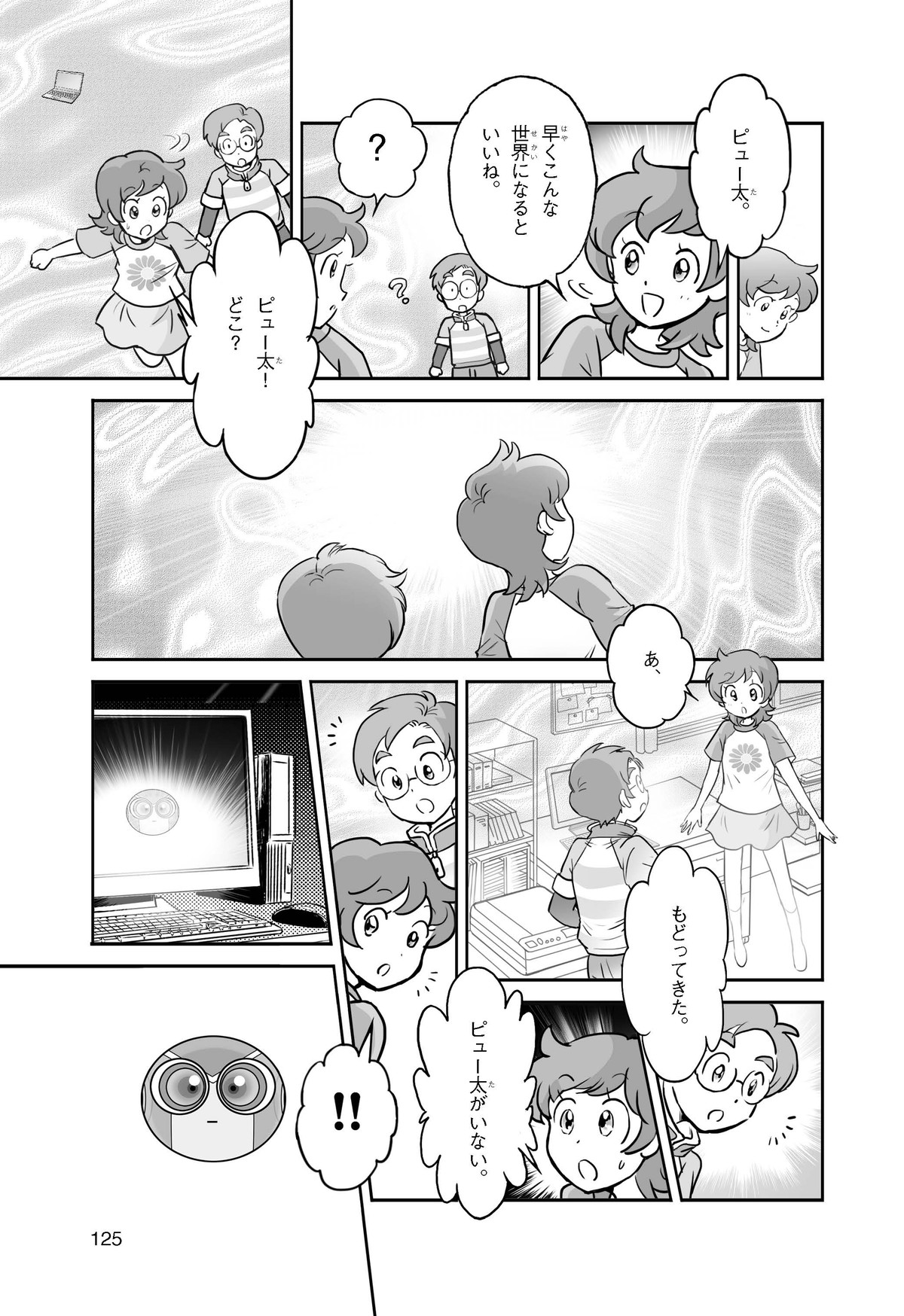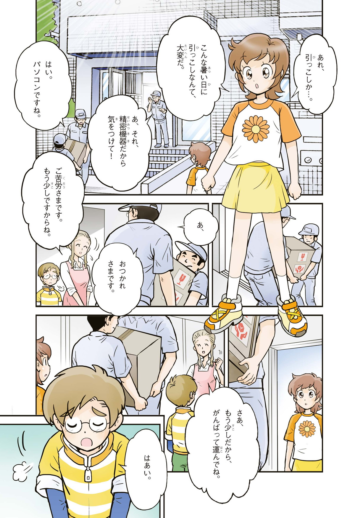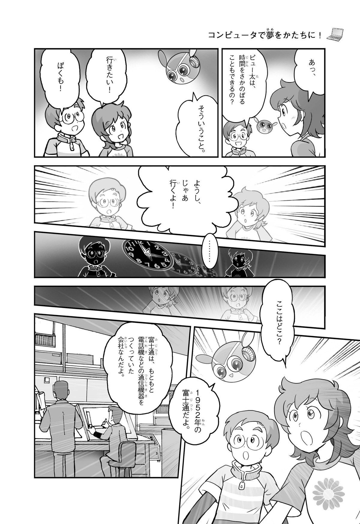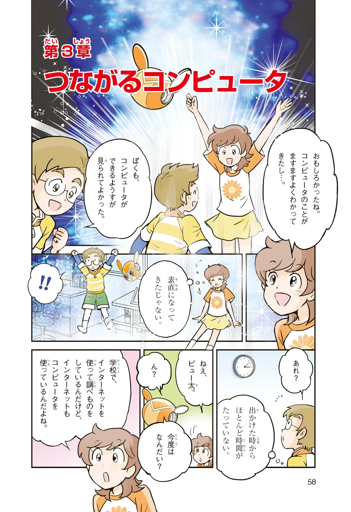 ある日、みさきのマンションにクラスメイトのたくみが引っこしてきた。たくみの荷物の中にはパソコンやコンピュータ機器がいっぱい! 算数の成績(せいせき)はいいのに友だちとはなかなか打ちとけないたくみが、コンピュータの話になるととっても楽しそう。みさきが落書きしたイラストをたくみがCGで動かそうとすると、パソコンの中からとつぜん、“ピュー太”があらわれた!