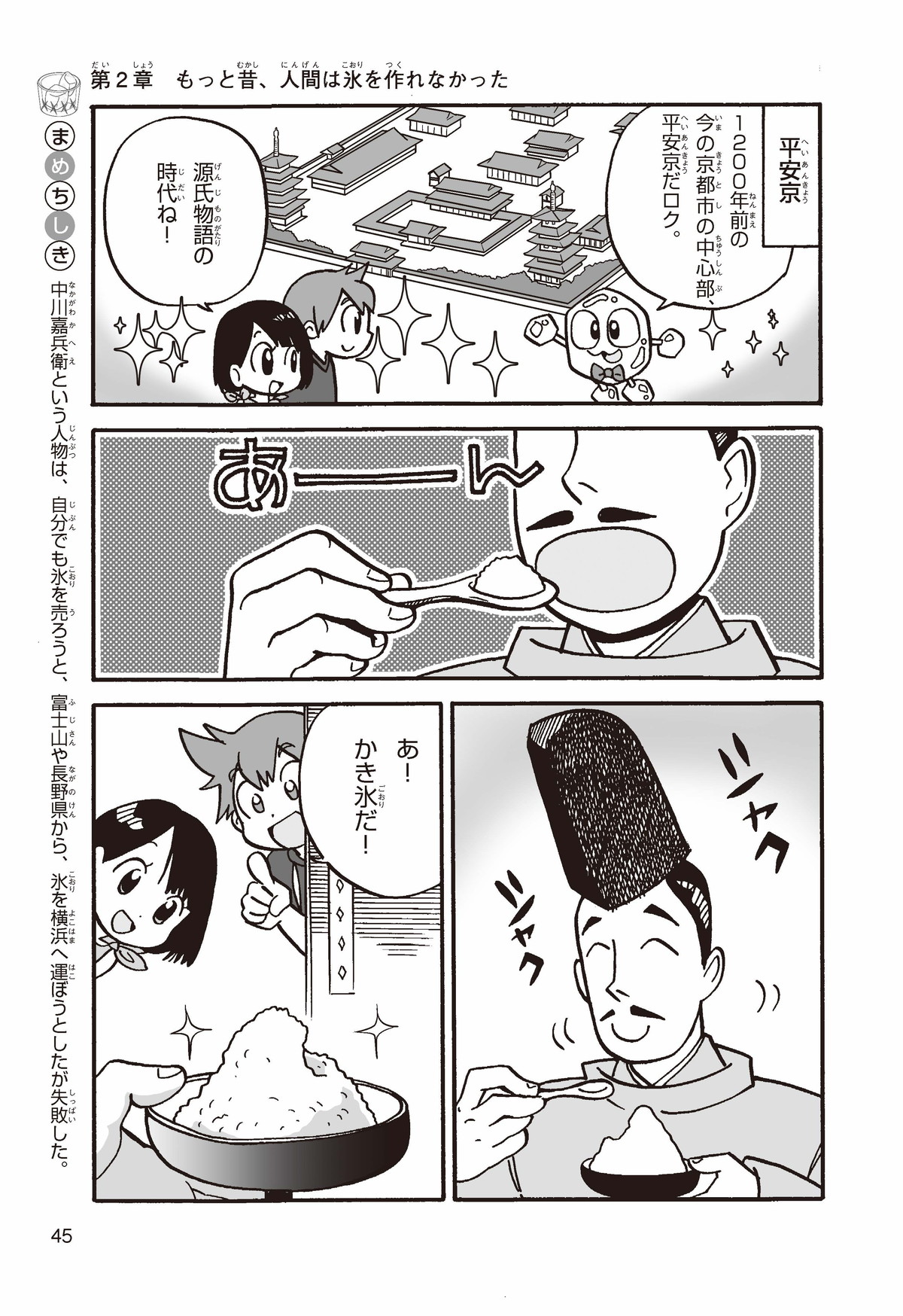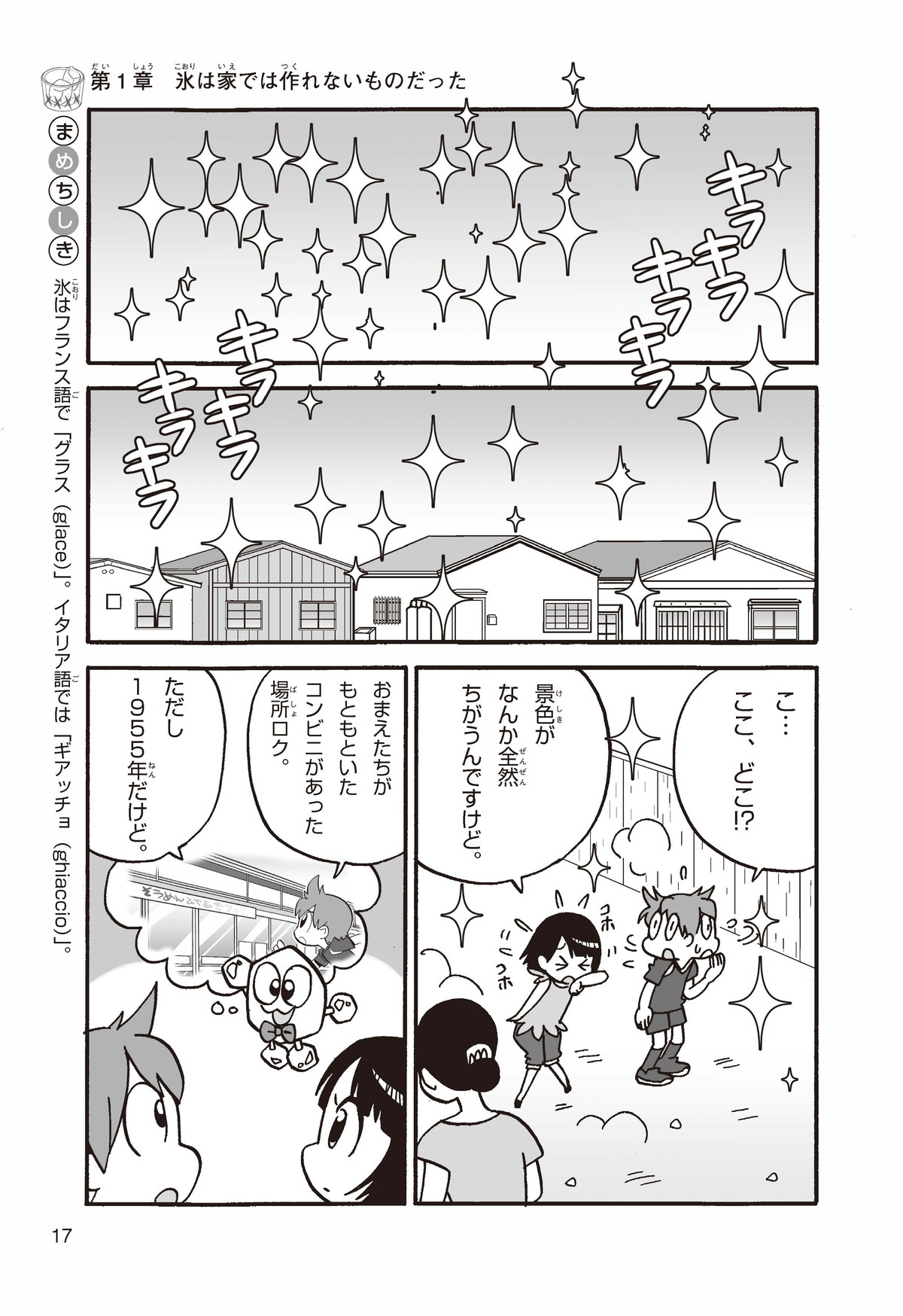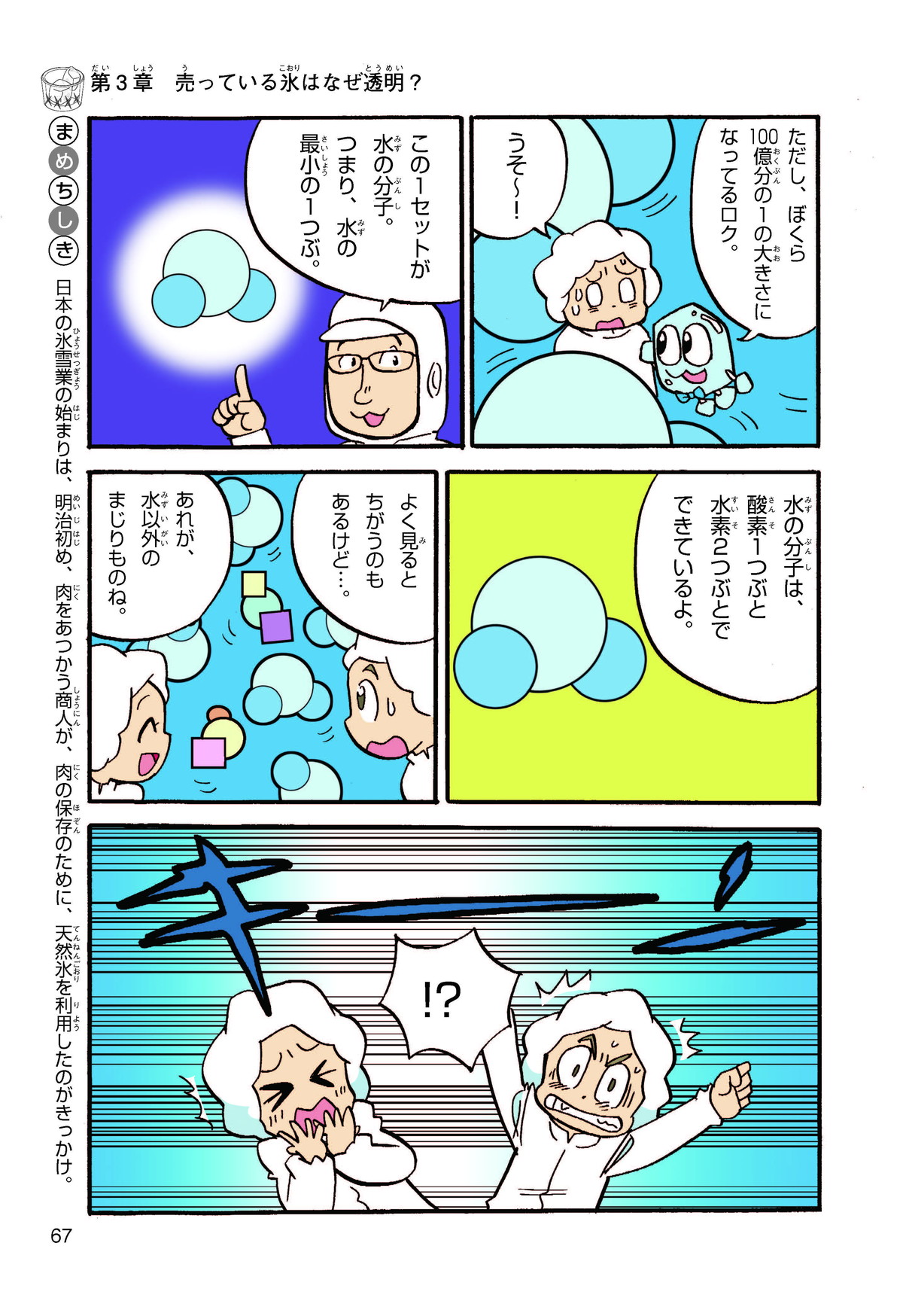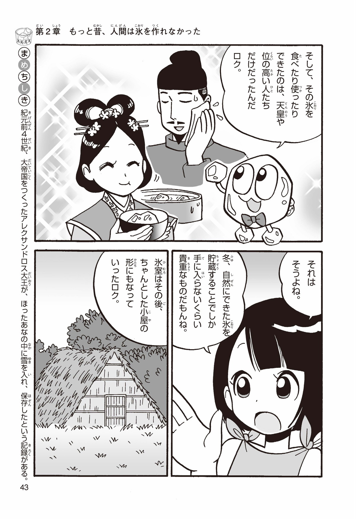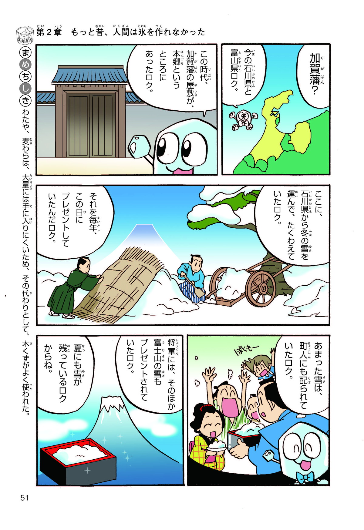 ぼくはコウタ。今日はこれからサッカーの試合! 冷たいドリンクを飲みたいから、氷をたくさん持っていこうと思ったんだけど、うっかり者のお母さんが作るのを忘(わす)れちゃったみたい。コンビニにも売っていると言われてさがしてみると、そこには透明(とうめい)でつやつやした氷があったよ! 光にあたってキラキラかがやいている氷はまるで宝石(ほうせき)みたい。うっとりながめていると、そこに妖精(ようせい)のロクが現(あらわ)れて……!?