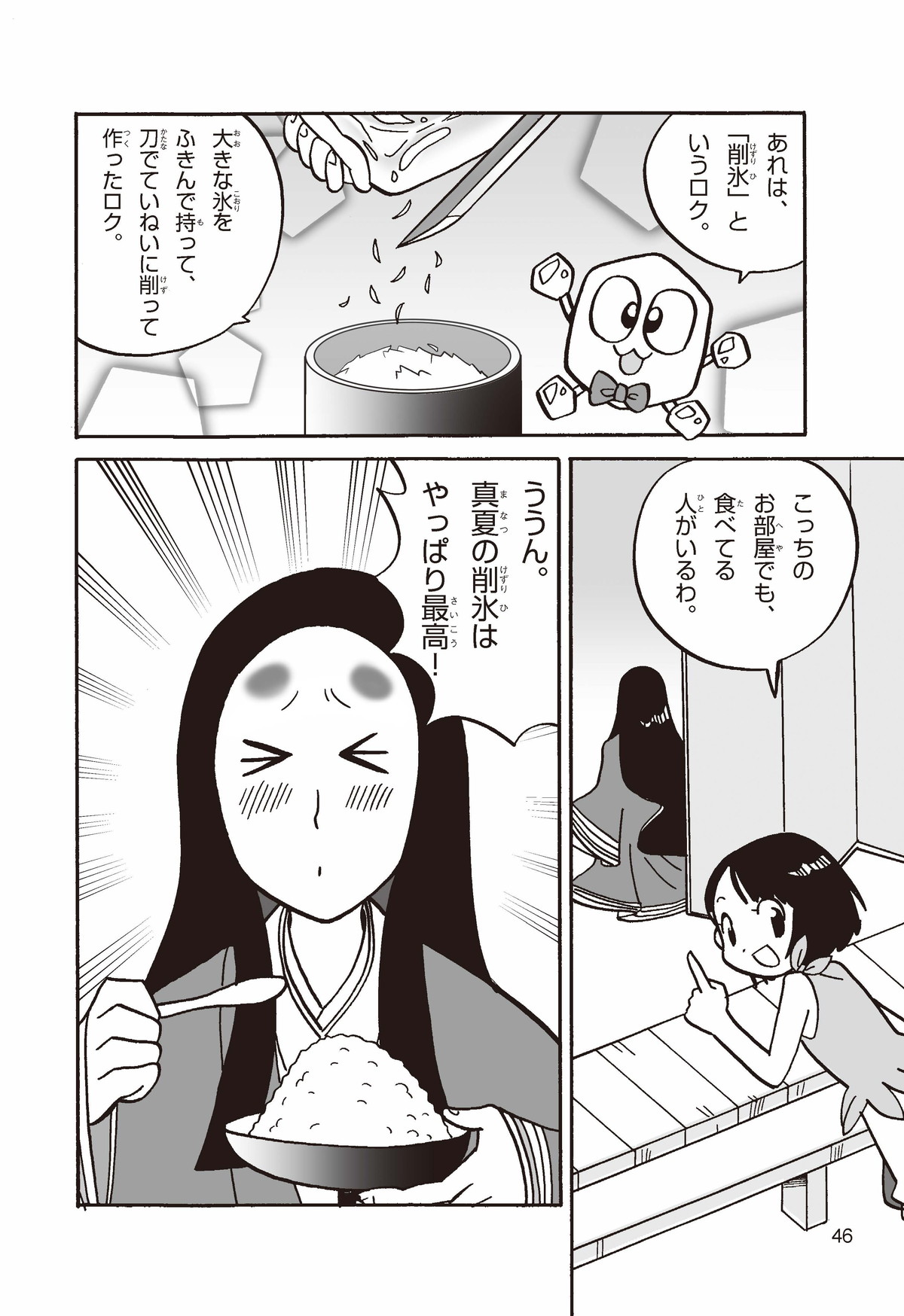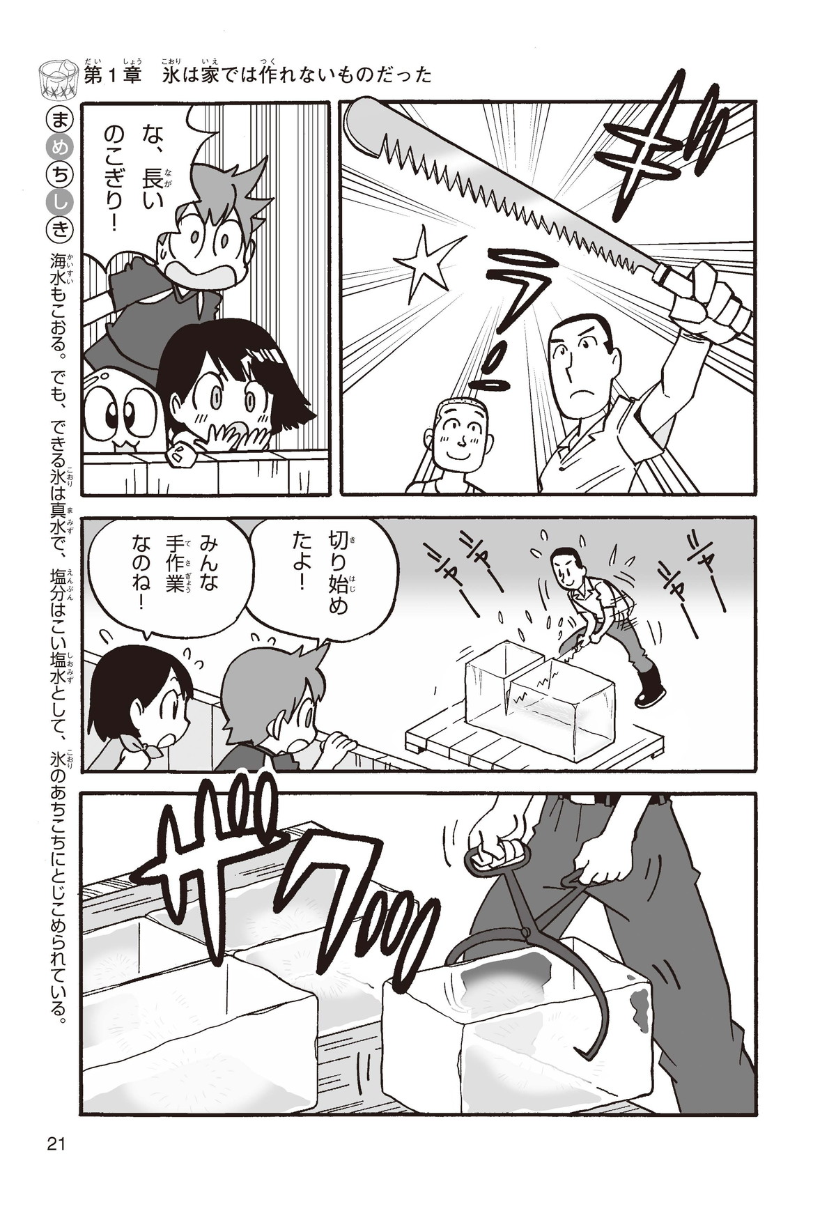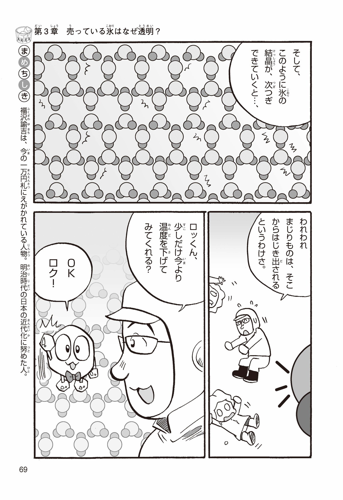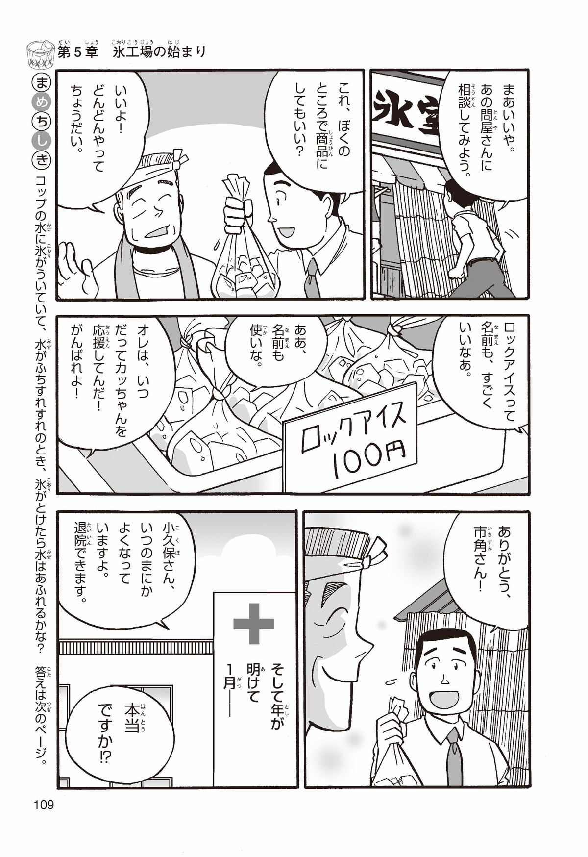 ぼくはコウタ。今日はこれからサッカーの試合! 冷たいドリンクを飲みたいから、氷をたくさん持っていこうと思ったんだけど、うっかり者のお母さんが作るのを忘(わす)れちゃったみたい。コンビニにも売っていると言われてさがしてみると、そこには透明(とうめい)でつやつやした氷があったよ! 光にあたってキラキラかがやいている氷はまるで宝石(ほうせき)みたい。うっとりながめていると、そこに妖精(ようせい)のロクが現(あらわ)れて……!?