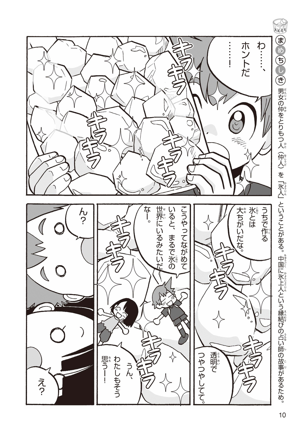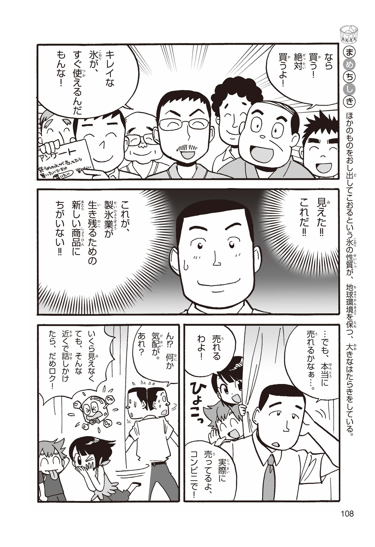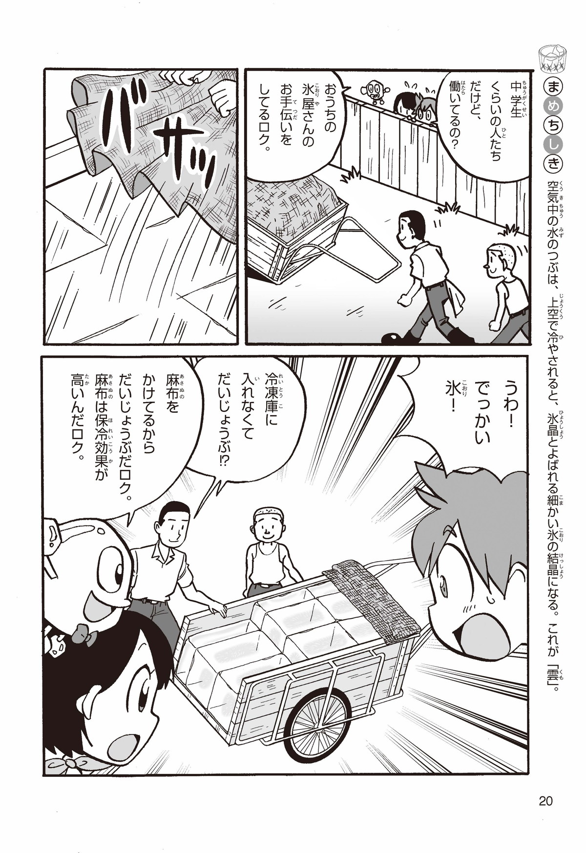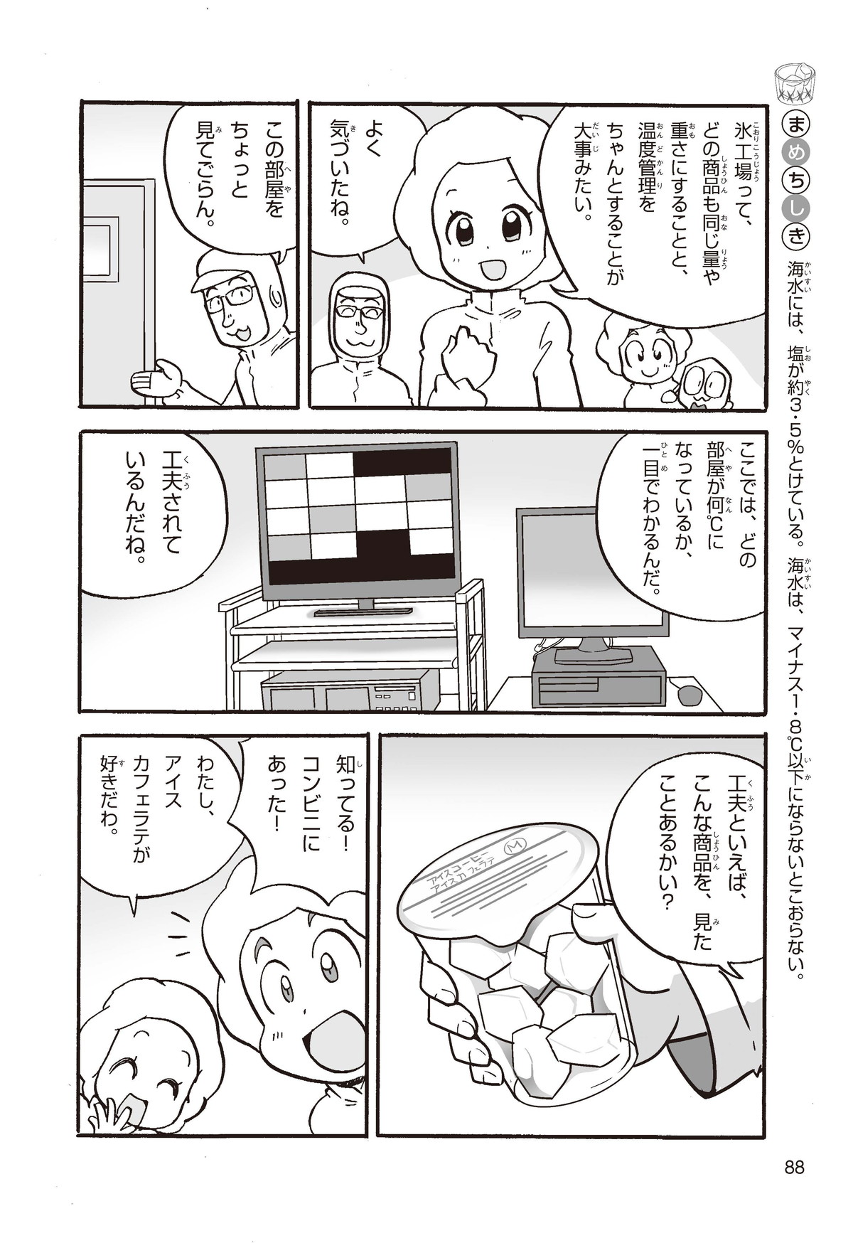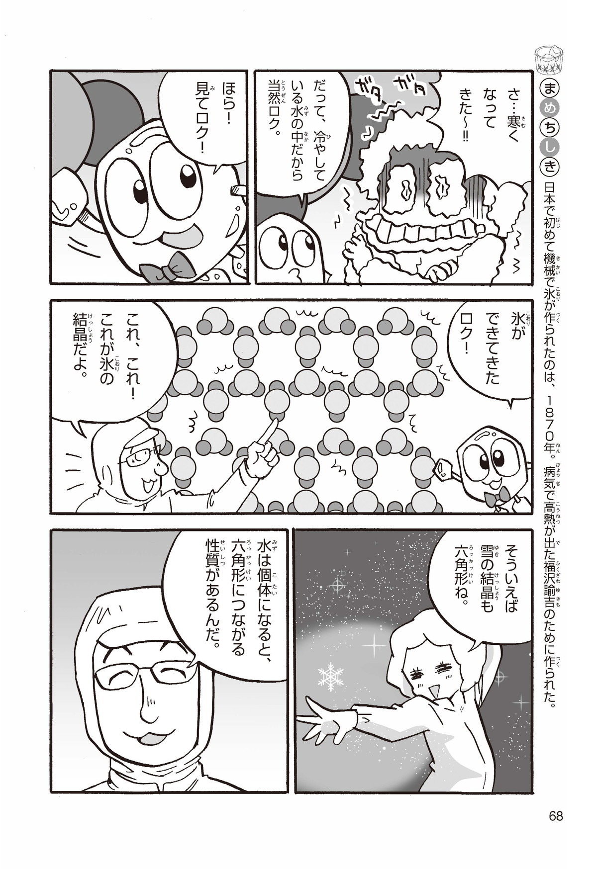 ぼくはコウタ。今日はこれからサッカーの試合! 冷たいドリンクを飲みたいから、氷をたくさん持っていこうと思ったんだけど、うっかり者のお母さんが作るのを忘(わす)れちゃったみたい。コンビニにも売っていると言われてさがしてみると、そこには透明(とうめい)でつやつやした氷があったよ! 光にあたってキラキラかがやいている氷はまるで宝石(ほうせき)みたい。うっとりながめていると、そこに妖精(ようせい)のロクが現(あらわ)れて……!?
