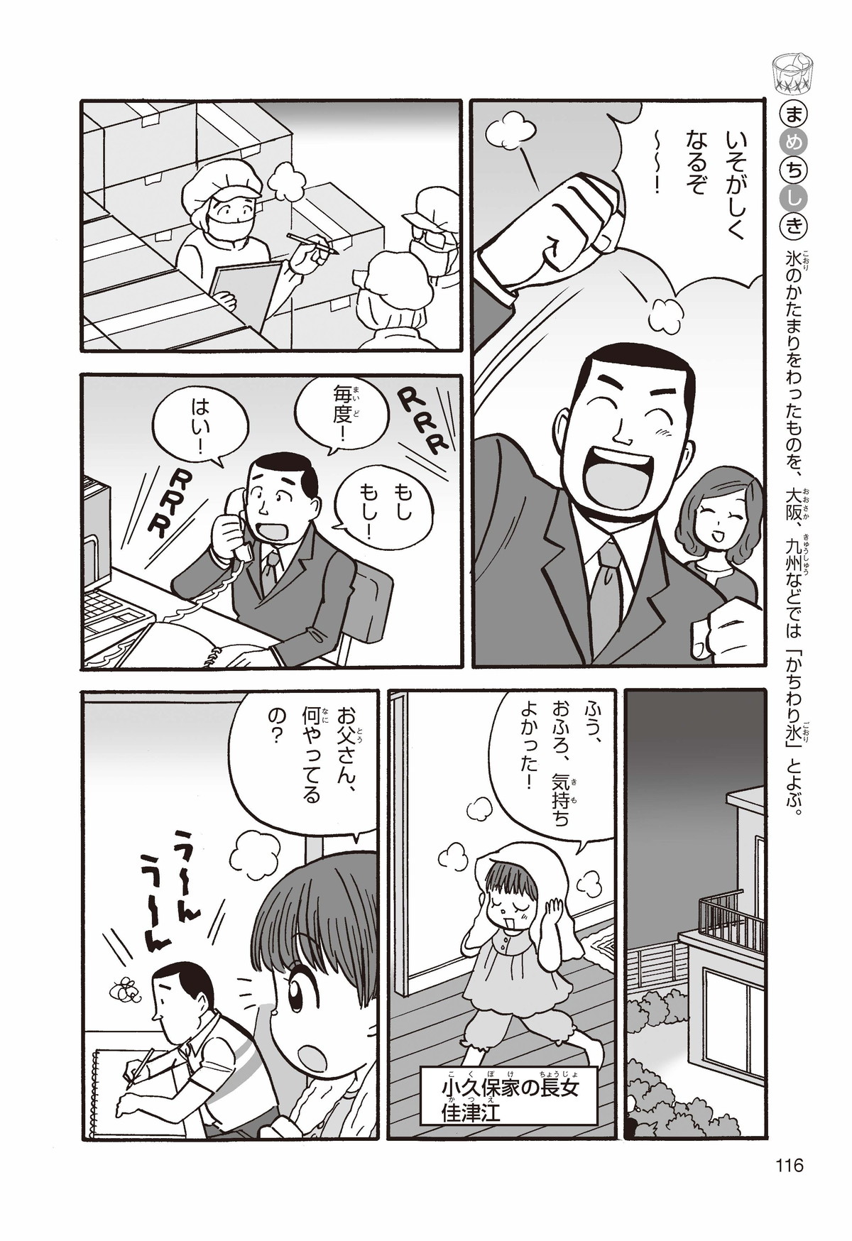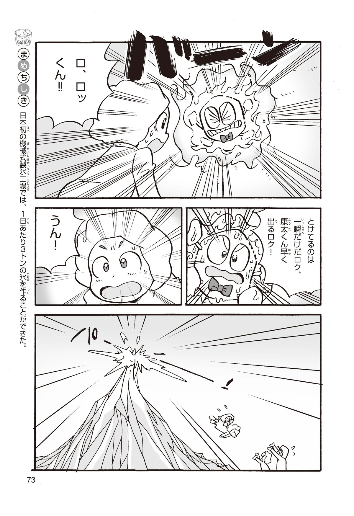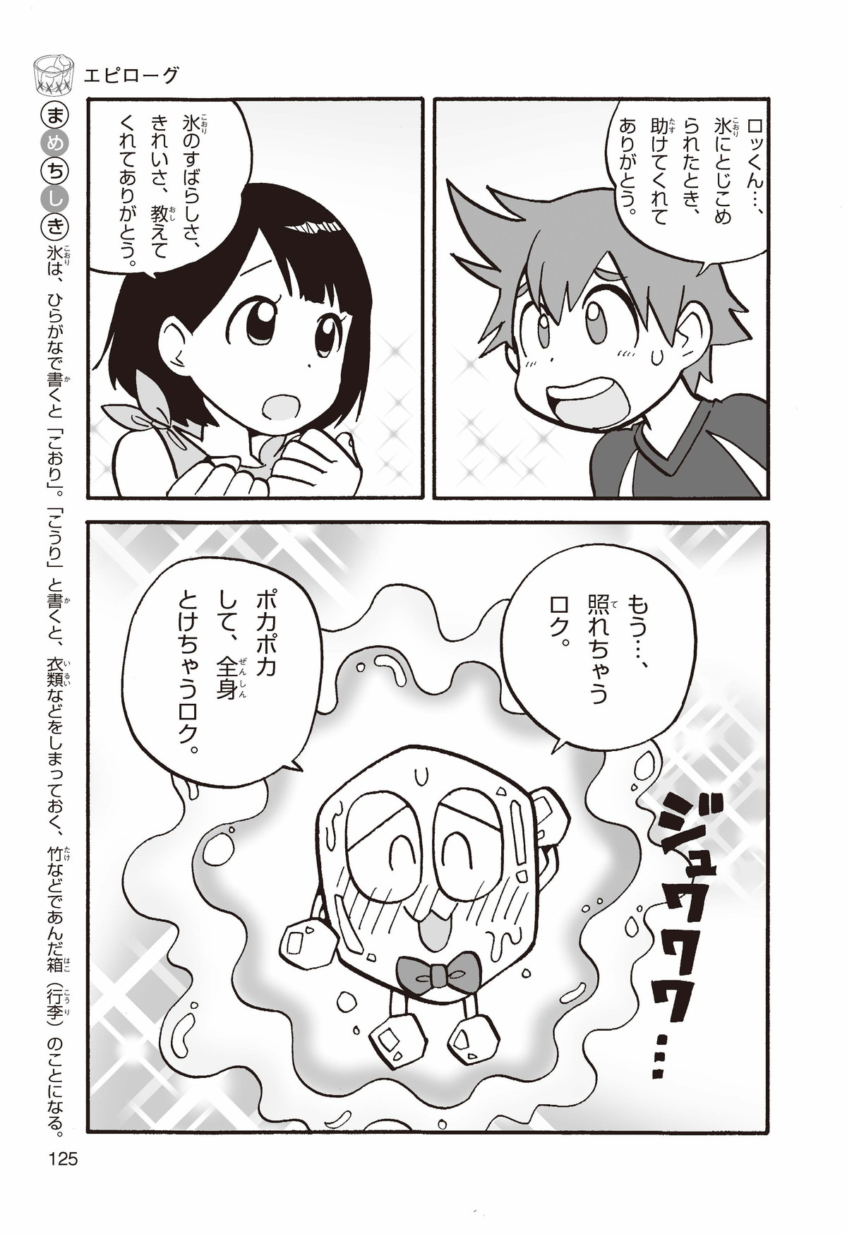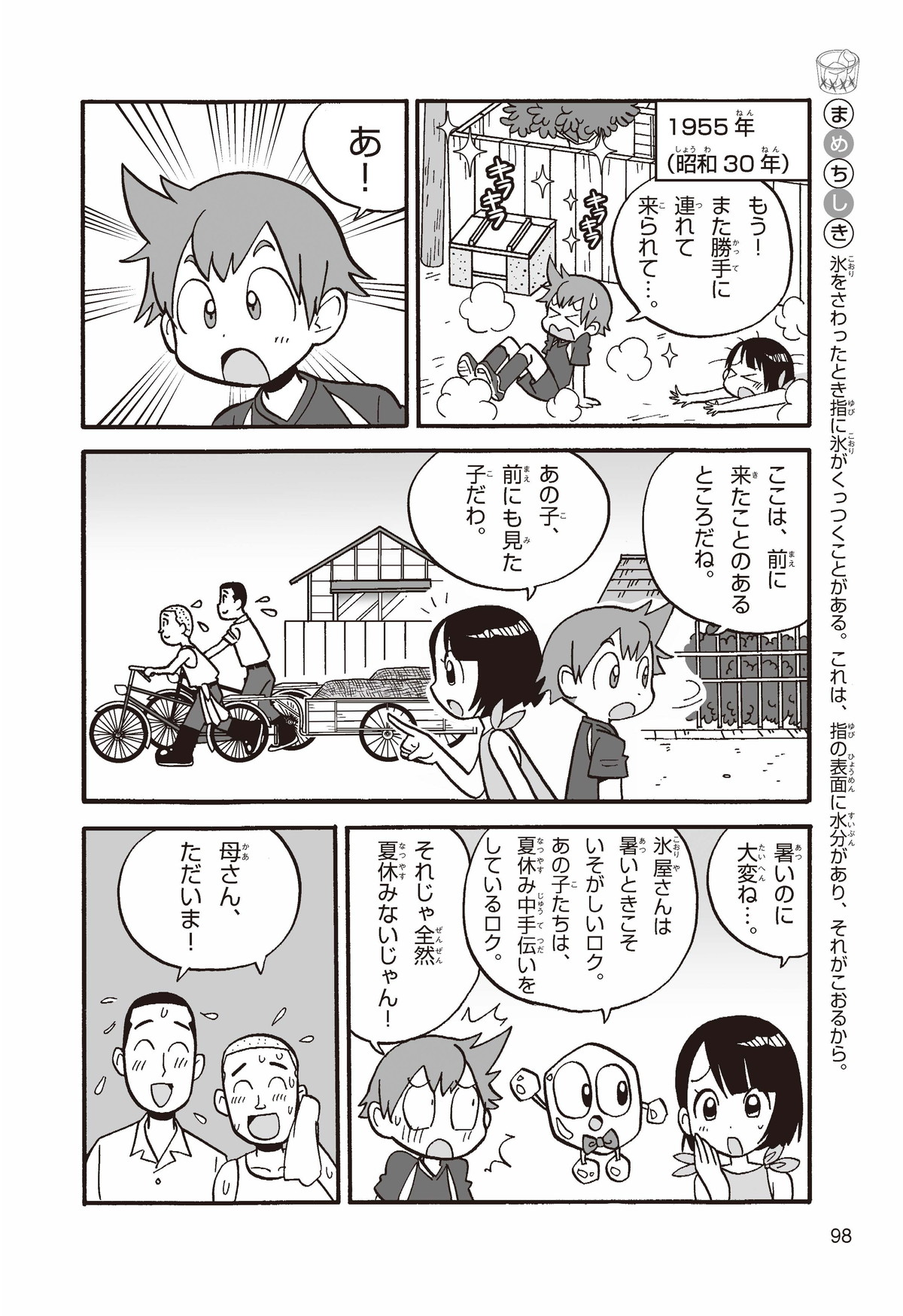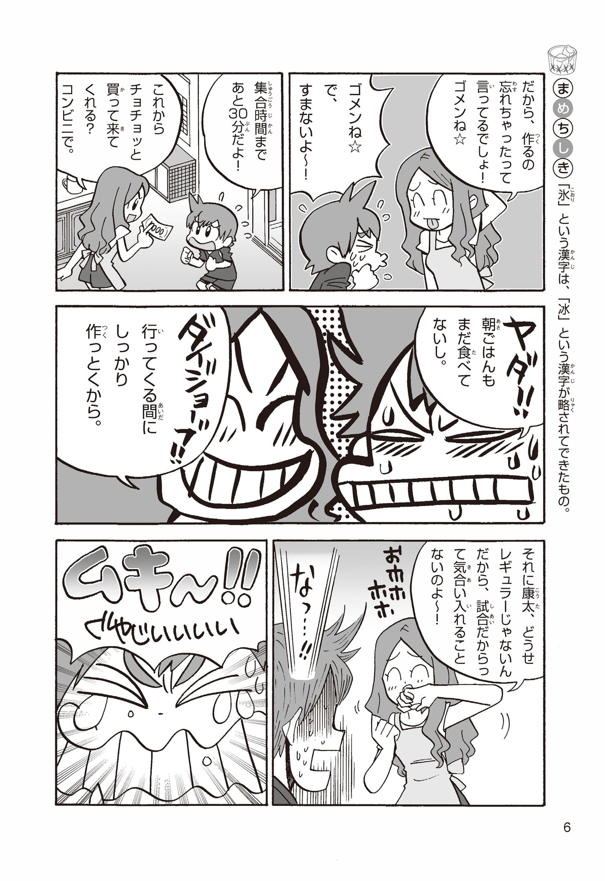 ぼくはコウタ。今日はこれからサッカーの試合! 冷たいドリンクを飲みたいから、氷をたくさん持っていこうと思ったんだけど、うっかり者のお母さんが作るのを忘(わす)れちゃったみたい。コンビニにも売っていると言われてさがしてみると、そこには透明(とうめい)でつやつやした氷があったよ! 光にあたってキラキラかがやいている氷はまるで宝石(ほうせき)みたい。うっとりながめていると、そこに妖精(ようせい)のロクが現(あらわ)れて……!?