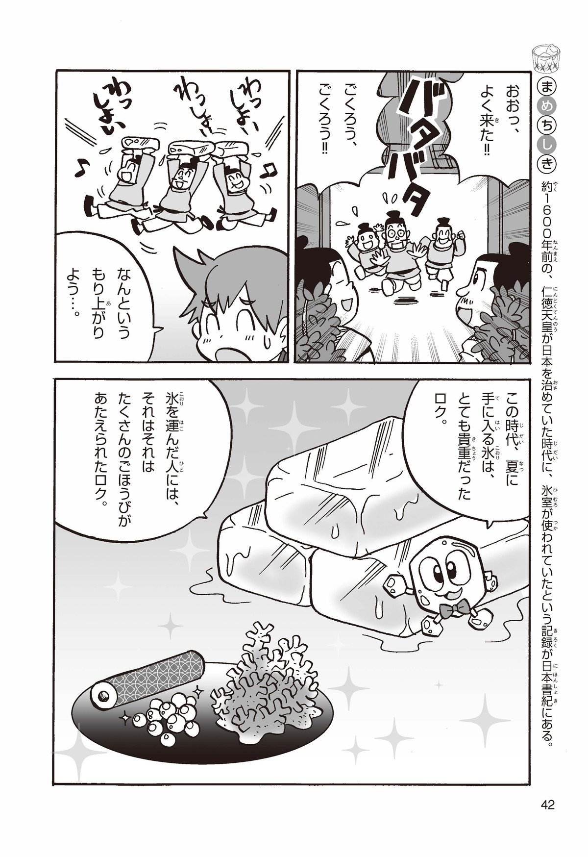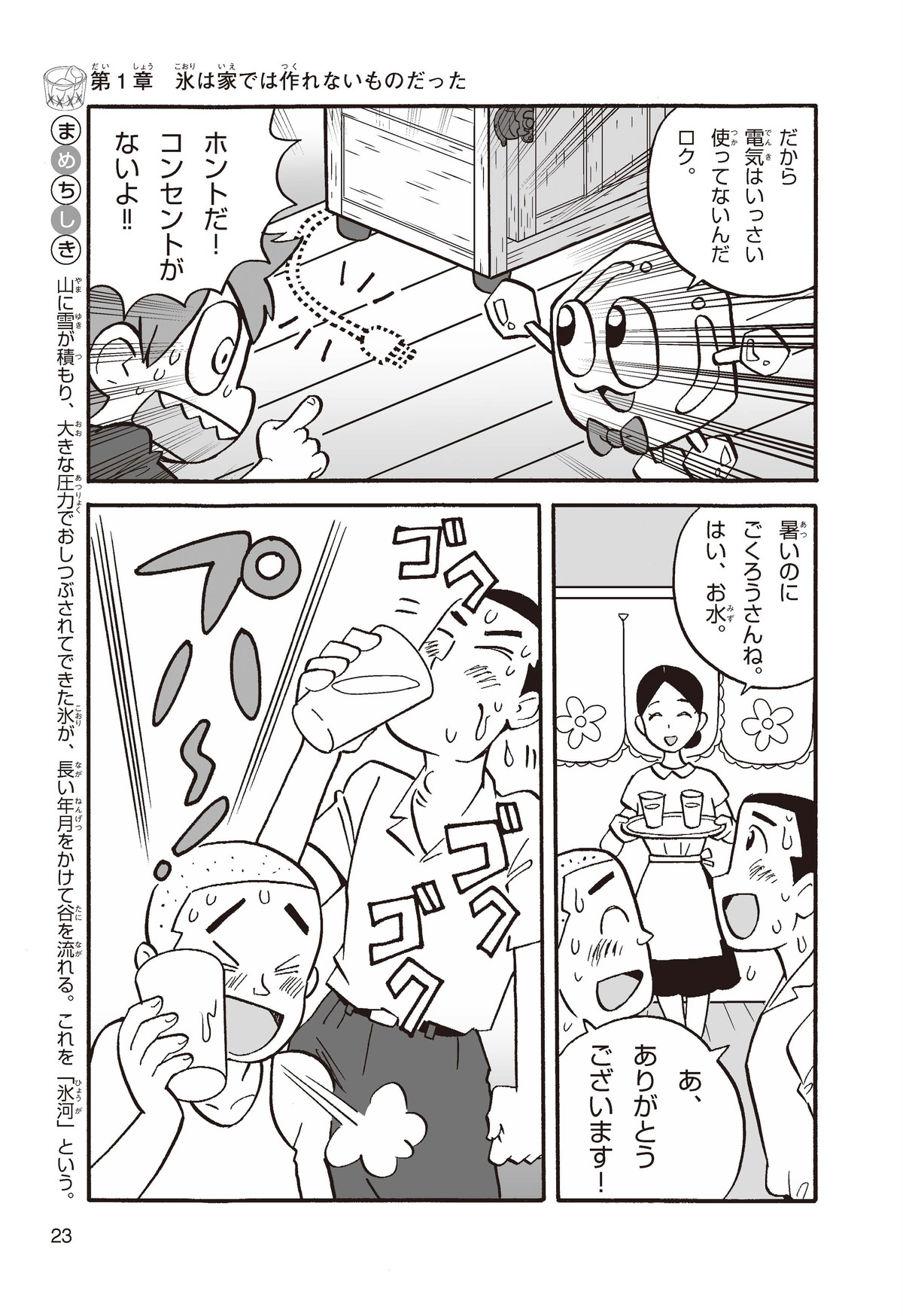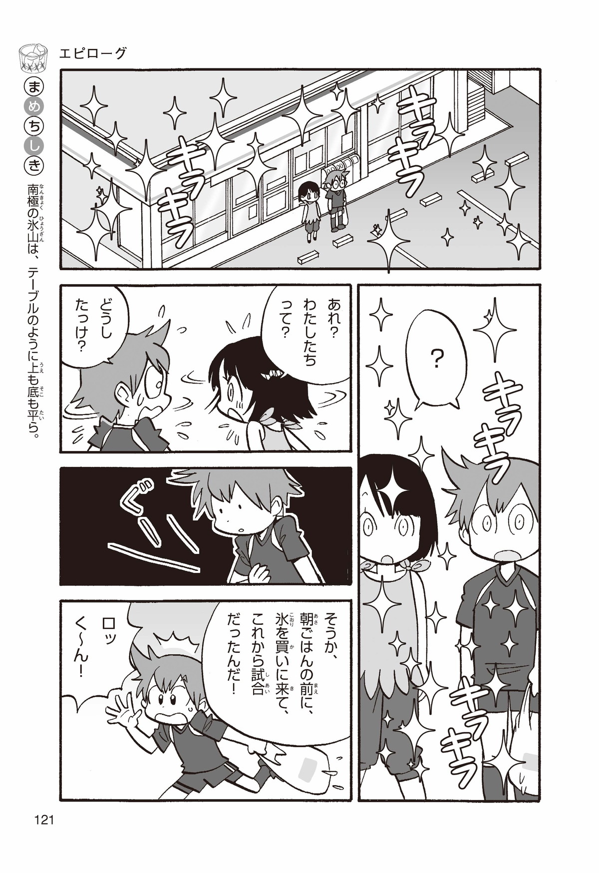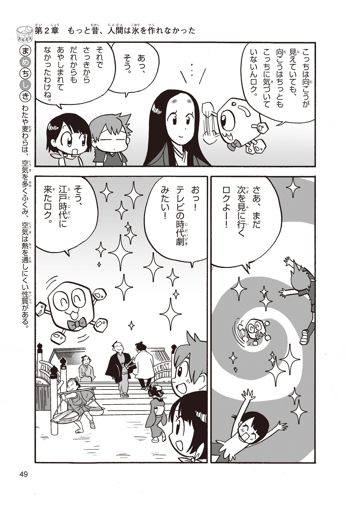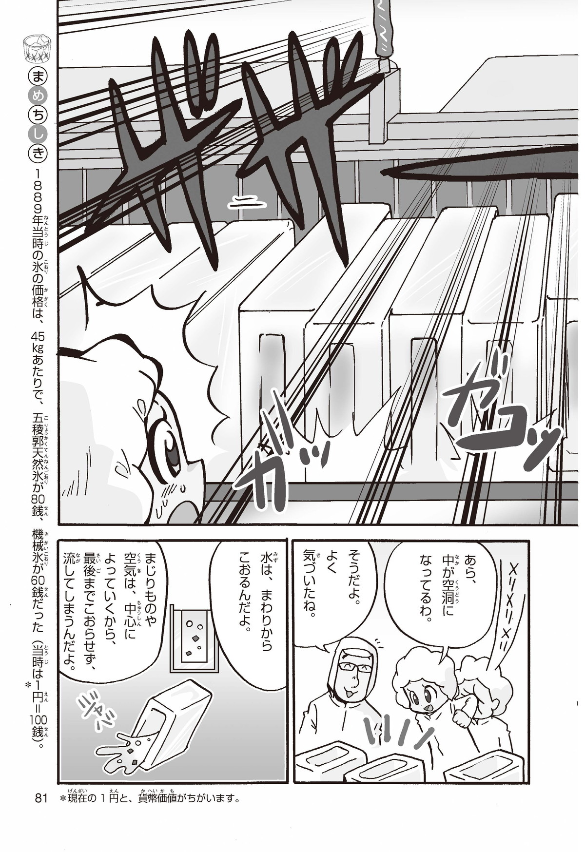 ぼくはコウタ。今日はこれからサッカーの試合! 冷たいドリンクを飲みたいから、氷をたくさん持っていこうと思ったんだけど、うっかり者のお母さんが作るのを忘(わす)れちゃったみたい。コンビニにも売っていると言われてさがしてみると、そこには透明(とうめい)でつやつやした氷があったよ! 光にあたってキラキラかがやいている氷はまるで宝石(ほうせき)みたい。うっとりながめていると、そこに妖精(ようせい)のロクが現(あらわ)れて……!?