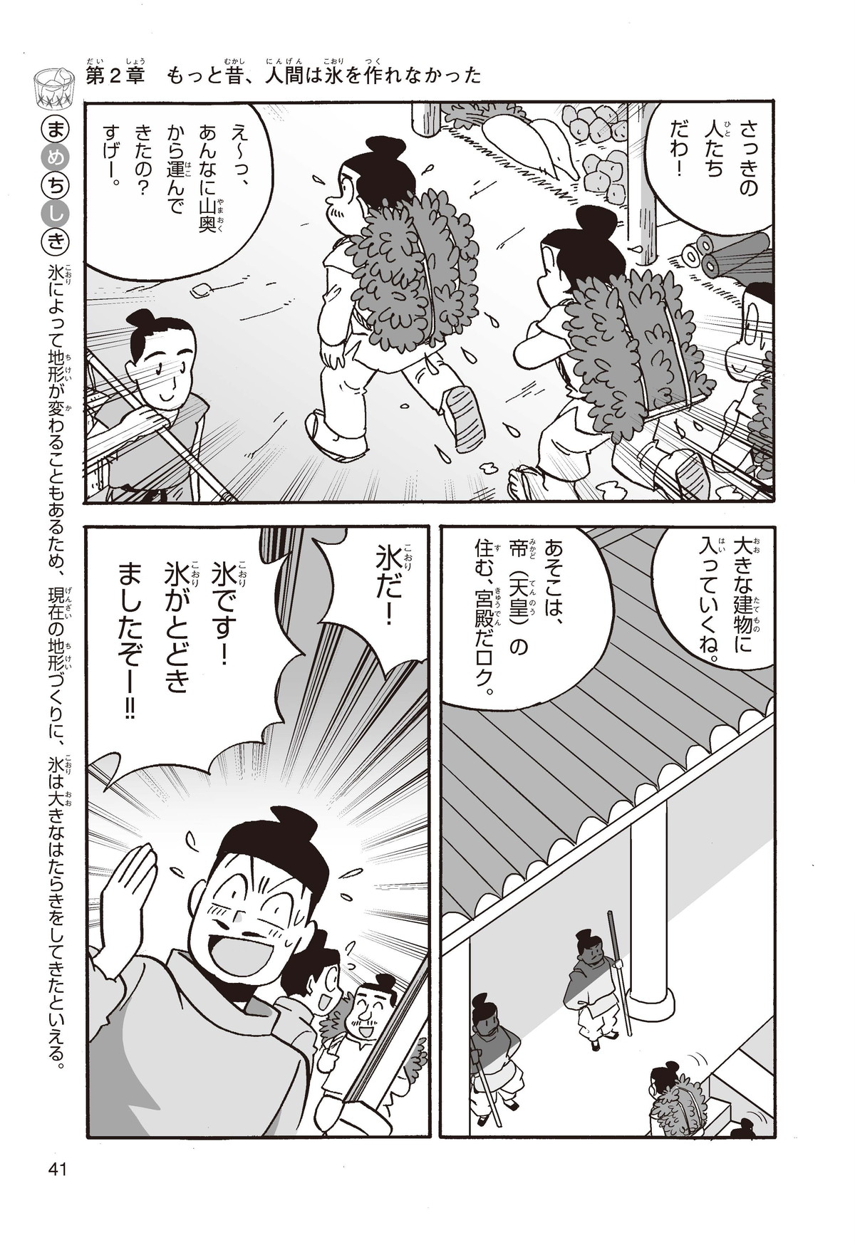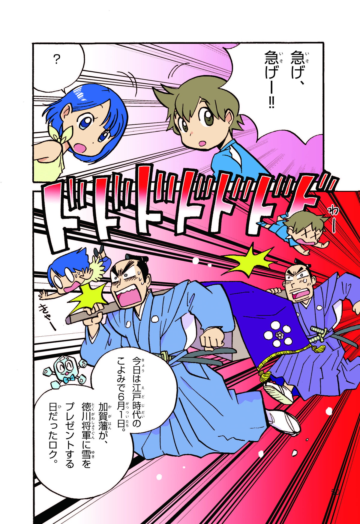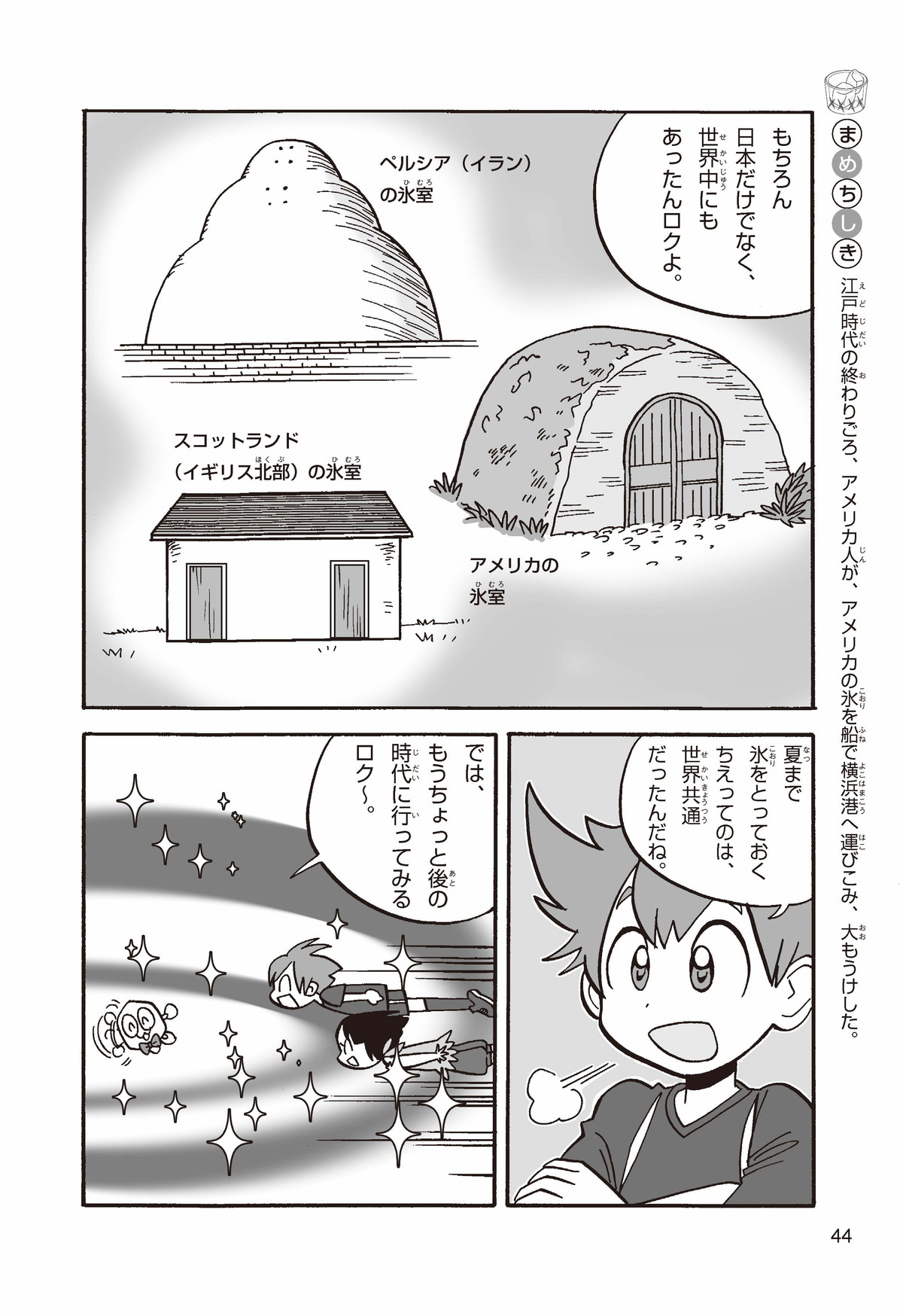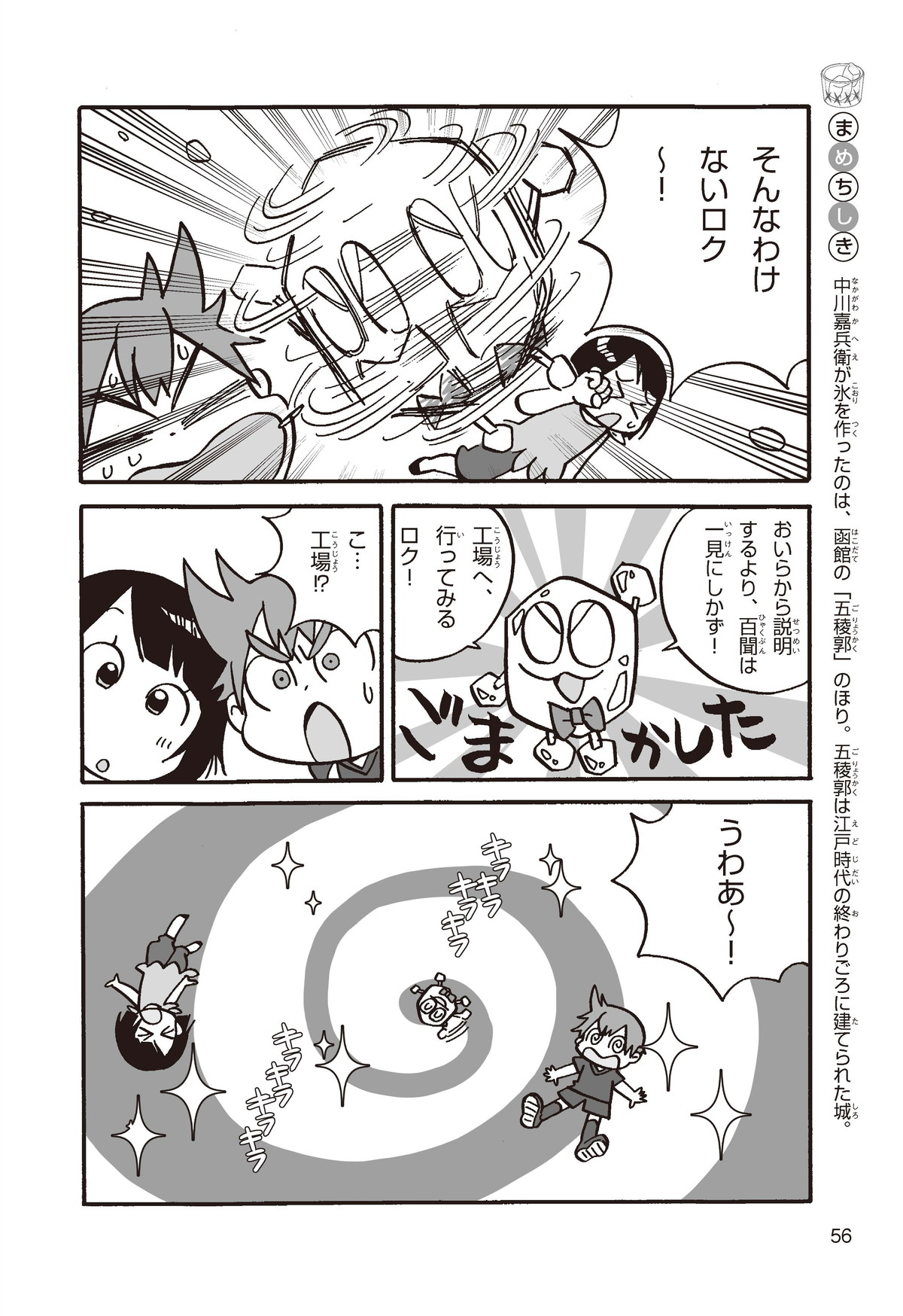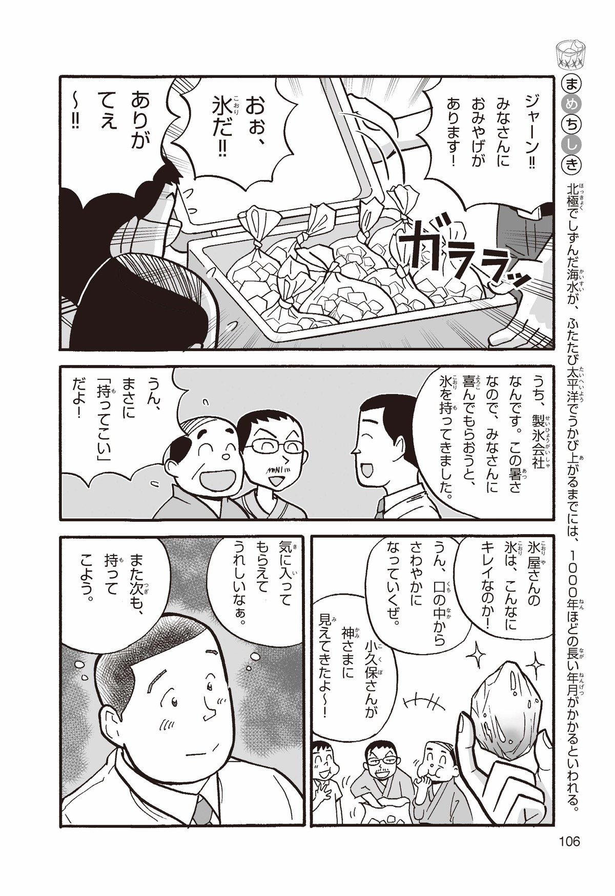 ぼくはコウタ。今日はこれからサッカーの試合! 冷たいドリンクを飲みたいから、氷をたくさん持っていこうと思ったんだけど、うっかり者のお母さんが作るのを忘(わす)れちゃったみたい。コンビニにも売っていると言われてさがしてみると、そこには透明(とうめい)でつやつやした氷があったよ! 光にあたってキラキラかがやいている氷はまるで宝石(ほうせき)みたい。うっとりながめていると、そこに妖精(ようせい)のロクが現(あらわ)れて……!?