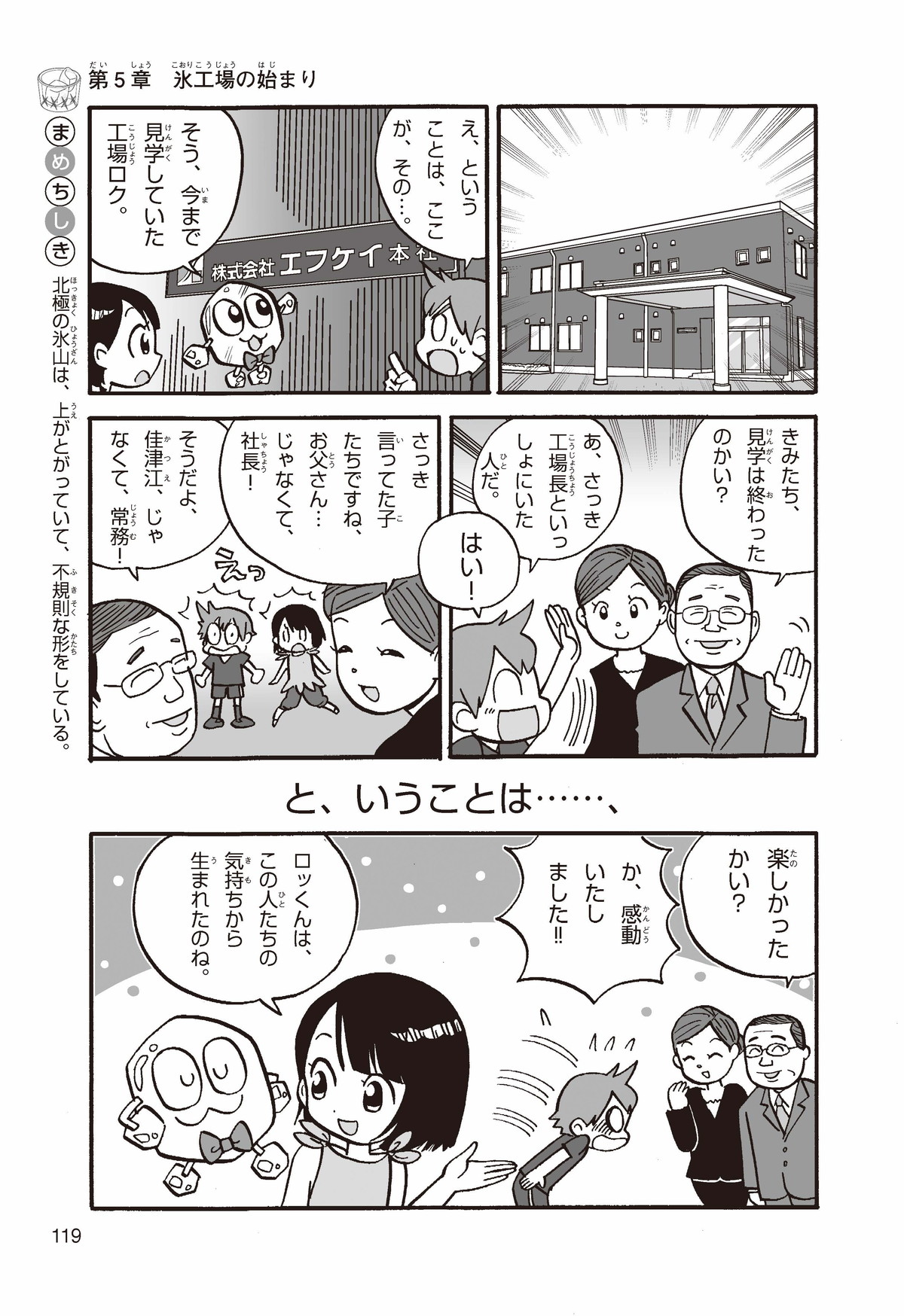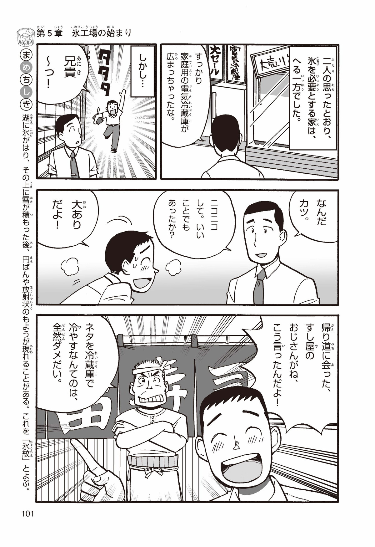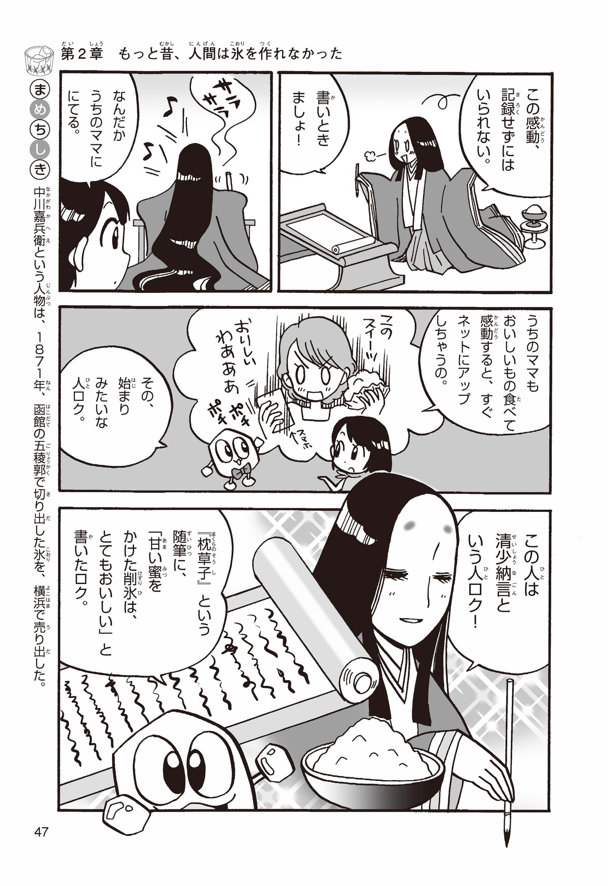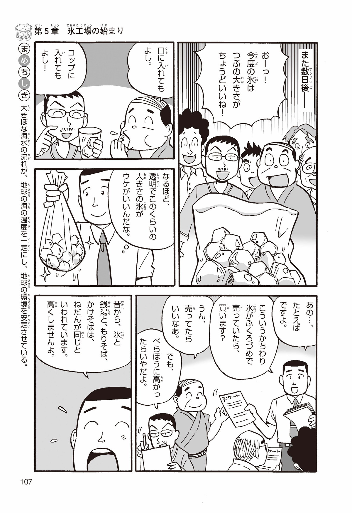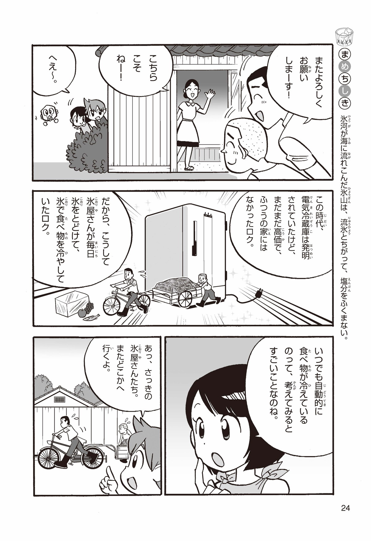 ぼくはコウタ。今日はこれからサッカーの試合! 冷たいドリンクを飲みたいから、氷をたくさん持っていこうと思ったんだけど、うっかり者のお母さんが作るのを忘(わす)れちゃったみたい。コンビニにも売っていると言われてさがしてみると、そこには透明(とうめい)でつやつやした氷があったよ! 光にあたってキラキラかがやいている氷はまるで宝石(ほうせき)みたい。うっとりながめていると、そこに妖精(ようせい)のロクが現(あらわ)れて……!?