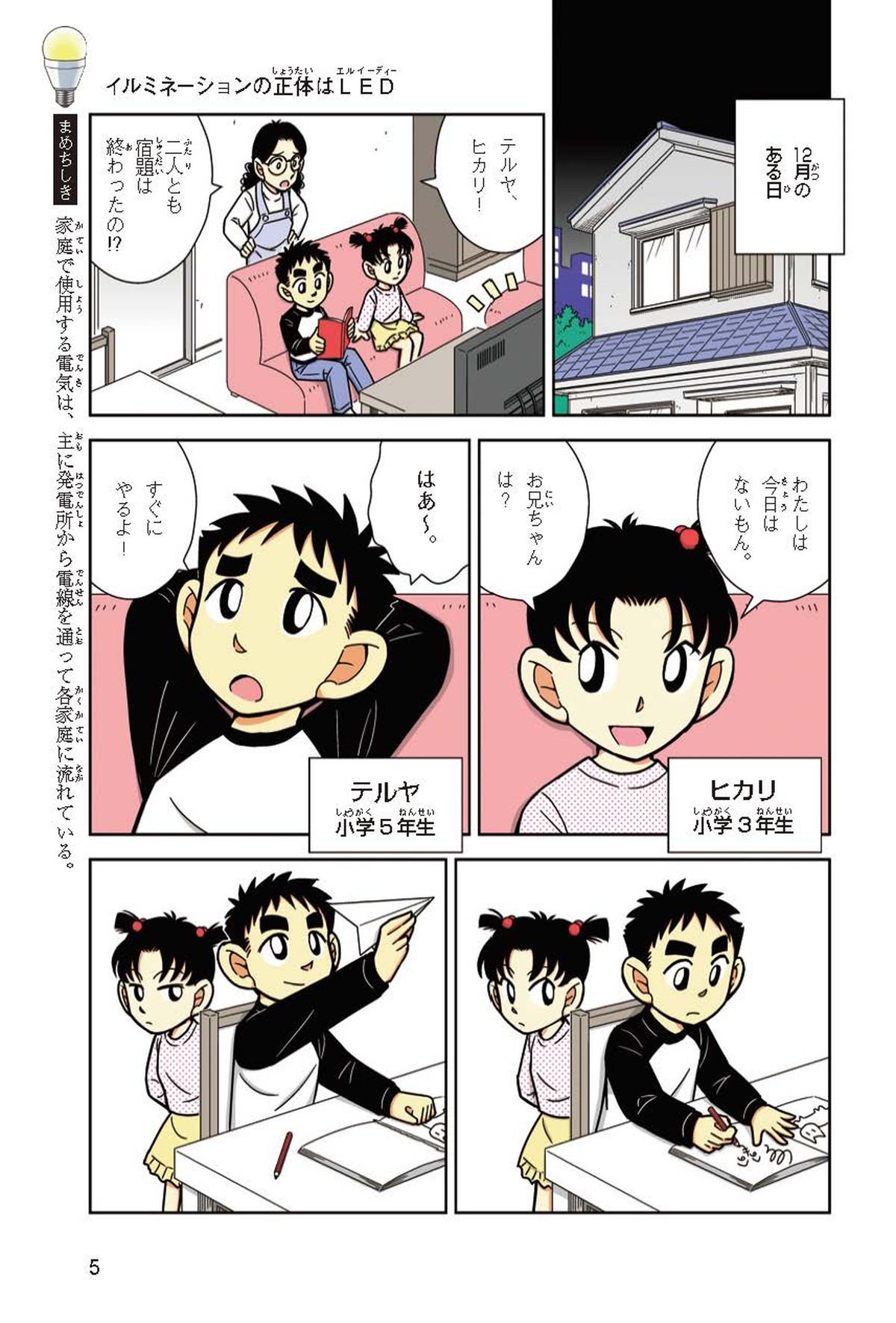 小学校5年生のテルヤは、12月のある日、同級生のホノカちゃん家がLEDのイルミネーションで飾られているのを見たよ。
