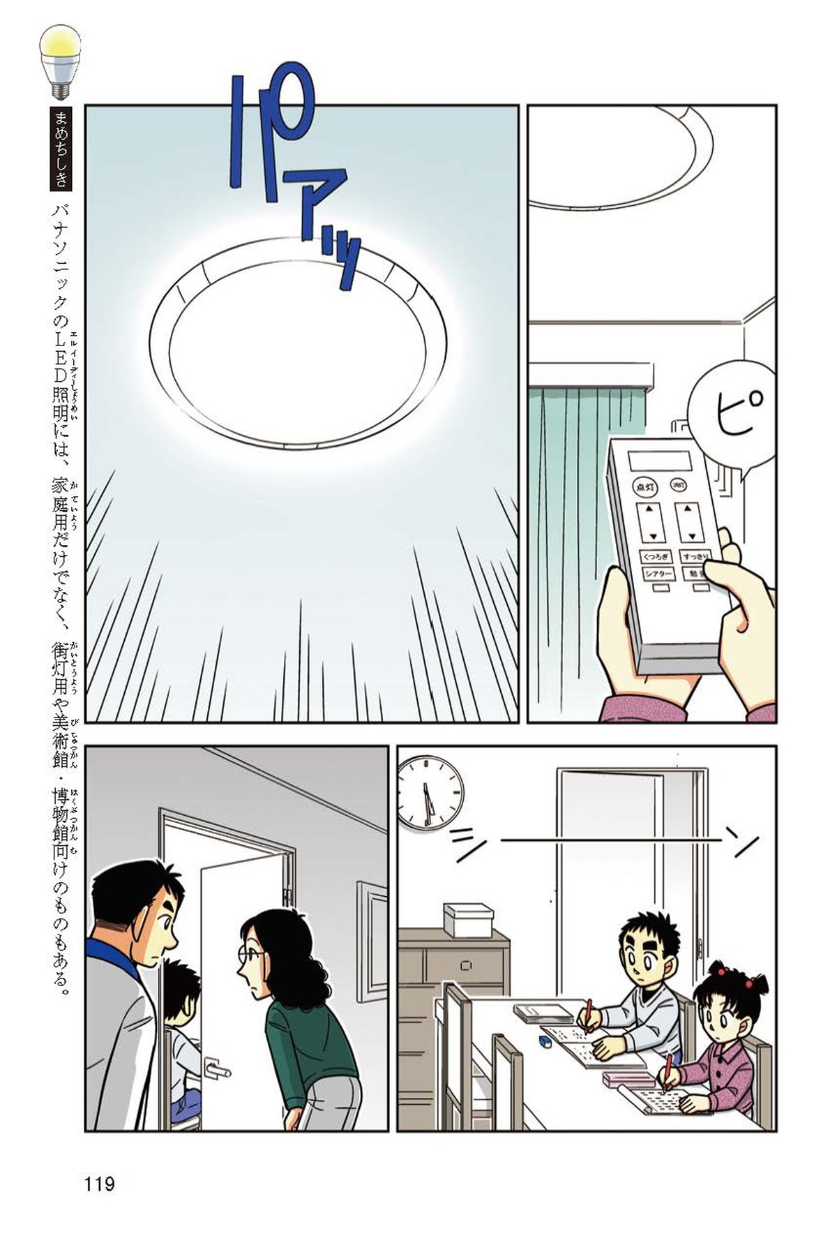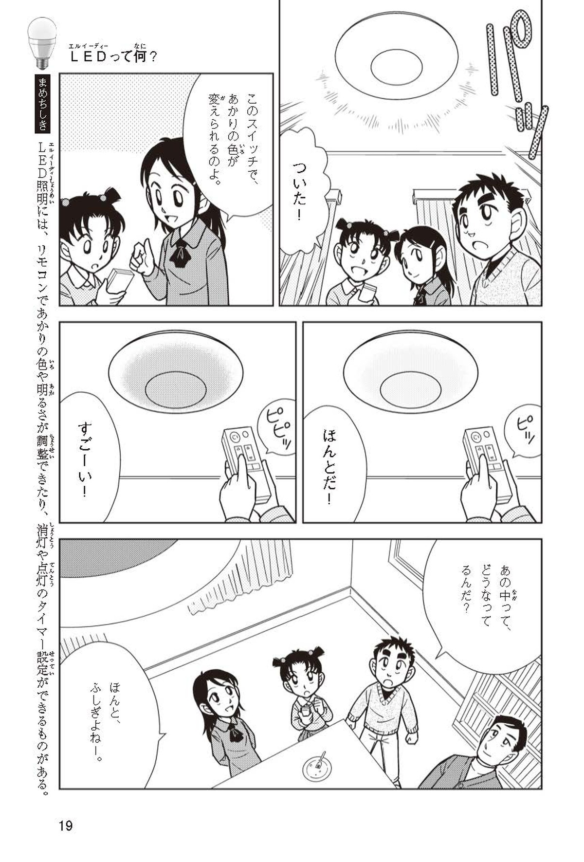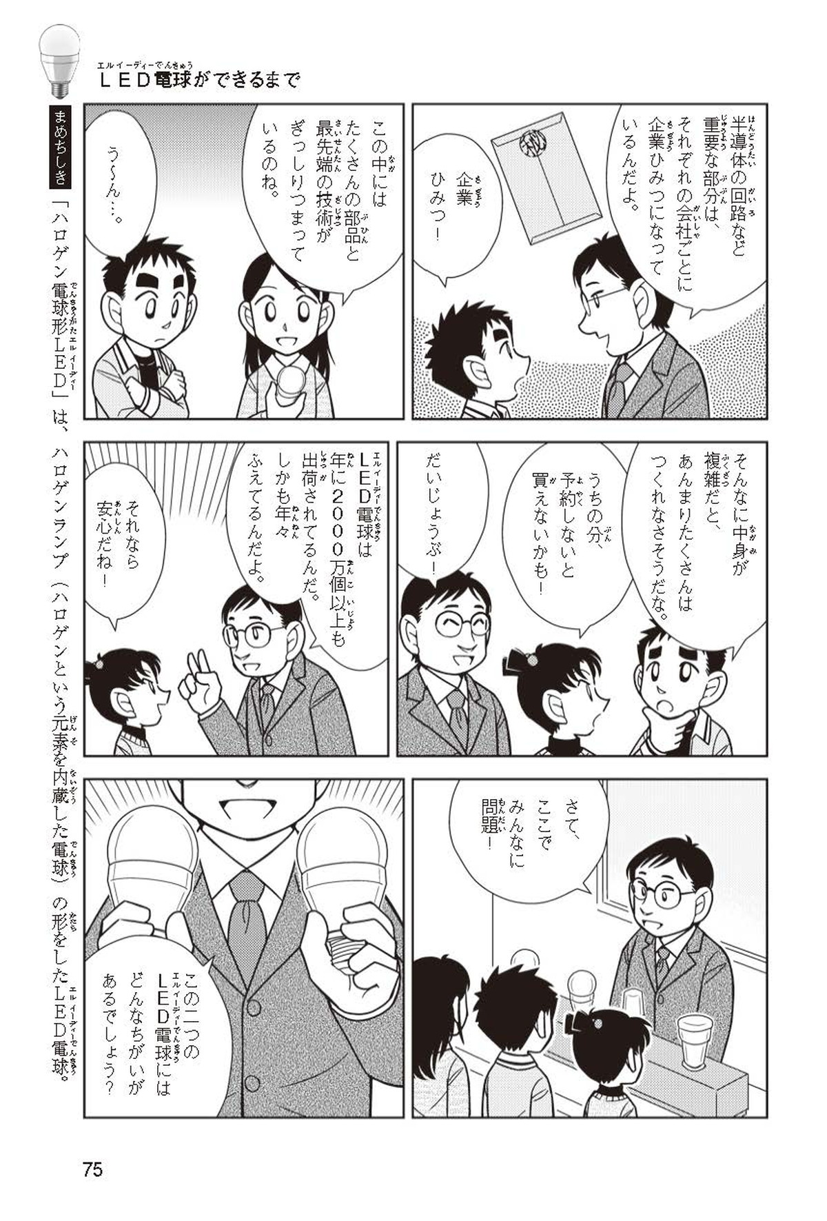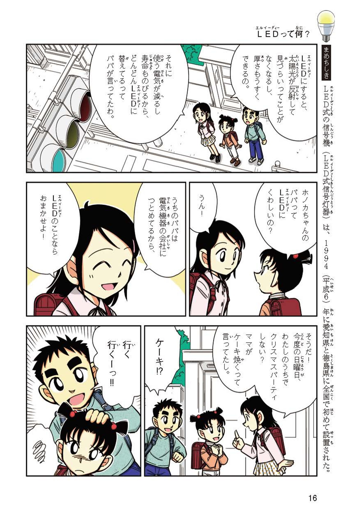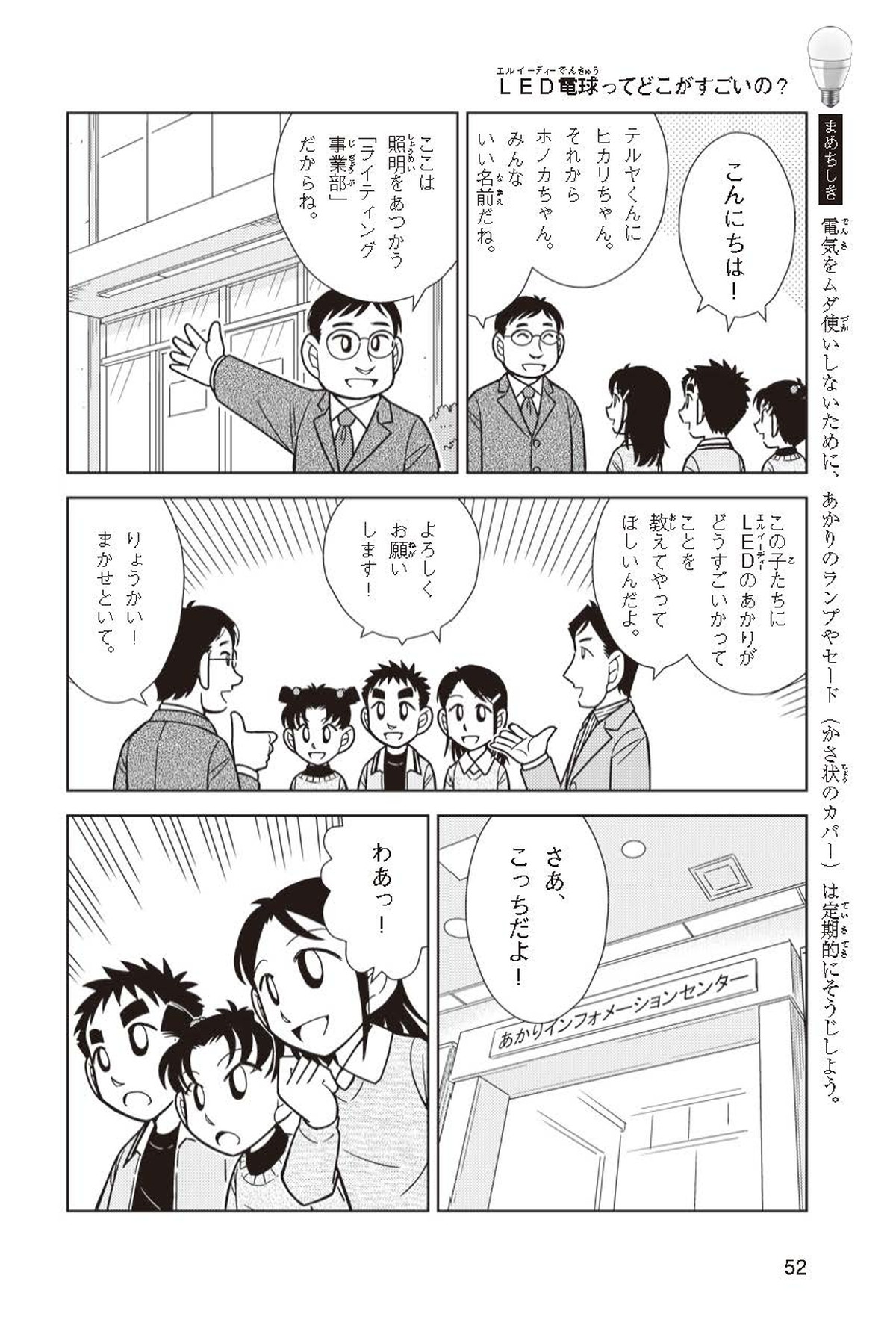 ホノカちゃんのお父さんの会社は、LEDのあかりををつくっていて、見学させてくれることになったよ。