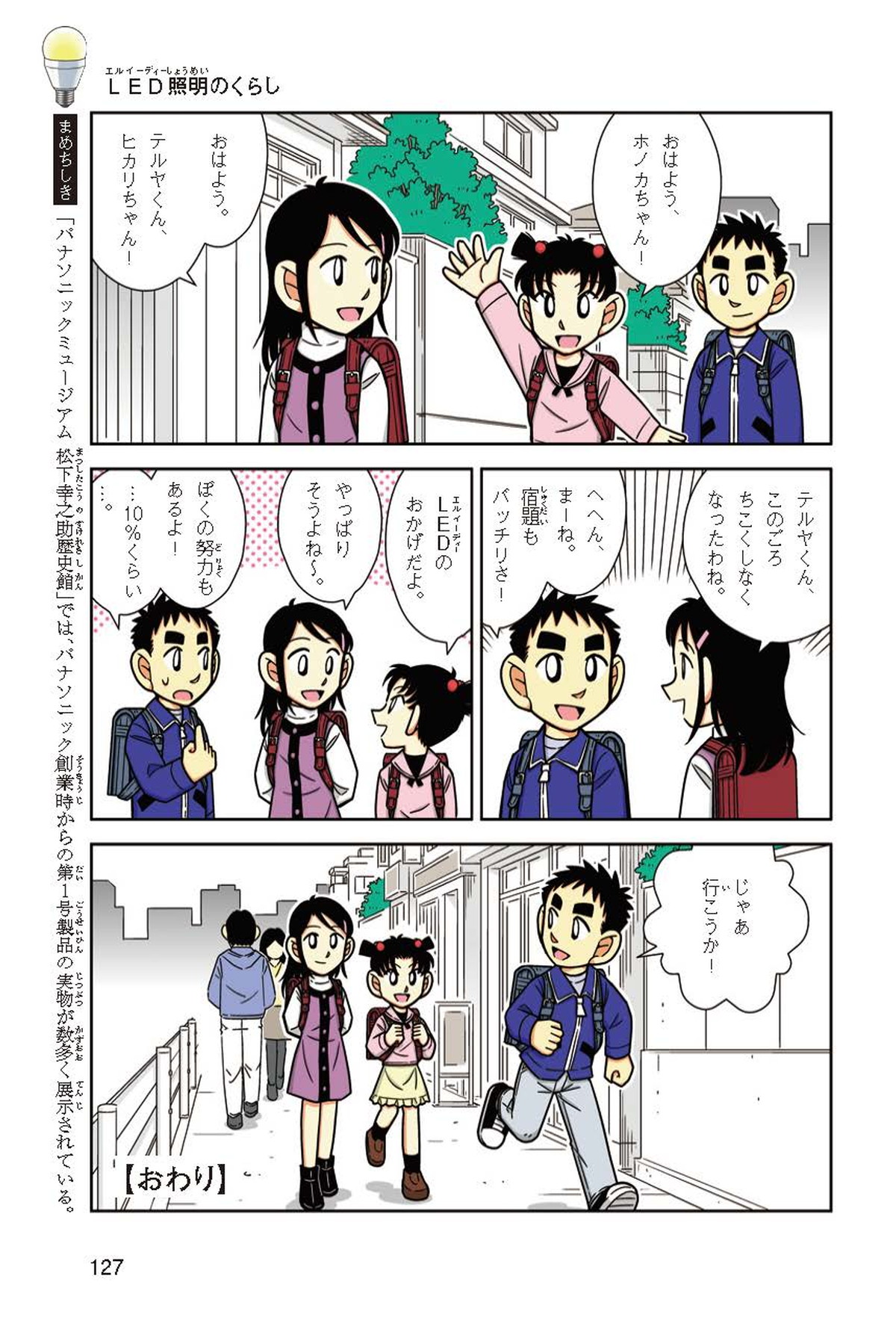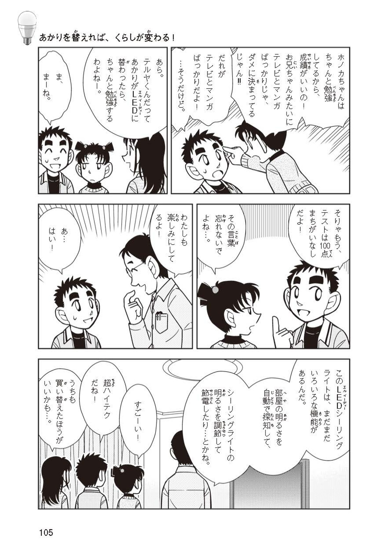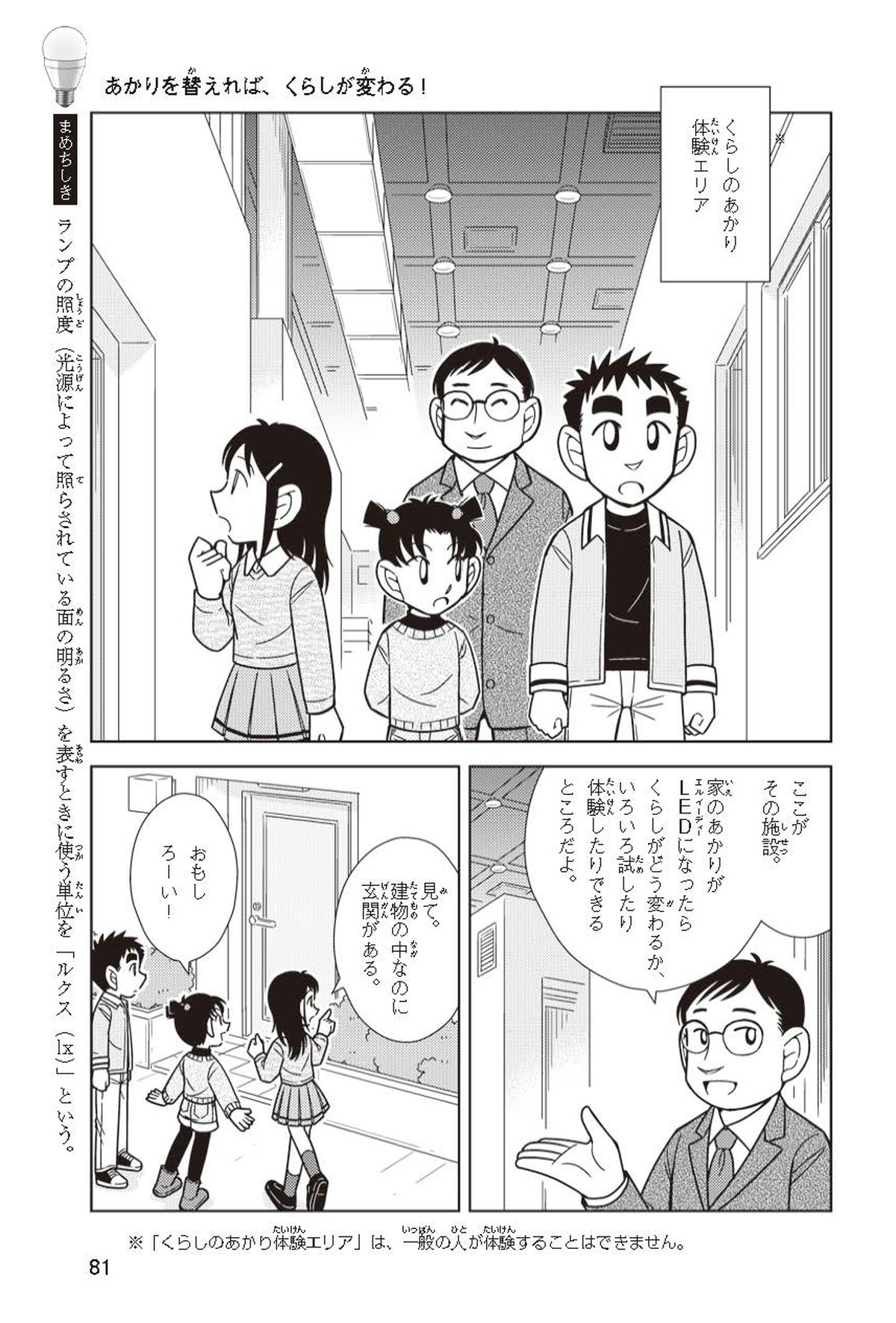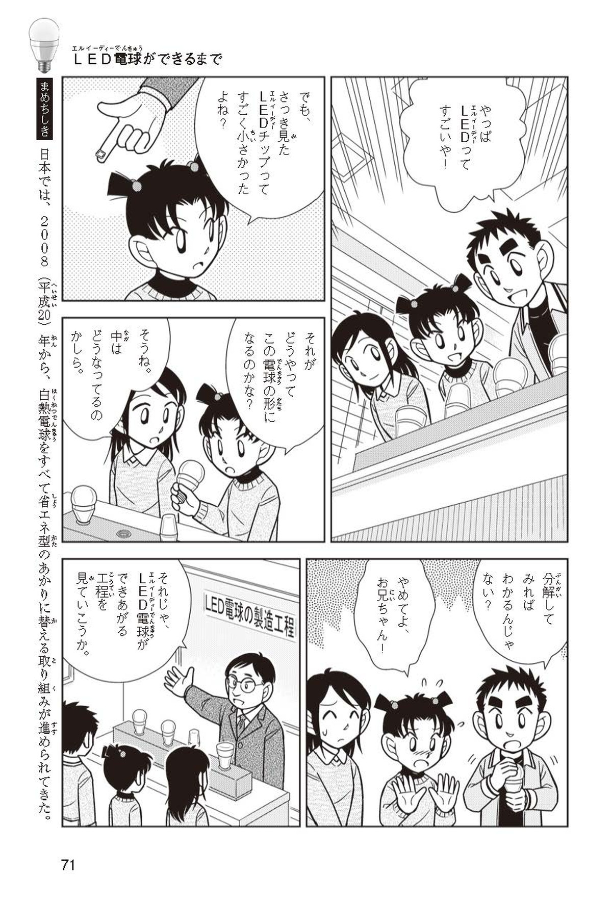 ホノカちゃんのお父さんの会社は、LEDのあかりををつくっていて、見学させてくれることになったよ。