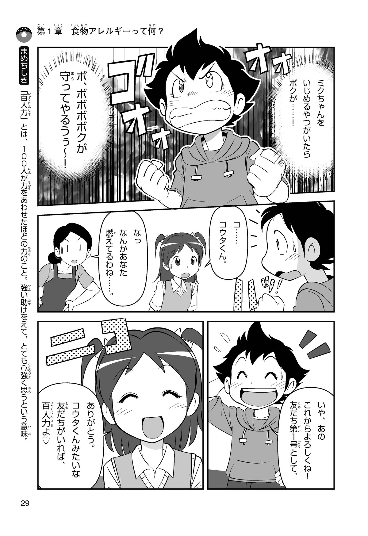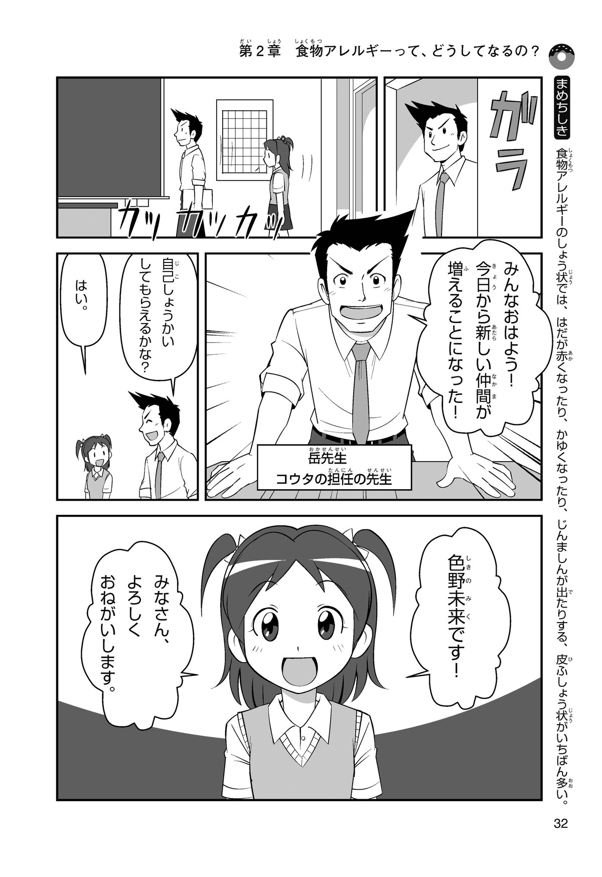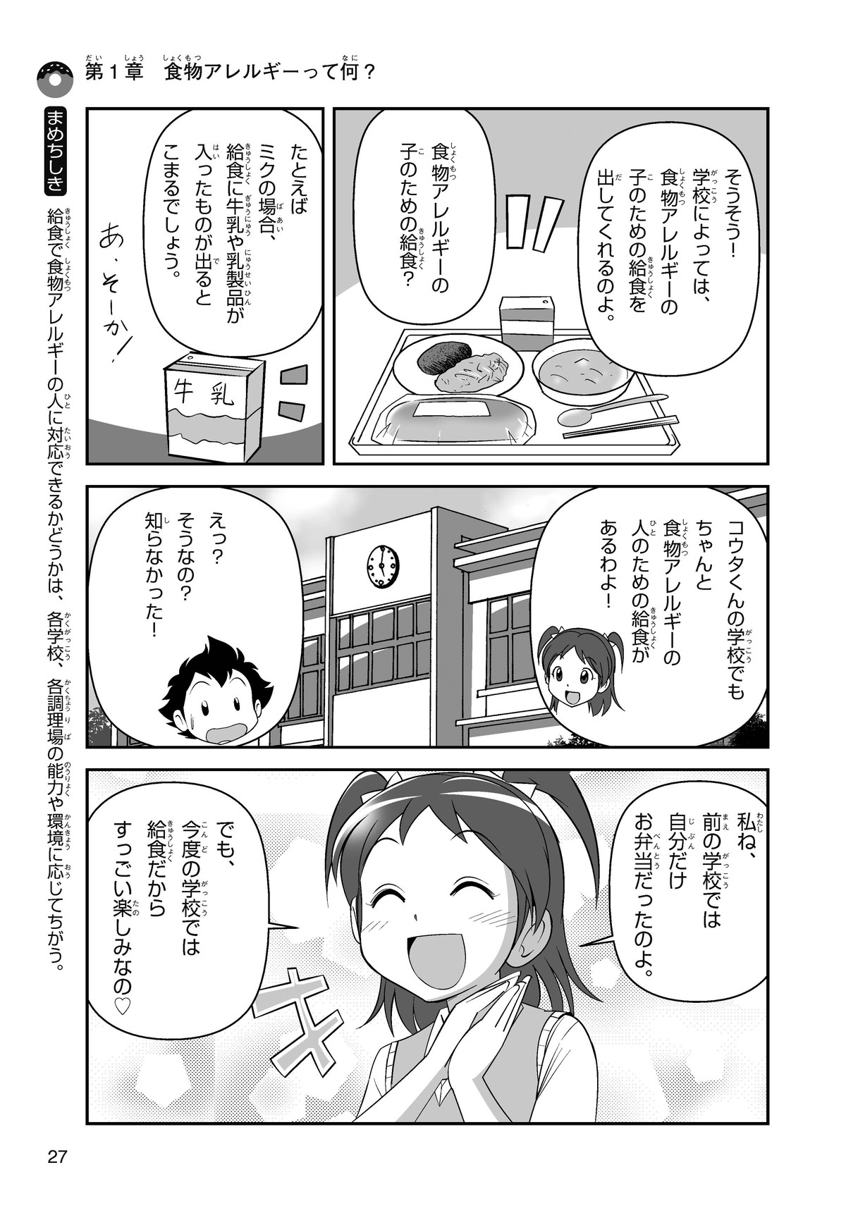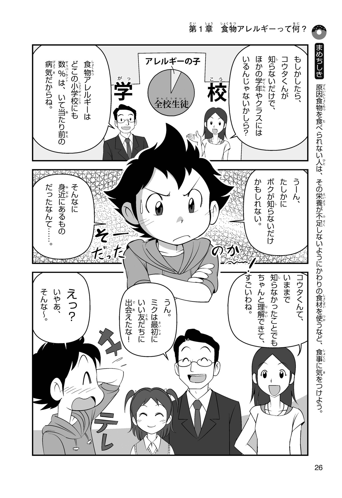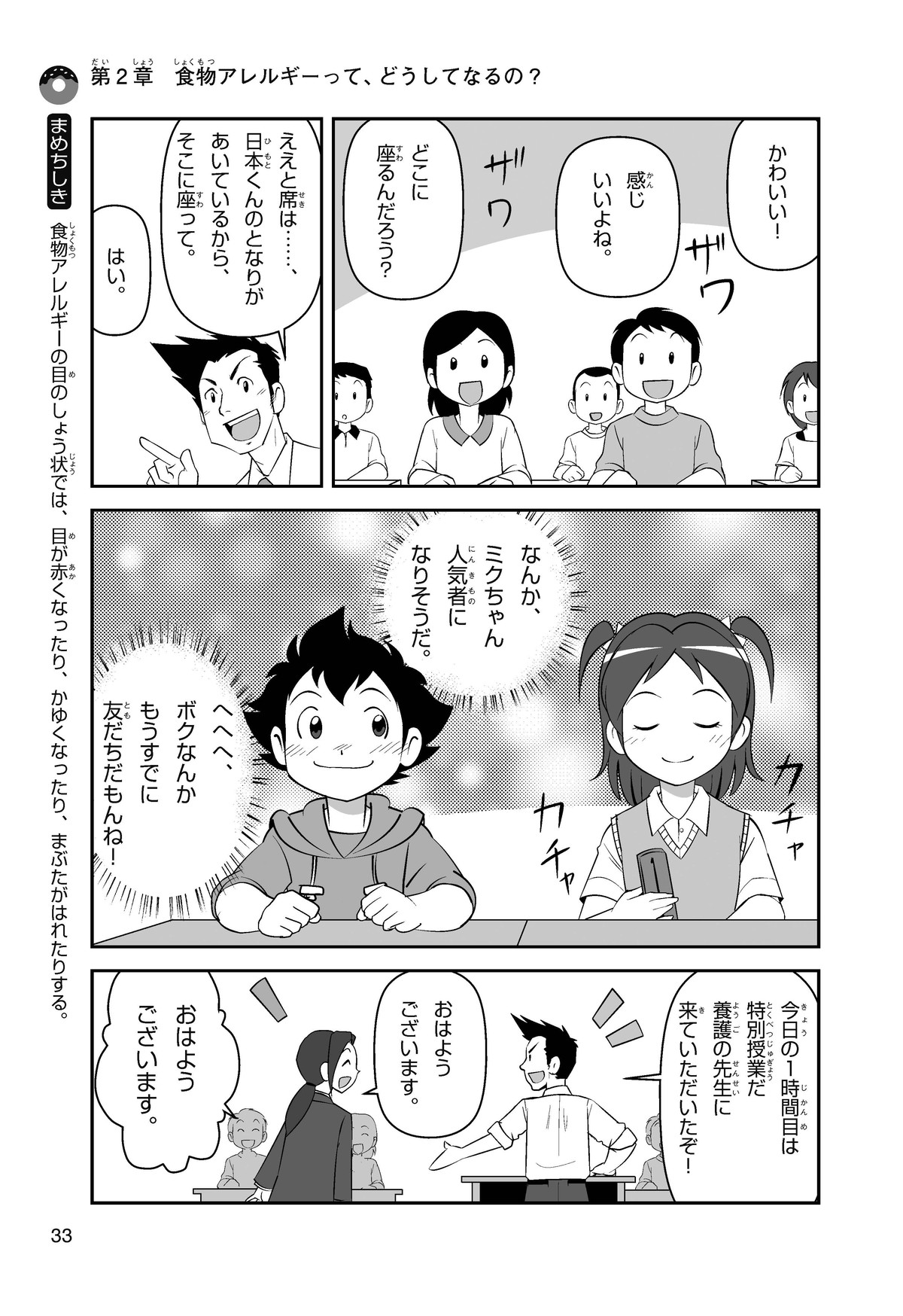 ぼくは小学5年生のコウタ。近所にとってもかわいい女の子、ミクちゃんが引っ越(こ)してきた。いっしょにケーキを食べようとしたら、ミクちゃんはぼくにケーキをくれるって言うんだ。食物アレルギーだから食べられないみたい。ミクちゃんは牛乳(ぎゅうにゅう)のアレルギーって言ってたけれど、なんでケーキが食べられないのかな? 食物アレルギーって一体なんだろう?