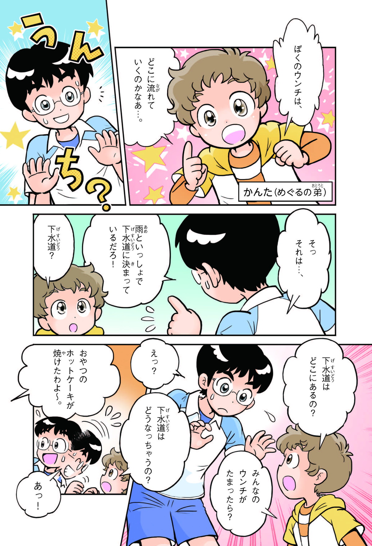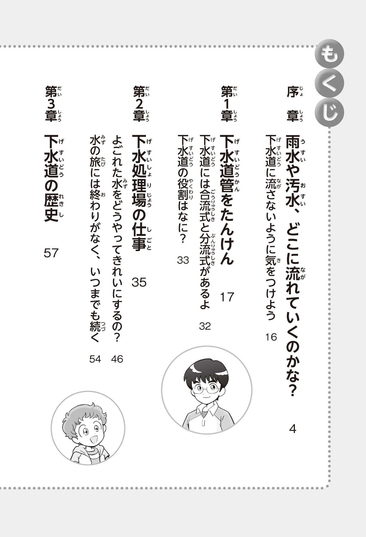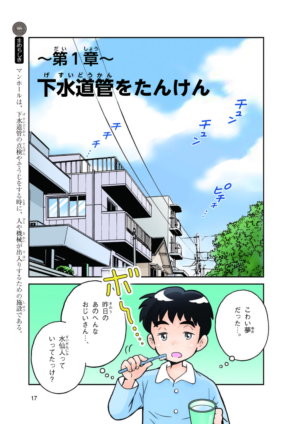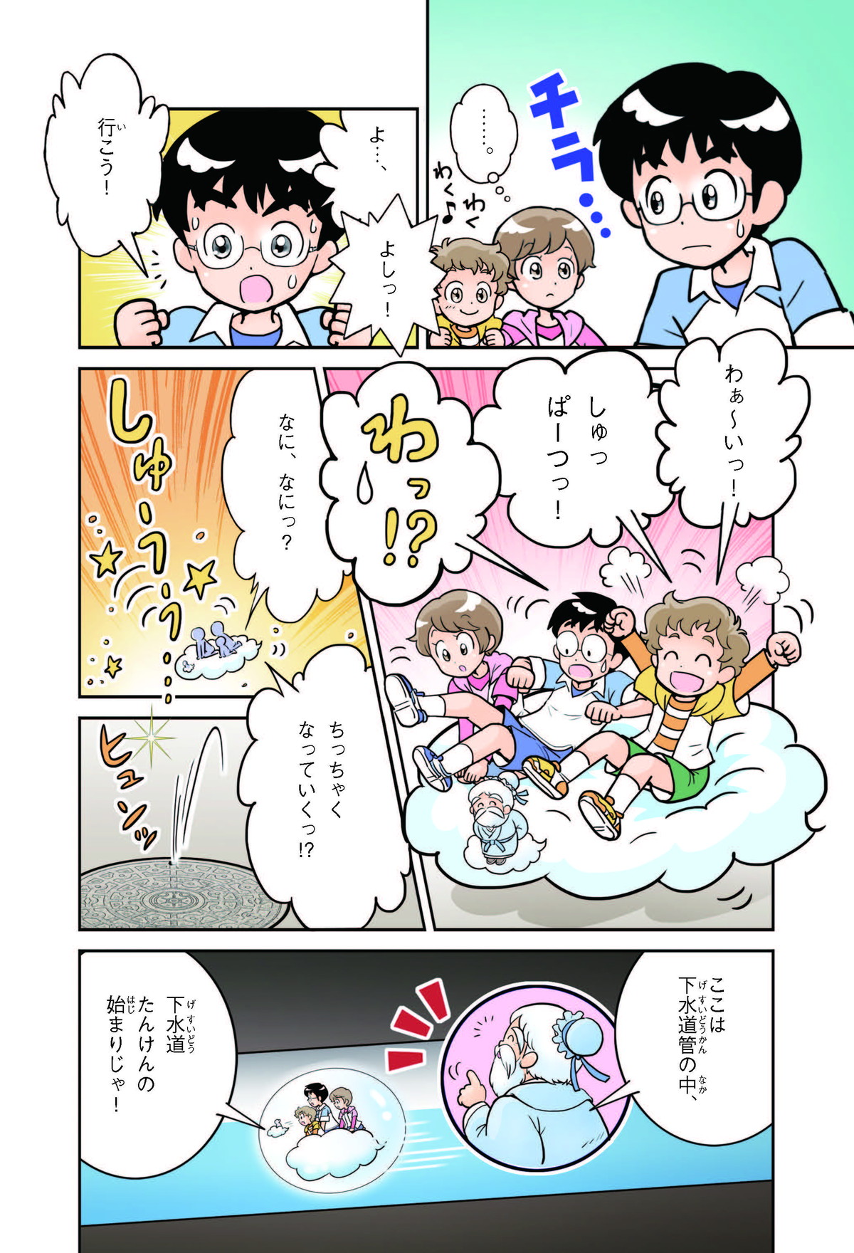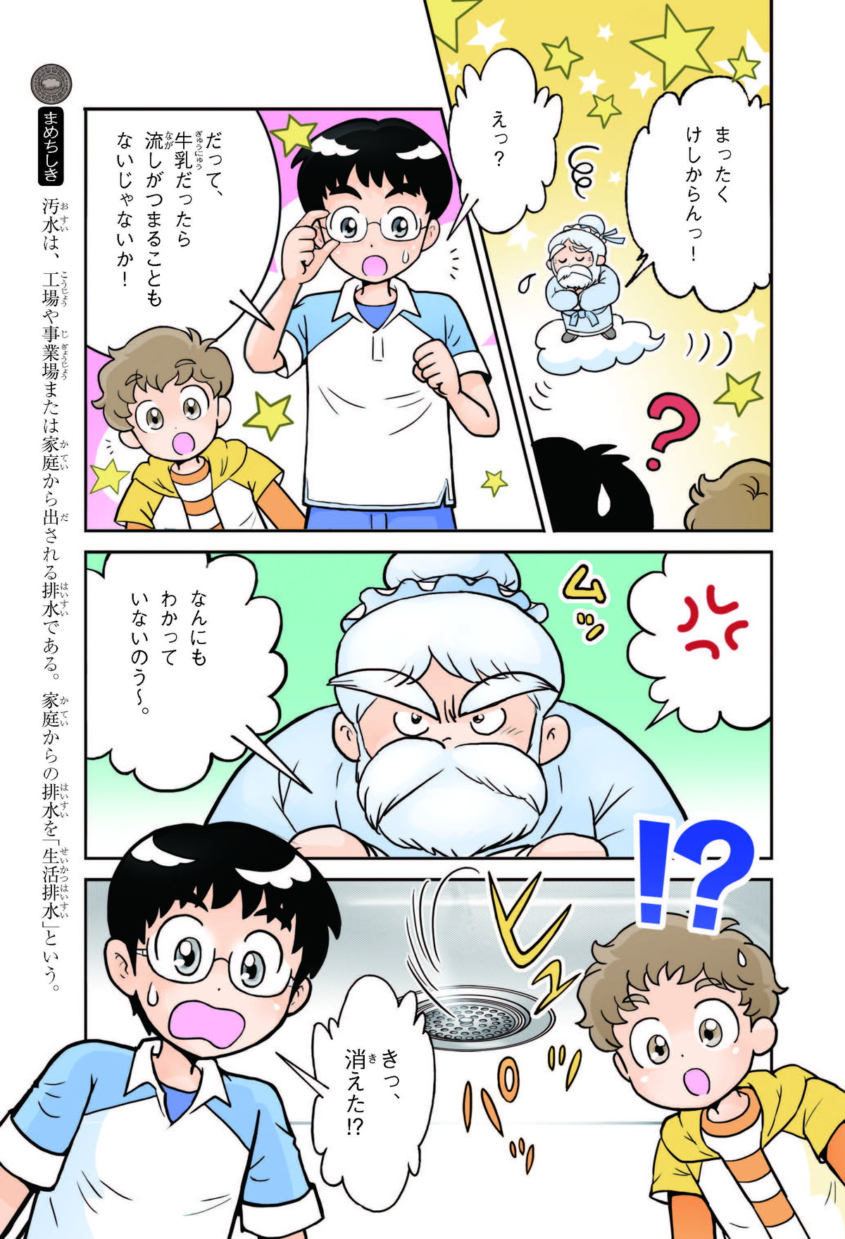 僕はめぐる、小学4年生。ある日、きらいな牛乳を台所の流しに捨てようとすると、排水溝から声が……!「コップ1杯の牛乳をきれいな水にもどすにはどれだけの水が必要か知っておるのか?」だって。驚いていると、排水溝から声の主、下水道の水仙人が飛び出してきた。牛乳を流してもつまらないのに、なんで捨てちゃダメなのかな?排水溝の奥は一体どうなっているんだろう?