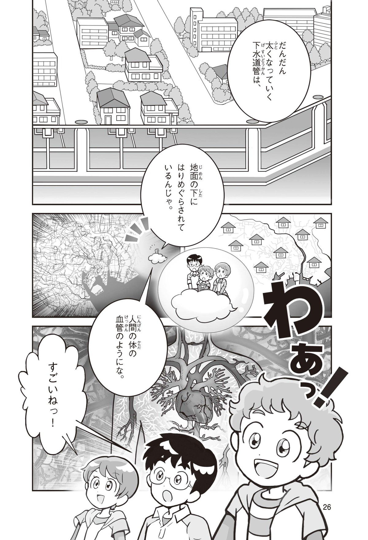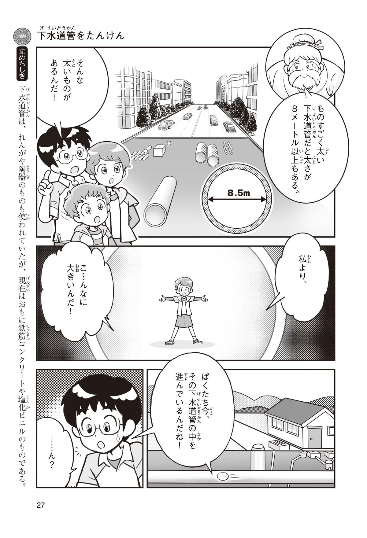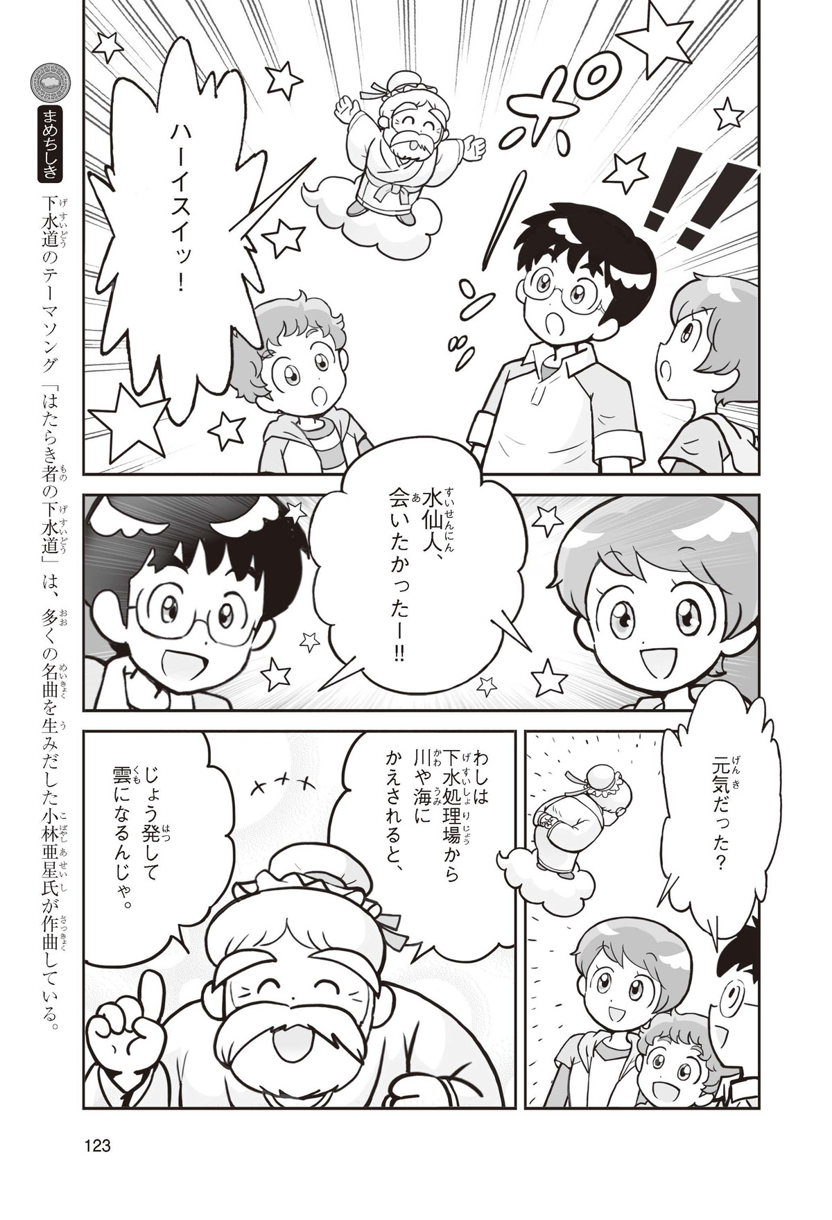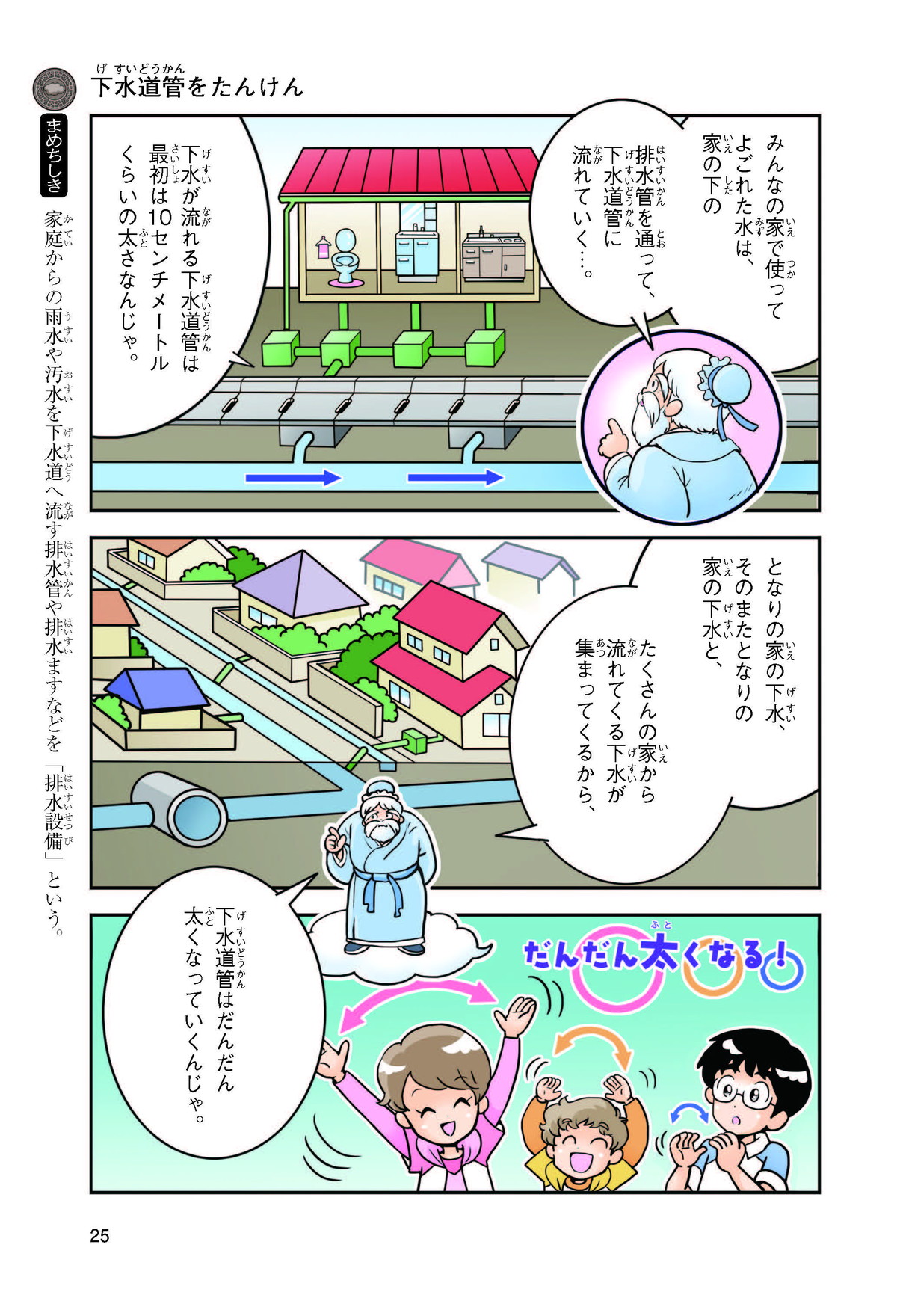 僕はめぐる、小学4年生。ある日、きらいな牛乳を台所の流しに捨てようとすると、排水溝から声が……!「コップ1杯の牛乳をきれいな水にもどすにはどれだけの水が必要か知っておるのか?」だって。驚いていると、排水溝から声の主、下水道の水仙人が飛び出してきた。牛乳を流してもつまらないのに、なんで捨てちゃダメなのかな?排水溝の奥は一体どうなっているんだろう?