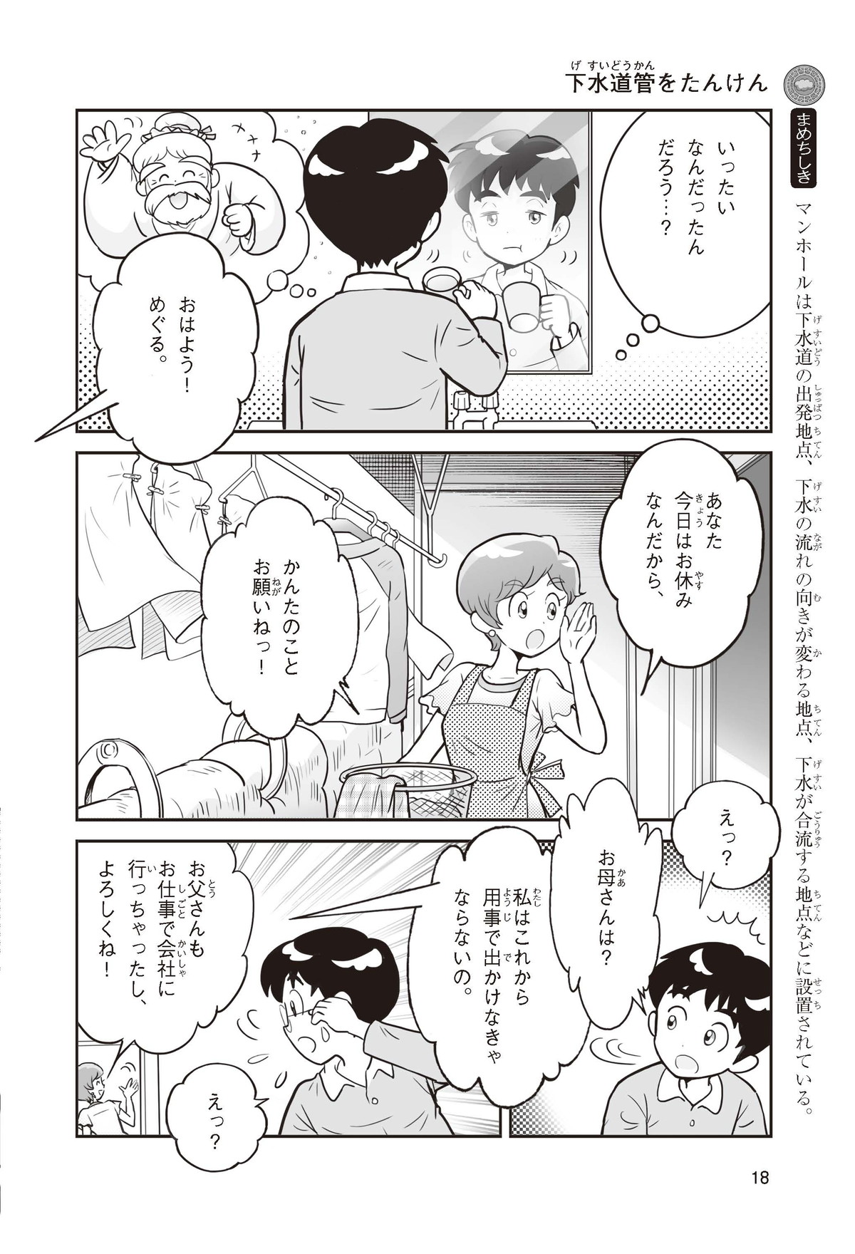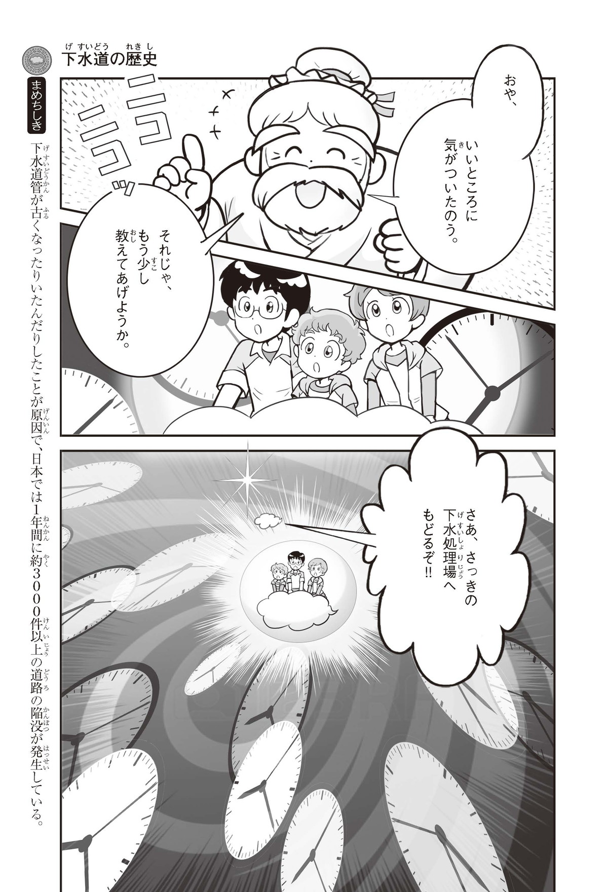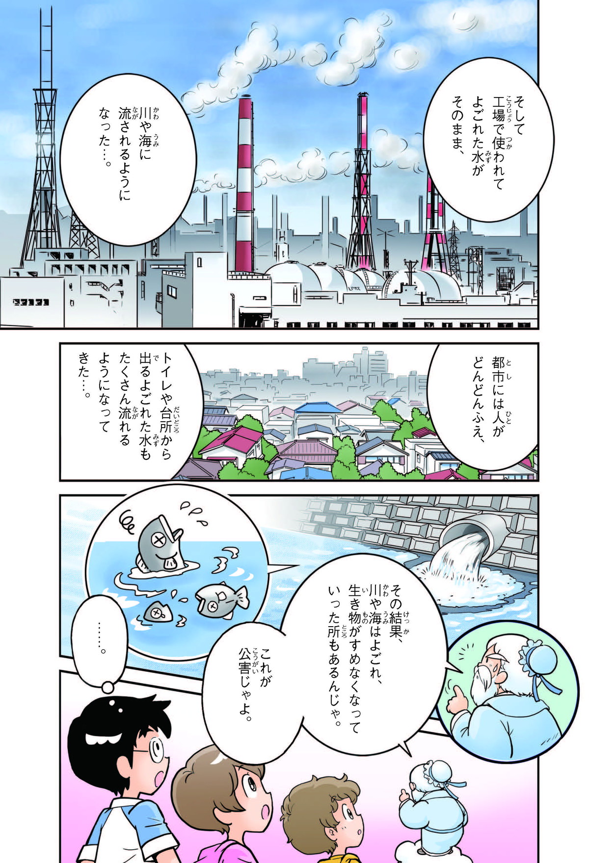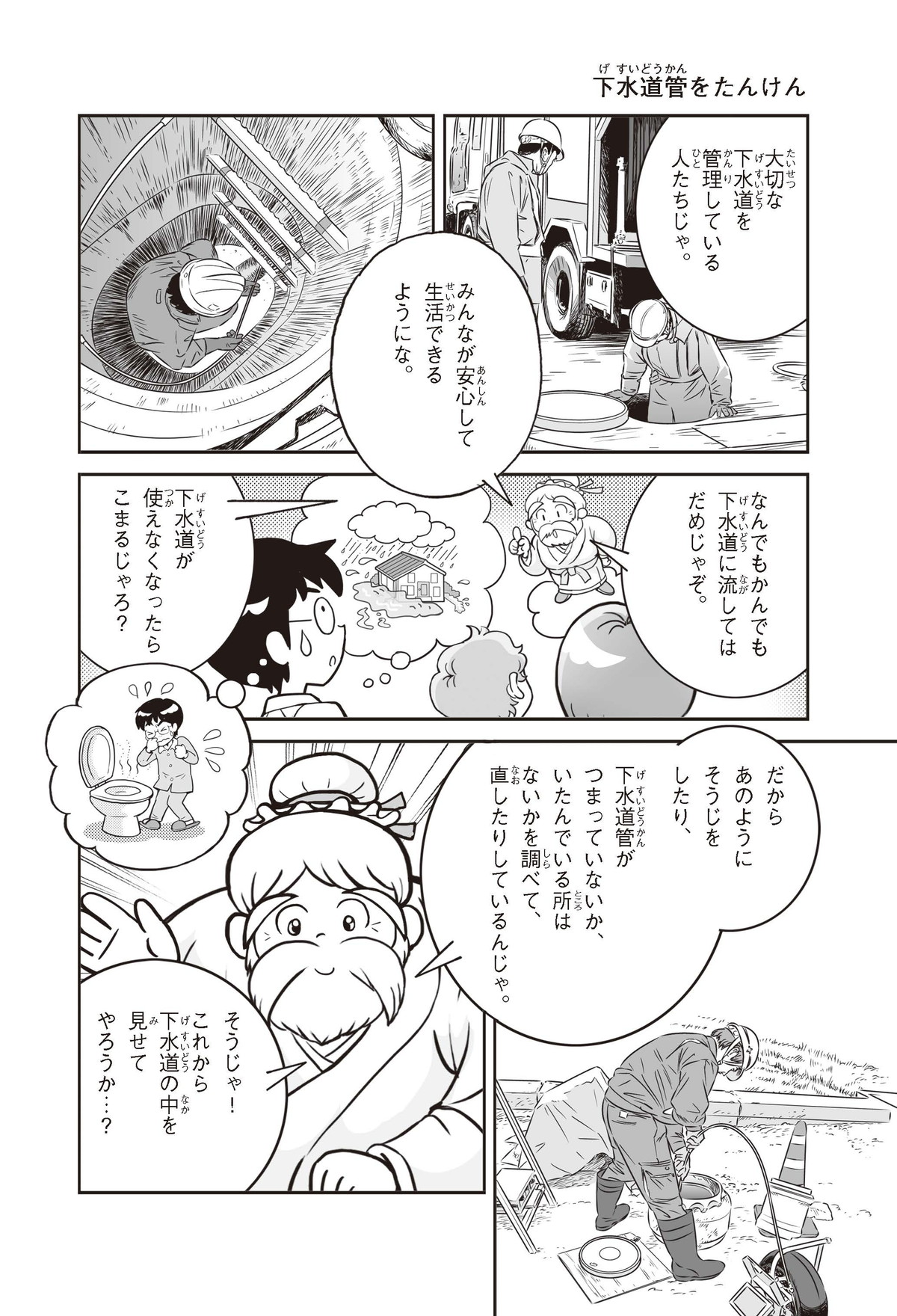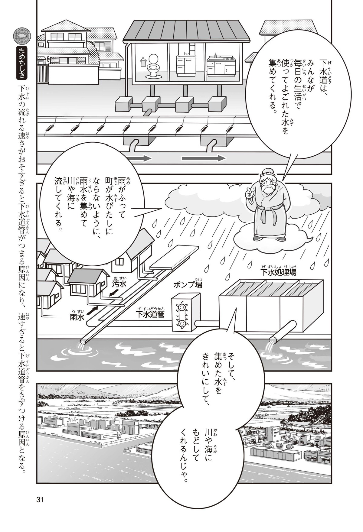 僕はめぐる、小学4年生。ある日、きらいな牛乳を台所の流しに捨てようとすると、排水溝から声が……!「コップ1杯の牛乳をきれいな水にもどすにはどれだけの水が必要か知っておるのか?」だって。驚いていると、排水溝から声の主、下水道の水仙人が飛び出してきた。牛乳を流してもつまらないのに、なんで捨てちゃダメなのかな?排水溝の奥は一体どうなっているんだろう?