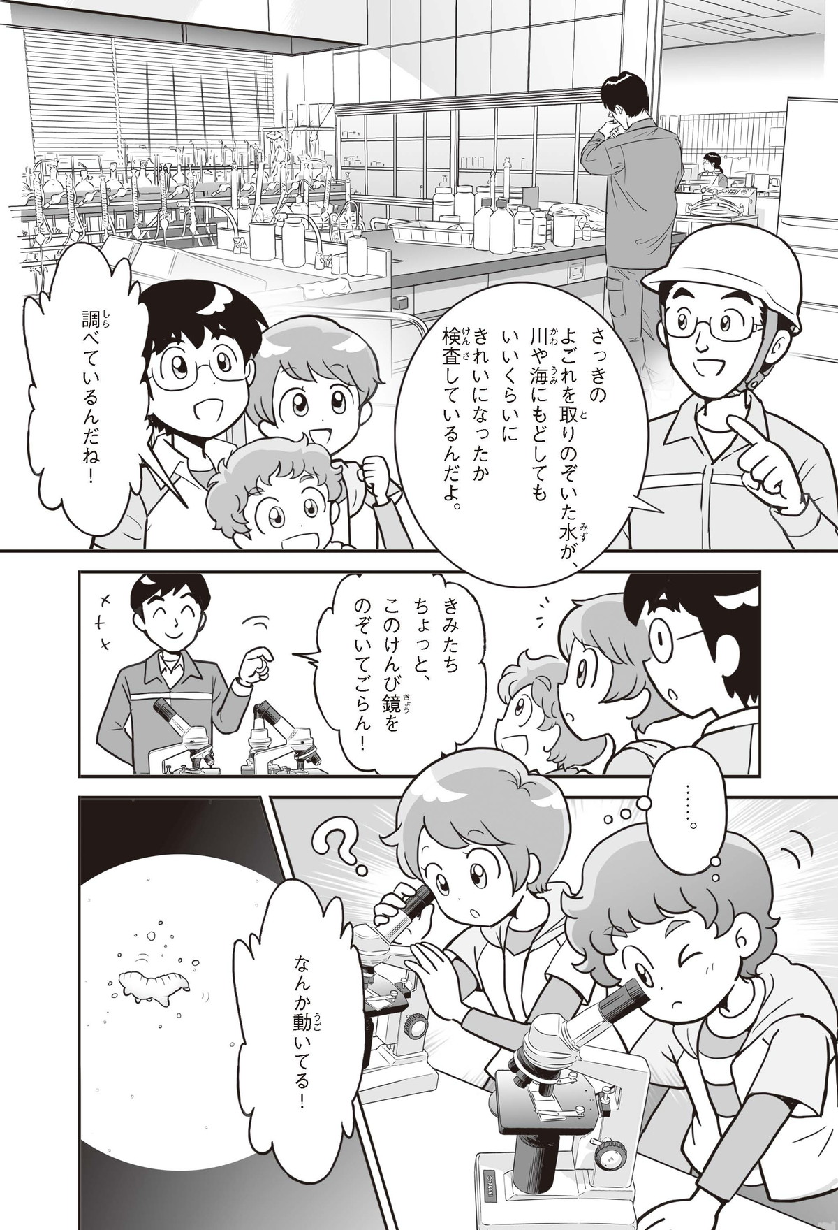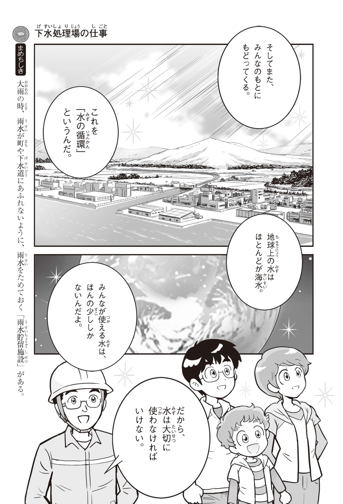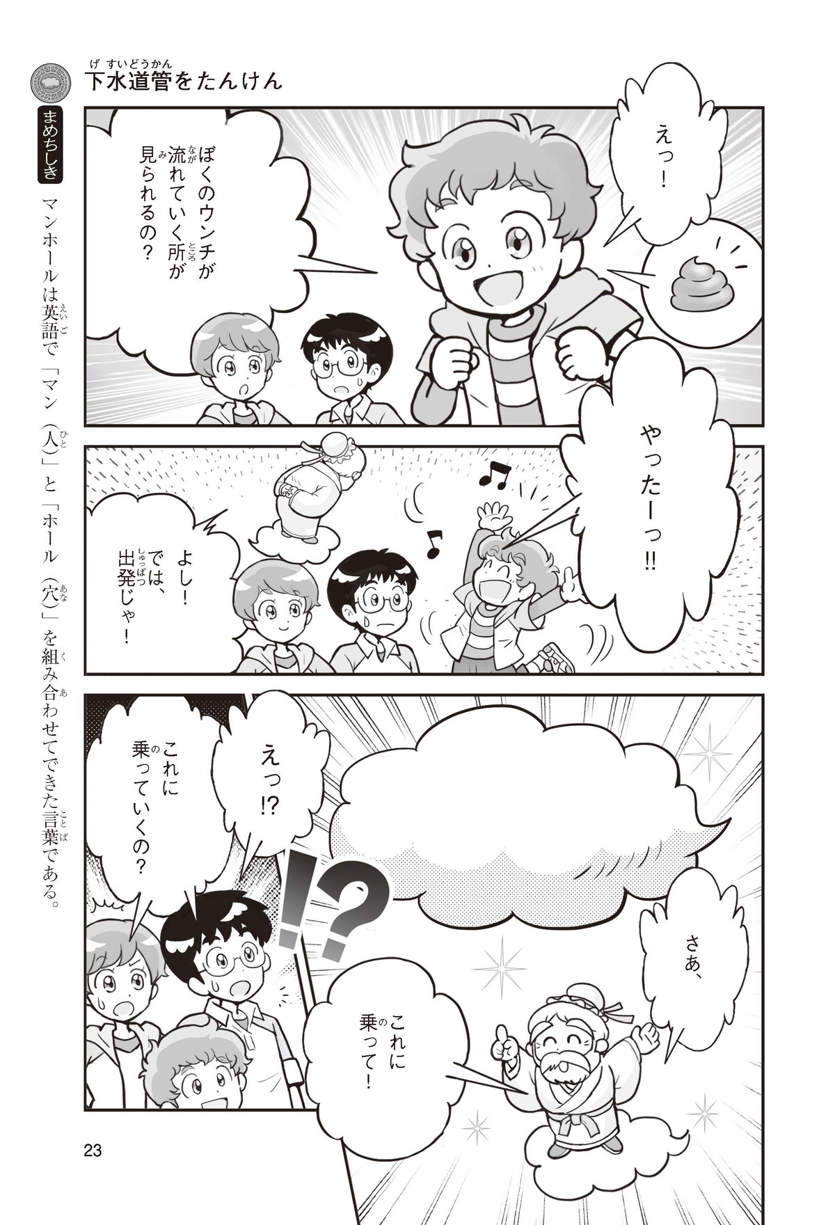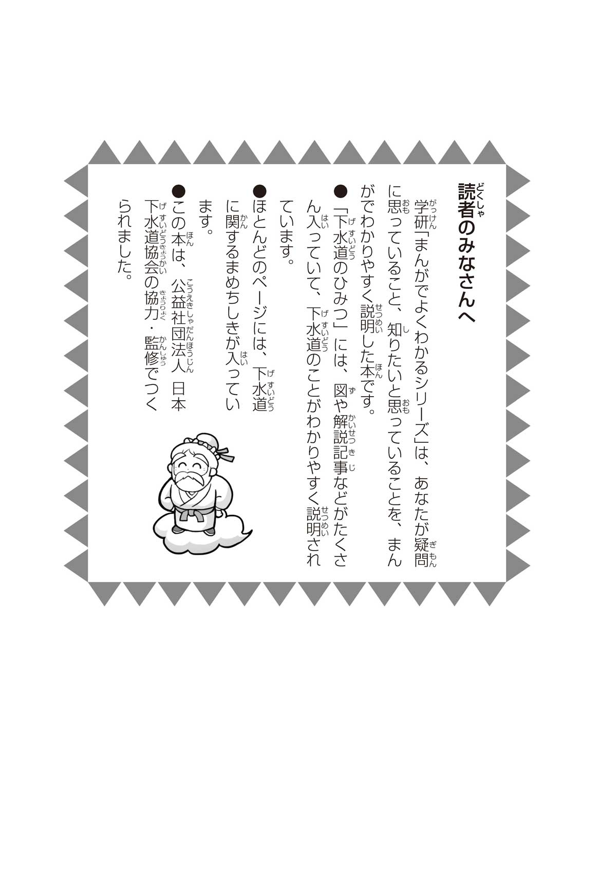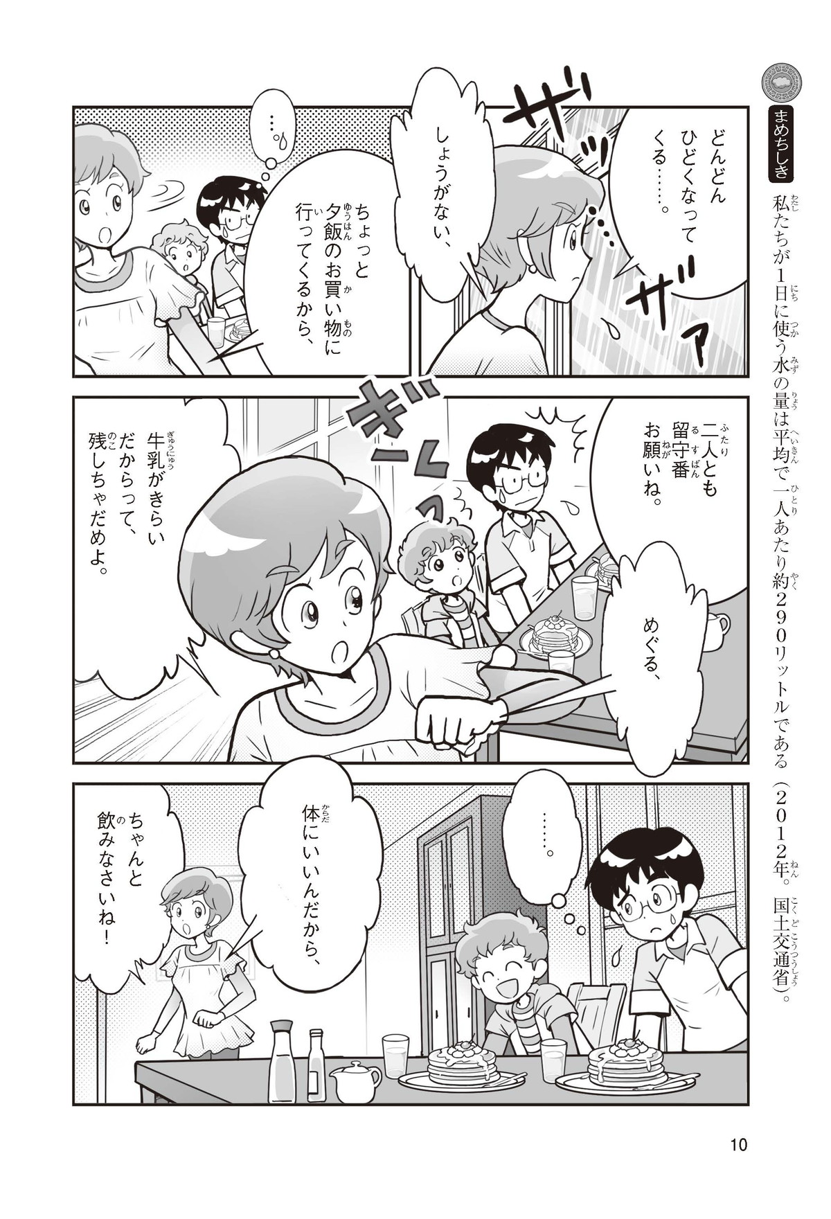 僕はめぐる、小学4年生。ある日、きらいな牛乳を台所の流しに捨てようとすると、排水溝から声が……!「コップ1杯の牛乳をきれいな水にもどすにはどれだけの水が必要か知っておるのか?」だって。驚いていると、排水溝から声の主、下水道の水仙人が飛び出してきた。牛乳を流してもつまらないのに、なんで捨てちゃダメなのかな?排水溝の奥は一体どうなっているんだろう?
