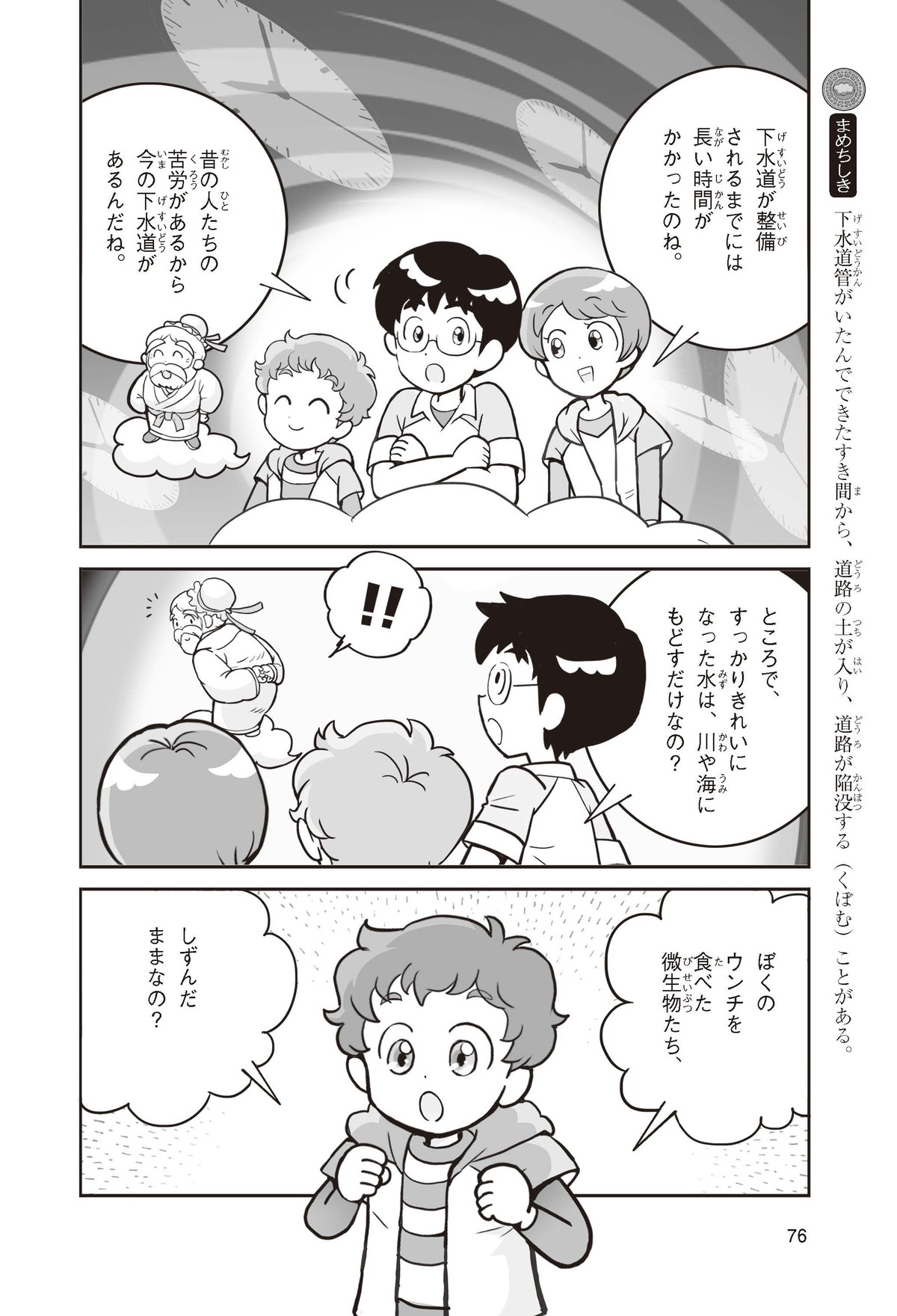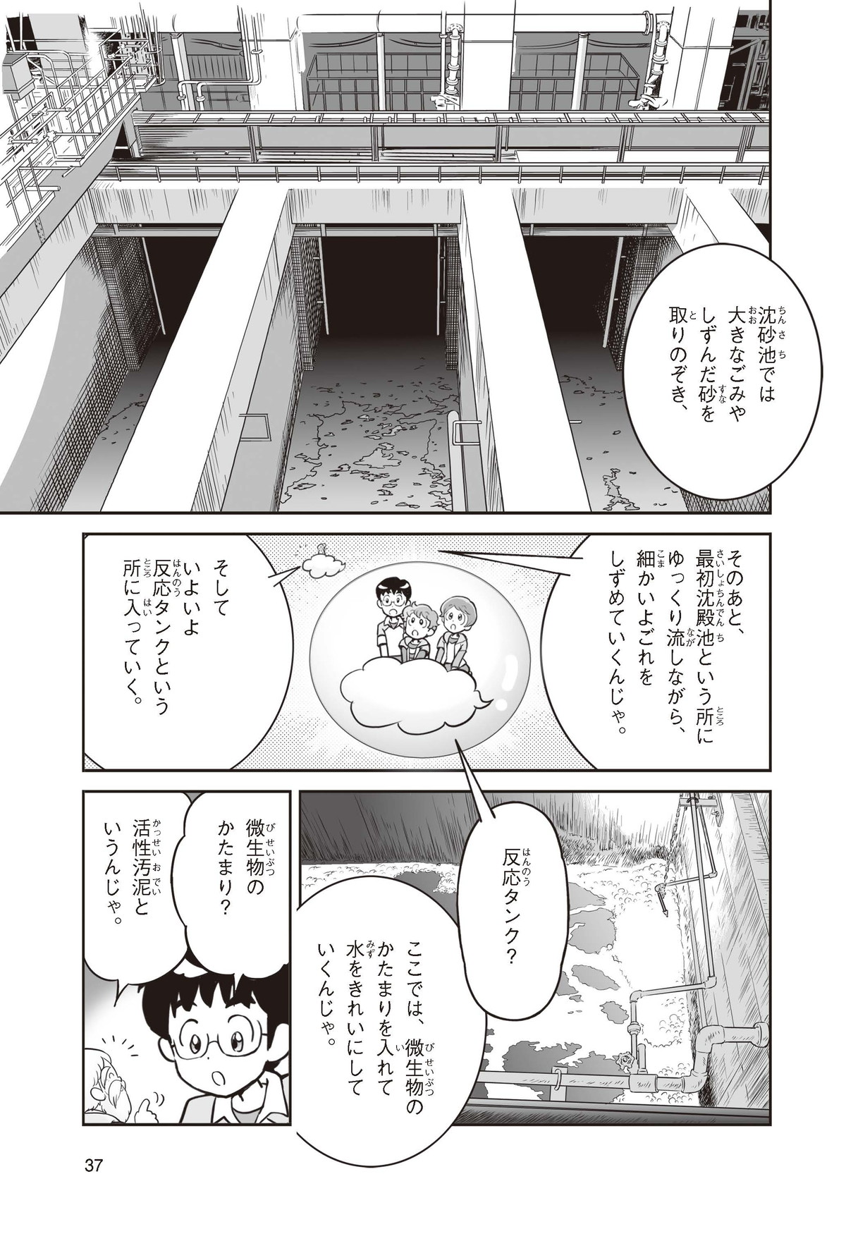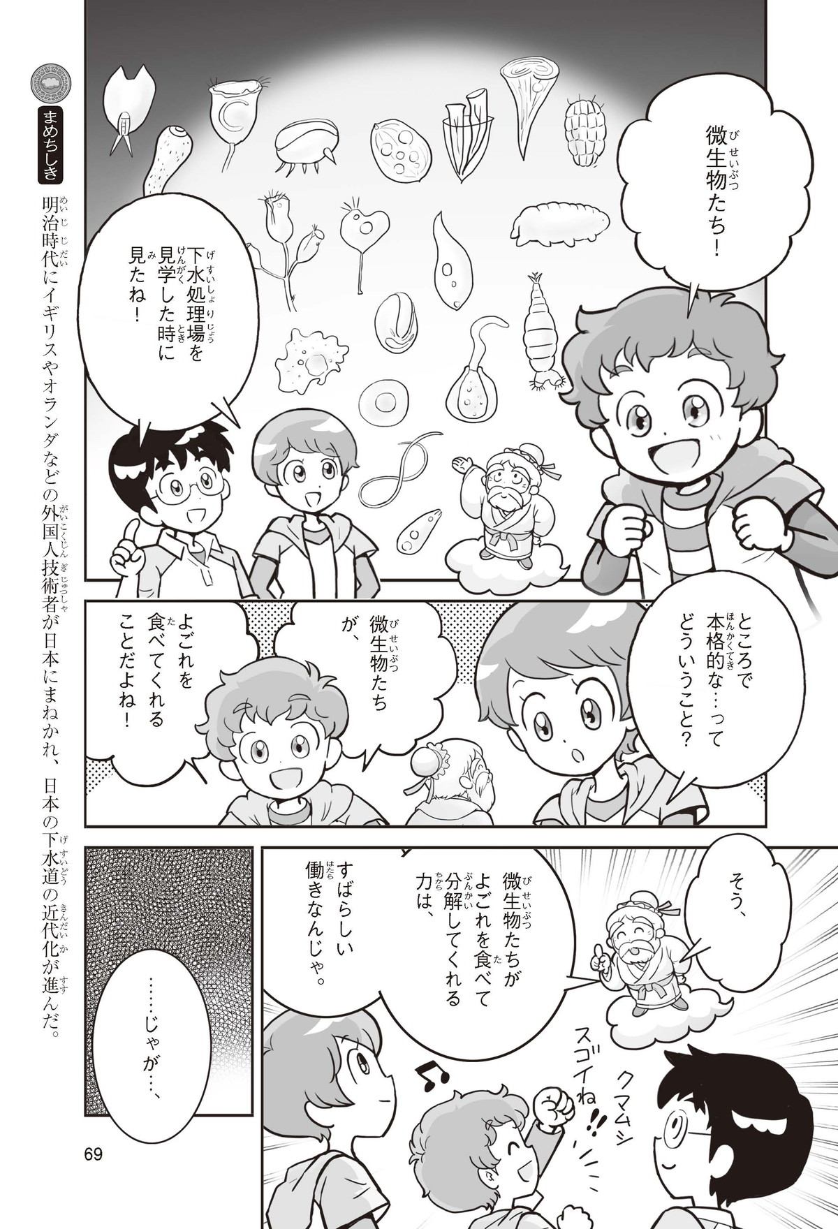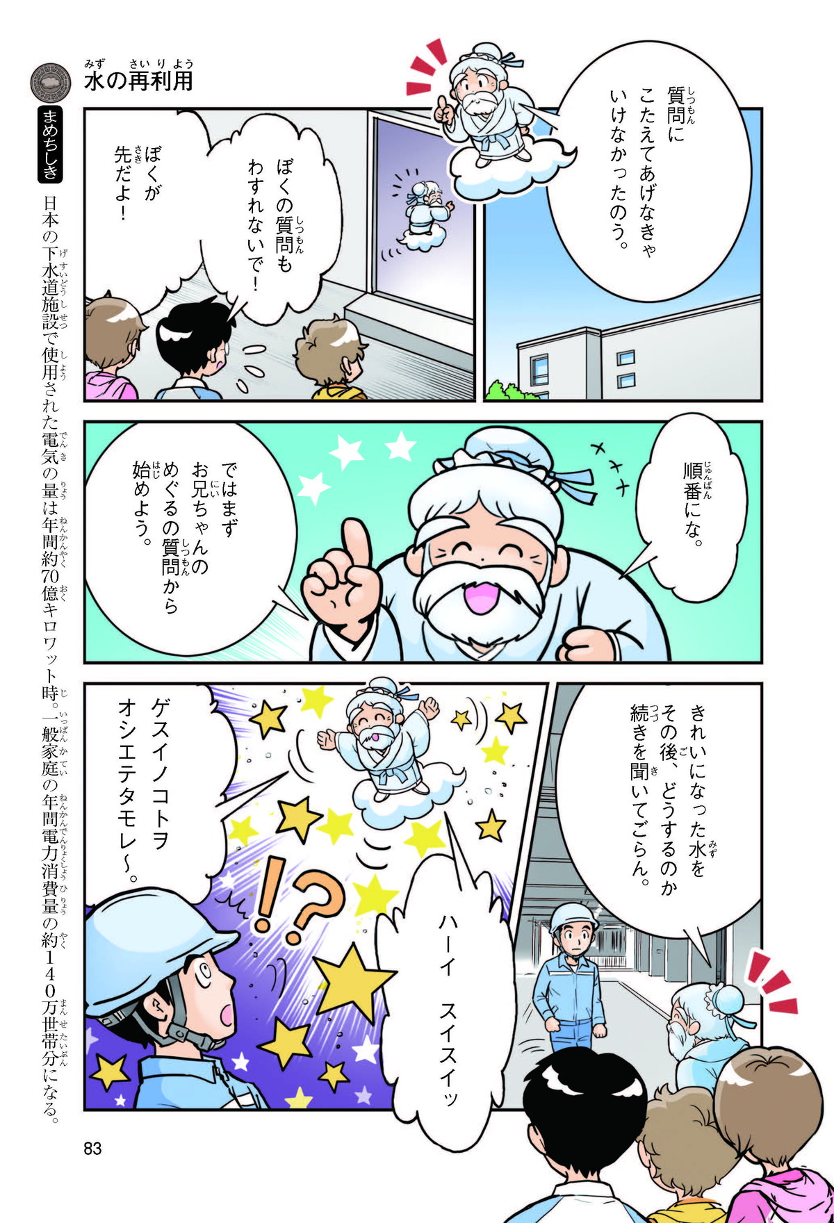 僕はめぐる、小学4年生。ある日、きらいな牛乳を台所の流しに捨てようとすると、排水溝から声が……!「コップ1杯の牛乳をきれいな水にもどすにはどれだけの水が必要か知っておるのか?」だって。驚いていると、排水溝から声の主、下水道の水仙人が飛び出してきた。牛乳を流してもつまらないのに、なんで捨てちゃダメなのかな?排水溝の奥は一体どうなっているんだろう?