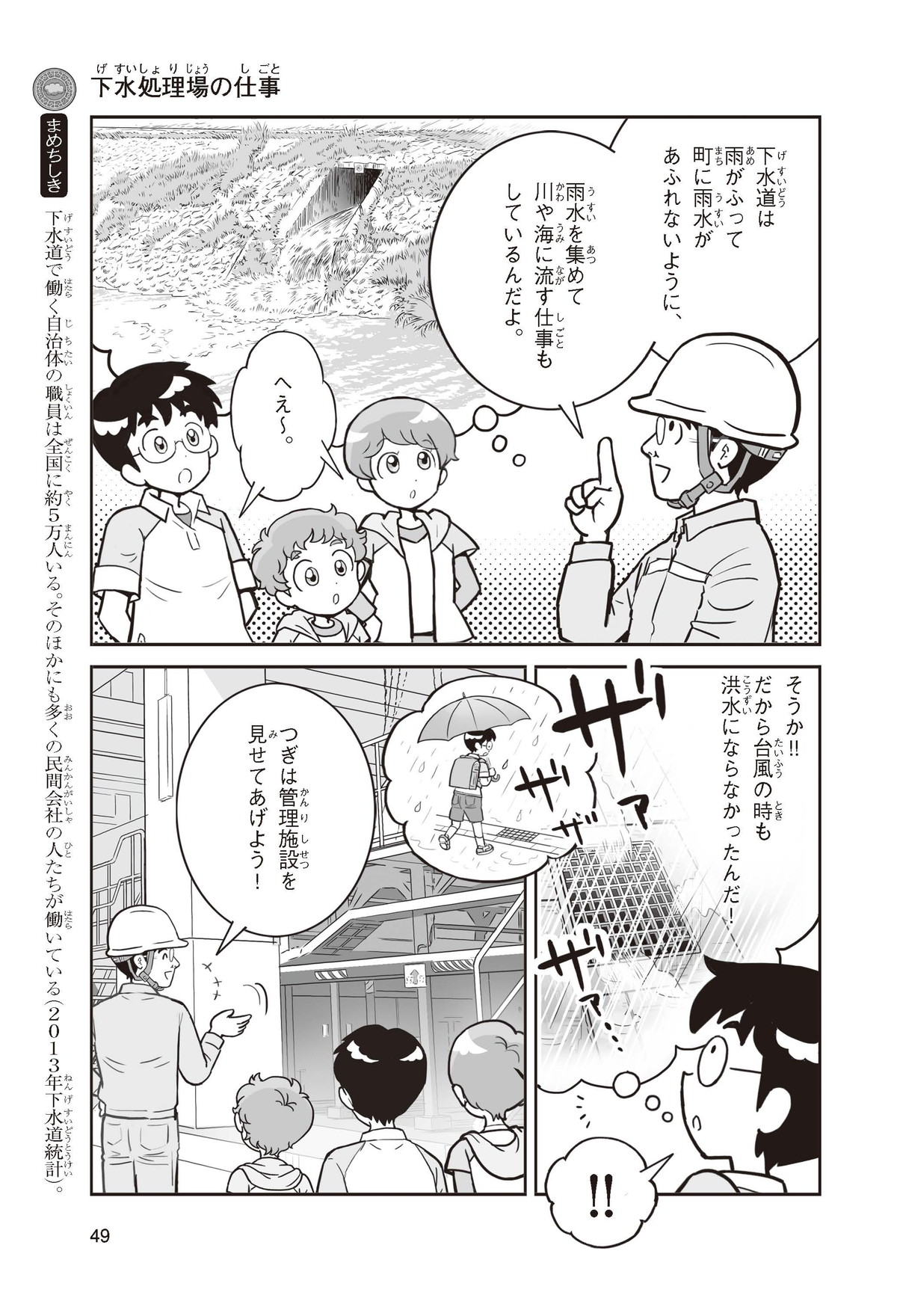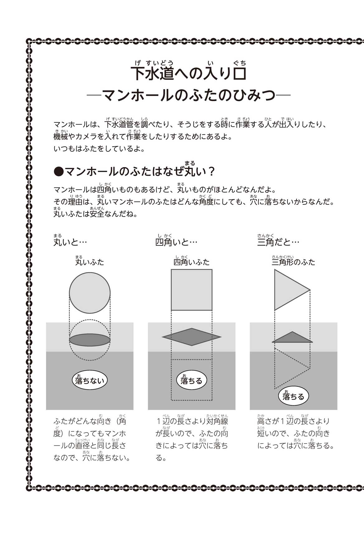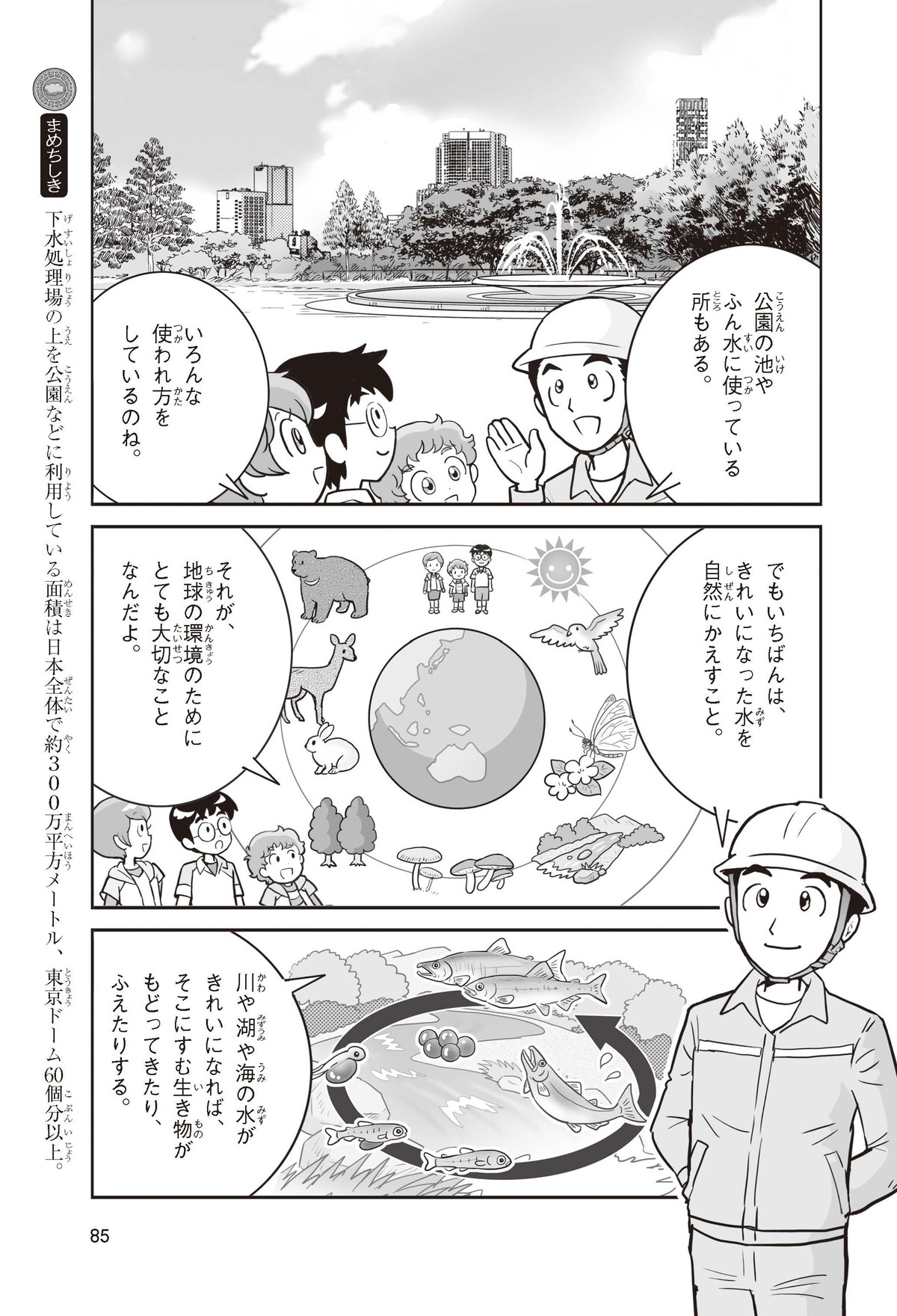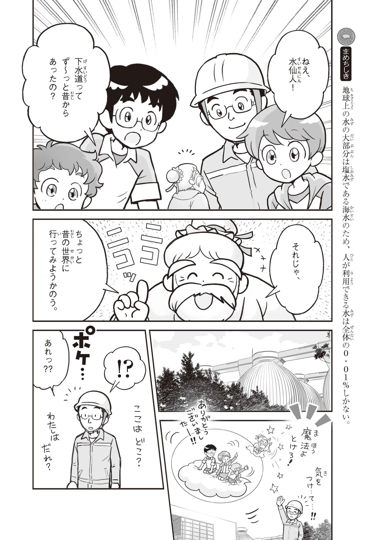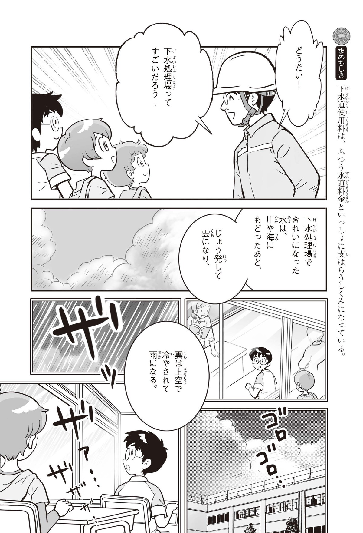 僕はめぐる、小学4年生。ある日、きらいな牛乳を台所の流しに捨てようとすると、排水溝から声が……!「コップ1杯の牛乳をきれいな水にもどすにはどれだけの水が必要か知っておるのか?」だって。驚いていると、排水溝から声の主、下水道の水仙人が飛び出してきた。牛乳を流してもつまらないのに、なんで捨てちゃダメなのかな?排水溝の奥は一体どうなっているんだろう?