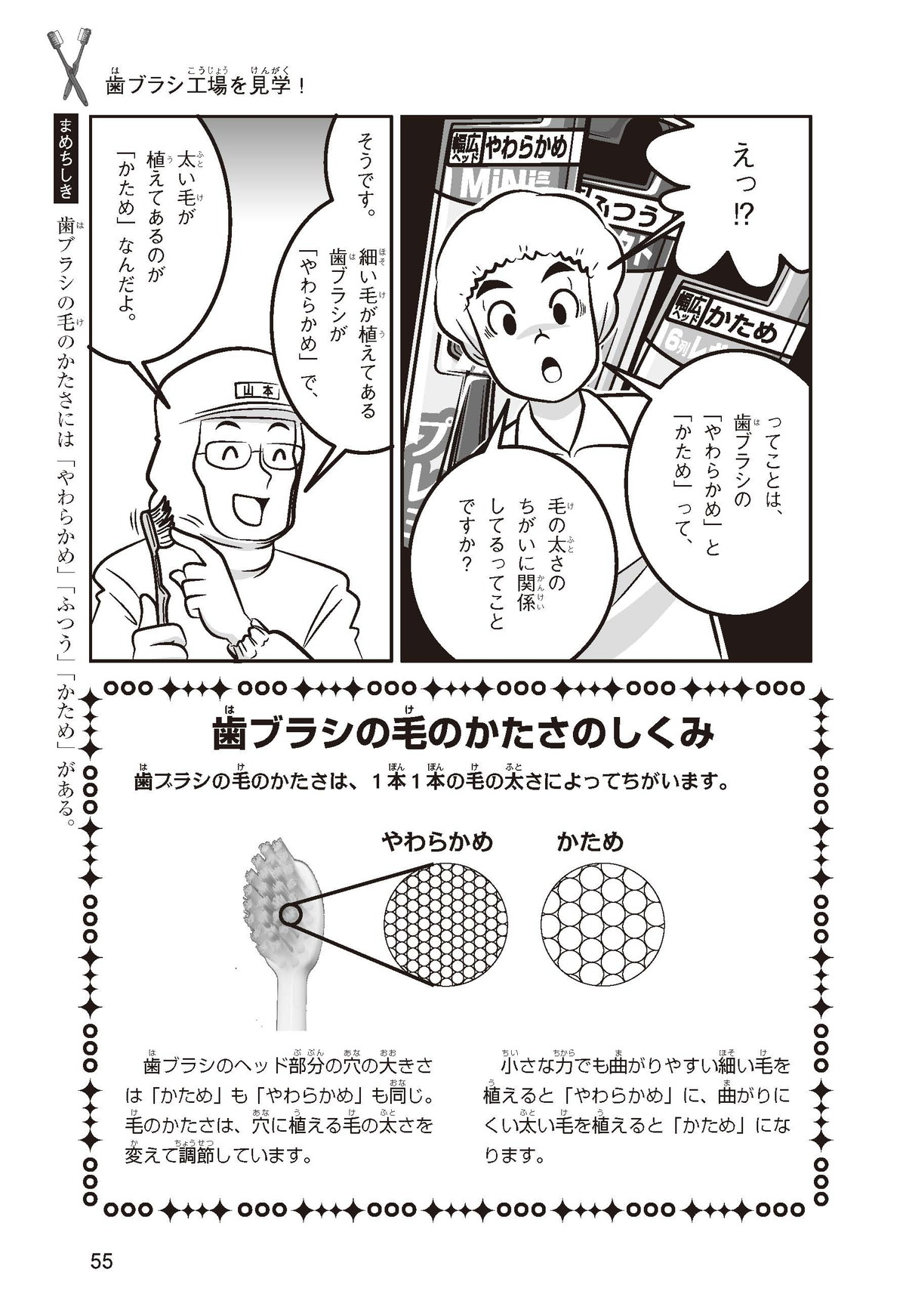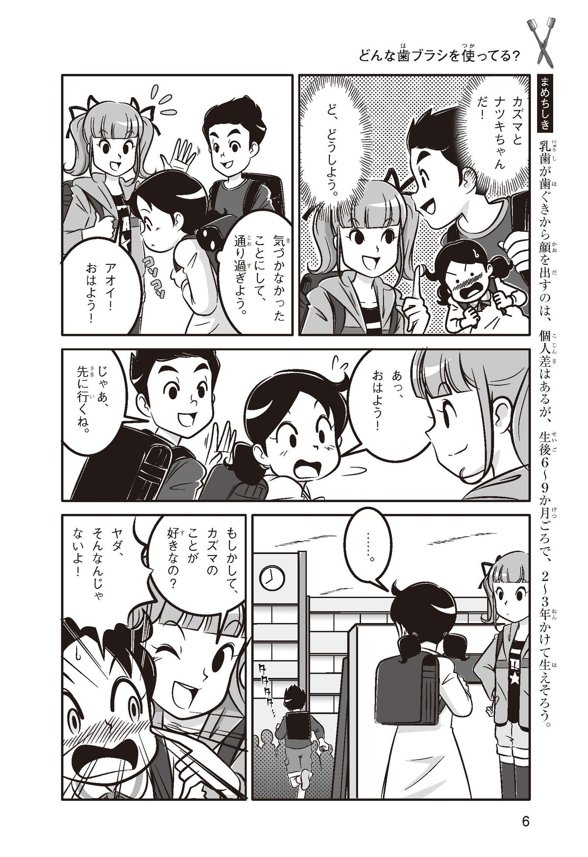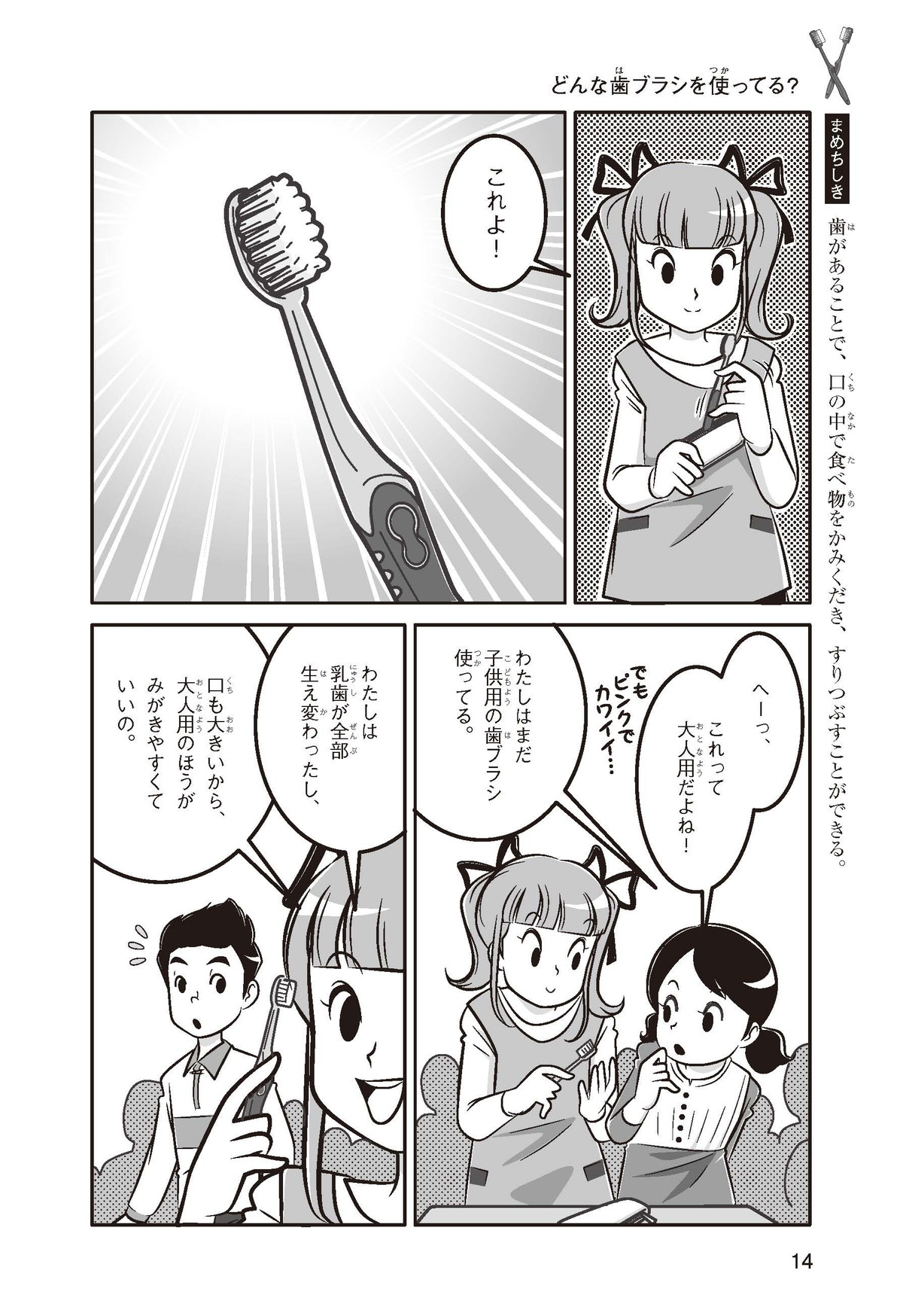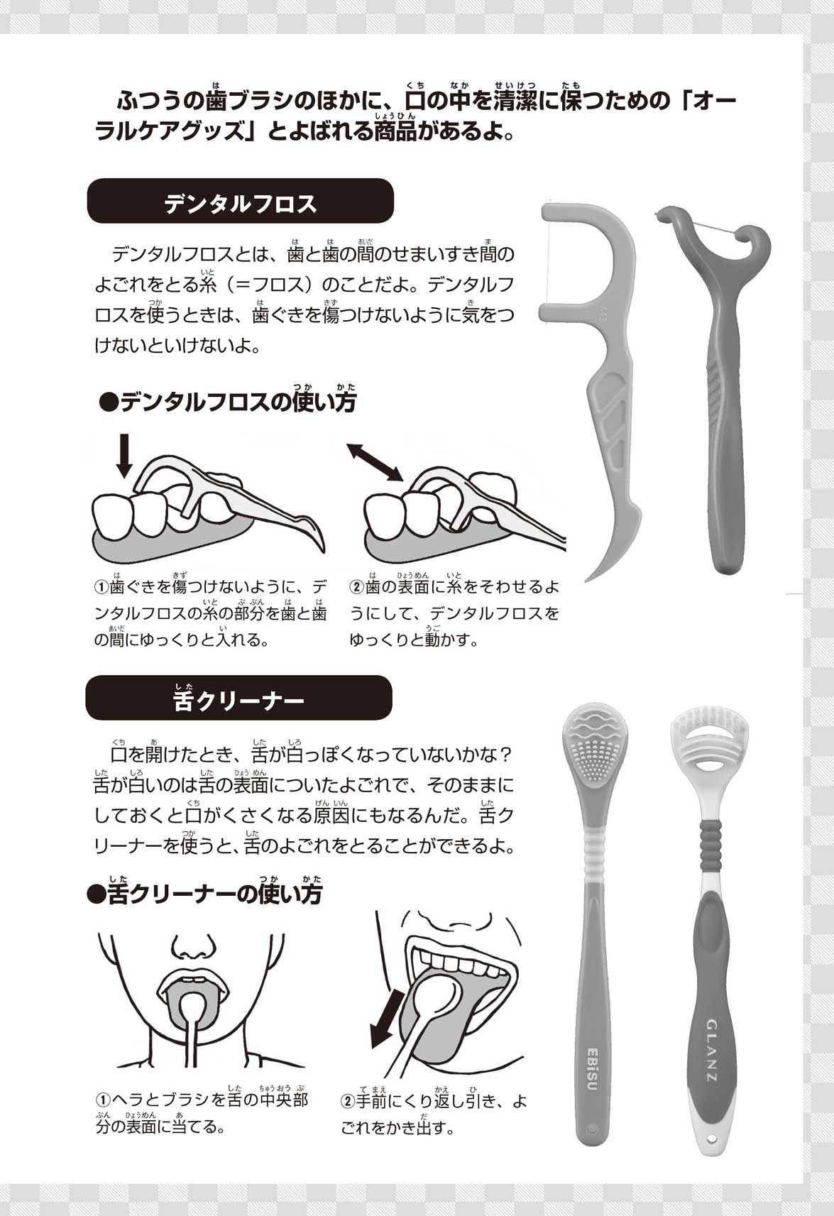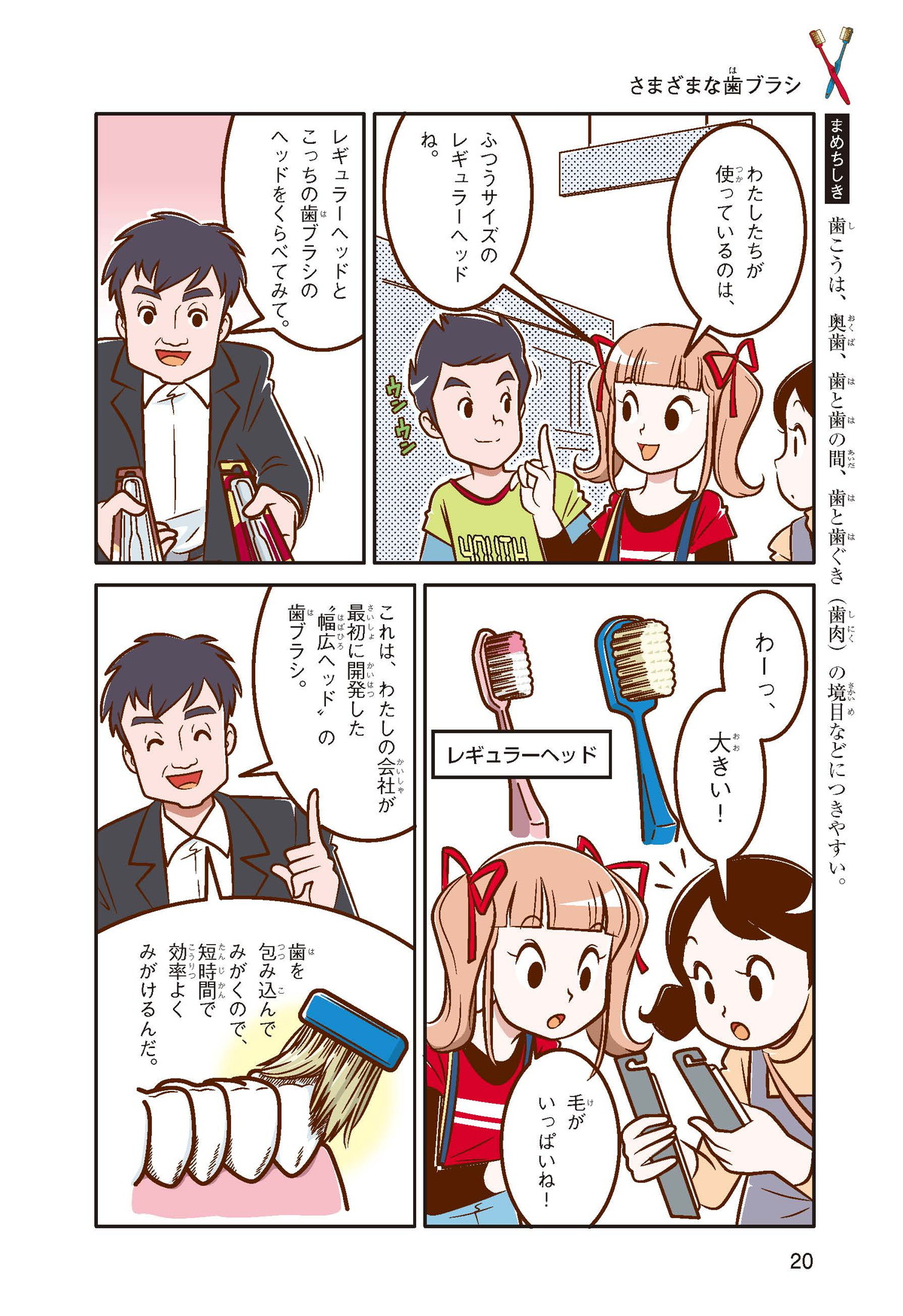 アオイは小学5年生の女の子。毎日ちゃんと歯みがきしていたはずなのに、むし歯になってしまったよ。歯医者さんが言うには、長い間同じ歯ブラシを使っていると、だんだん毛先が広がって、きちんと磨けなくなってしまうんだって。アオイはきれいな歯を手に入れるため、自分にぴったりの歯ブラシを探すことになったよ。歯ブラシはどんな種類があるのかな?どうやって作られているのかな?