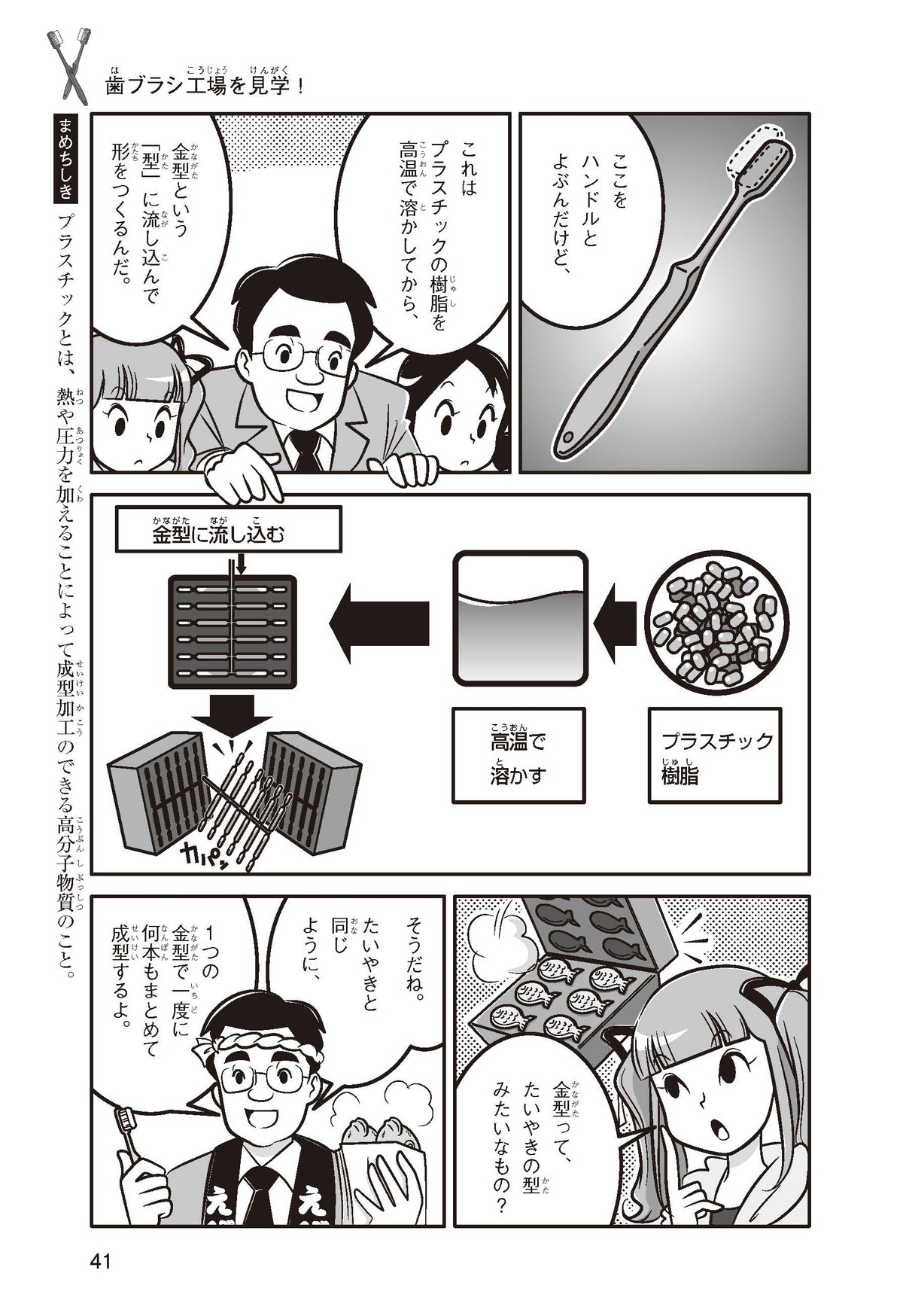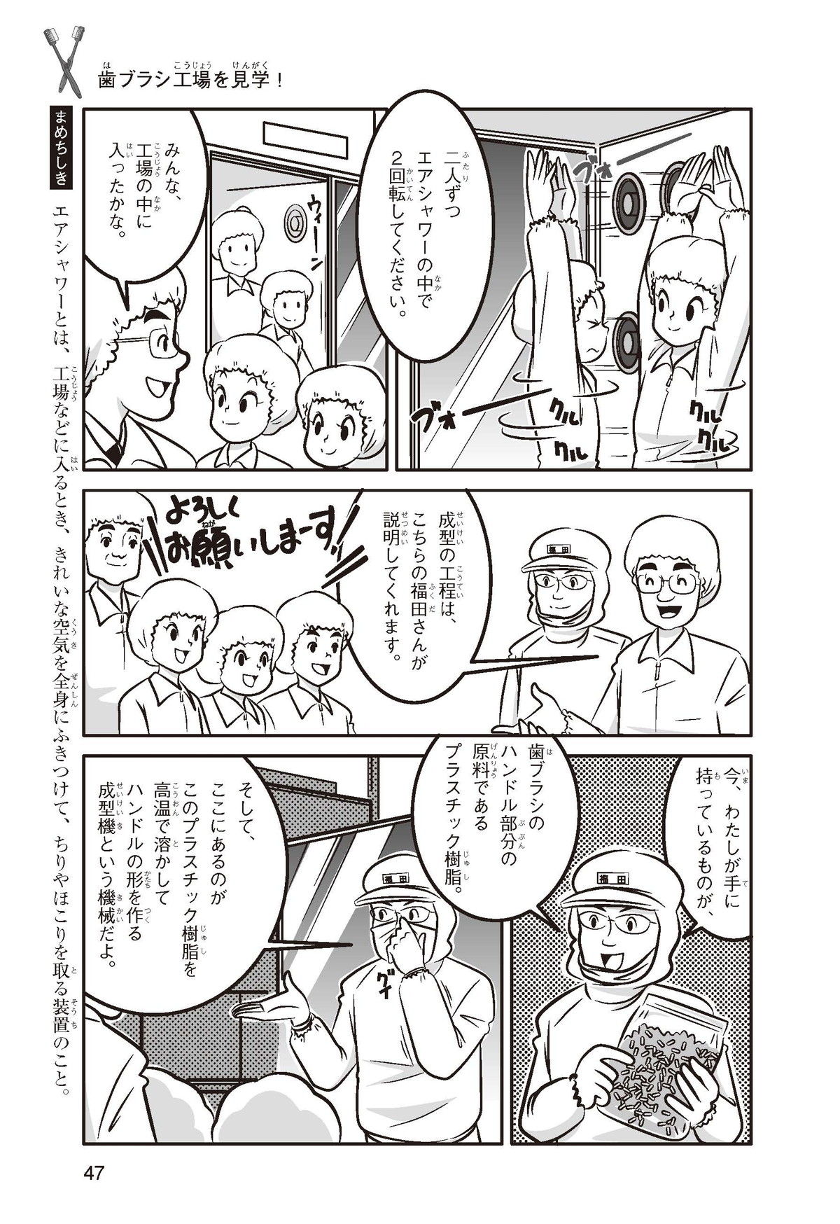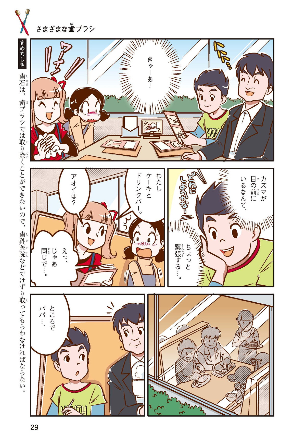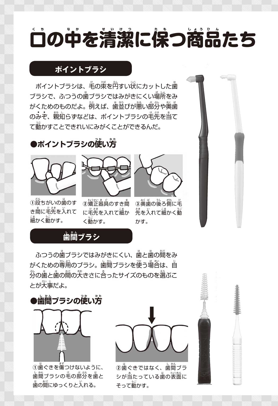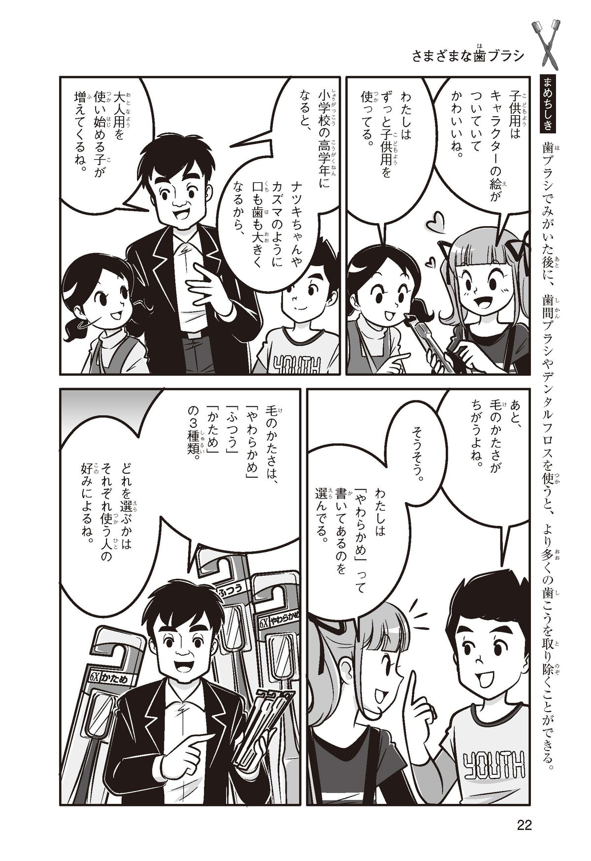 アオイは小学5年生の女の子。毎日ちゃんと歯みがきしていたはずなのに、むし歯になってしまったよ。歯医者さんが言うには、長い間同じ歯ブラシを使っていると、だんだん毛先が広がって、きちんと磨けなくなってしまうんだって。アオイはきれいな歯を手に入れるため、自分にぴったりの歯ブラシを探すことになったよ。歯ブラシはどんな種類があるのかな?どうやって作られているのかな?