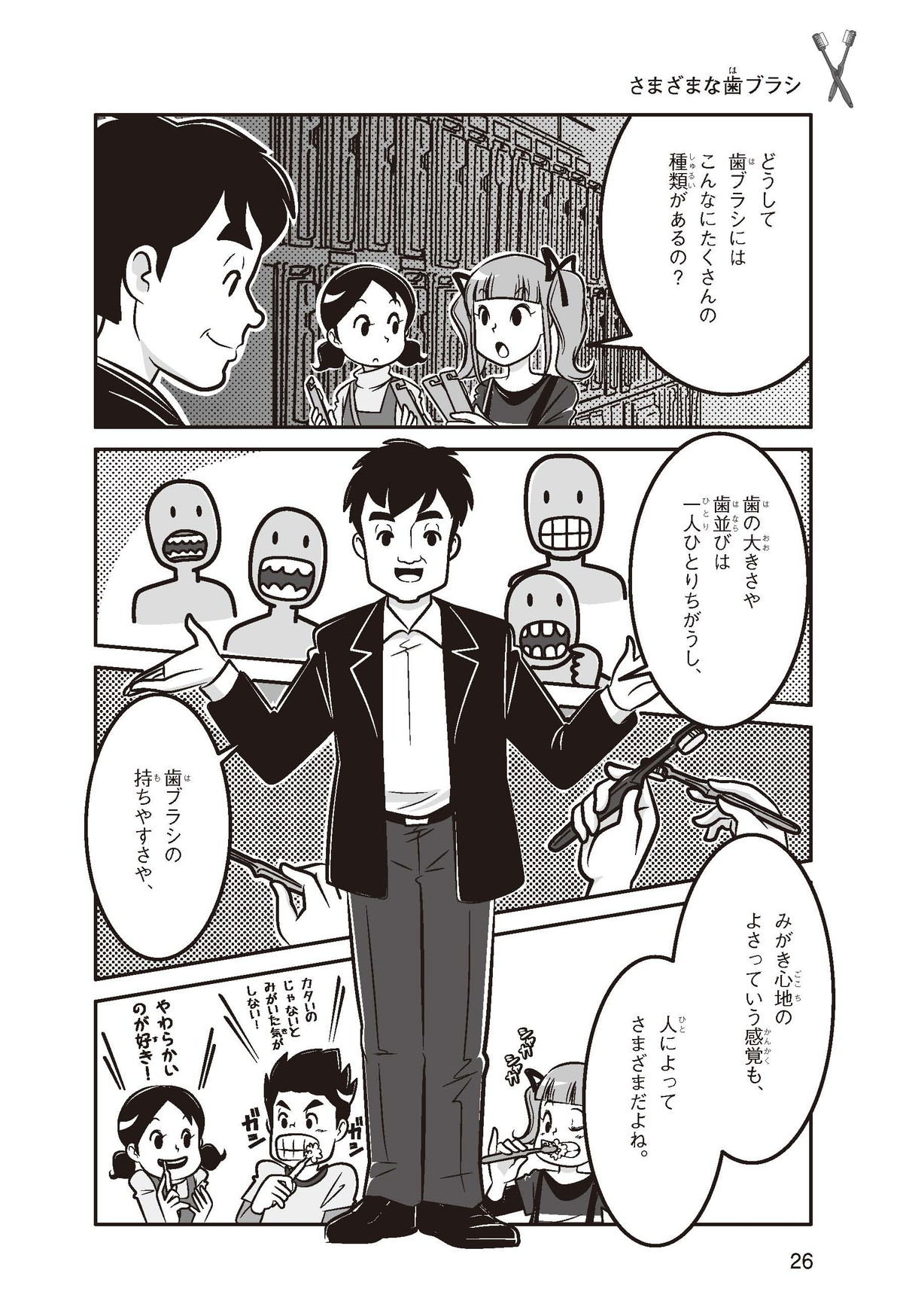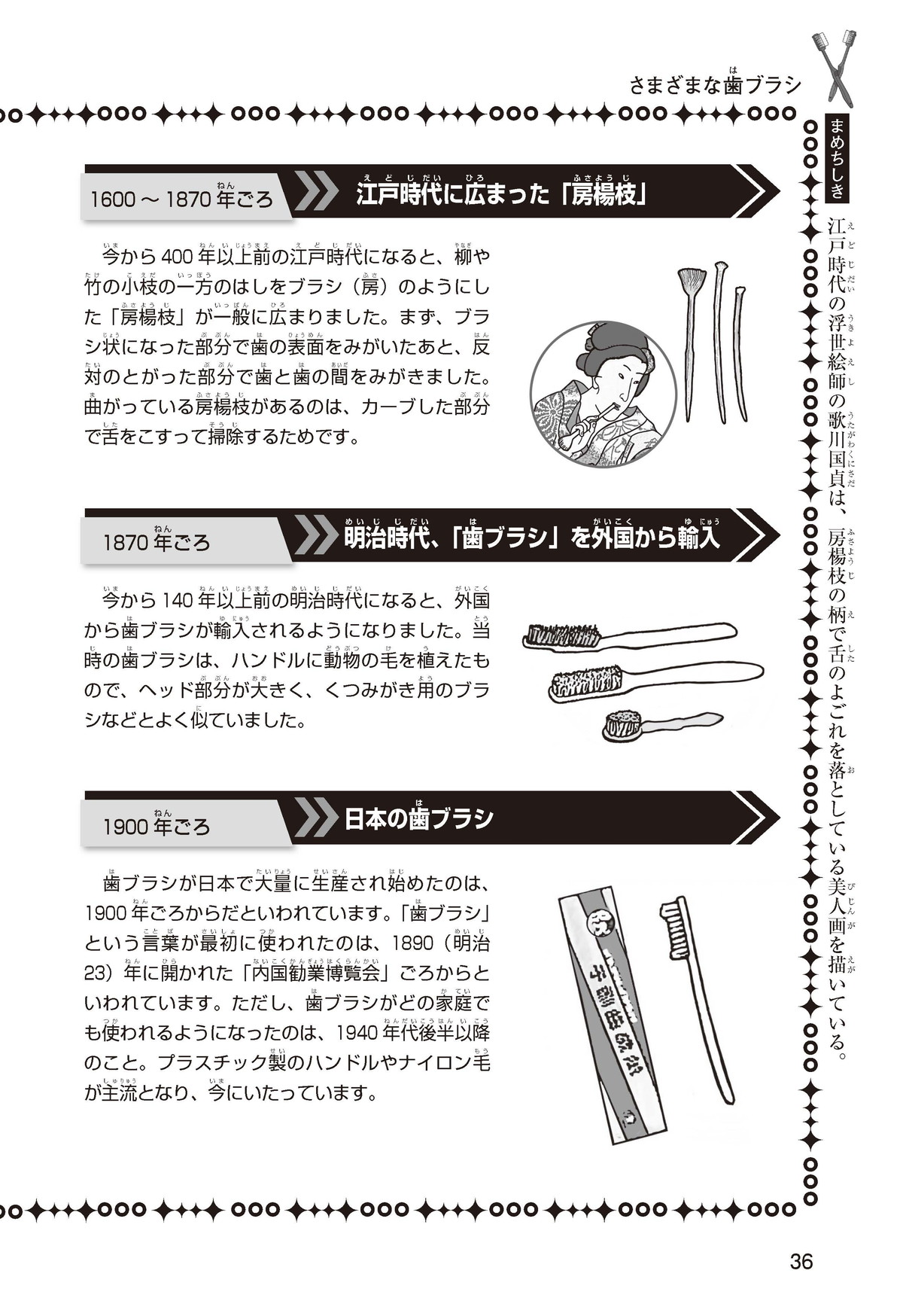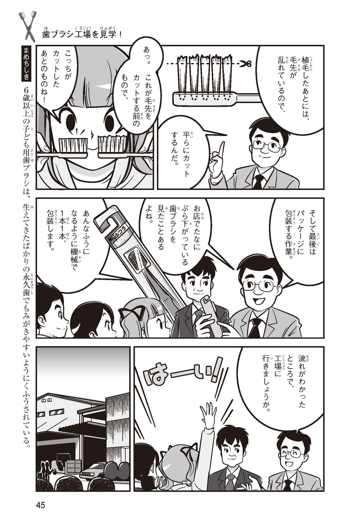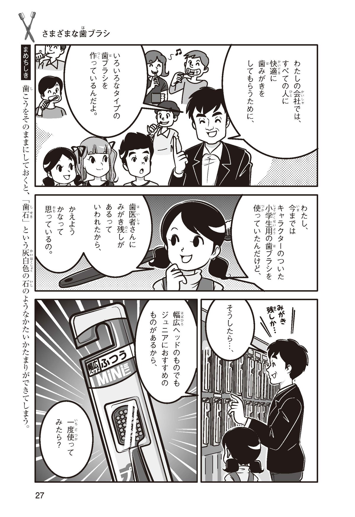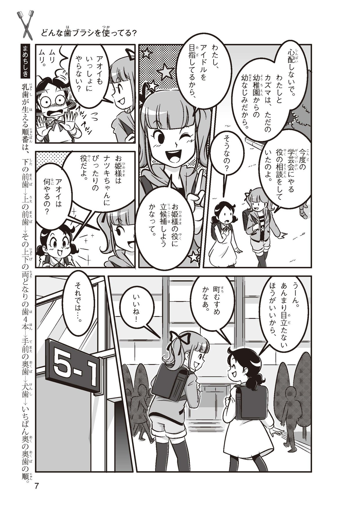 アオイは小学5年生の女の子。毎日ちゃんと歯みがきしていたはずなのに、むし歯になってしまったよ。歯医者さんが言うには、長い間同じ歯ブラシを使っていると、だんだん毛先が広がって、きちんと磨けなくなってしまうんだって。アオイはきれいな歯を手に入れるため、自分にぴったりの歯ブラシを探すことになったよ。歯ブラシはどんな種類があるのかな?どうやって作られているのかな?
