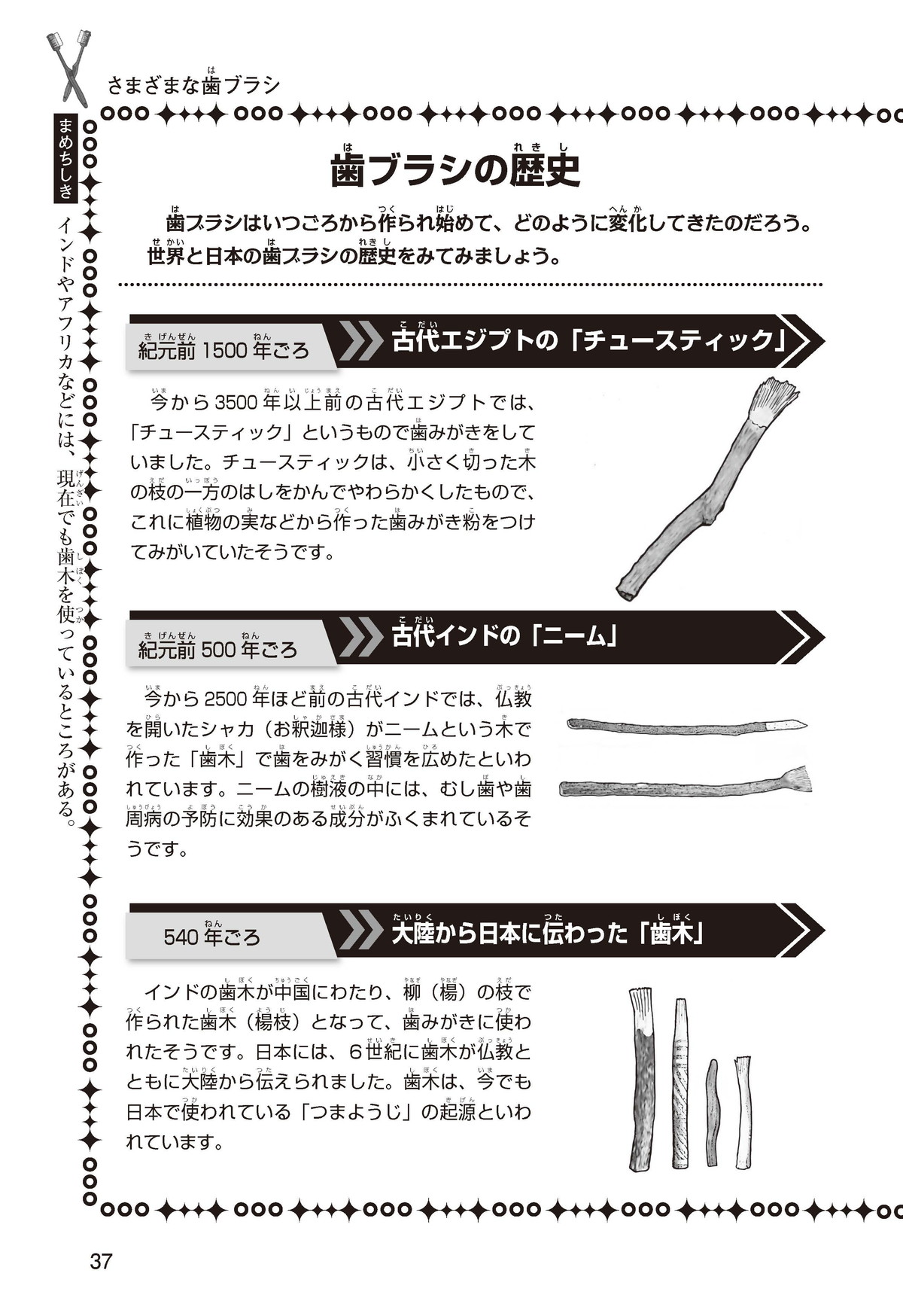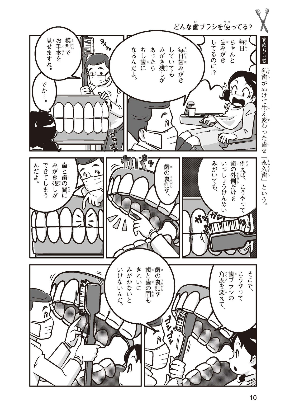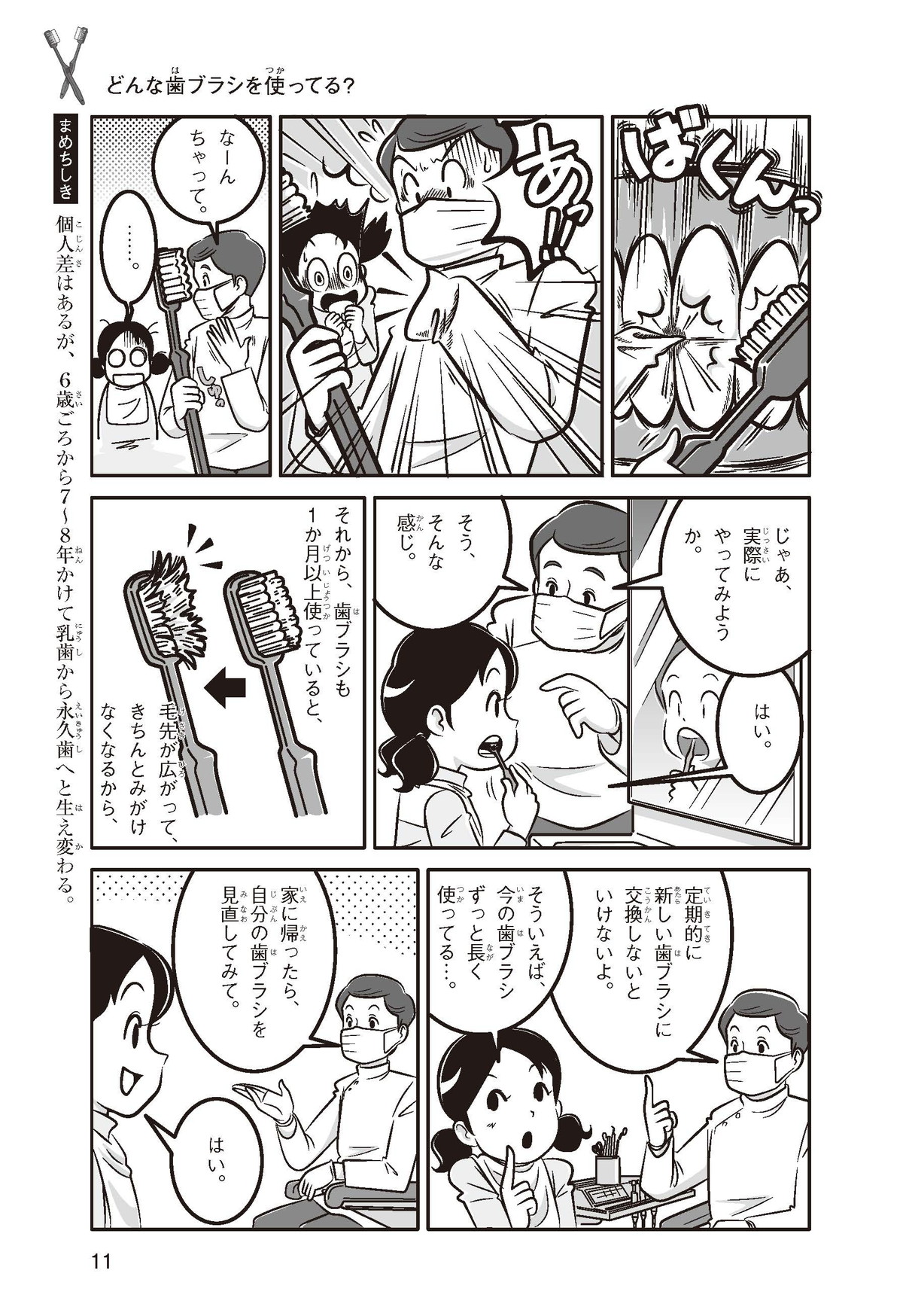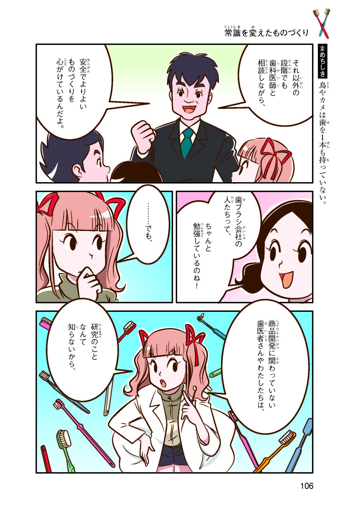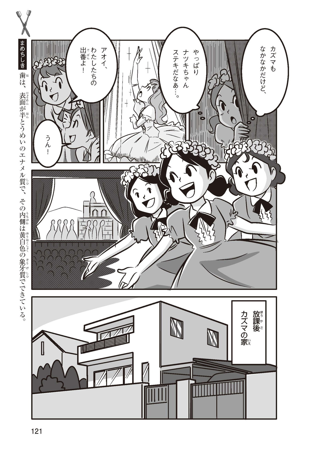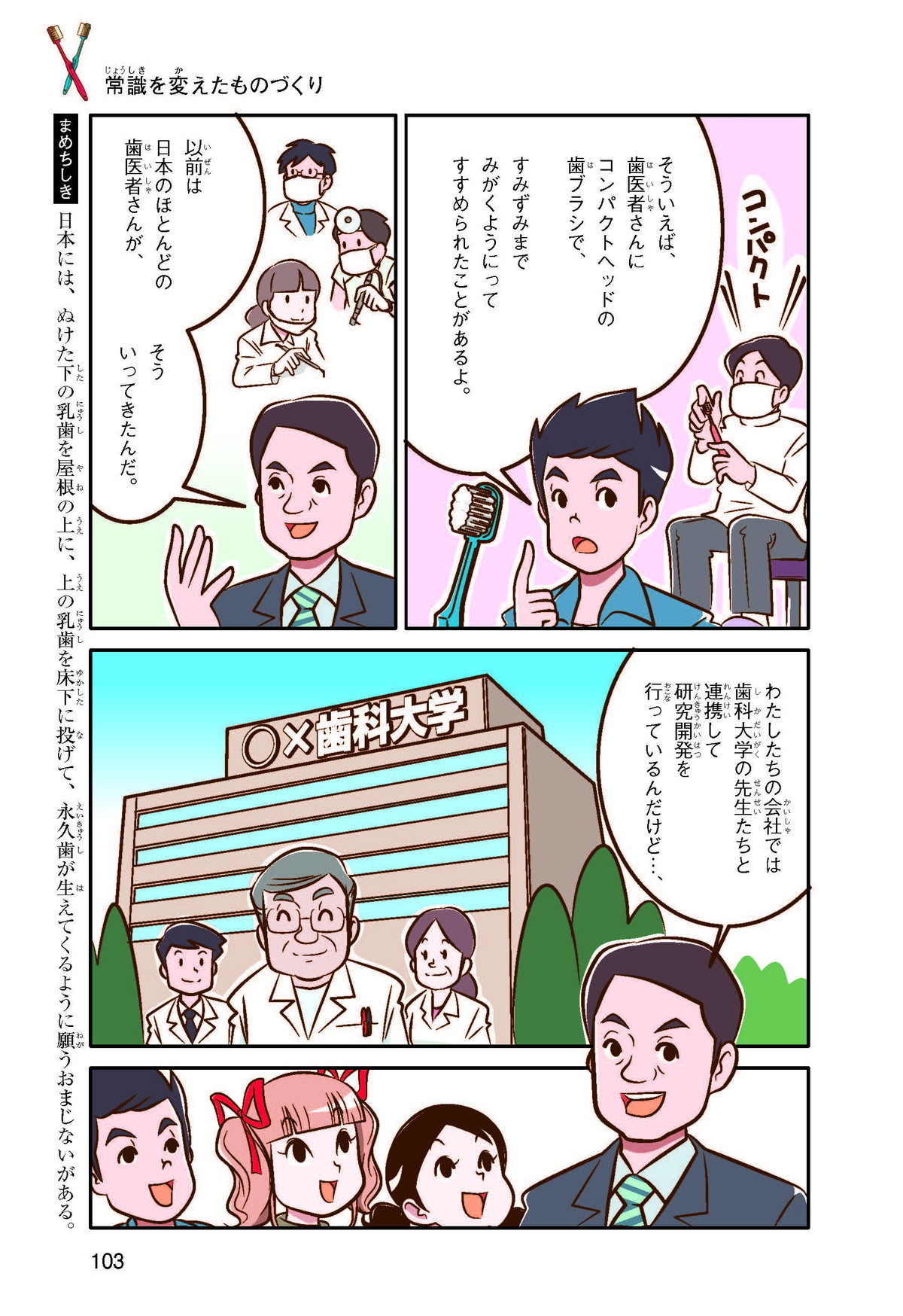アオイは小学5年生の女の子。毎日ちゃんと歯みがきしていたはずなのに、むし歯になってしまったよ。歯医者さんが言うには、長い間同じ歯ブラシを使っていると、だんだん毛先が広がって、きちんと磨けなくなってしまうんだって。アオイはきれいな歯を手に入れるため、自分にぴったりの歯ブラシを探すことになったよ。歯ブラシはどんな種類があるのかな?どうやって作られているのかな?
