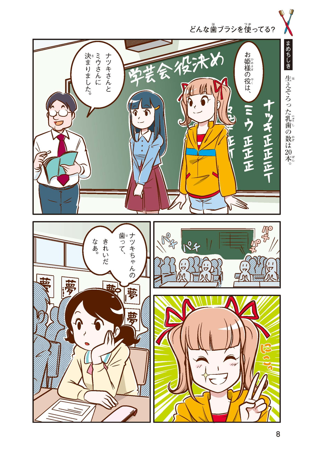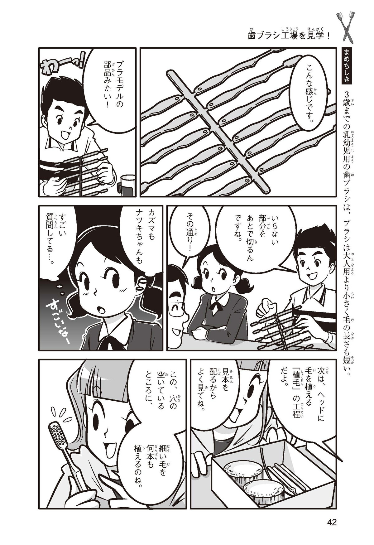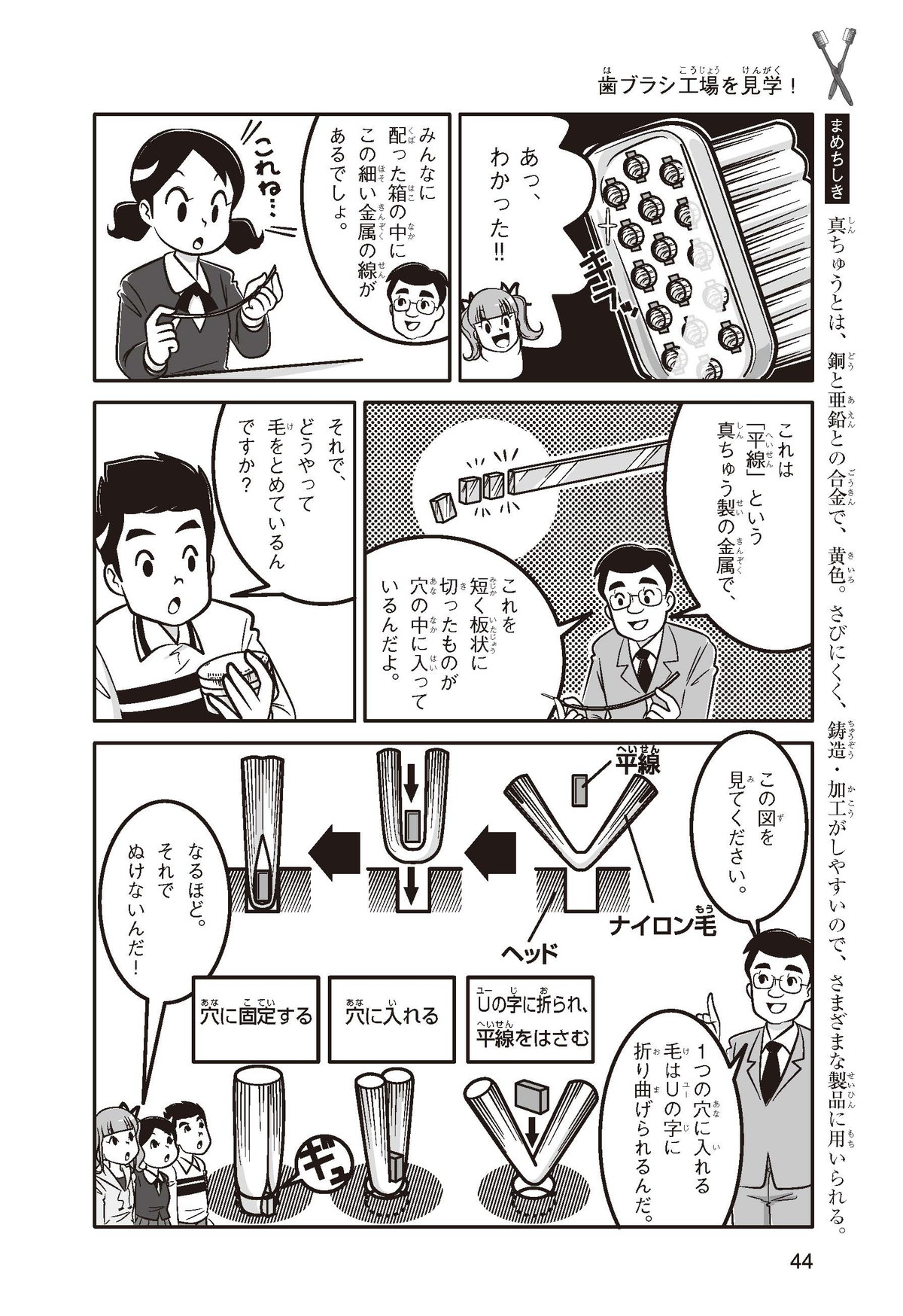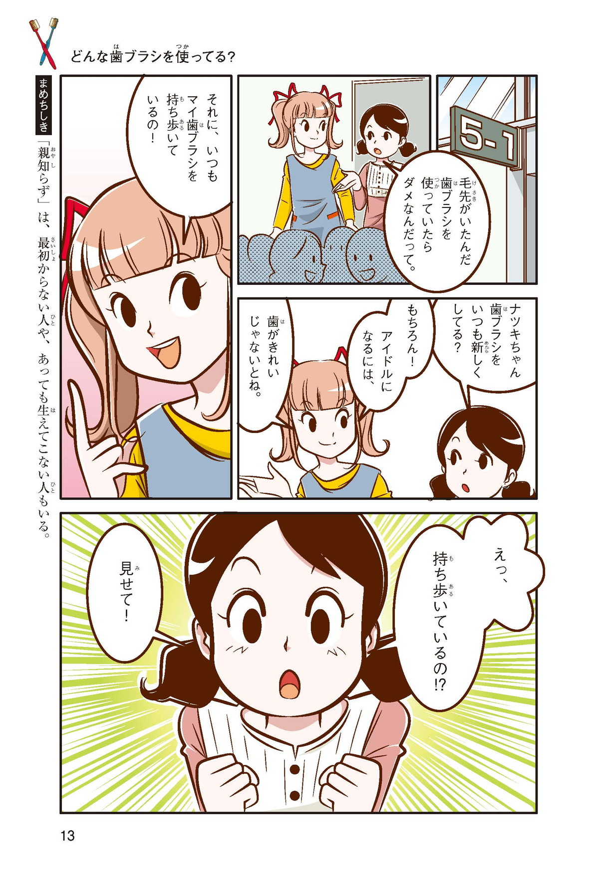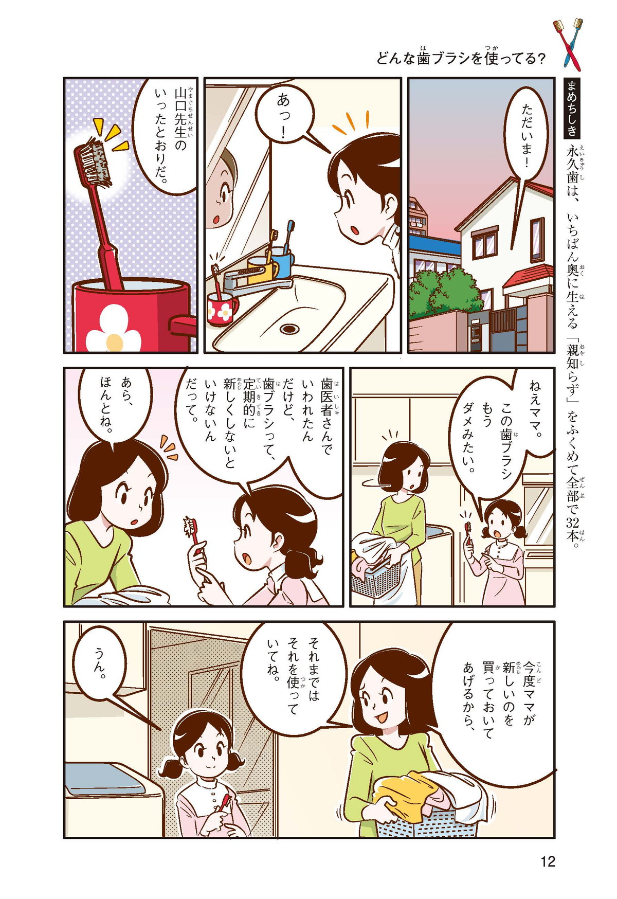 アオイは小学5年生の女の子。毎日ちゃんと歯みがきしていたはずなのに、むし歯になってしまったよ。歯医者さんが言うには、長い間同じ歯ブラシを使っていると、だんだん毛先が広がって、きちんと磨けなくなってしまうんだって。アオイはきれいな歯を手に入れるため、自分にぴったりの歯ブラシを探すことになったよ。歯ブラシはどんな種類があるのかな?どうやって作られているのかな?