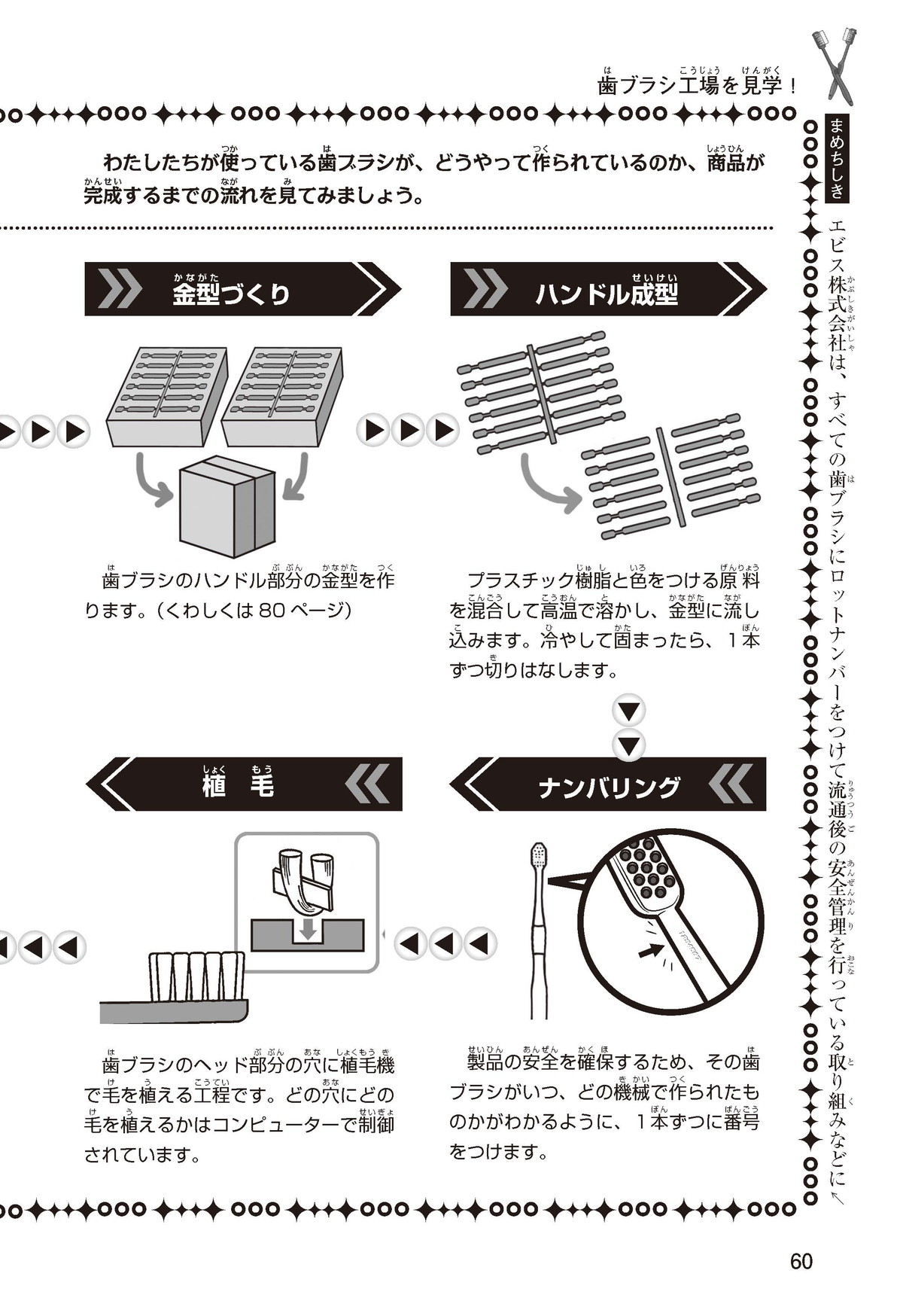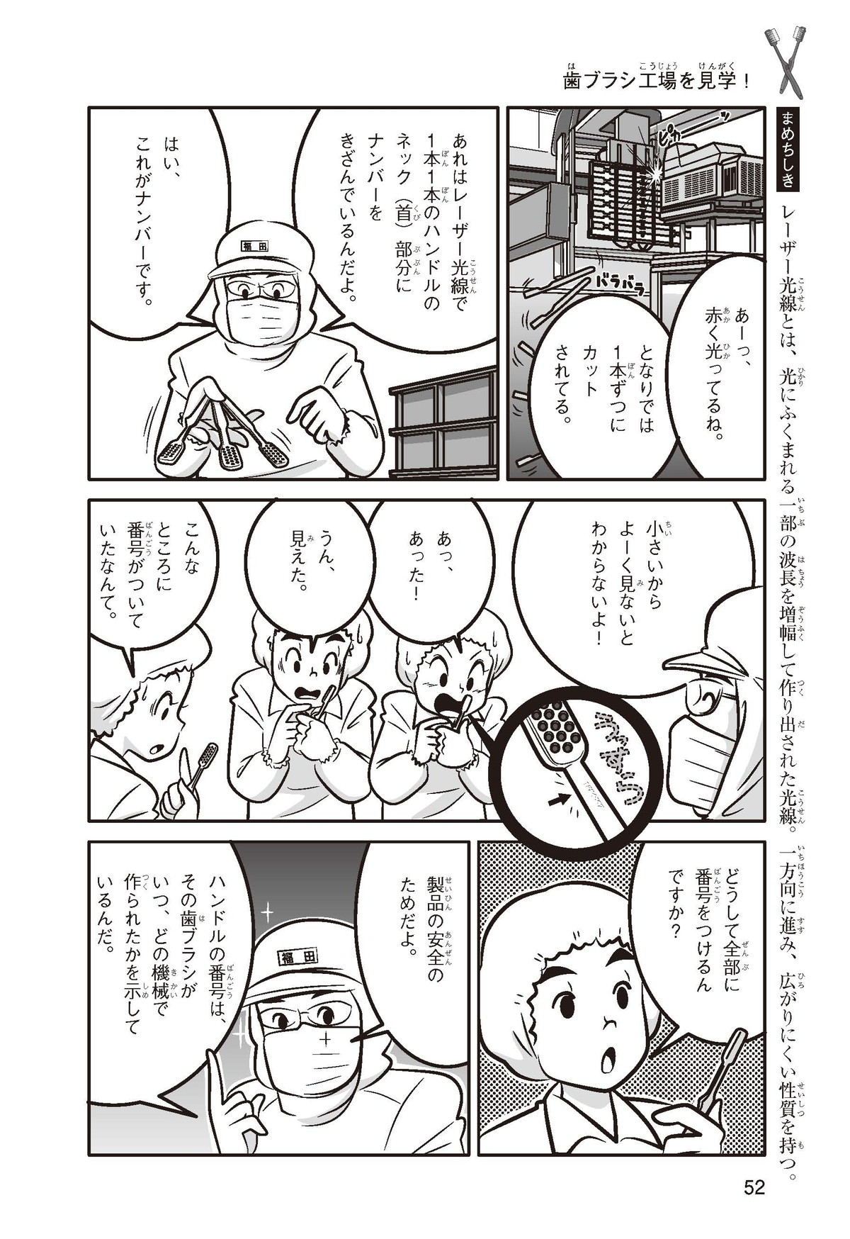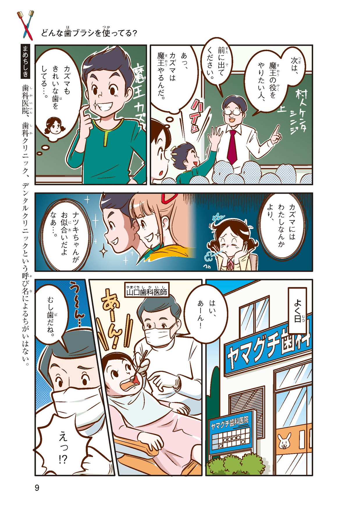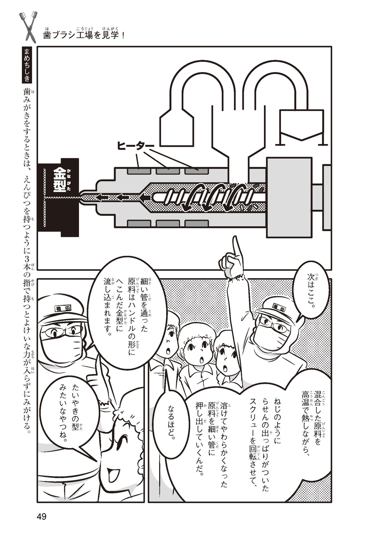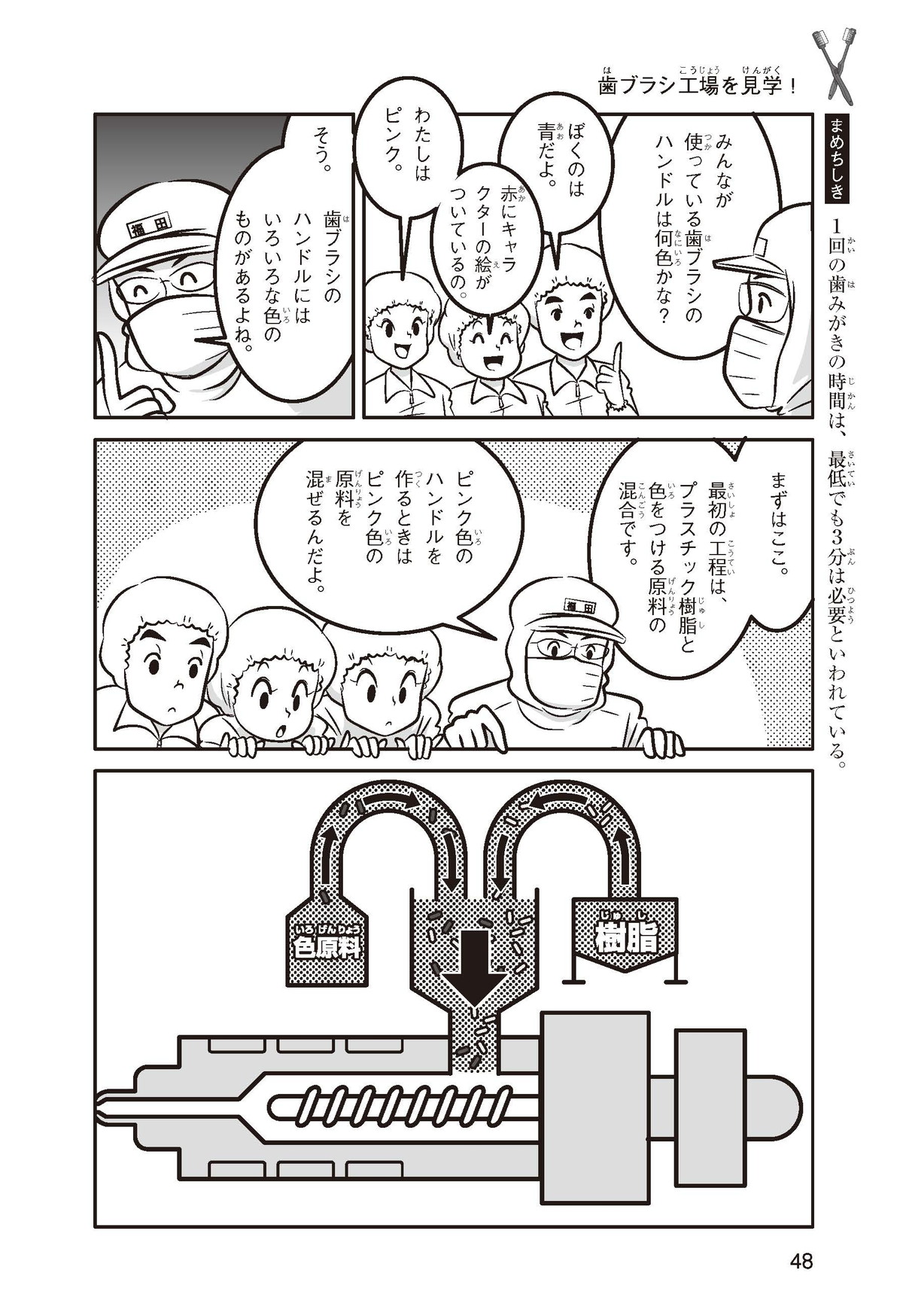アオイは小学5年生の女の子。毎日ちゃんと歯みがきしていたはずなのに、むし歯になってしまったよ。歯医者さんが言うには、長い間同じ歯ブラシを使っていると、だんだん毛先が広がって、きちんと磨けなくなってしまうんだって。アオイはきれいな歯を手に入れるため、自分にぴったりの歯ブラシを探すことになったよ。歯ブラシはどんな種類があるのかな?どうやって作られているのかな?