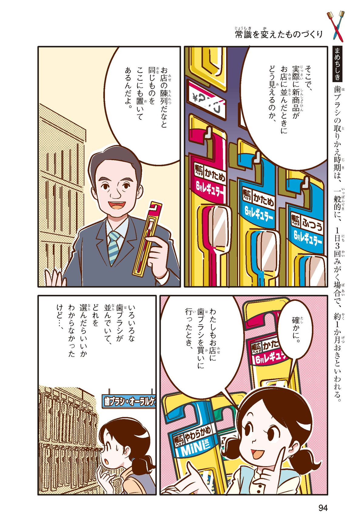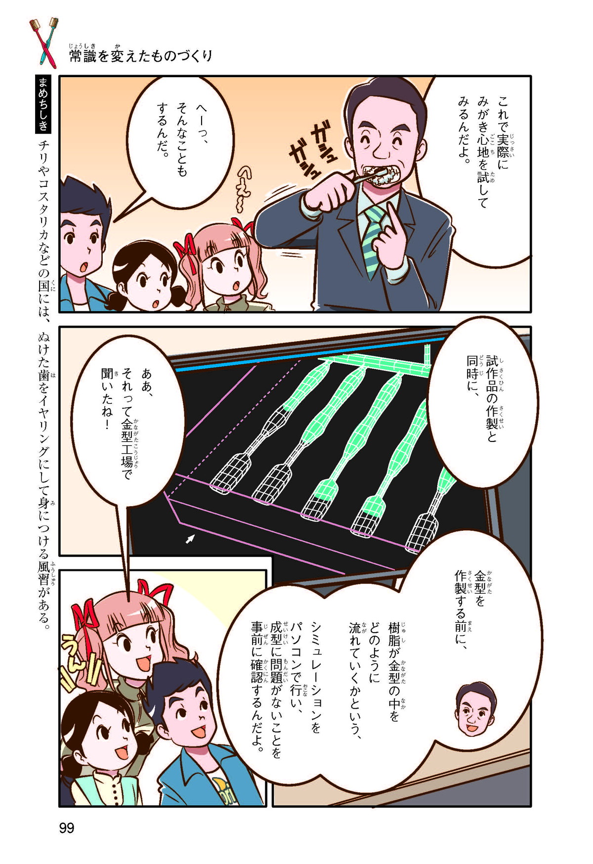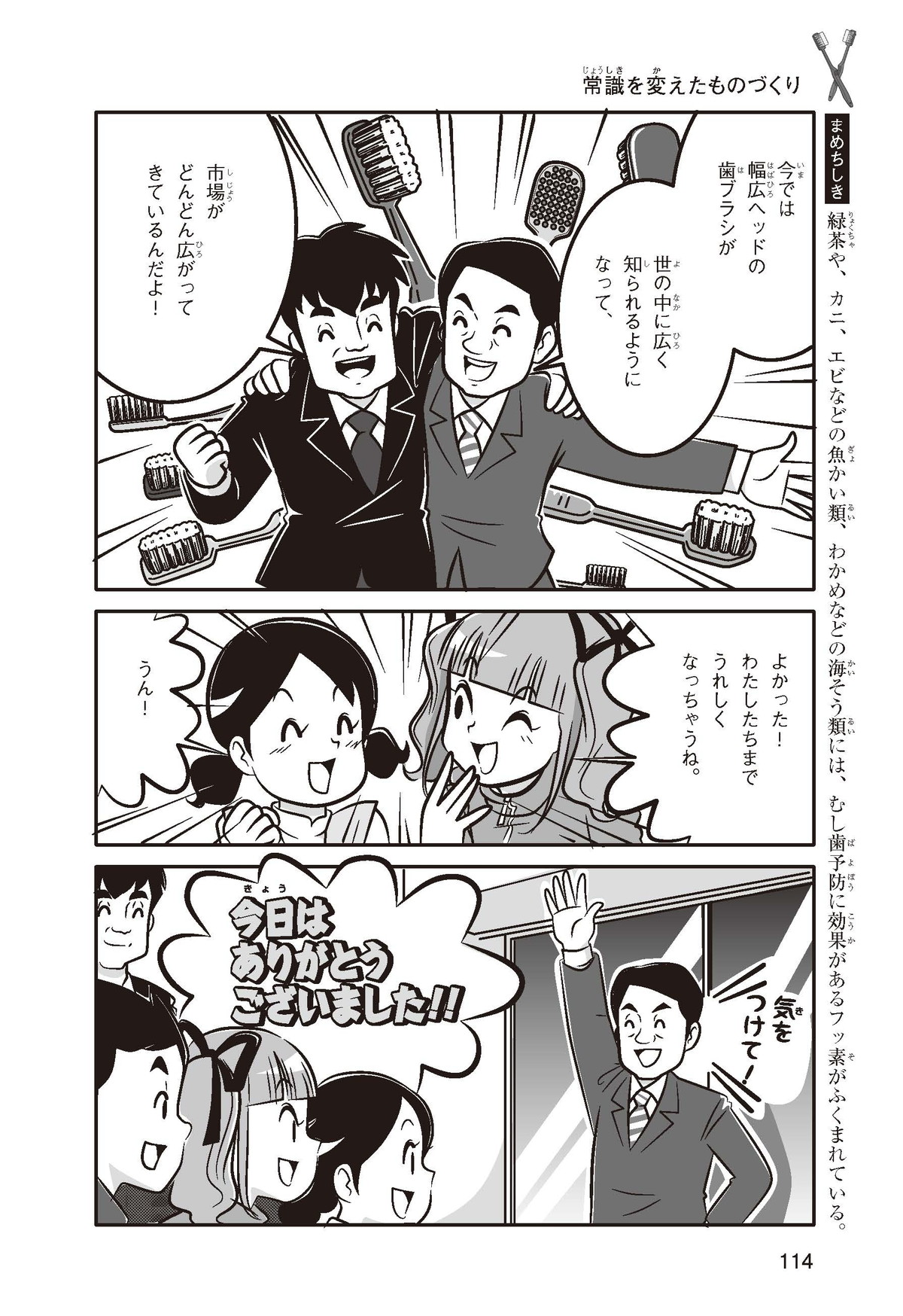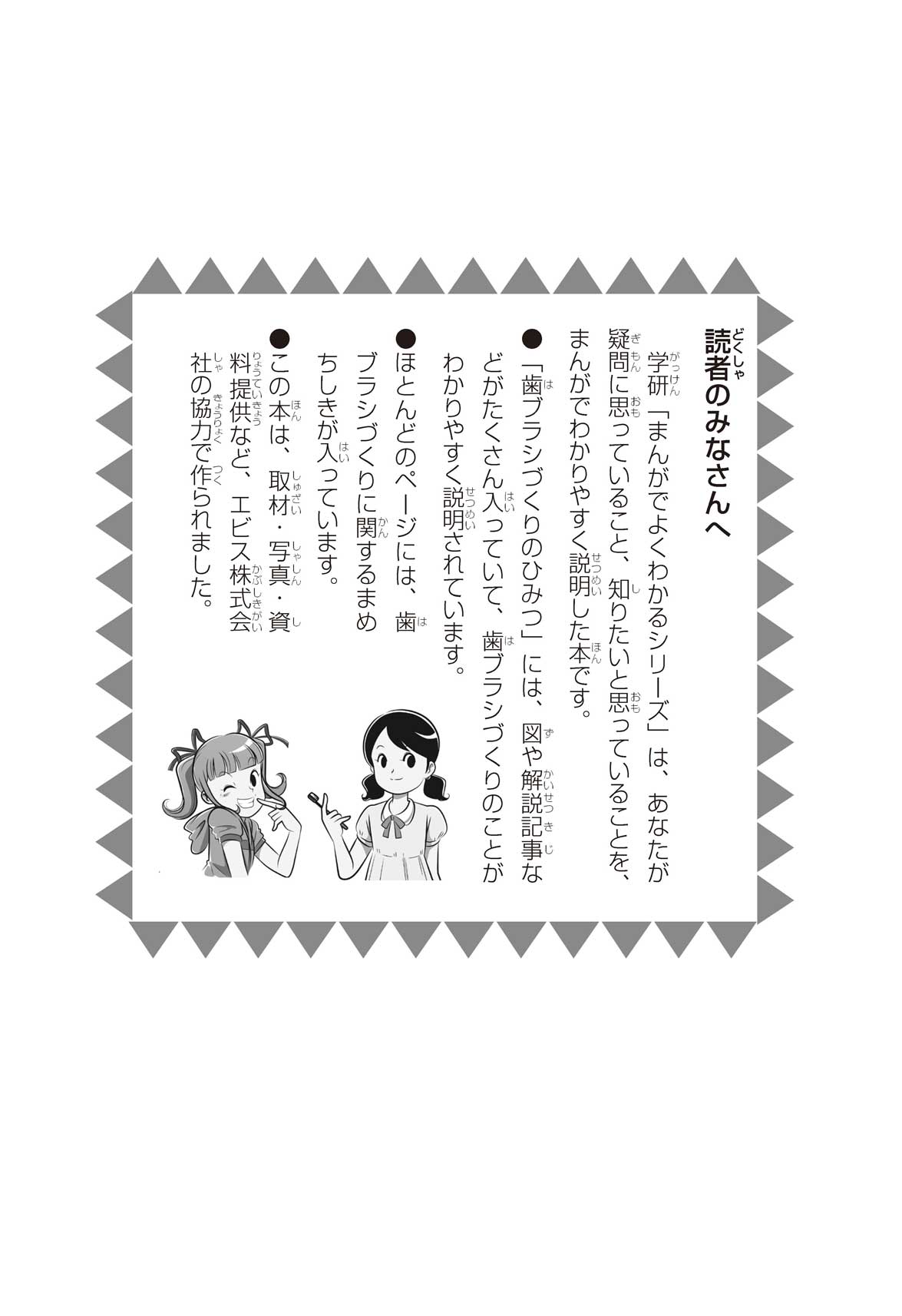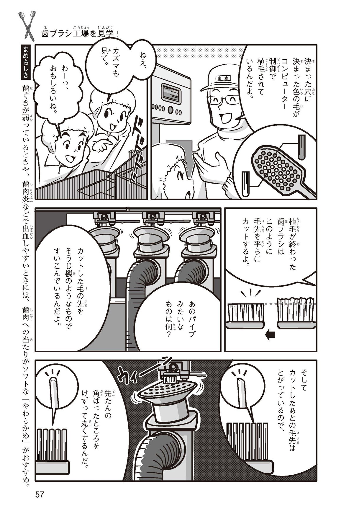 アオイは小学5年生の女の子。毎日ちゃんと歯みがきしていたはずなのに、むし歯になってしまったよ。歯医者さんが言うには、長い間同じ歯ブラシを使っていると、だんだん毛先が広がって、きちんと磨けなくなってしまうんだって。アオイはきれいな歯を手に入れるため、自分にぴったりの歯ブラシを探すことになったよ。歯ブラシはどんな種類があるのかな?どうやって作られているのかな?