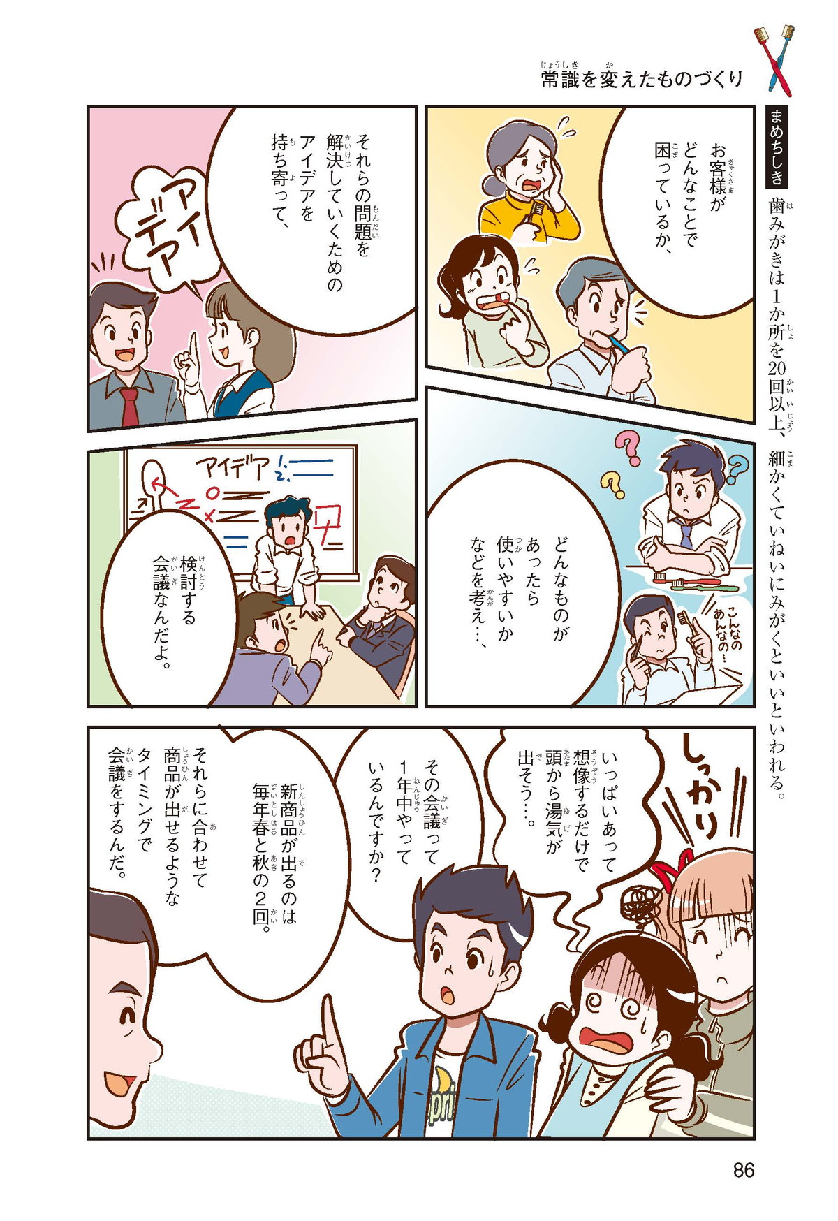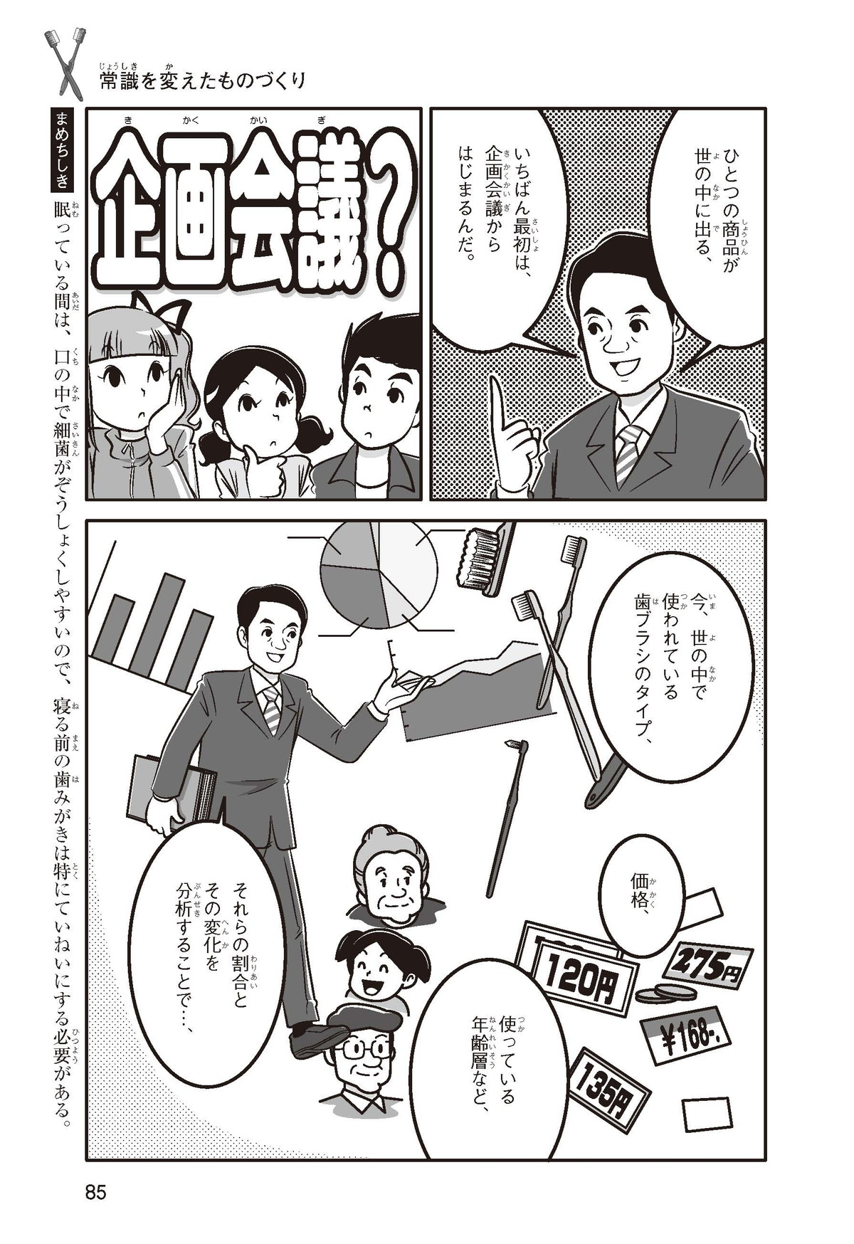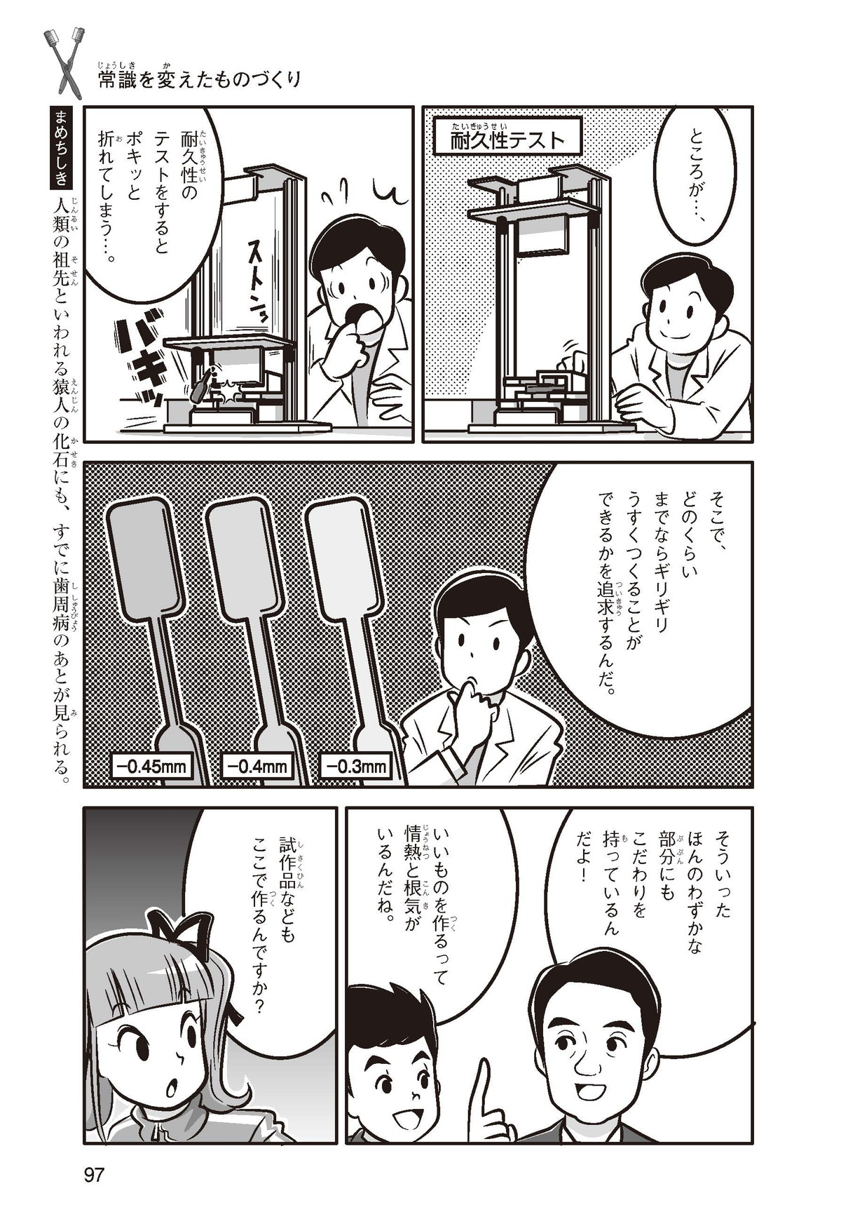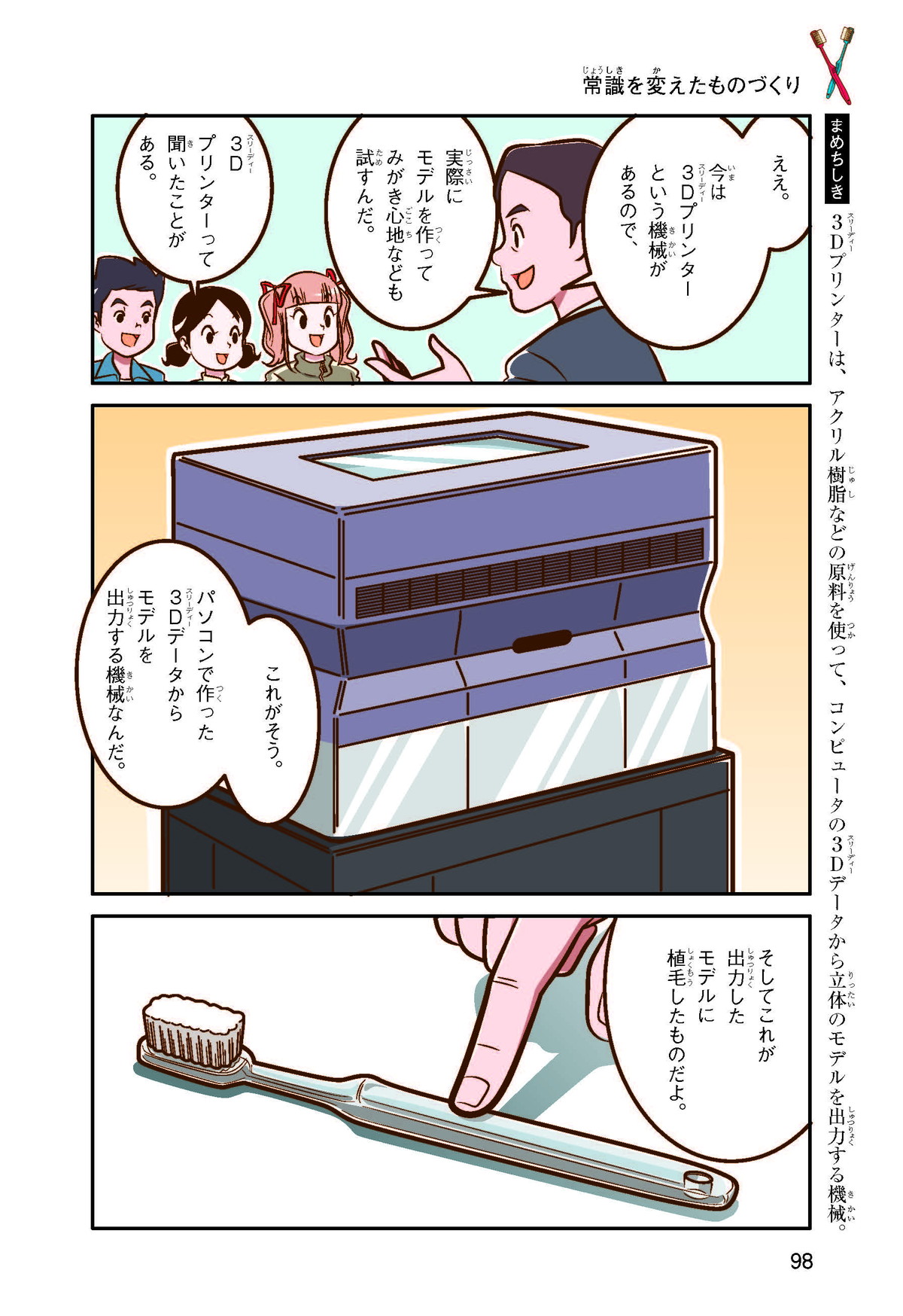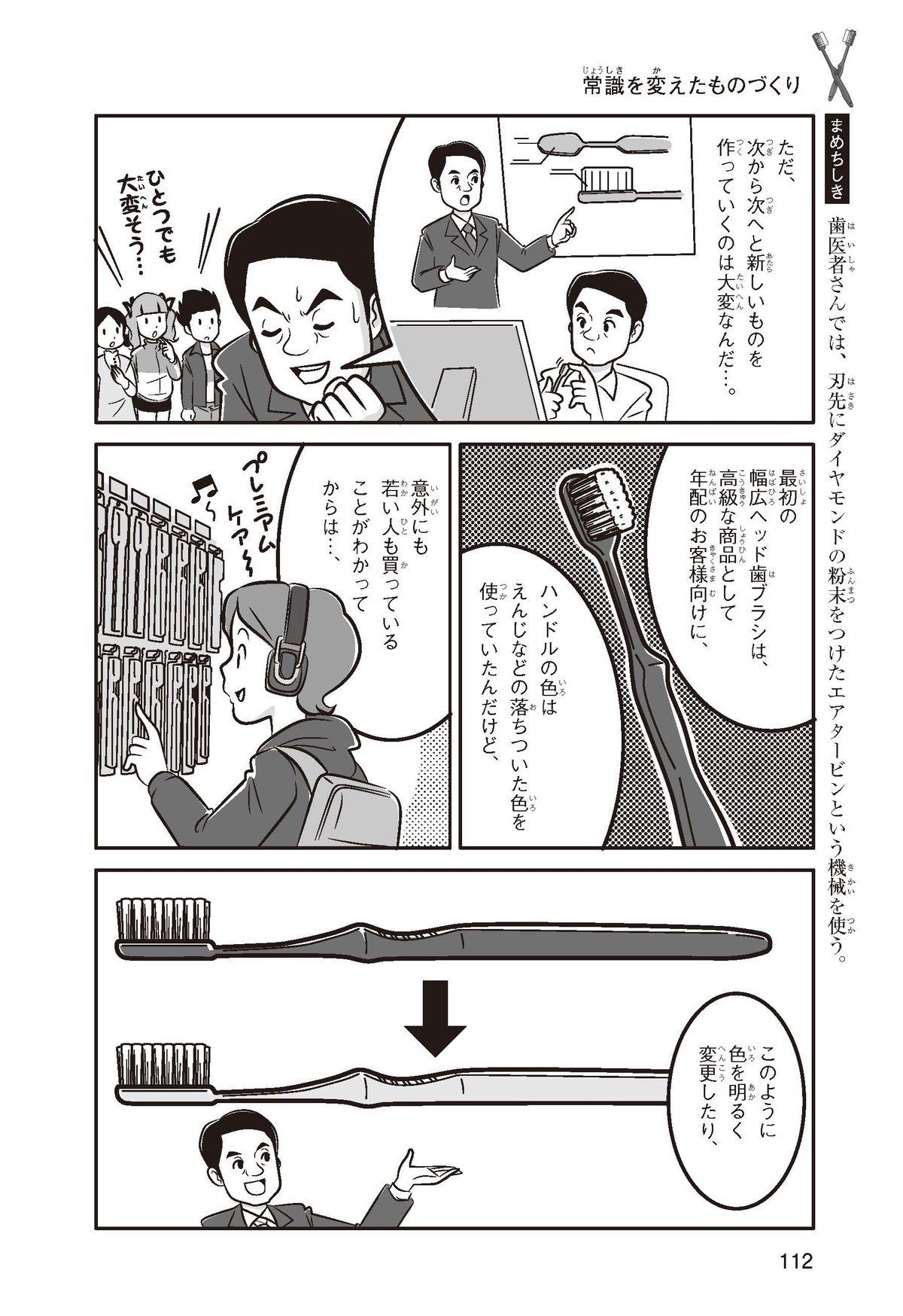 アオイは小学5年生の女の子。毎日ちゃんと歯みがきしていたはずなのに、むし歯になってしまったよ。歯医者さんが言うには、長い間同じ歯ブラシを使っていると、だんだん毛先が広がって、きちんと磨けなくなってしまうんだって。アオイはきれいな歯を手に入れるため、自分にぴったりの歯ブラシを探すことになったよ。歯ブラシはどんな種類があるのかな?どうやって作られているのかな?