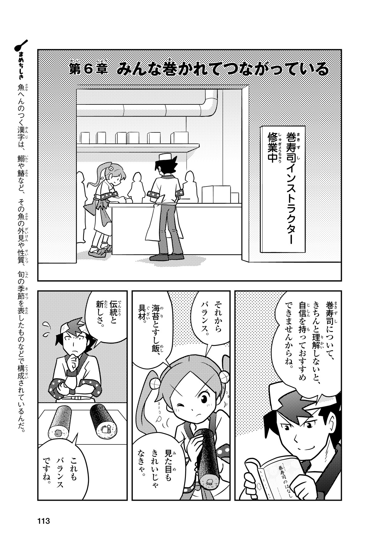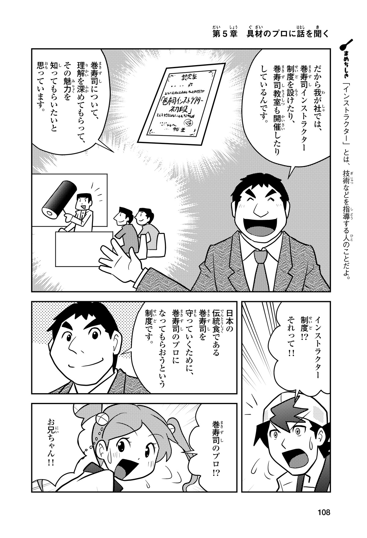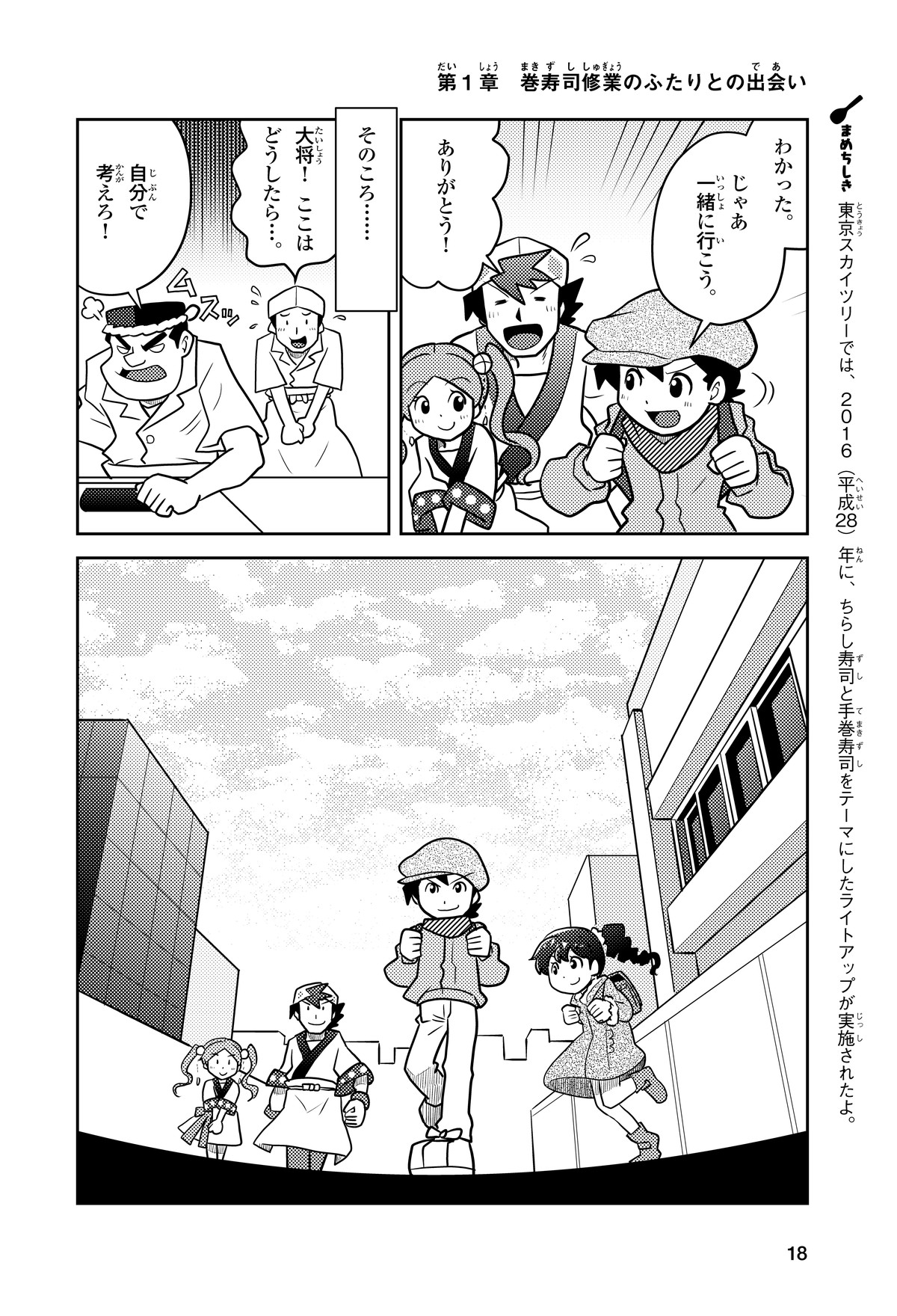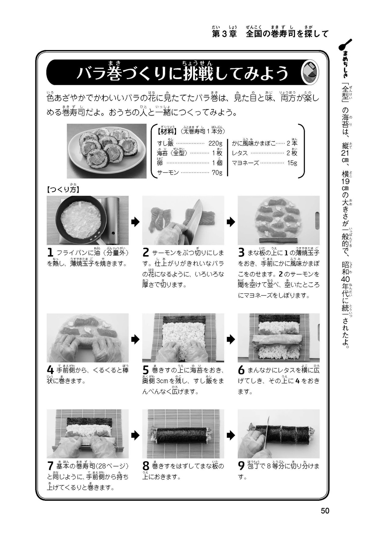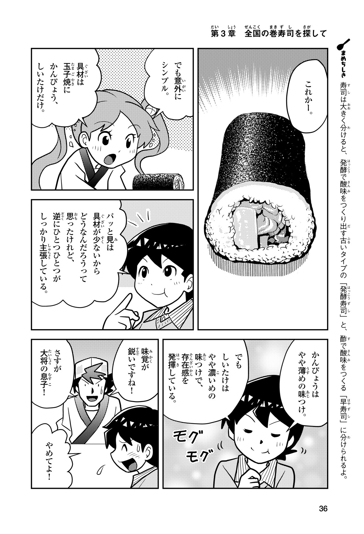 ツカサとマキは小学5年生。ツカサの家はお寿司屋さんをやっているよ。ある日、ふたりが下校していると、中国から巻寿司(まきずし)作りの修業(しゅぎょう)のためにやってきたリ・ノリとリ・シャリの兄妹(きょうだい)に遭遇(そうぐう)! ノリとシャリの兄妹が修業先を探して困っているのを見かねたツカサは、お寿司屋さんの大将をやっているお父さんに、ふたりに修業をつけてくれるようにお願いするよ。さっそくお父さんか巻寿司の歴史や、巻寿司作りの基本を教わったツカサ、マキ、ノリ、シャリの4人は、日本各地の個性(こせい)ある巻寿司をたずねたり、巻寿司の具材(ぐざい)の工場を見学しに行ったりと、本格的な巻寿司作りの修業をスタート! おいしい巻寿司作りのひみつをみつけていくよ!