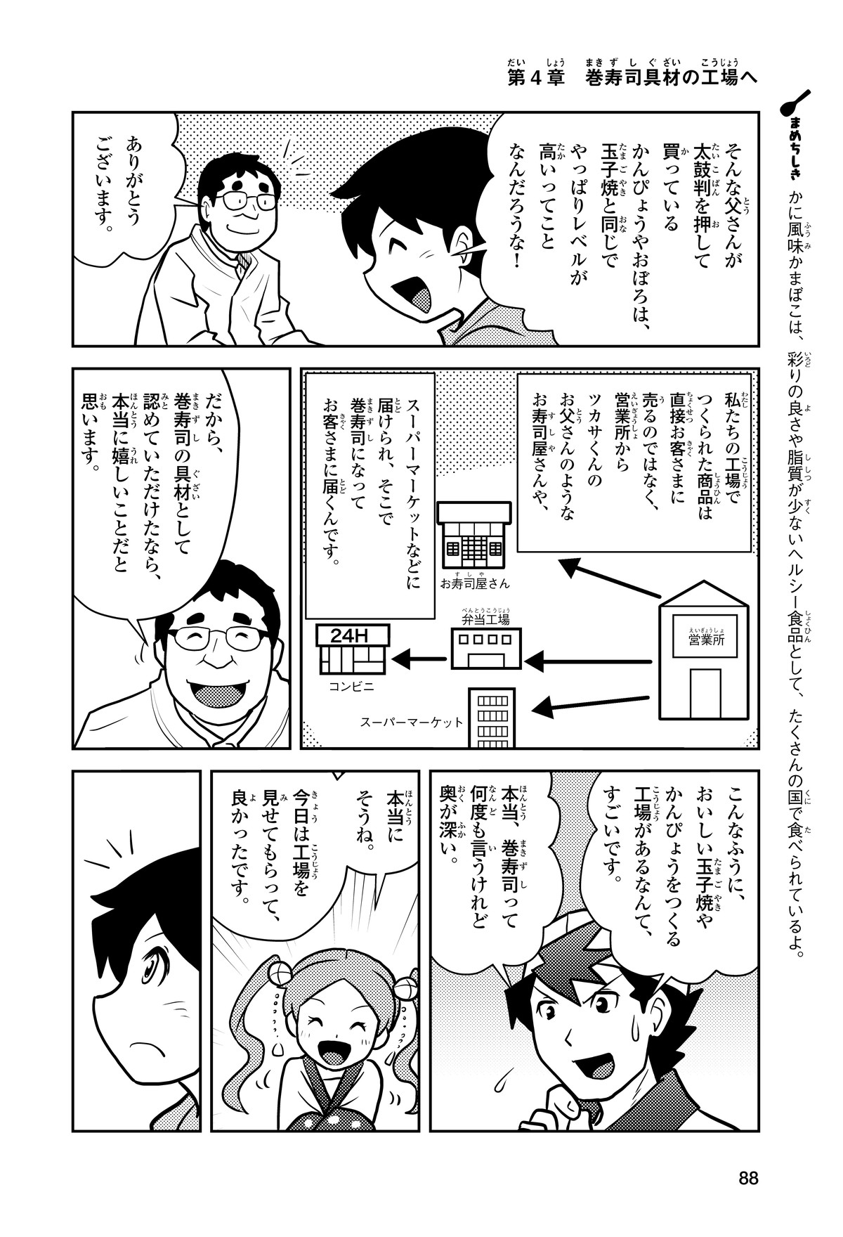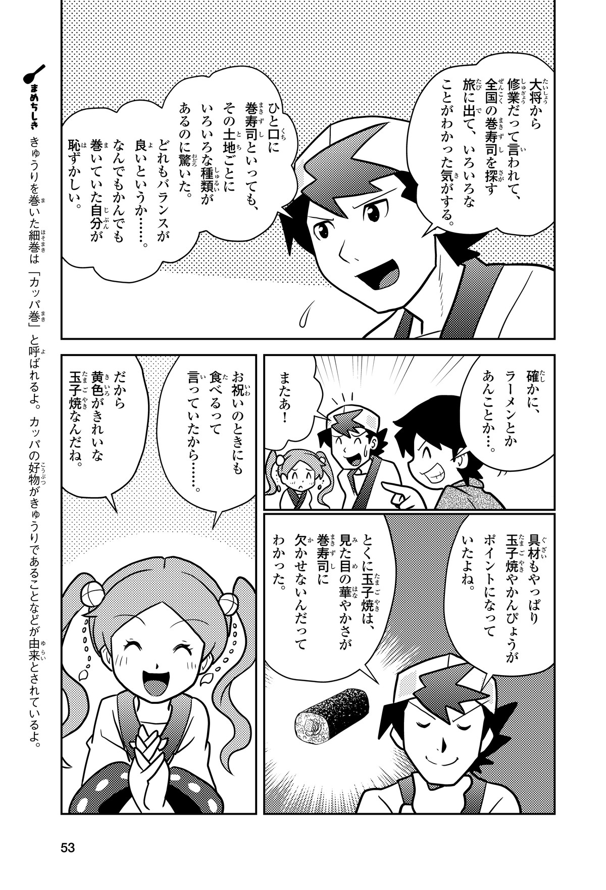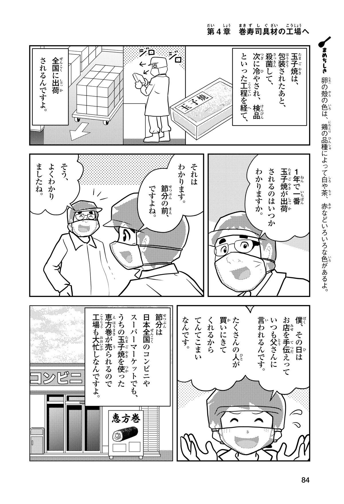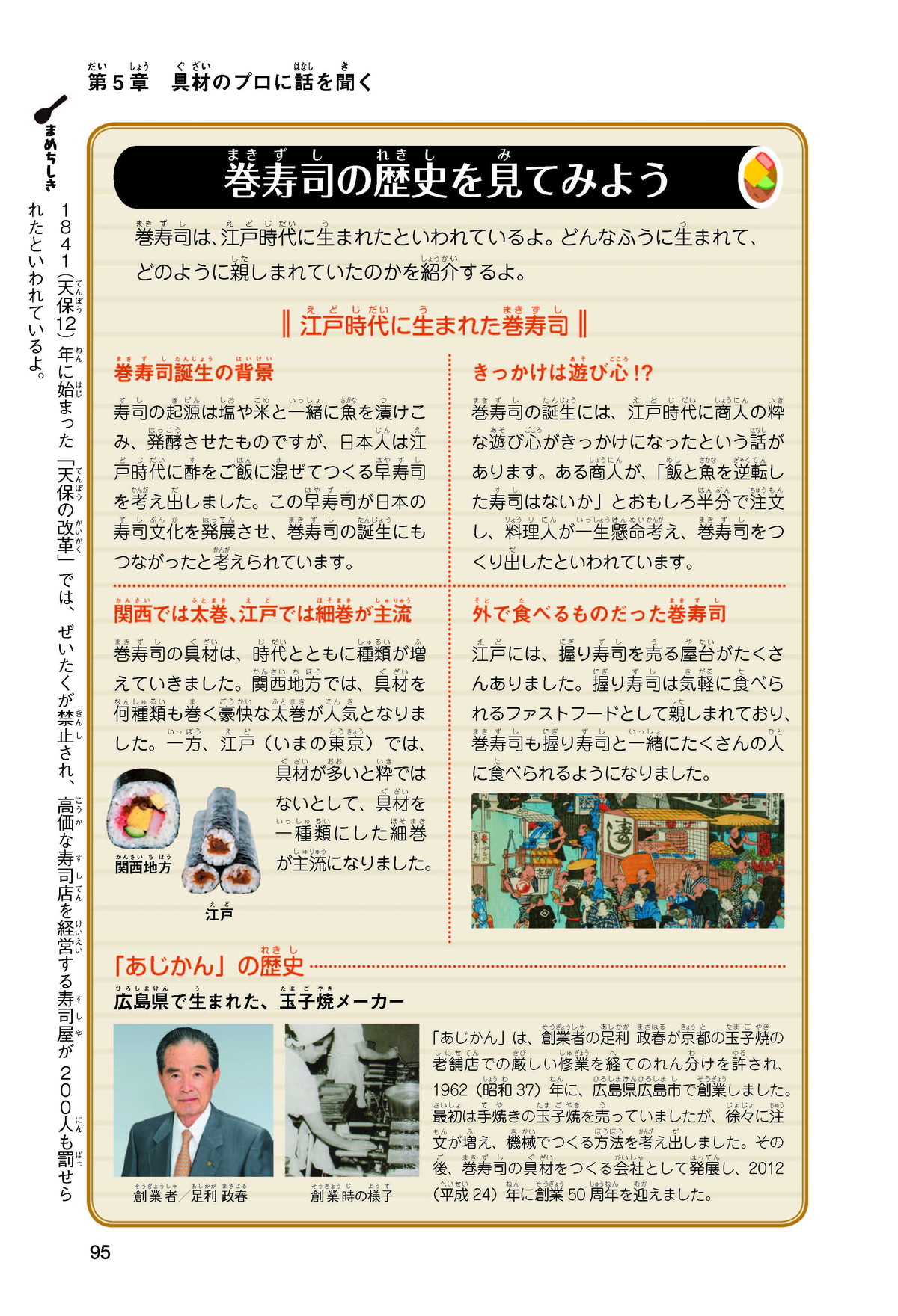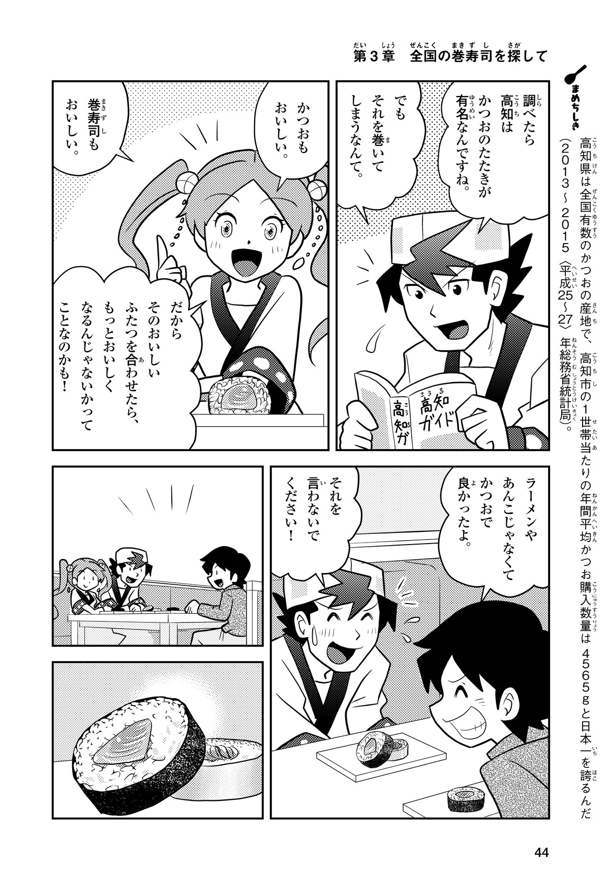 ツカサとマキは小学5年生。ツカサの家はお寿司屋さんをやっているよ。ある日、ふたりが下校していると、中国から巻寿司(まきずし)作りの修業(しゅぎょう)のためにやってきたリ・ノリとリ・シャリの兄妹(きょうだい)に遭遇(そうぐう)! ノリとシャリの兄妹が修業先を探して困っているのを見かねたツカサは、お寿司屋さんの大将をやっているお父さんに、ふたりに修業をつけてくれるようにお願いするよ。さっそくお父さんか巻寿司の歴史や、巻寿司作りの基本を教わったツカサ、マキ、ノリ、シャリの4人は、日本各地の個性(こせい)ある巻寿司をたずねたり、巻寿司の具材(ぐざい)の工場を見学しに行ったりと、本格的な巻寿司作りの修業をスタート! おいしい巻寿司作りのひみつをみつけていくよ!