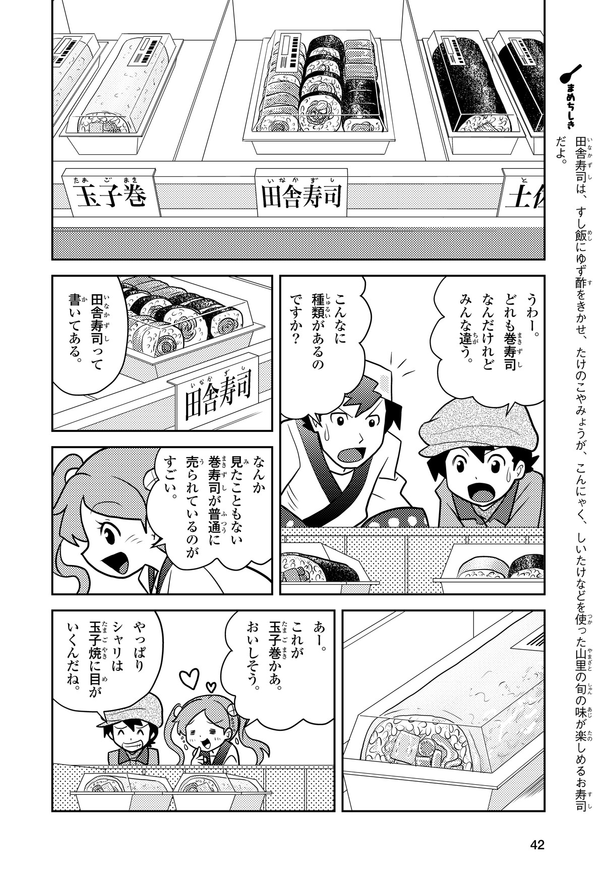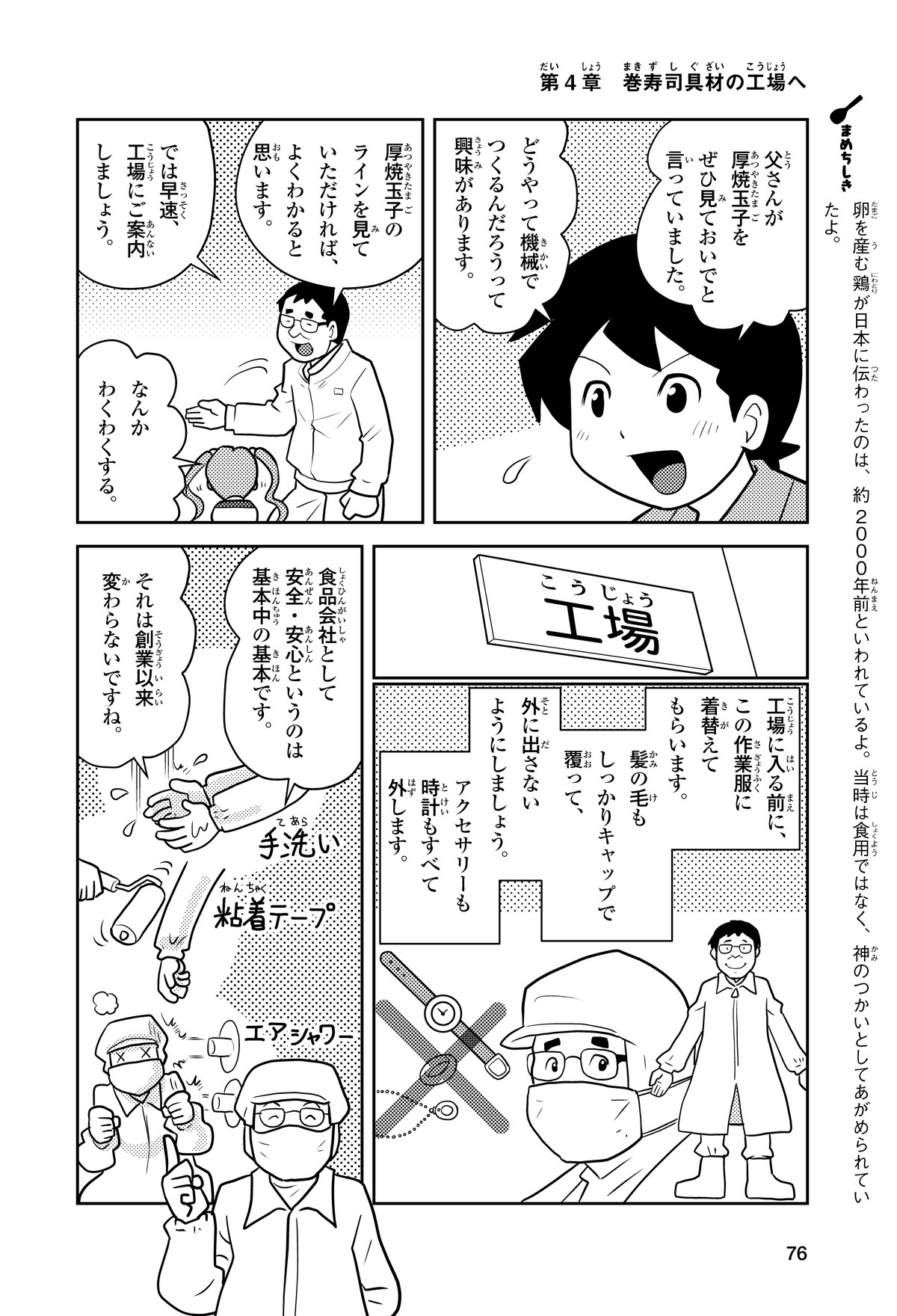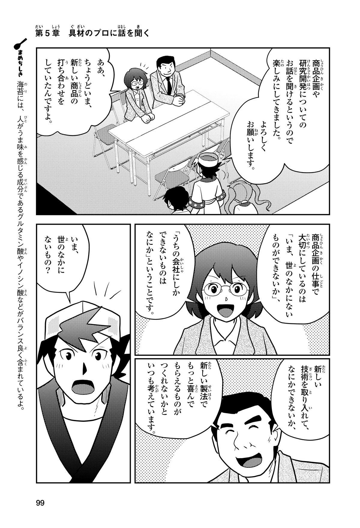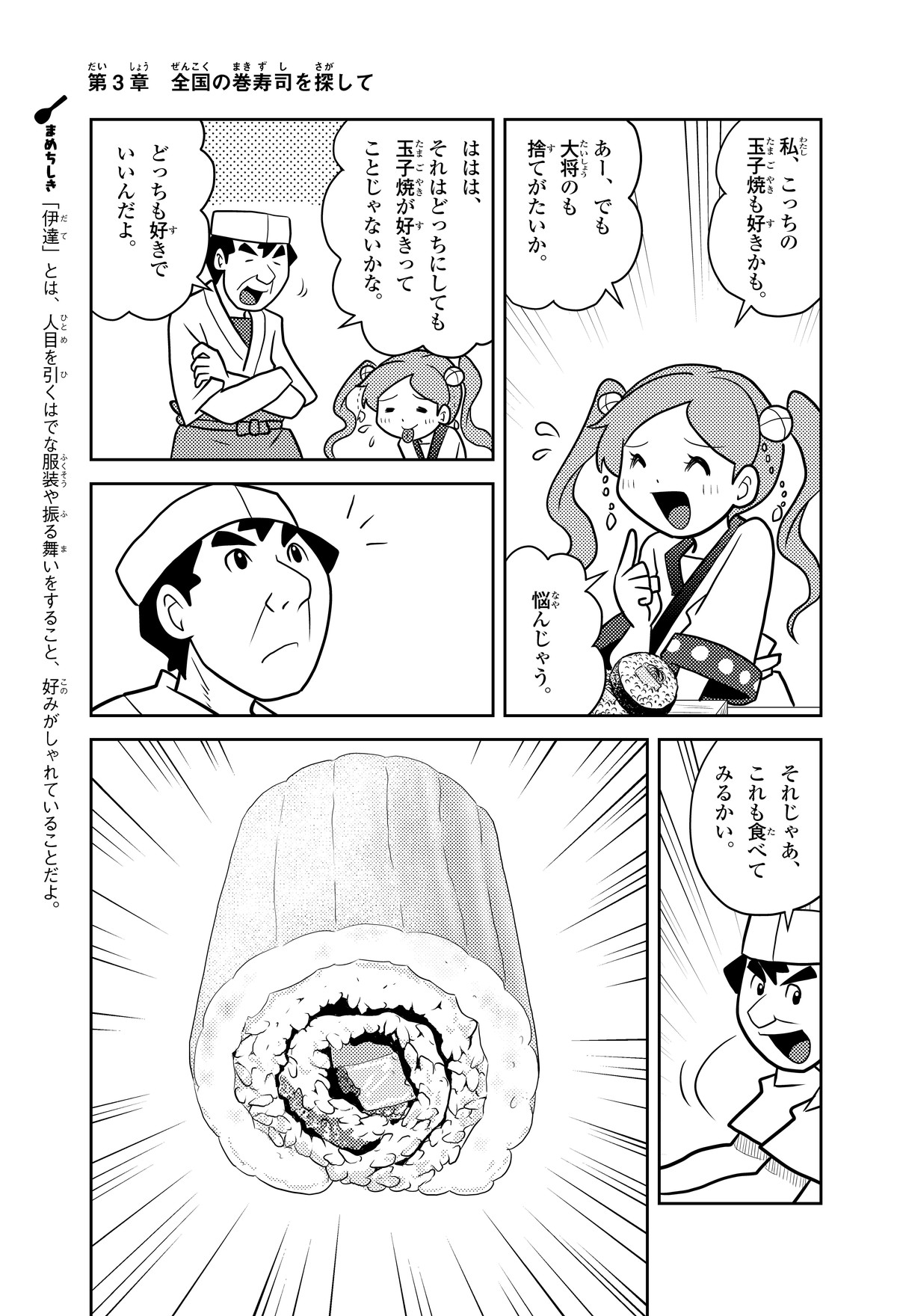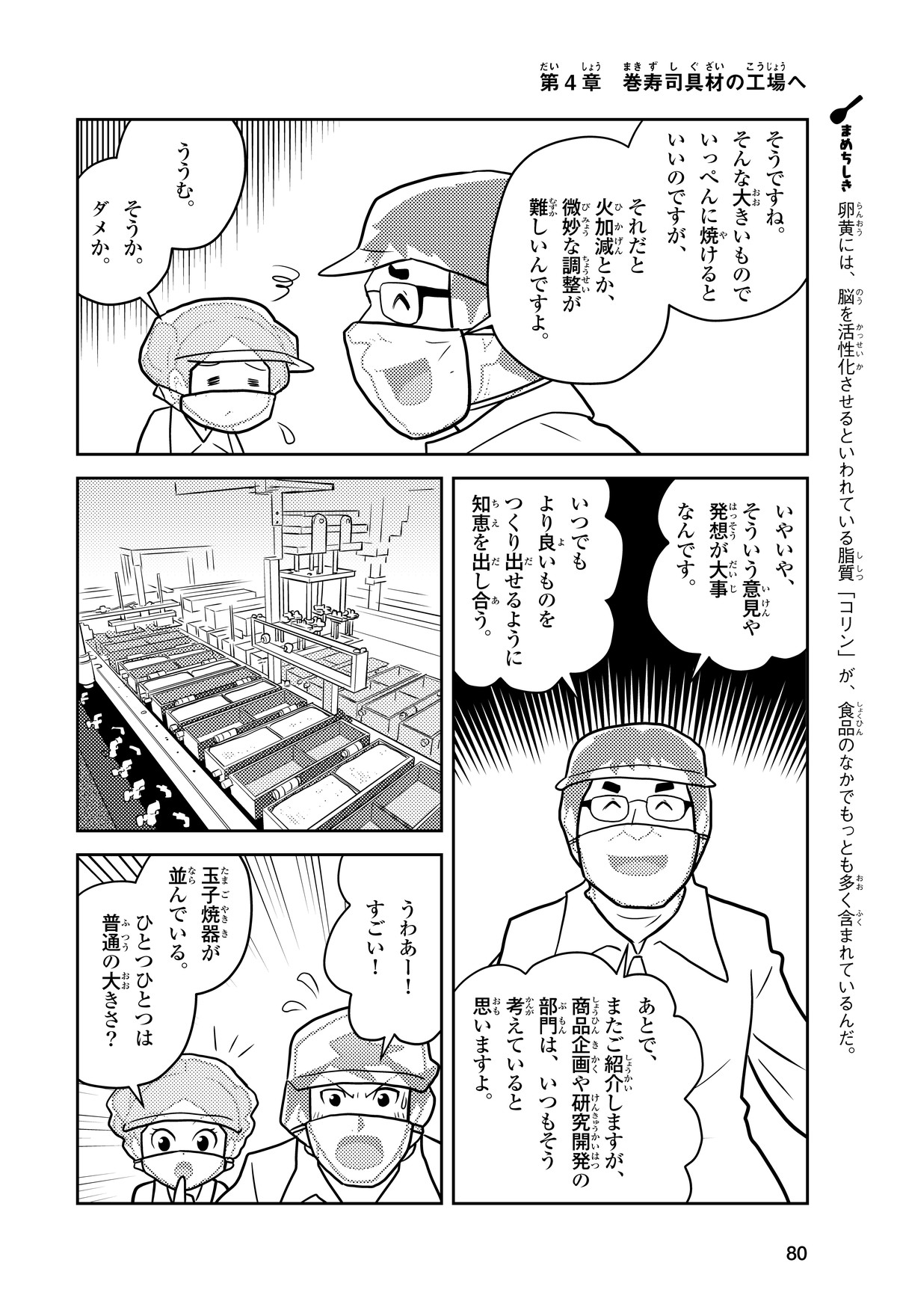 ツカサとマキは小学5年生。ツカサの家はお寿司屋さんをやっているよ。ある日、ふたりが下校していると、中国から巻寿司(まきずし)作りの修業(しゅぎょう)のためにやってきたリ・ノリとリ・シャリの兄妹(きょうだい)に遭遇(そうぐう)! ノリとシャリの兄妹が修業先を探して困っているのを見かねたツカサは、お寿司屋さんの大将をやっているお父さんに、ふたりに修業をつけてくれるようにお願いするよ。さっそくお父さんか巻寿司の歴史や、巻寿司作りの基本を教わったツカサ、マキ、ノリ、シャリの4人は、日本各地の個性(こせい)ある巻寿司をたずねたり、巻寿司の具材(ぐざい)の工場を見学しに行ったりと、本格的な巻寿司作りの修業をスタート! おいしい巻寿司作りのひみつをみつけていくよ!