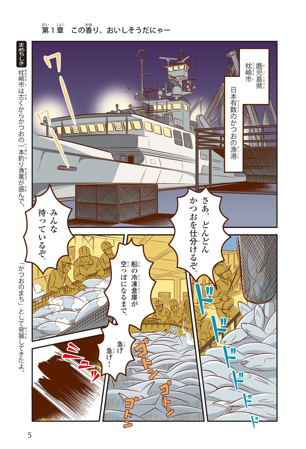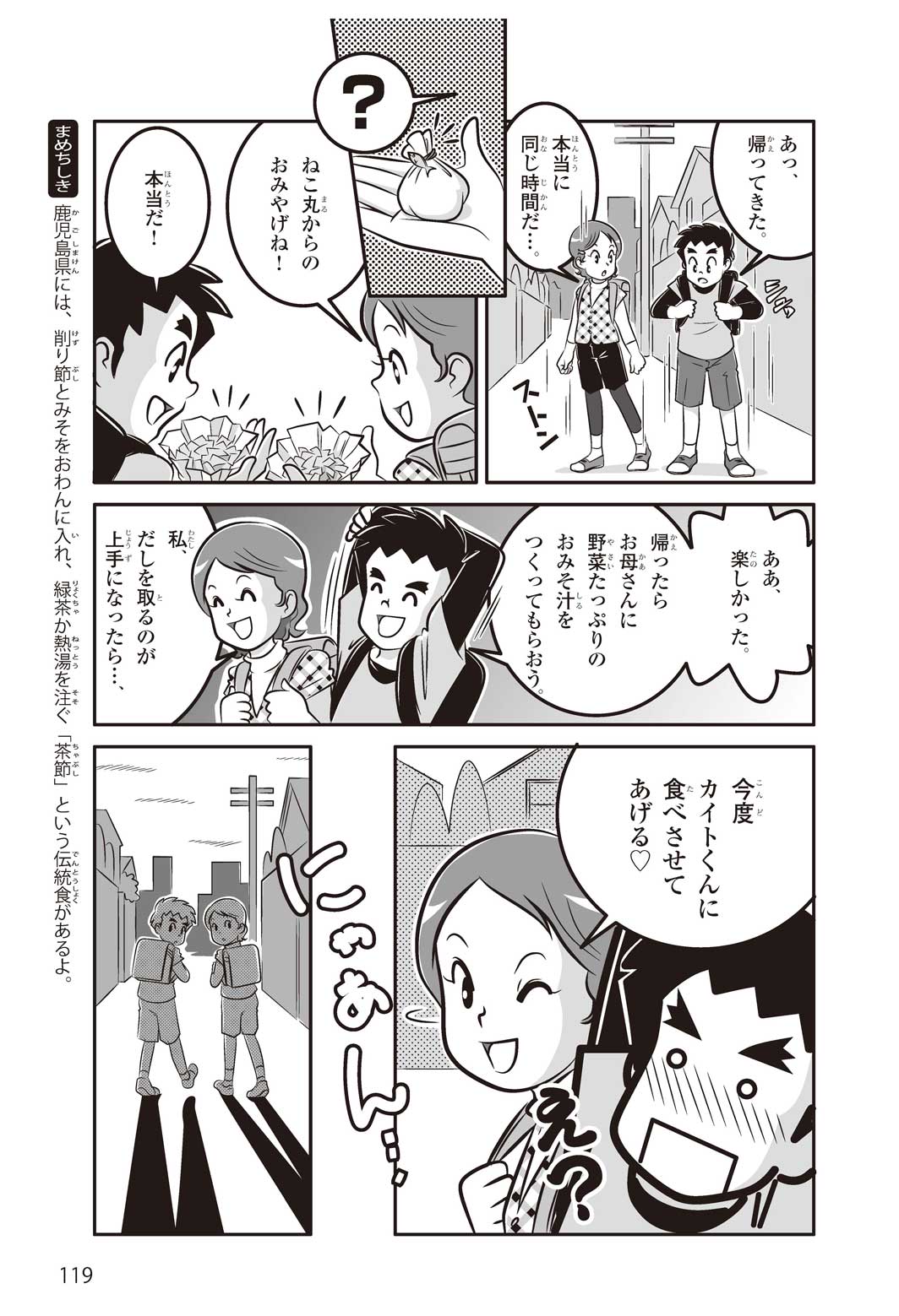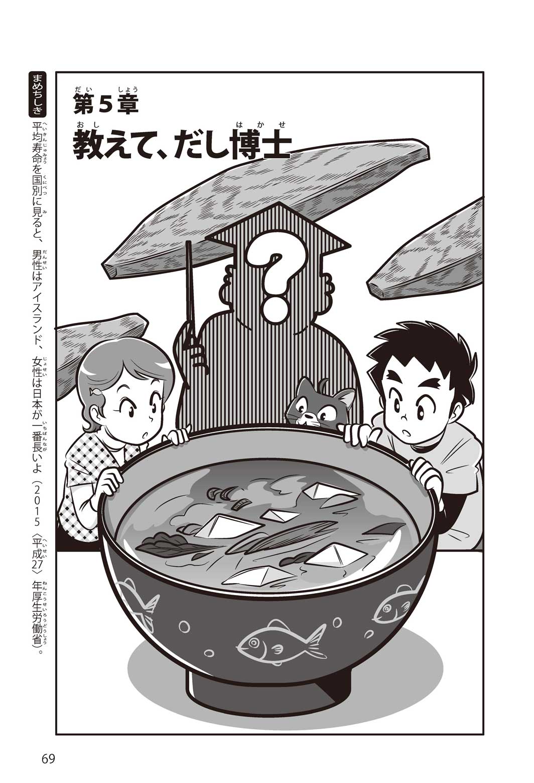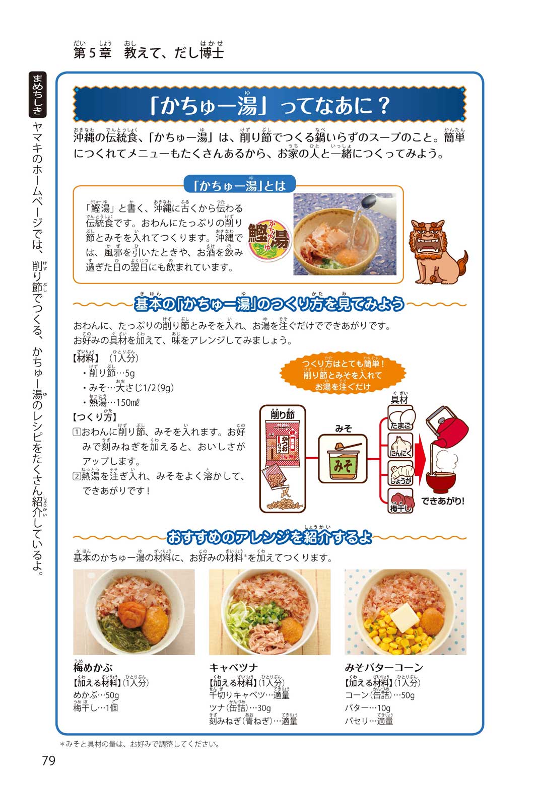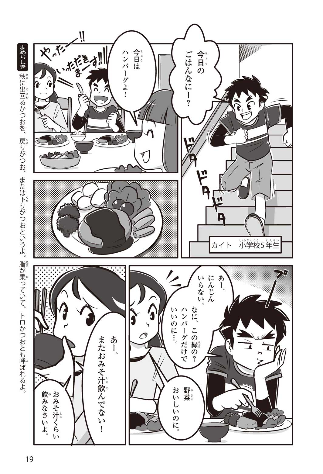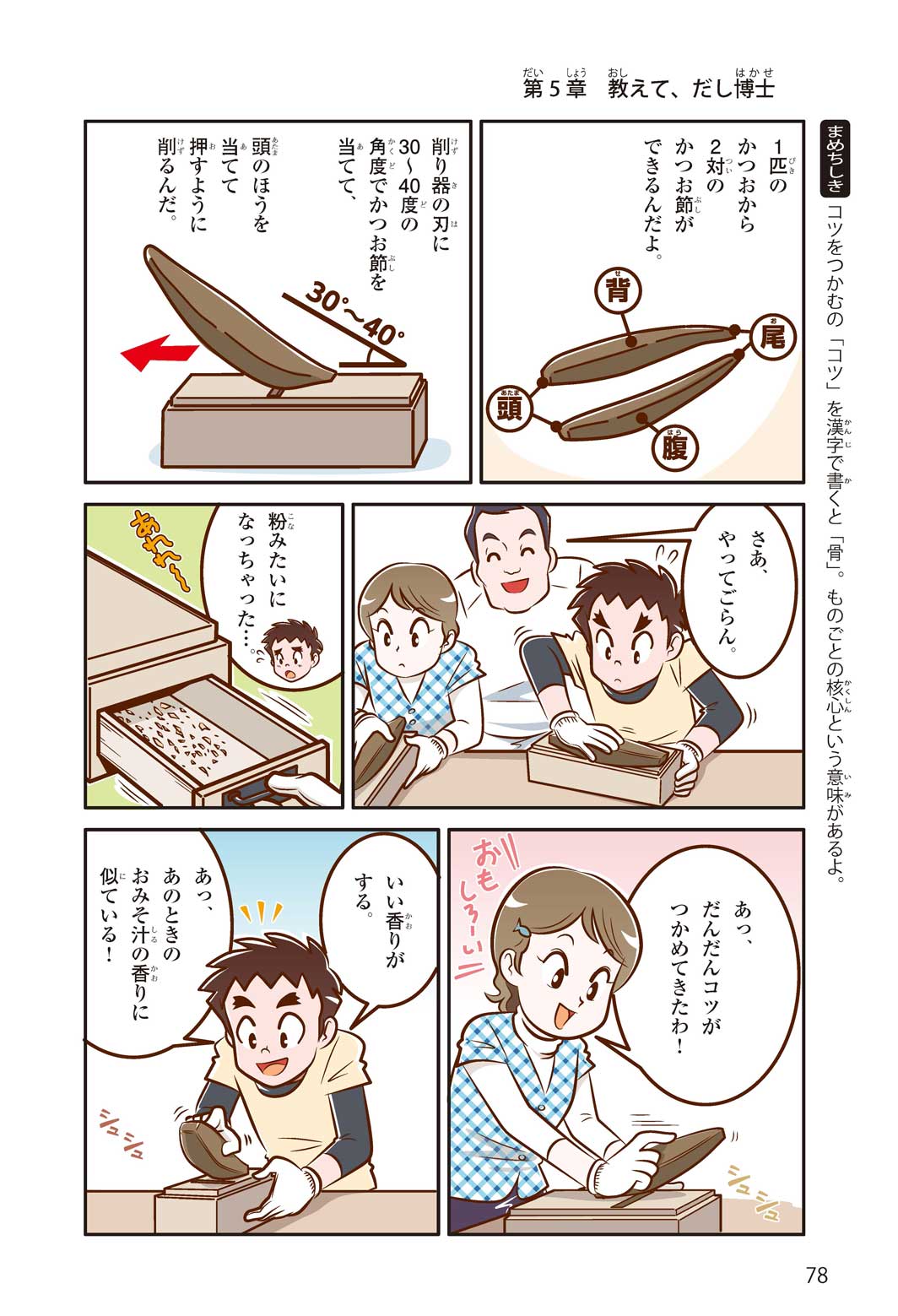 小学5年生の男の子、カイトは、野菜が苦手(にがて)で、家でも学校でも、野菜がメインの料理は残してしまいがち……。それに比べて好物(こうぶつ)は、ハンバーグにカレーライス、ラーメン、焼肉と、野菜の少ない外国の料理ばかり! でも、ある日の夕食で、空腹(くうふく)といい香りにつられてなにげなく食べた野菜のお味噌汁(みそしる)が、とってもおいしいことに気付いたよ! その夜カイトの前に、不思議(ふしぎ)なねこが出現(しゅつげん)。ねこは、だしのおいしさを子どもたちに伝えるためにやってきた、かつお節(ぶし)の妖精(ようせい)、ねこ丸だった。カイトは、ねこ丸に連れられて、クラスメイトのマキちゃんと一緒に、大昔にタイムスリップしたり、かつお節とだしの研究所へ行ったりと、かつお節やだしの歴史や作られ方などのひみつをたずねていくよ!