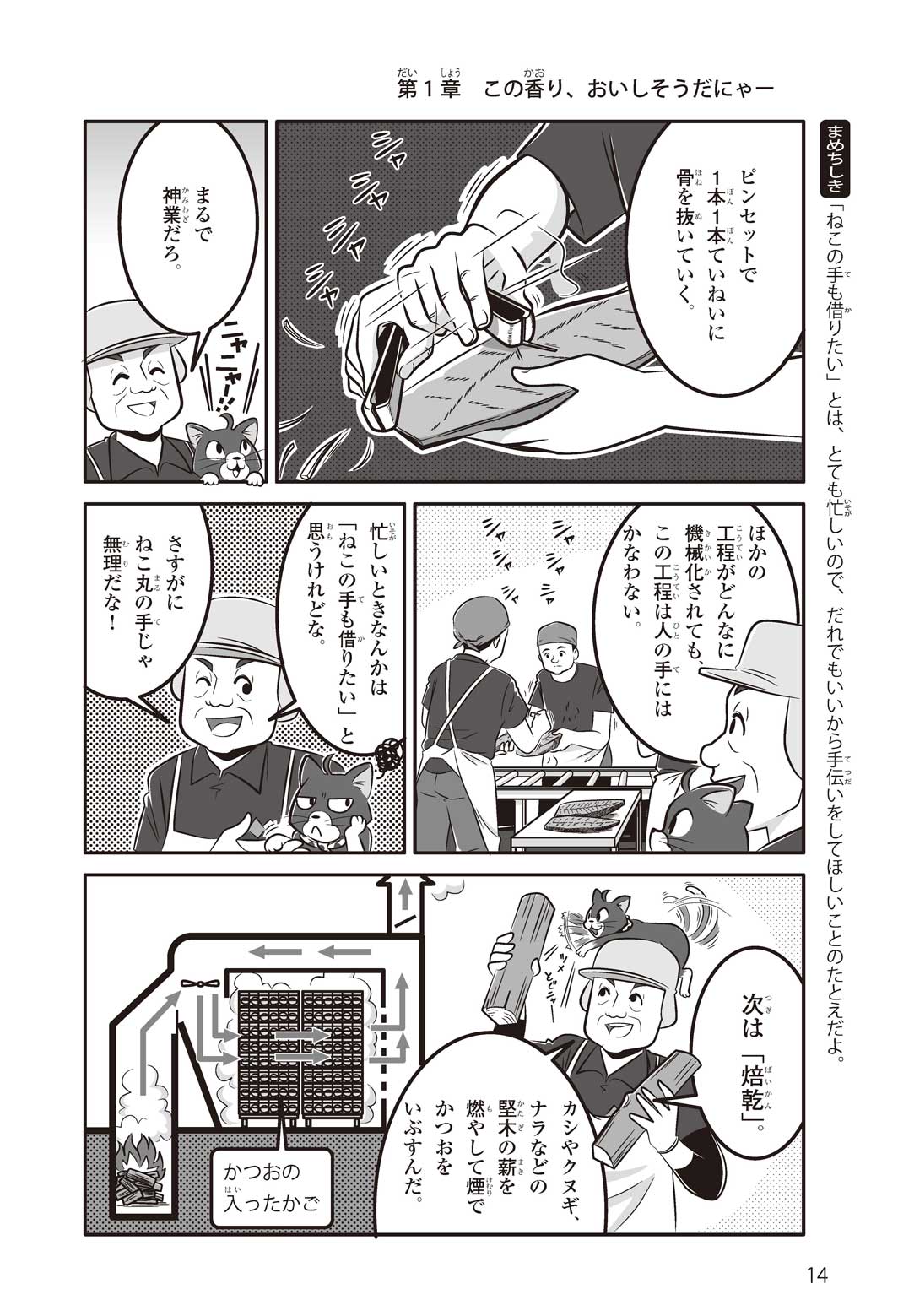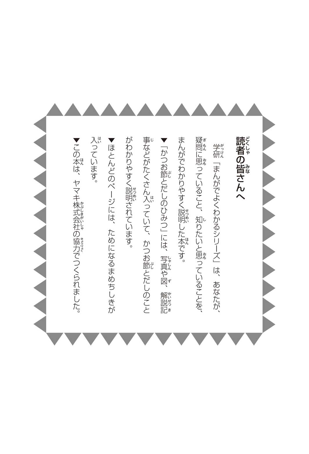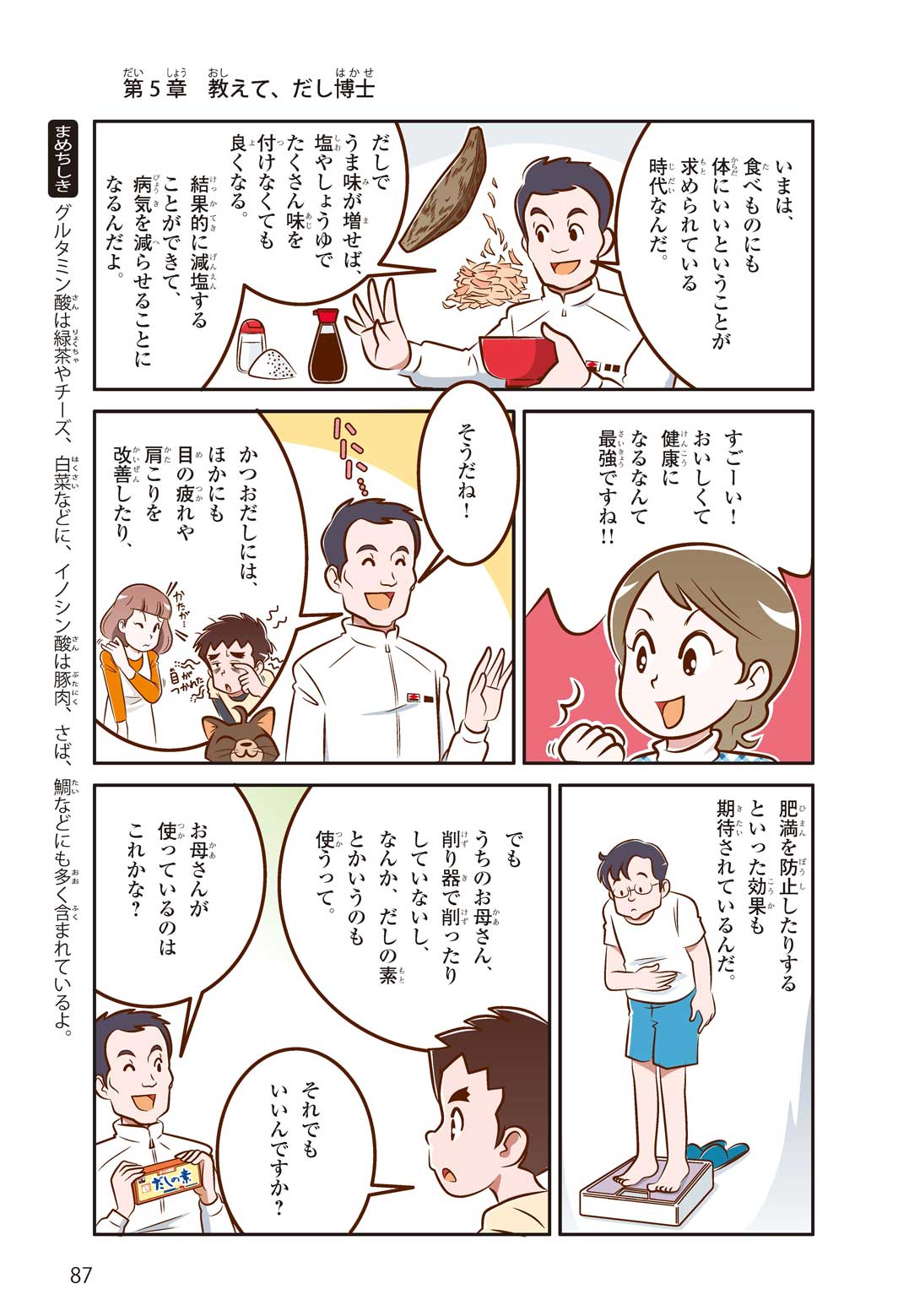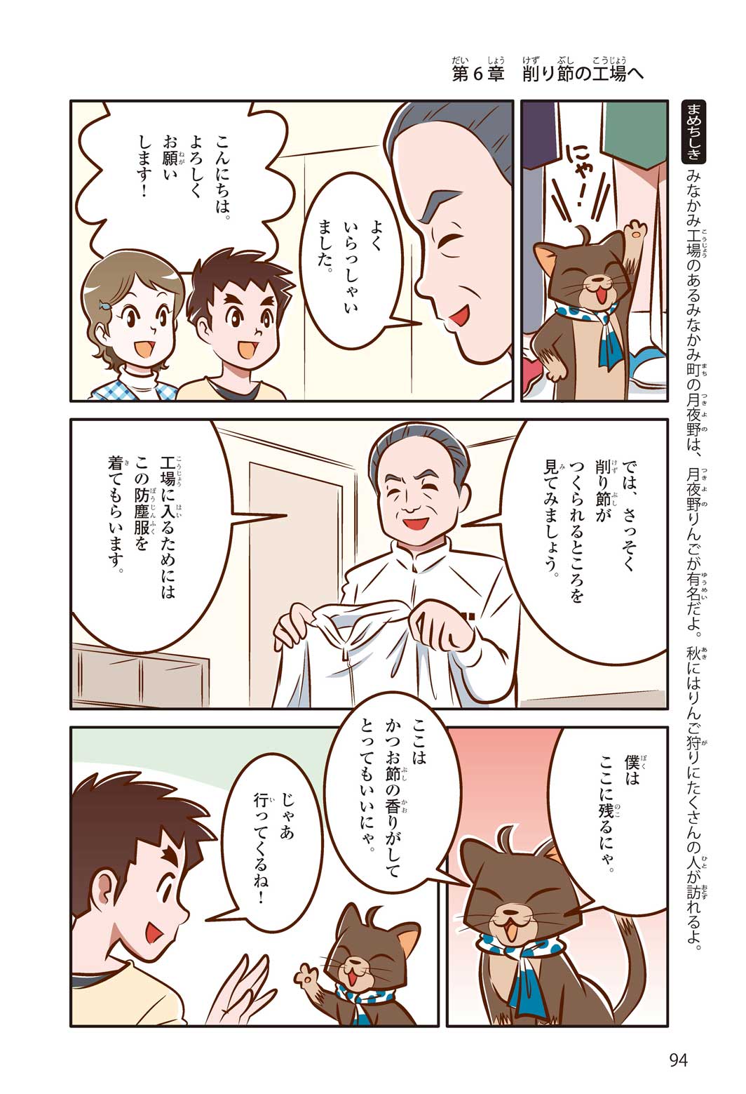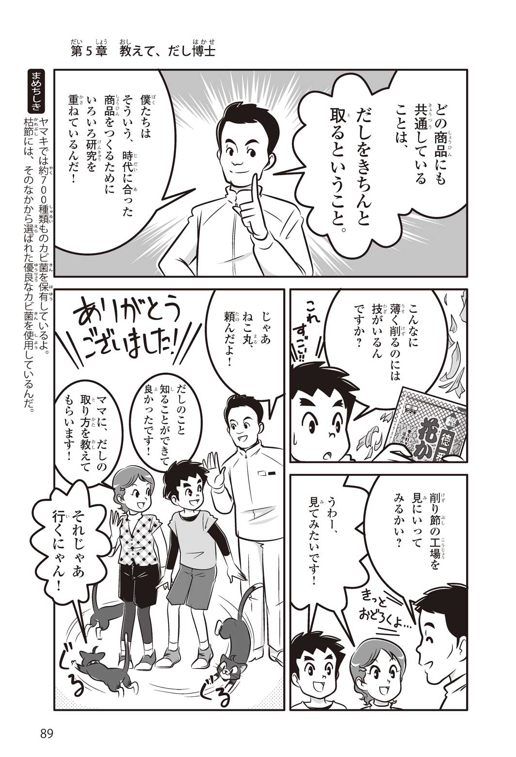 小学5年生の男の子、カイトは、野菜が苦手(にがて)で、家でも学校でも、野菜がメインの料理は残してしまいがち……。それに比べて好物(こうぶつ)は、ハンバーグにカレーライス、ラーメン、焼肉と、野菜の少ない外国の料理ばかり! でも、ある日の夕食で、空腹(くうふく)といい香りにつられてなにげなく食べた野菜のお味噌汁(みそしる)が、とってもおいしいことに気付いたよ! その夜カイトの前に、不思議(ふしぎ)なねこが出現(しゅつげん)。ねこは、だしのおいしさを子どもたちに伝えるためにやってきた、かつお節(ぶし)の妖精(ようせい)、ねこ丸だった。カイトは、ねこ丸に連れられて、クラスメイトのマキちゃんと一緒に、大昔にタイムスリップしたり、かつお節とだしの研究所へ行ったりと、かつお節やだしの歴史や作られ方などのひみつをたずねていくよ!