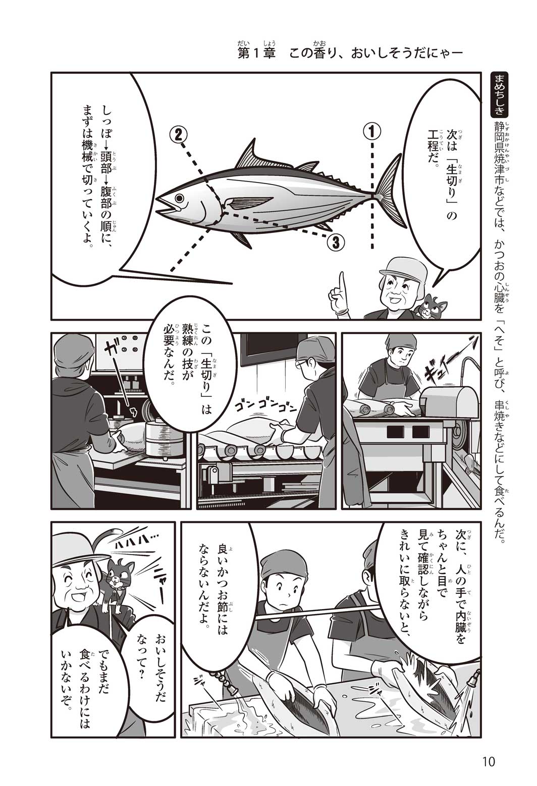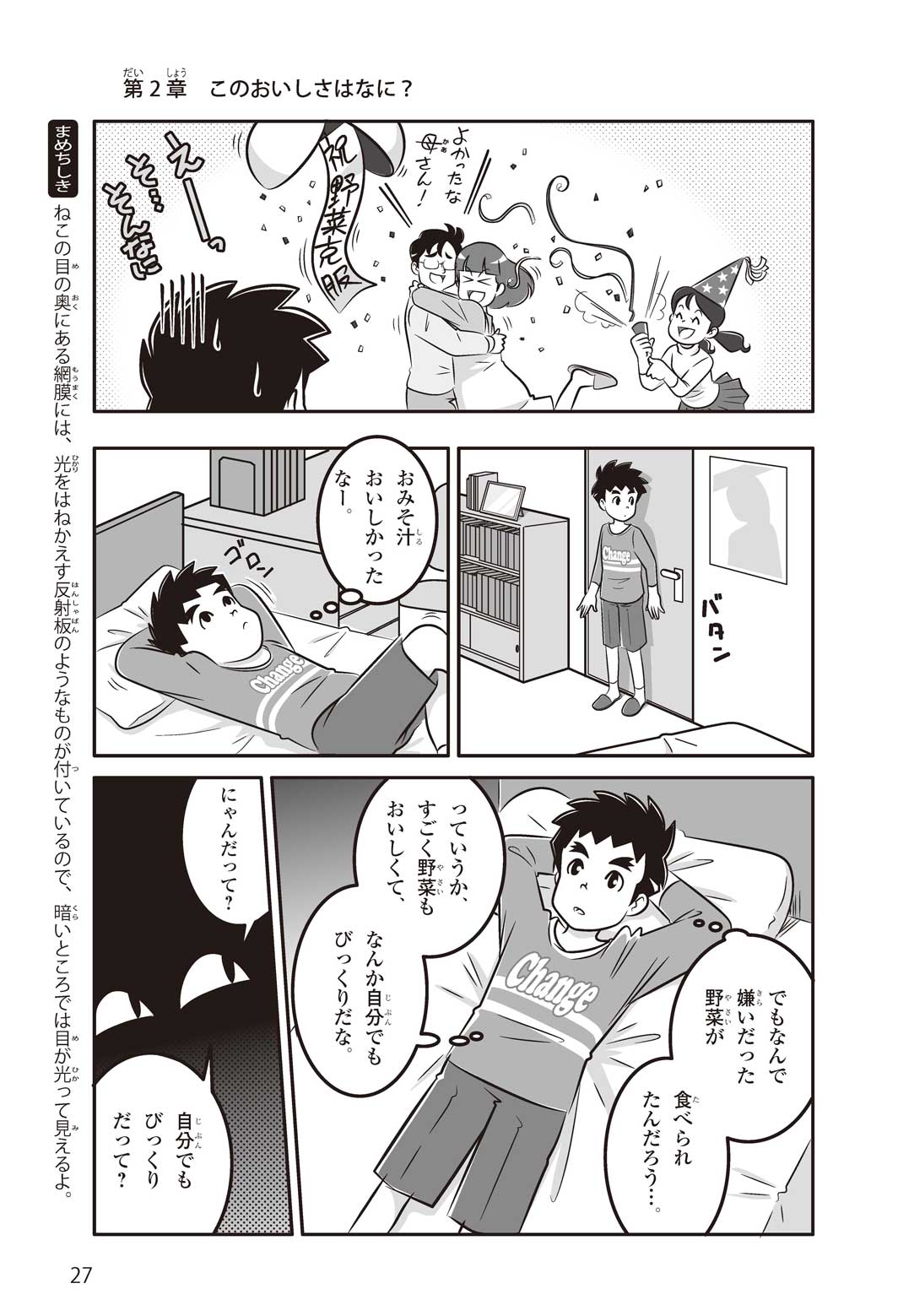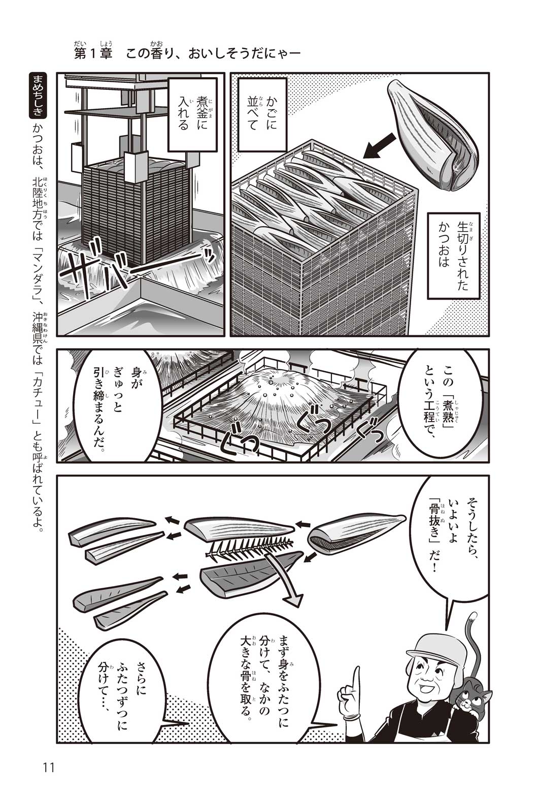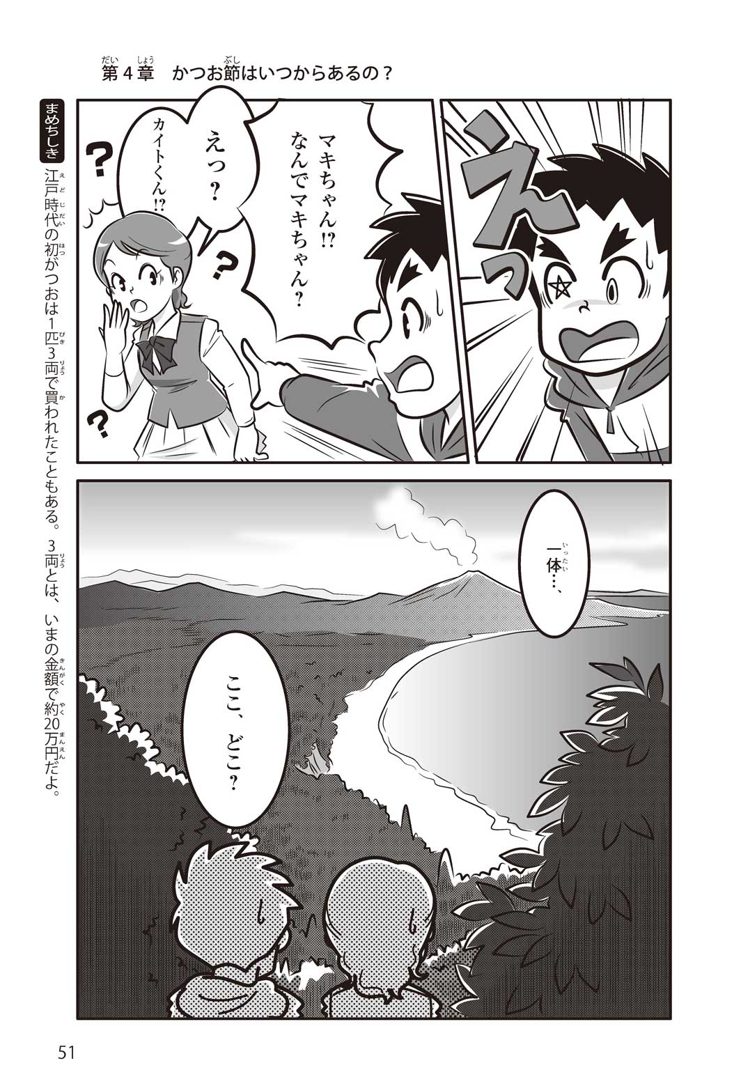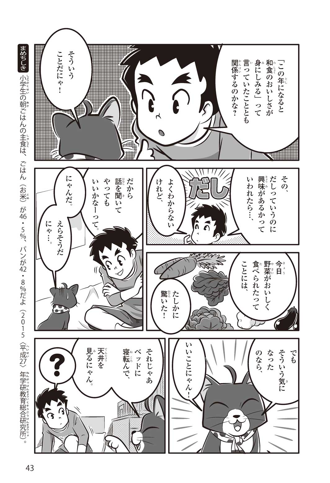 小学5年生の男の子、カイトは、野菜が苦手(にがて)で、家でも学校でも、野菜がメインの料理は残してしまいがち……。それに比べて好物(こうぶつ)は、ハンバーグにカレーライス、ラーメン、焼肉と、野菜の少ない外国の料理ばかり! でも、ある日の夕食で、空腹(くうふく)といい香りにつられてなにげなく食べた野菜のお味噌汁(みそしる)が、とってもおいしいことに気付いたよ! その夜カイトの前に、不思議(ふしぎ)なねこが出現(しゅつげん)。ねこは、だしのおいしさを子どもたちに伝えるためにやってきた、かつお節(ぶし)の妖精(ようせい)、ねこ丸だった。カイトは、ねこ丸に連れられて、クラスメイトのマキちゃんと一緒に、大昔にタイムスリップしたり、かつお節とだしの研究所へ行ったりと、かつお節やだしの歴史や作られ方などのひみつをたずねていくよ!