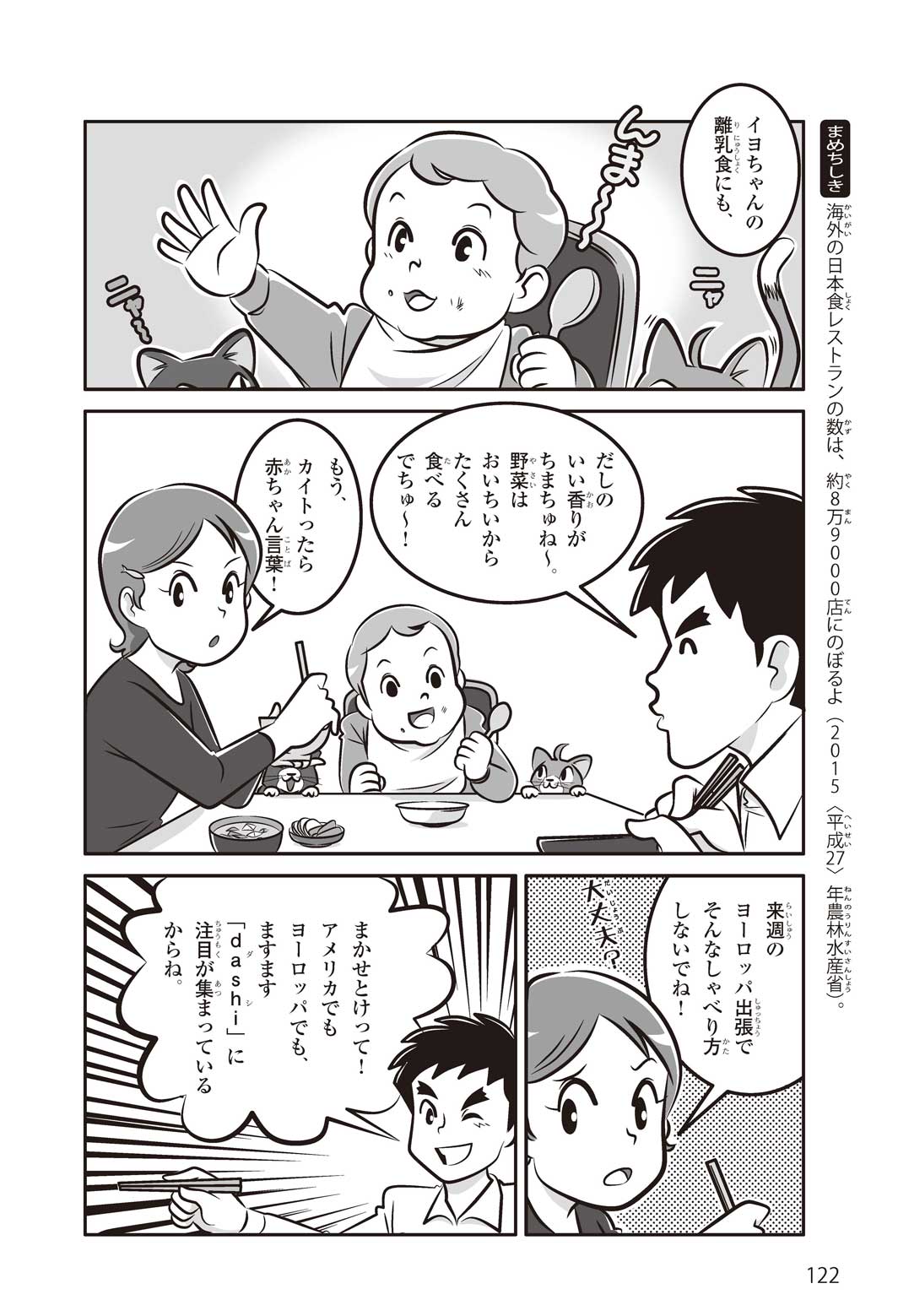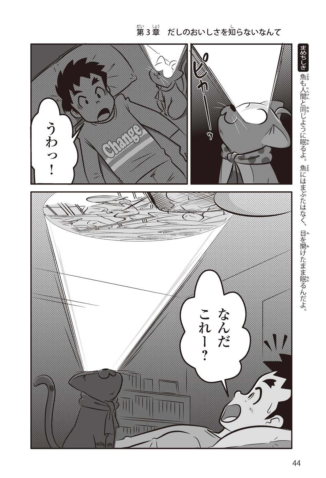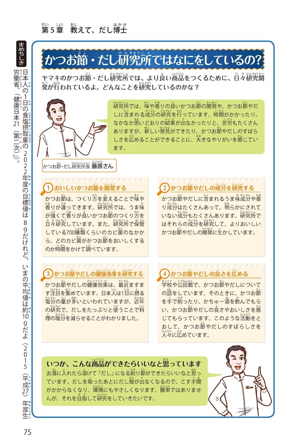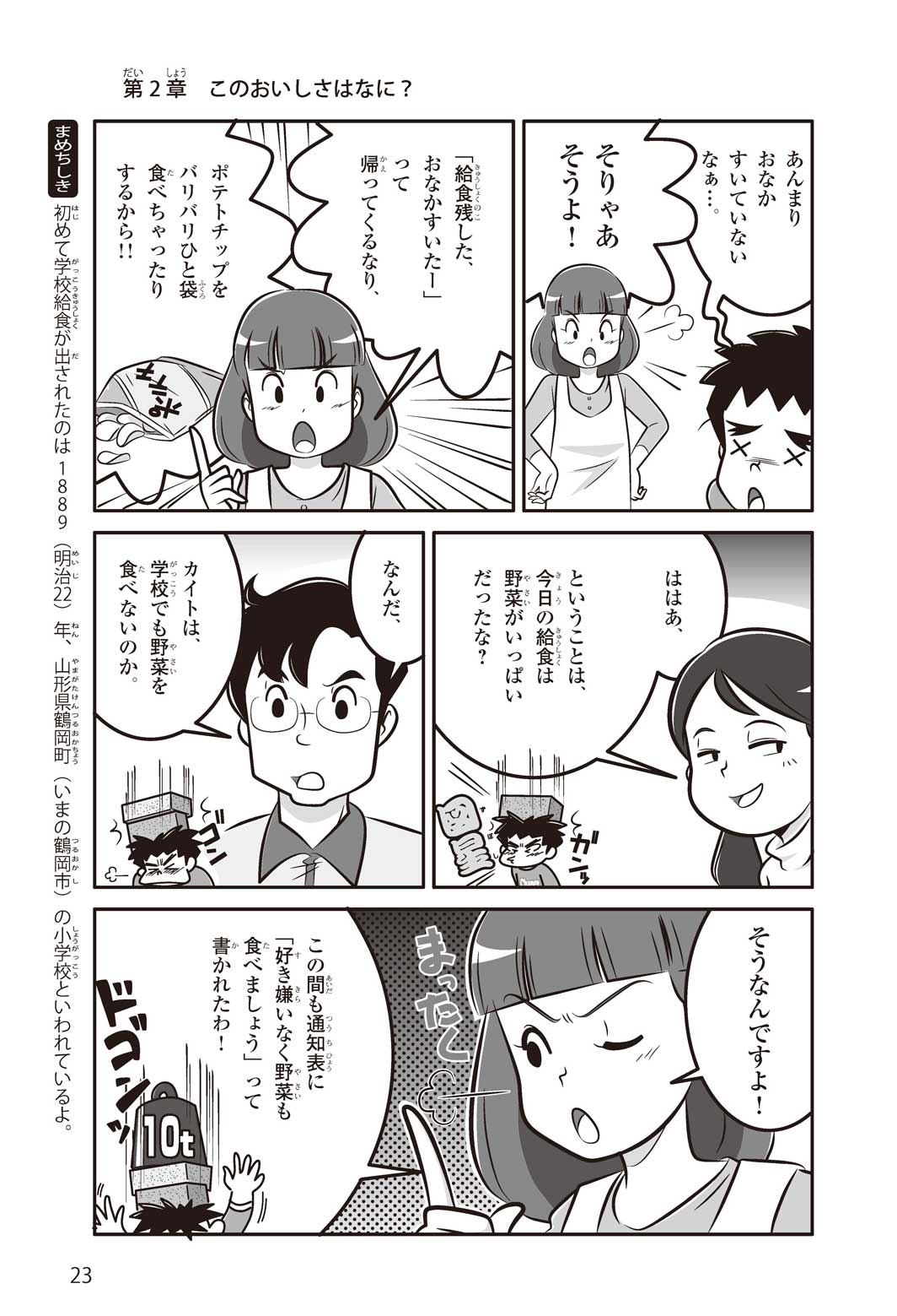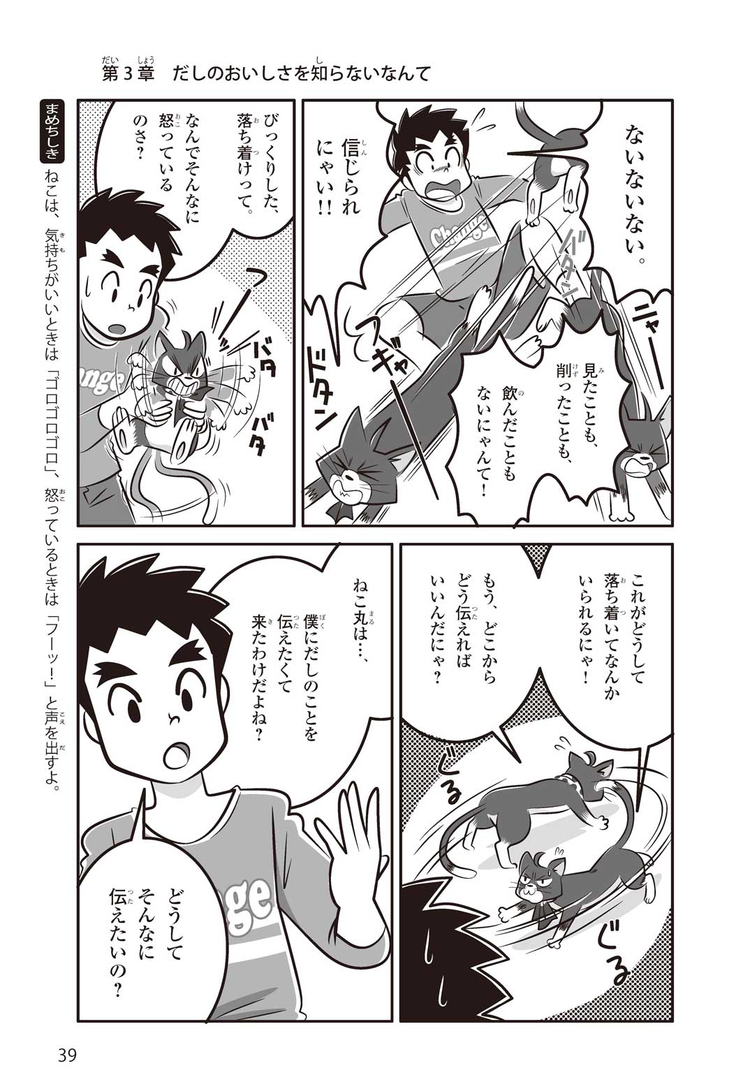 小学5年生の男の子、カイトは、野菜が苦手(にがて)で、家でも学校でも、野菜がメインの料理は残してしまいがち……。それに比べて好物(こうぶつ)は、ハンバーグにカレーライス、ラーメン、焼肉と、野菜の少ない外国の料理ばかり! でも、ある日の夕食で、空腹(くうふく)といい香りにつられてなにげなく食べた野菜のお味噌汁(みそしる)が、とってもおいしいことに気付いたよ! その夜カイトの前に、不思議(ふしぎ)なねこが出現(しゅつげん)。ねこは、だしのおいしさを子どもたちに伝えるためにやってきた、かつお節(ぶし)の妖精(ようせい)、ねこ丸だった。カイトは、ねこ丸に連れられて、クラスメイトのマキちゃんと一緒に、大昔にタイムスリップしたり、かつお節とだしの研究所へ行ったりと、かつお節やだしの歴史や作られ方などのひみつをたずねていくよ!