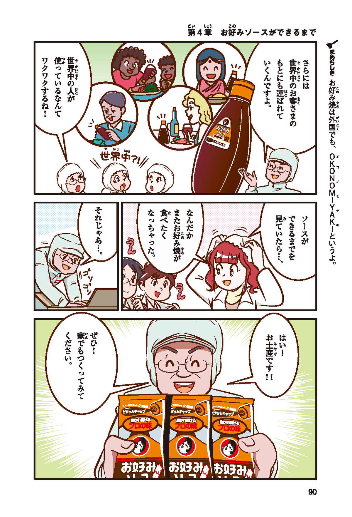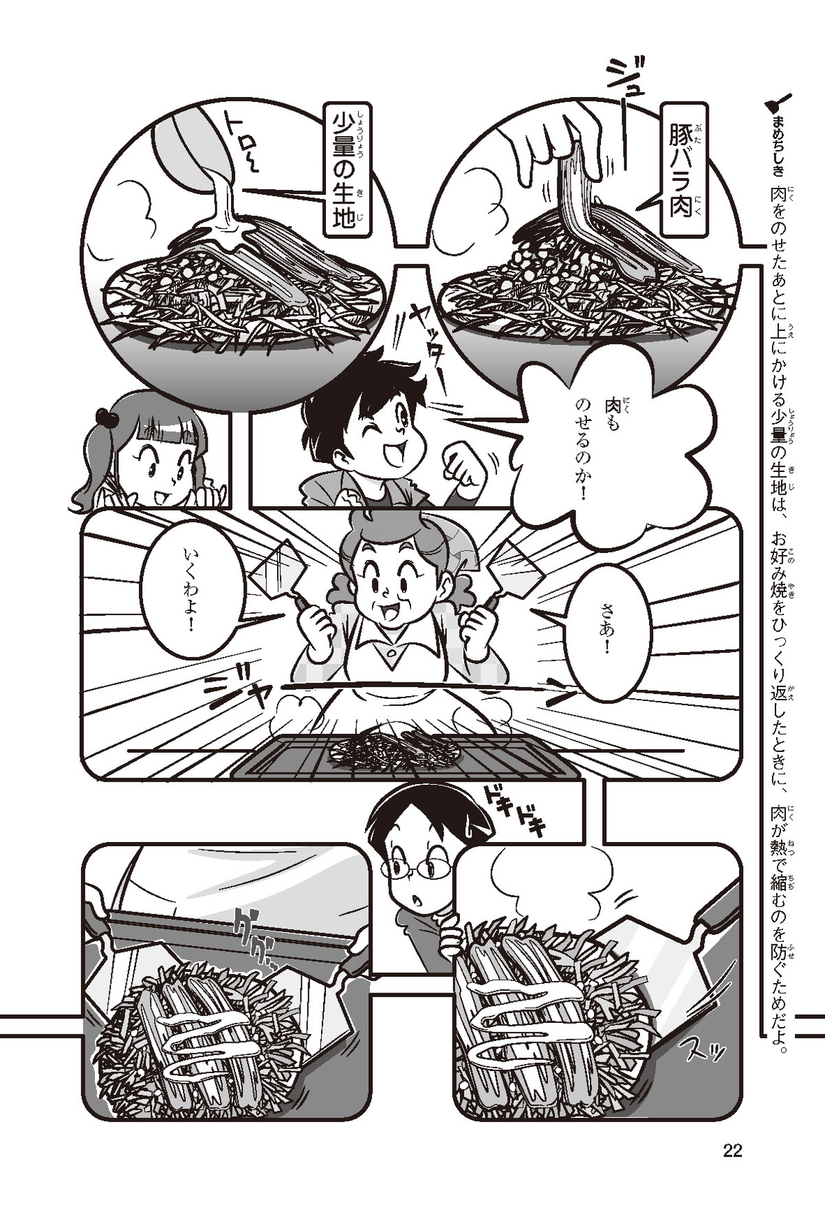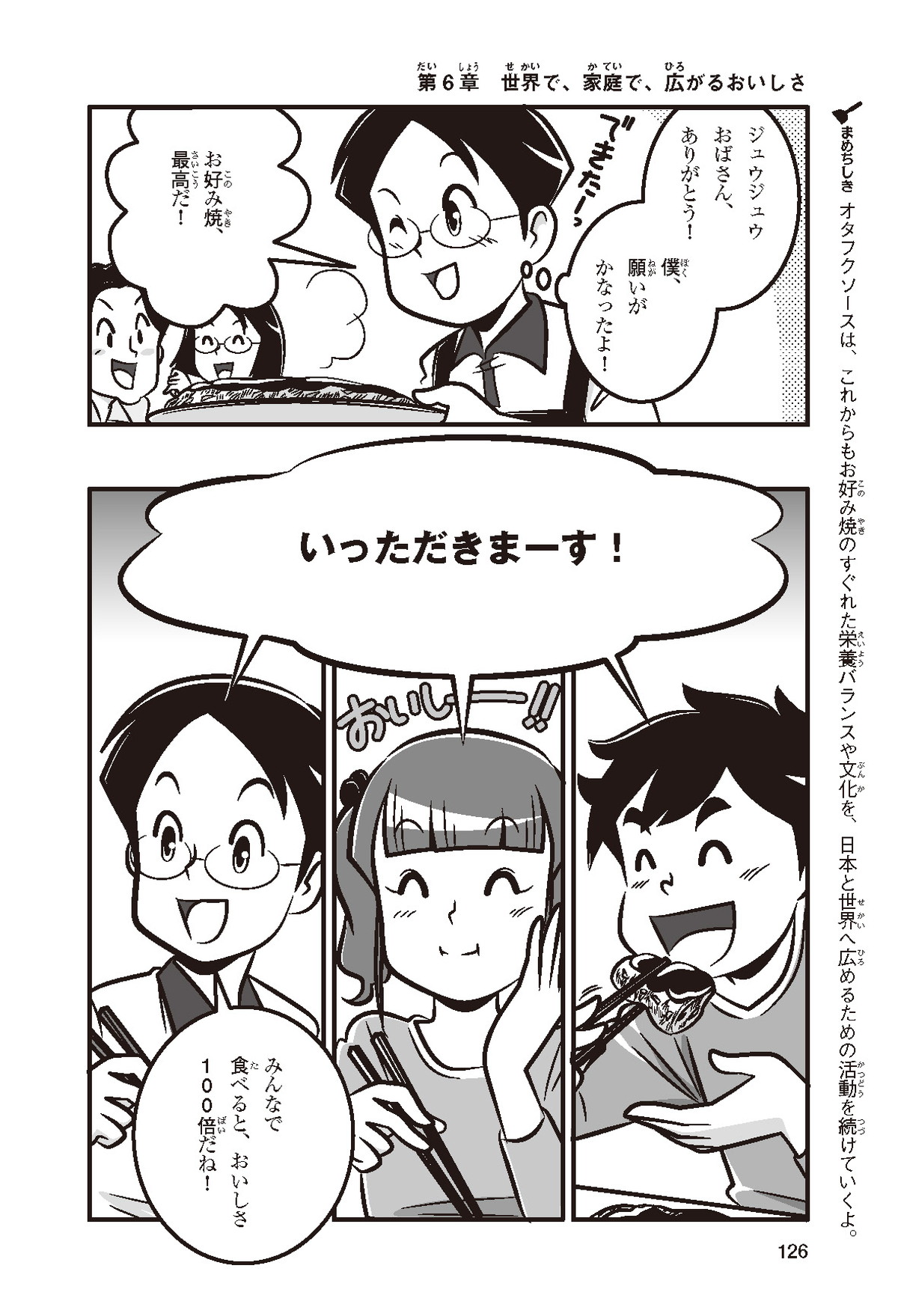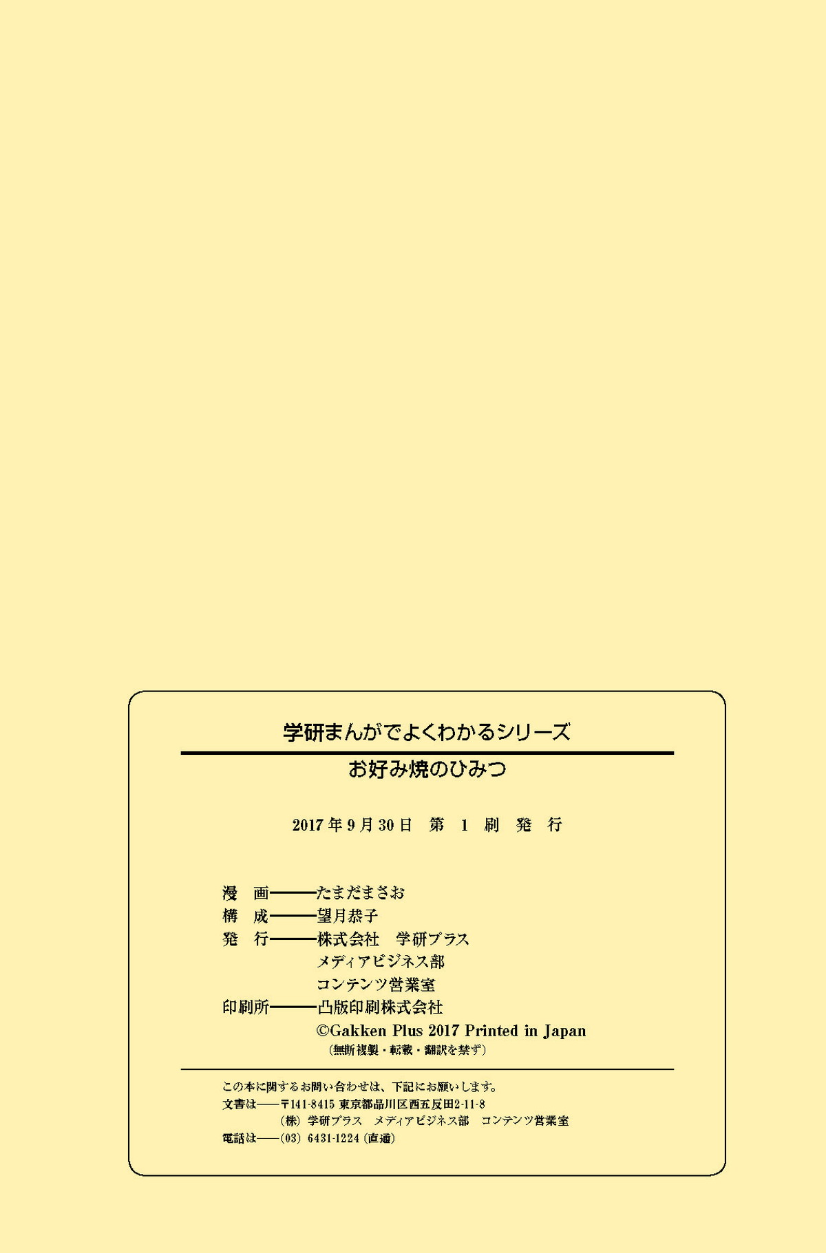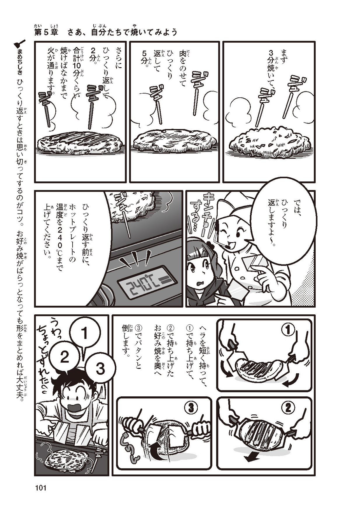 野菜よりも肉が好きなソウスケ。お料理が上手になりたいコノミ。お父さんと夕飯がなかなか一緒に食べられないのが寂しいヒロシの前に、ジュウジュウおばさんが現れる。「お好み焼には「食べることの大事がいっぱい詰まっていて」「お好み焼を食べればたいていのことは解決する」と言うジュウジュウおばさんは、3人を歴史の旅に連れて行く。やがて、お好み焼に興味を持った3人は、お好み焼の決め手がソースだということを知る。ソーズは何でできているのか、どうやってとろみがついているのか、ソースにはひみつがいっぱい。工場や研究所でそのひみつを探っていくよ。ジュウジュウおばさんにお好み焼の作り方を教わった3人は、自分の家に戻って、お好み焼の作り方の歌に合わせて、おいしいお好み焼を作るのだけれど・・・さて、ヒロシはお父さんと夕飯にお好み焼を食べることができたかな。