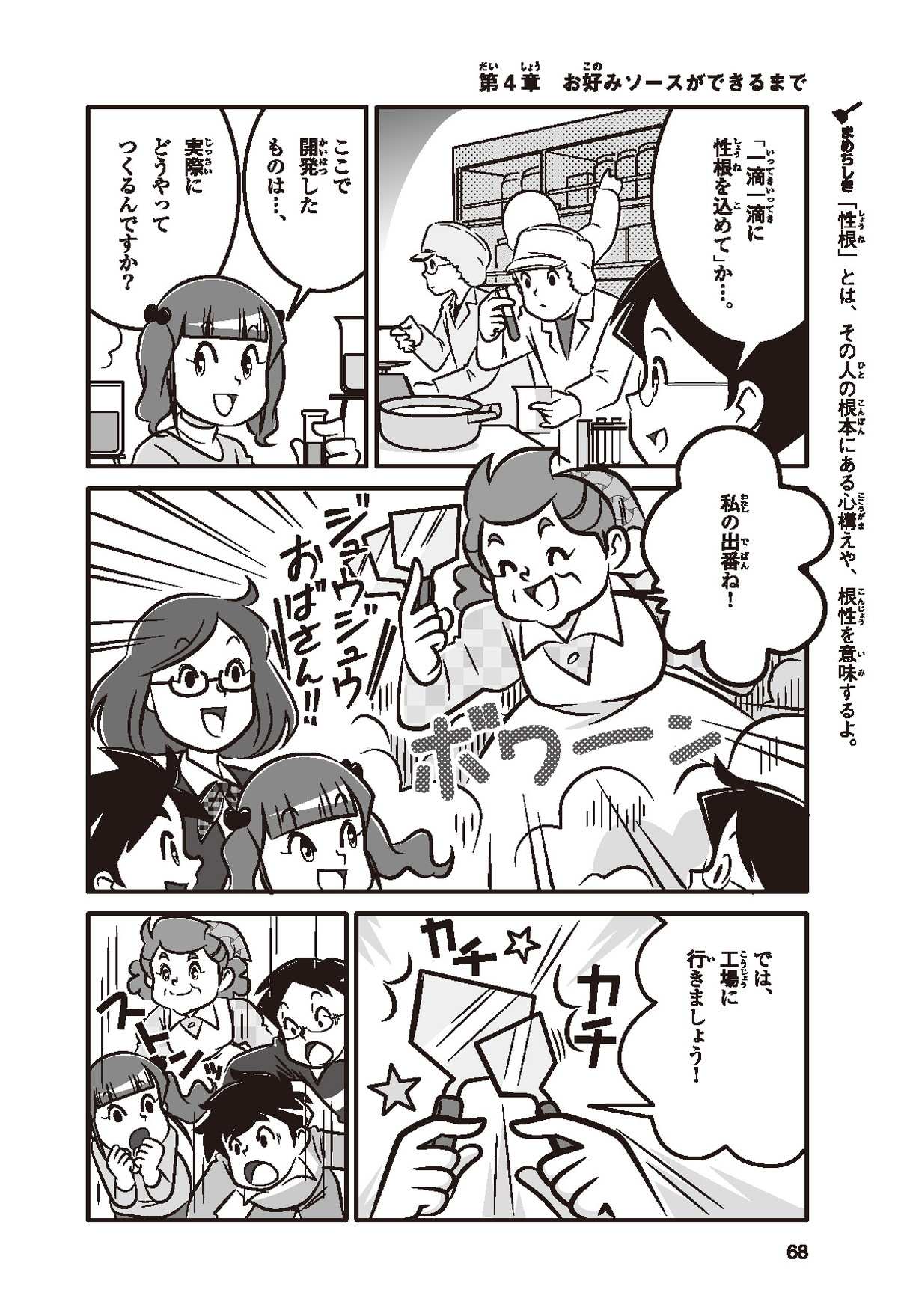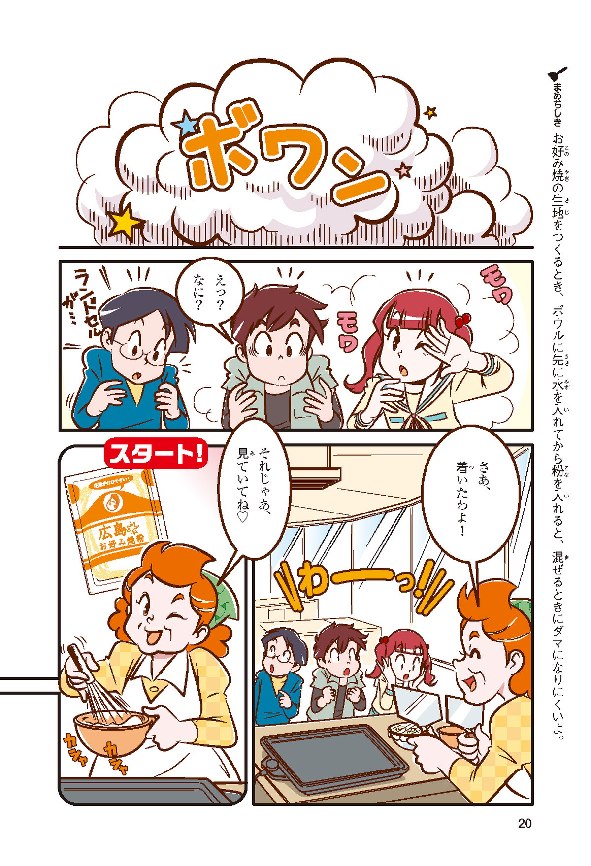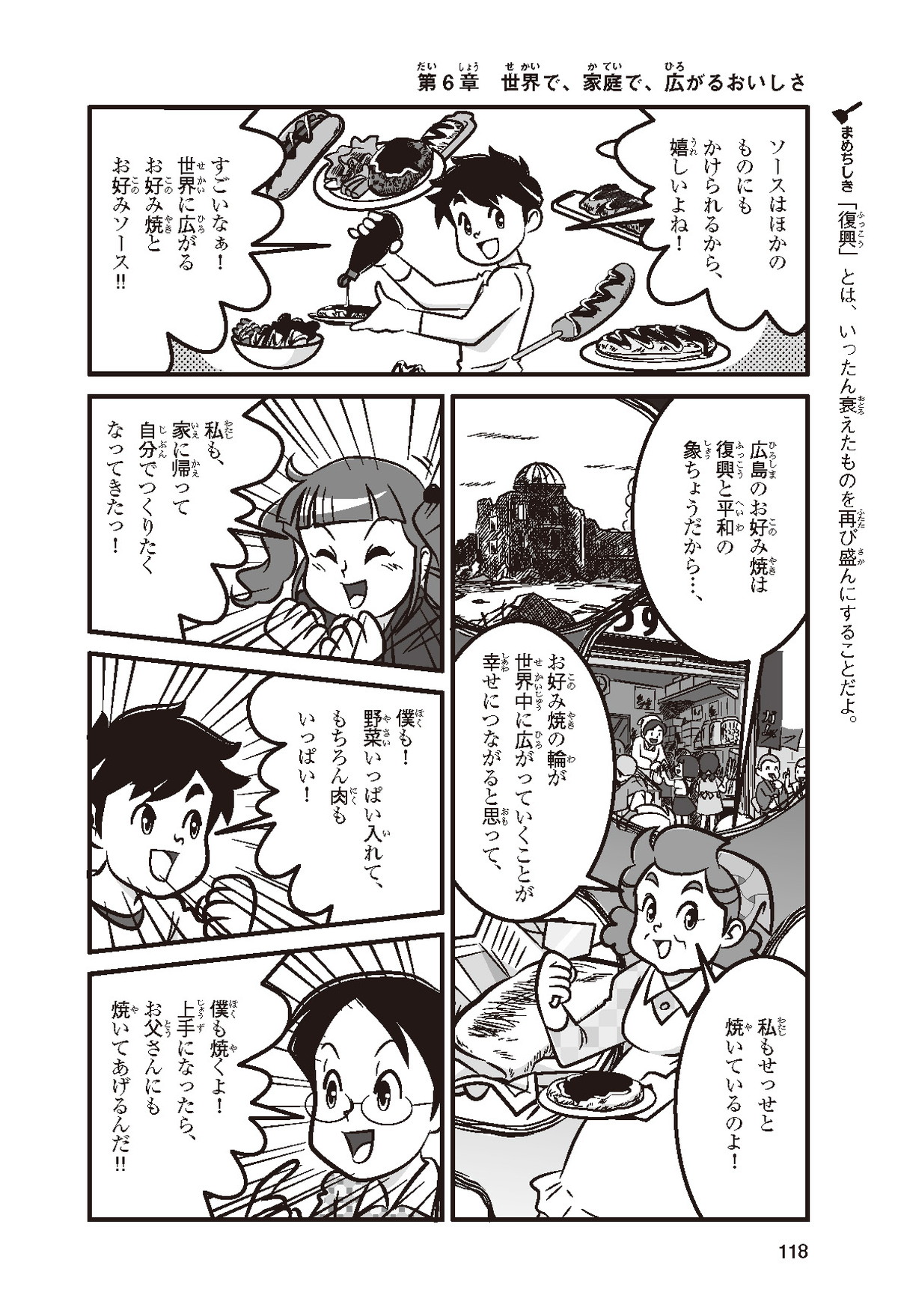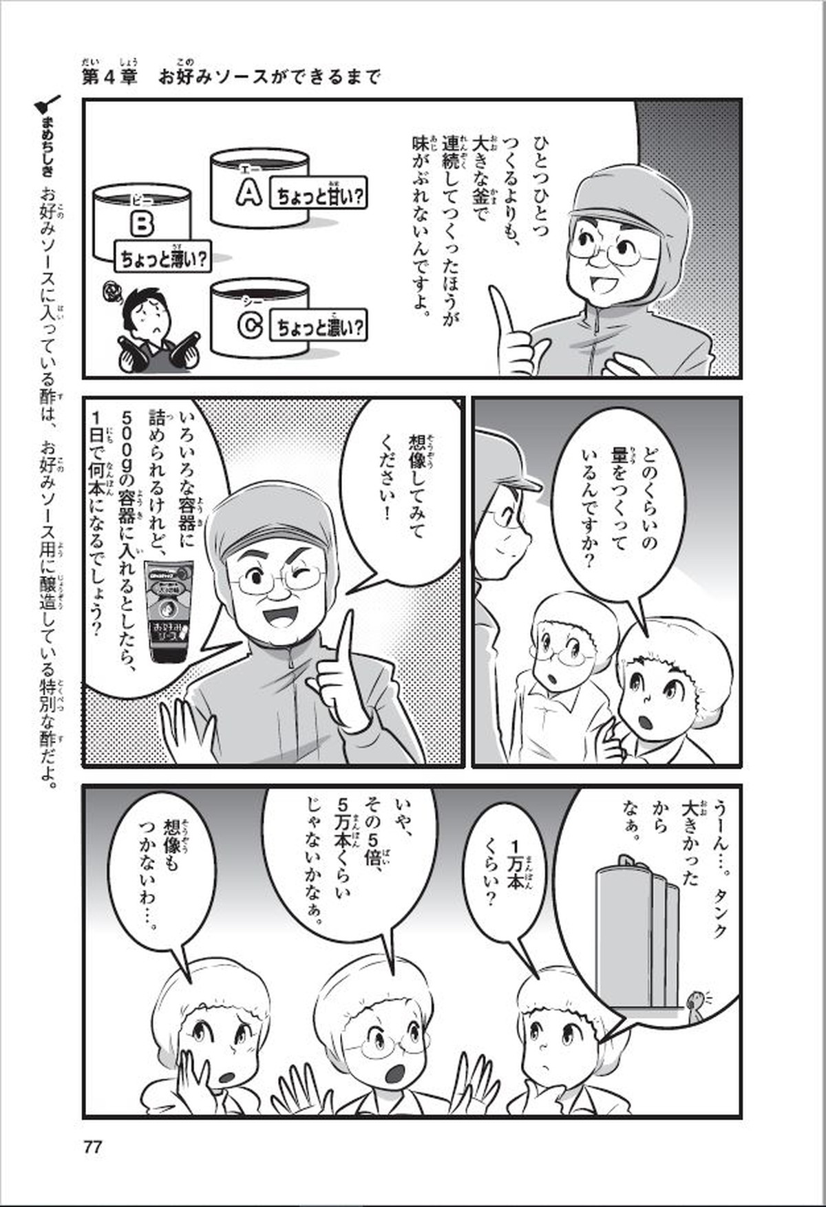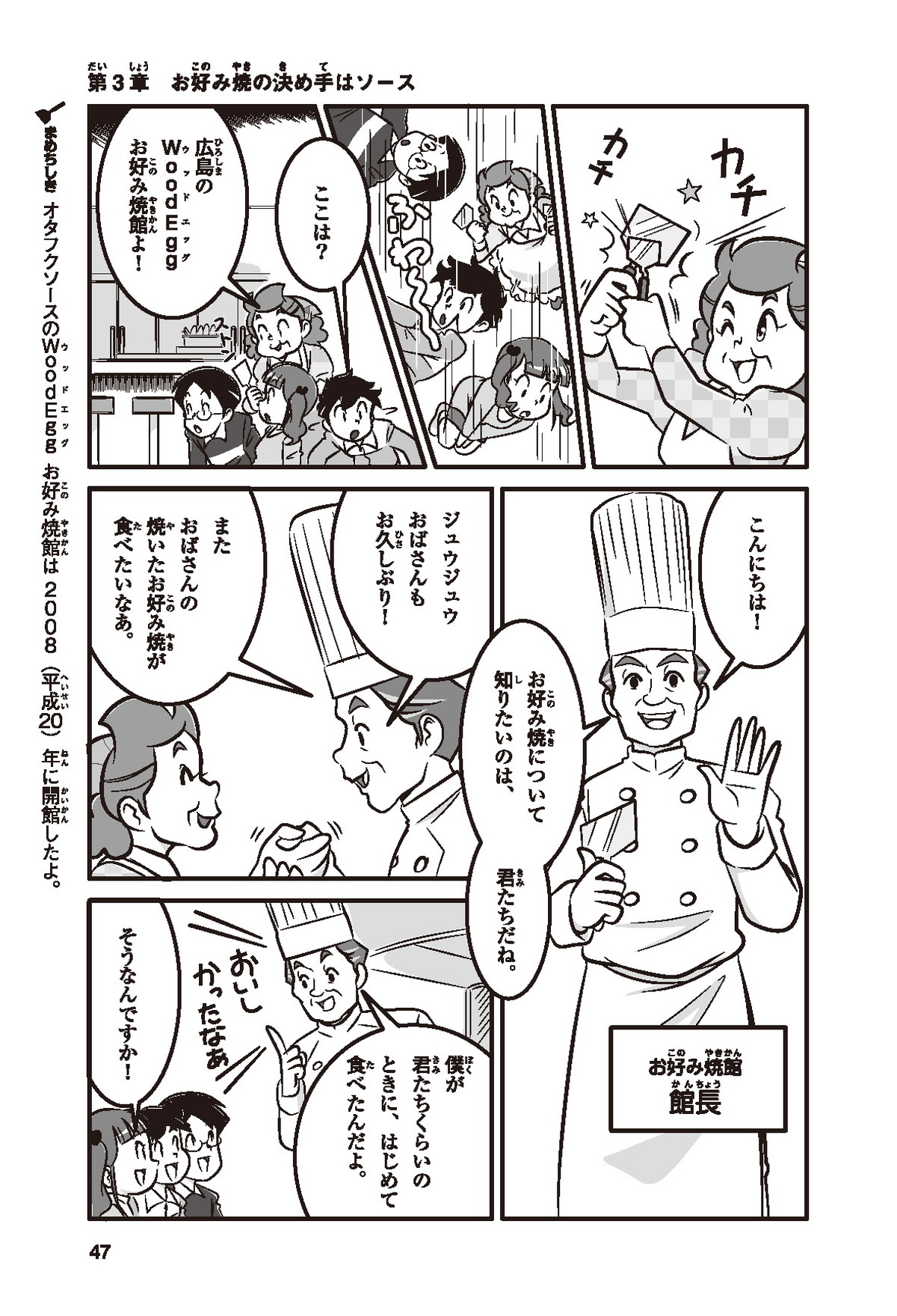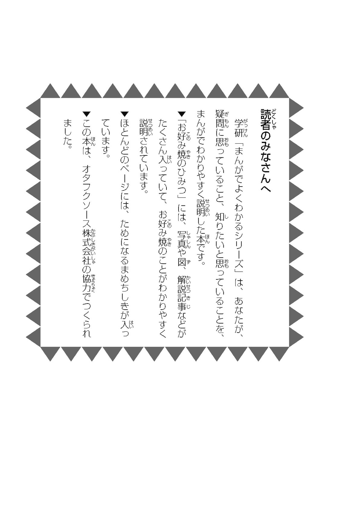 野菜よりも肉が好きなソウスケ。お料理が上手になりたいコノミ。お父さんと夕飯がなかなか一緒に食べられないのが寂しいヒロシの前に、ジュウジュウおばさんが現れる。「お好み焼には「食べることの大事がいっぱい詰まっていて」「お好み焼を食べればたいていのことは解決する」と言うジュウジュウおばさんは、3人を歴史の旅に連れて行く。やがて、お好み焼に興味を持った3人は、お好み焼の決め手がソースだということを知る。ソーズは何でできているのか、どうやってとろみがついているのか、ソースにはひみつがいっぱい。工場や研究所でそのひみつを探っていくよ。ジュウジュウおばさんにお好み焼の作り方を教わった3人は、自分の家に戻って、お好み焼の作り方の歌に合わせて、おいしいお好み焼を作るのだけれど・・・さて、ヒロシはお父さんと夕飯にお好み焼を食べることができたかな。