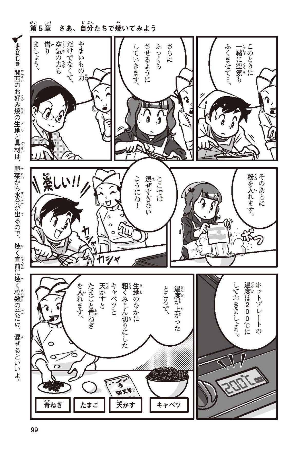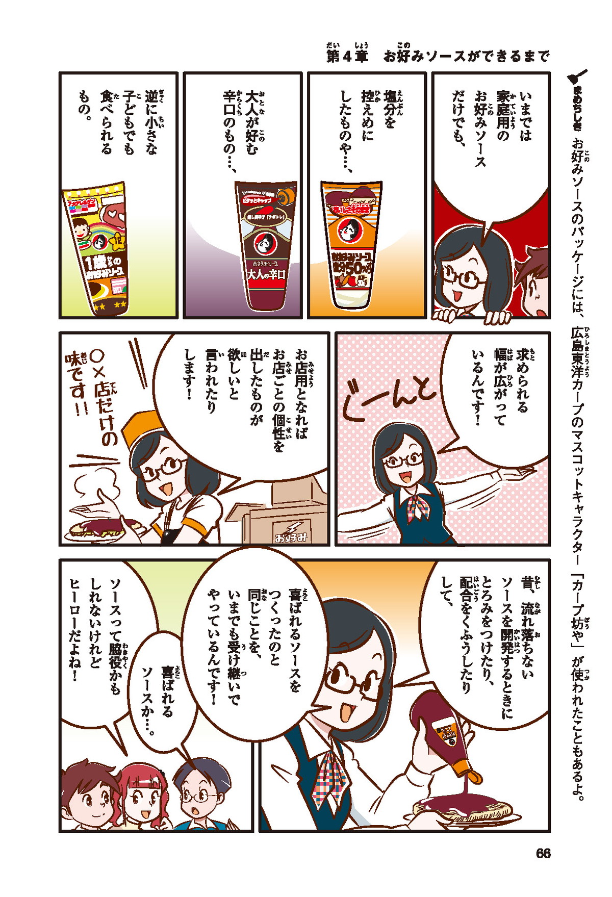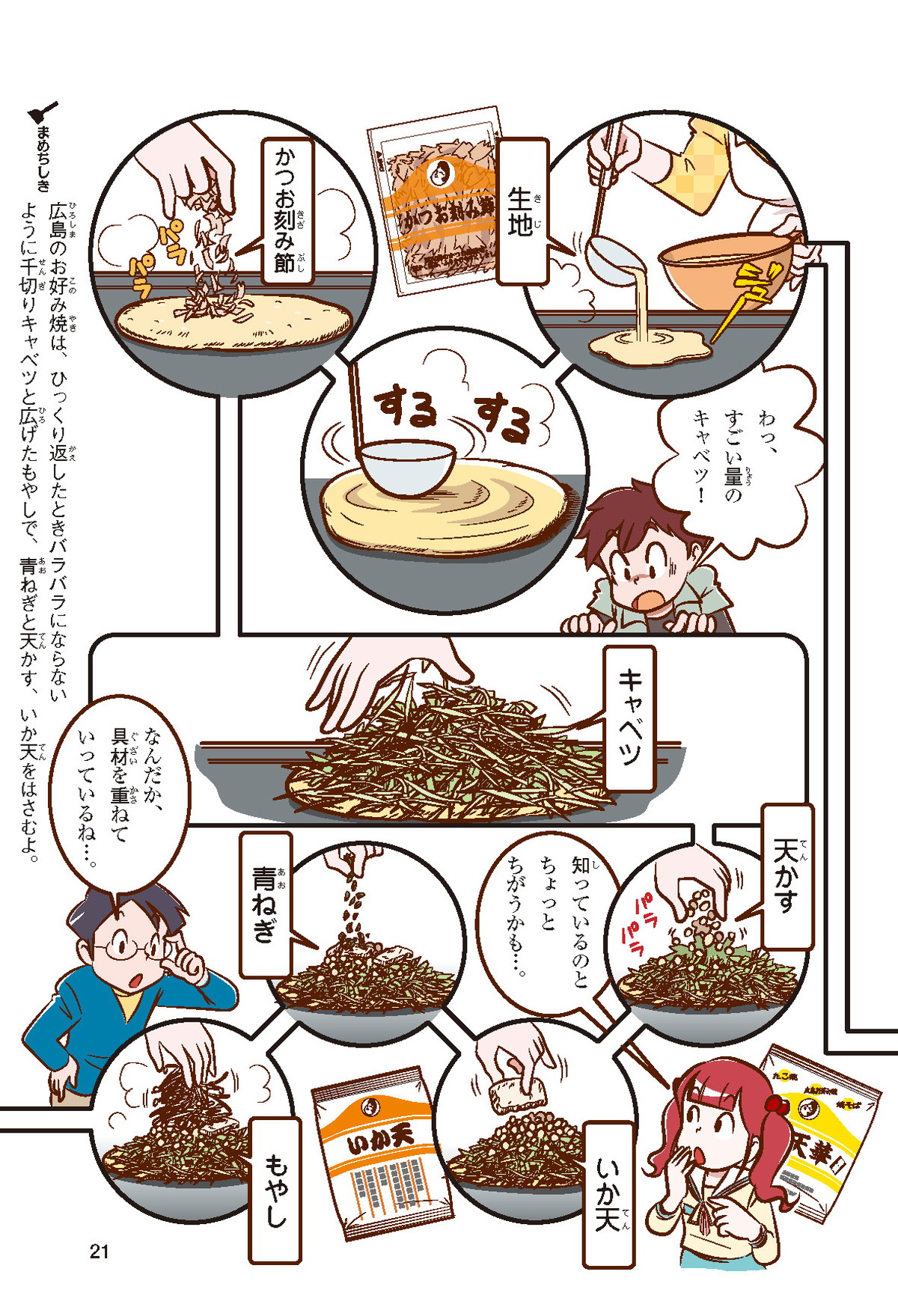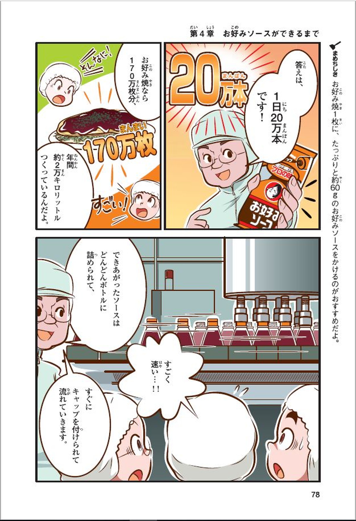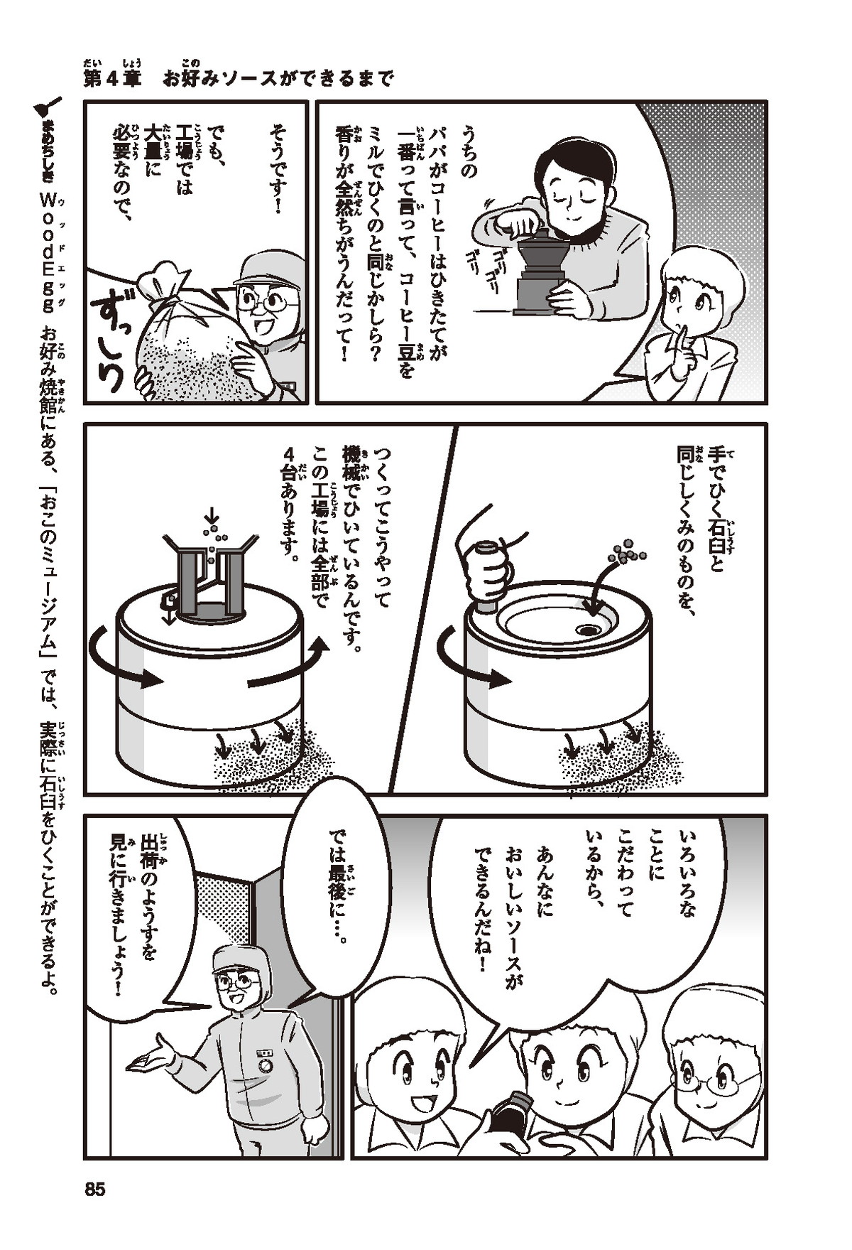野菜よりも肉が好きなソウスケ。お料理が上手になりたいコノミ。お父さんと夕飯がなかなか一緒に食べられないのが寂しいヒロシの前に、ジュウジュウおばさんが現れる。「お好み焼には「食べることの大事がいっぱい詰まっていて」「お好み焼を食べればたいていのことは解決する」と言うジュウジュウおばさんは、3人を歴史の旅に連れて行く。やがて、お好み焼に興味を持った3人は、お好み焼の決め手がソースだということを知る。ソーズは何でできているのか、どうやってとろみがついているのか、ソースにはひみつがいっぱい。工場や研究所でそのひみつを探っていくよ。ジュウジュウおばさんにお好み焼の作り方を教わった3人は、自分の家に戻って、お好み焼の作り方の歌に合わせて、おいしいお好み焼を作るのだけれど・・・さて、ヒロシはお父さんと夕飯にお好み焼を食べることができたかな。