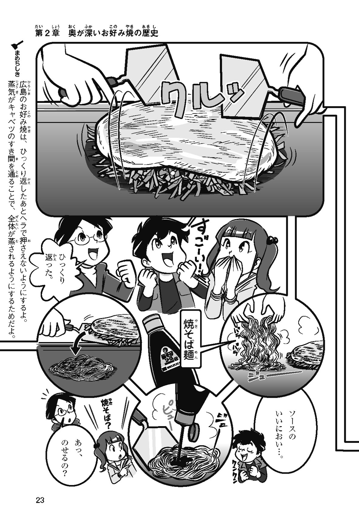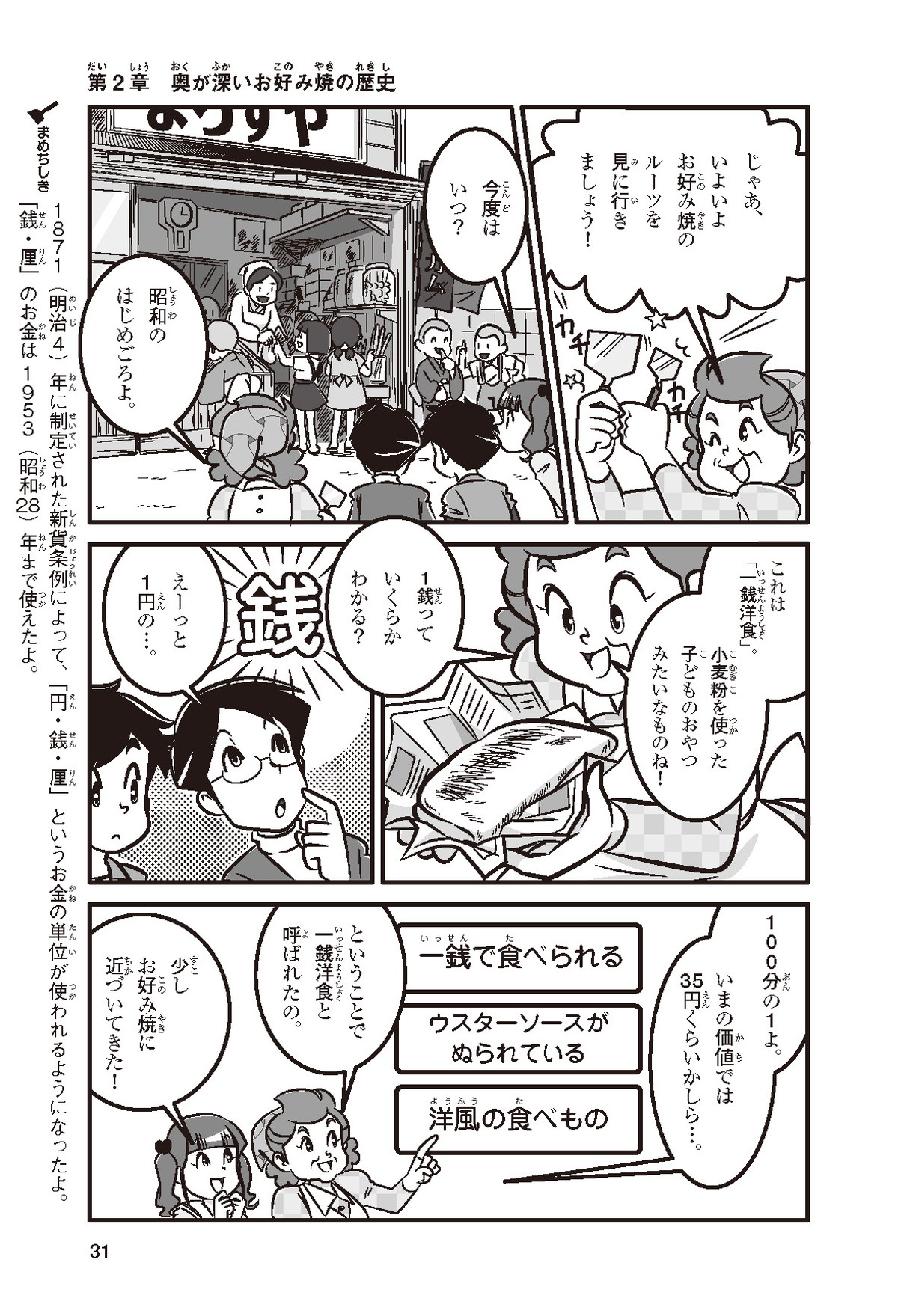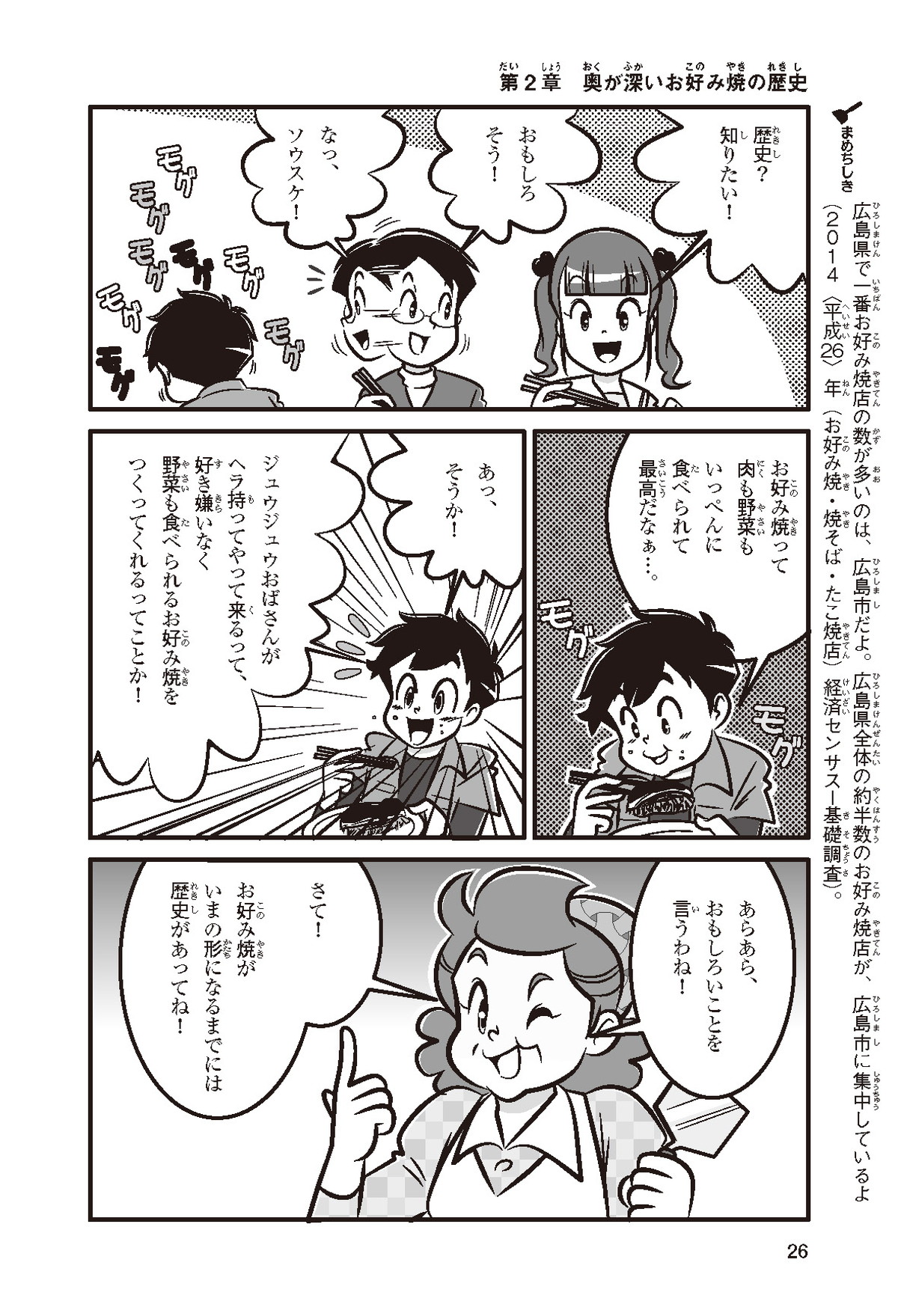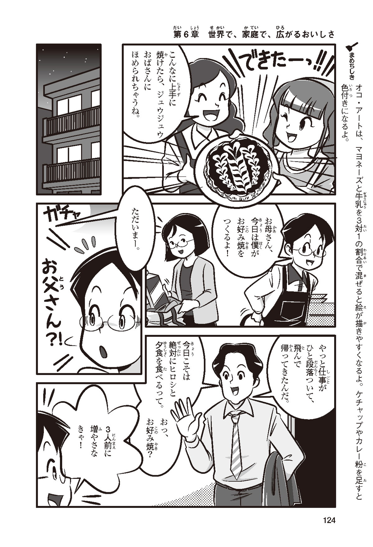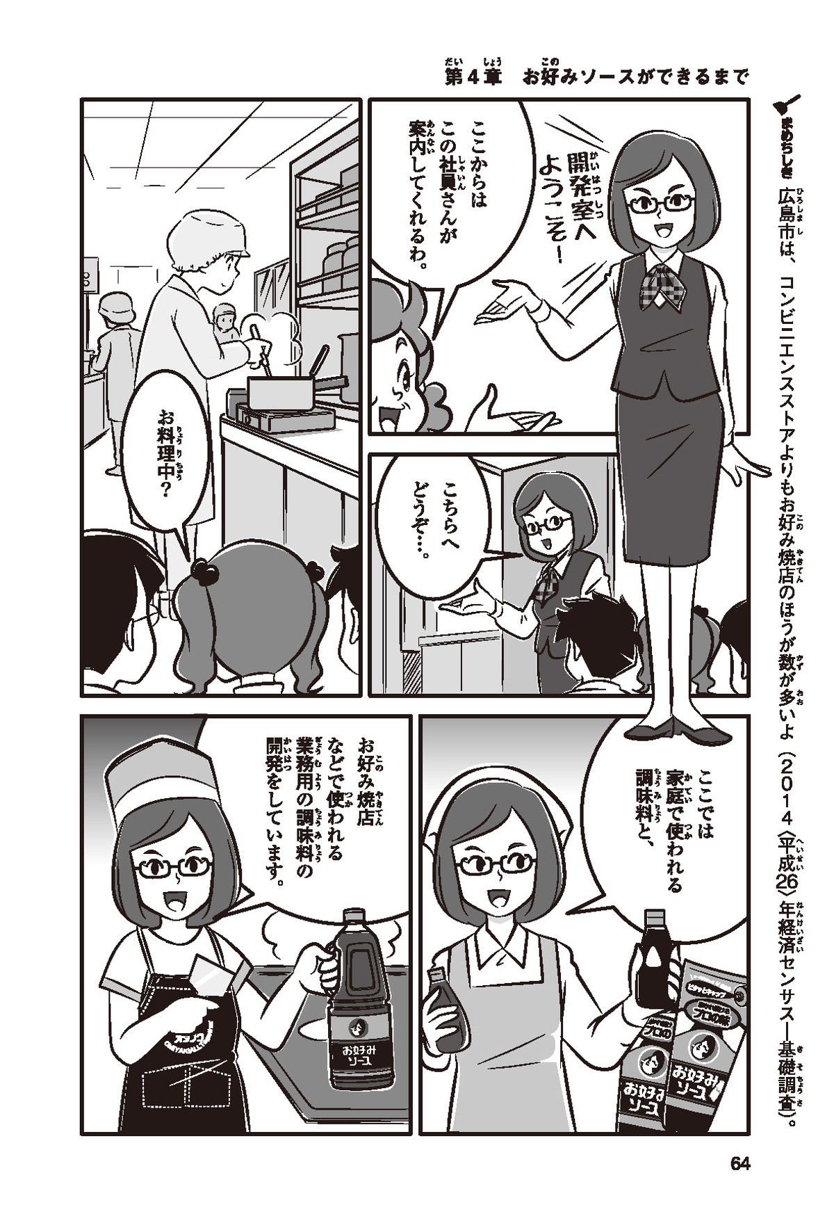 野菜よりも肉が好きなソウスケ。お料理が上手になりたいコノミ。お父さんと夕飯がなかなか一緒に食べられないのが寂しいヒロシの前に、ジュウジュウおばさんが現れる。「お好み焼には「食べることの大事がいっぱい詰まっていて」「お好み焼を食べればたいていのことは解決する」と言うジュウジュウおばさんは、3人を歴史の旅に連れて行く。やがて、お好み焼に興味を持った3人は、お好み焼の決め手がソースだということを知る。ソーズは何でできているのか、どうやってとろみがついているのか、ソースにはひみつがいっぱい。工場や研究所でそのひみつを探っていくよ。ジュウジュウおばさんにお好み焼の作り方を教わった3人は、自分の家に戻って、お好み焼の作り方の歌に合わせて、おいしいお好み焼を作るのだけれど・・・さて、ヒロシはお父さんと夕飯にお好み焼を食べることができたかな。