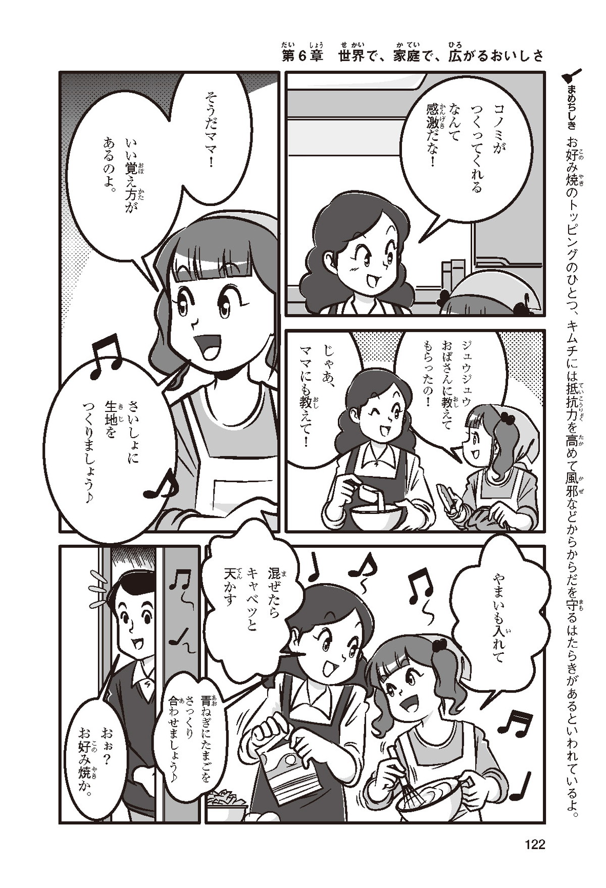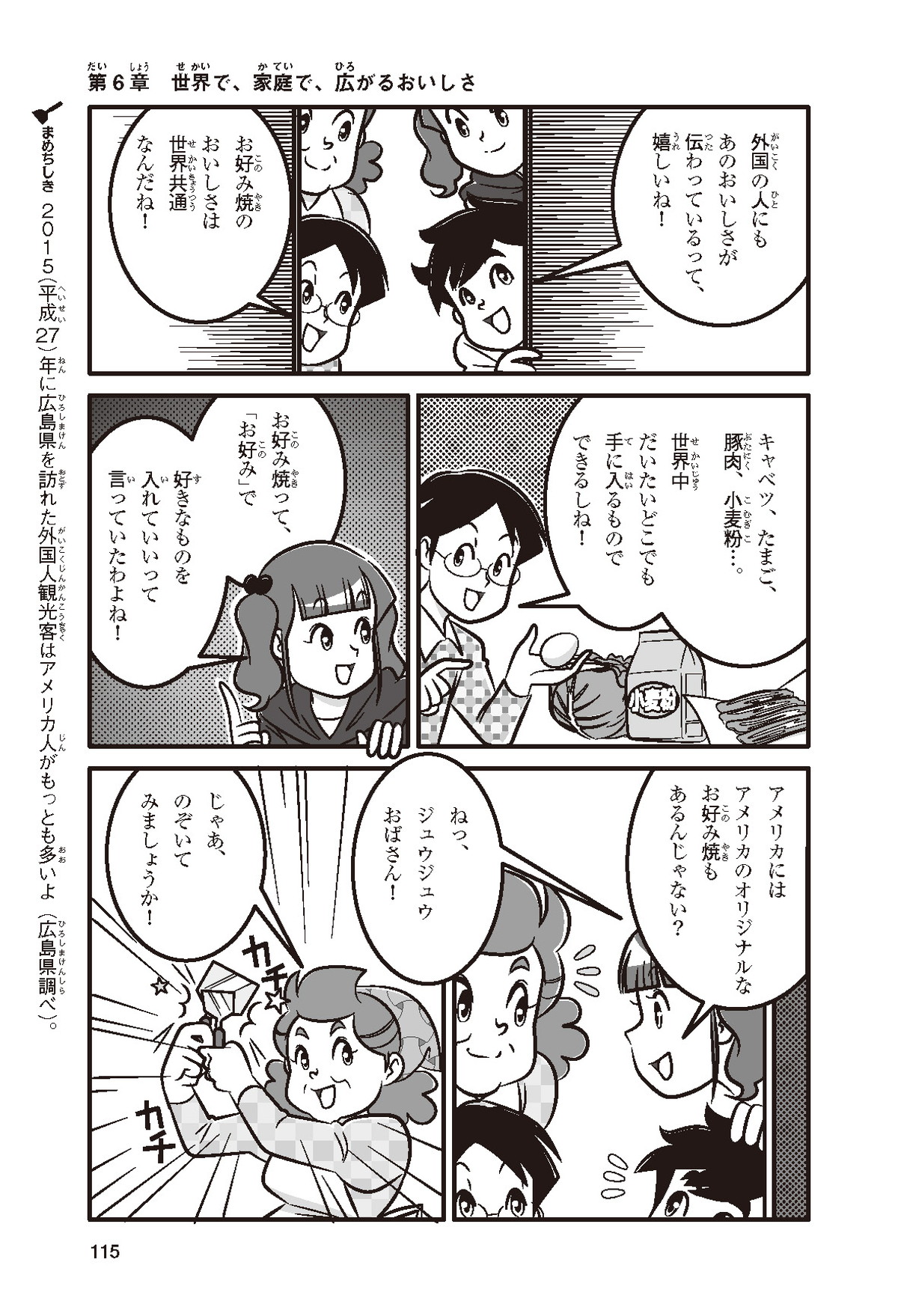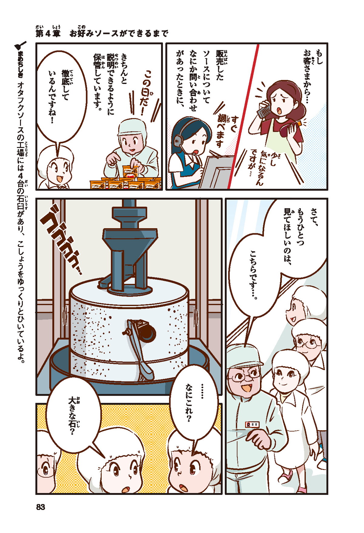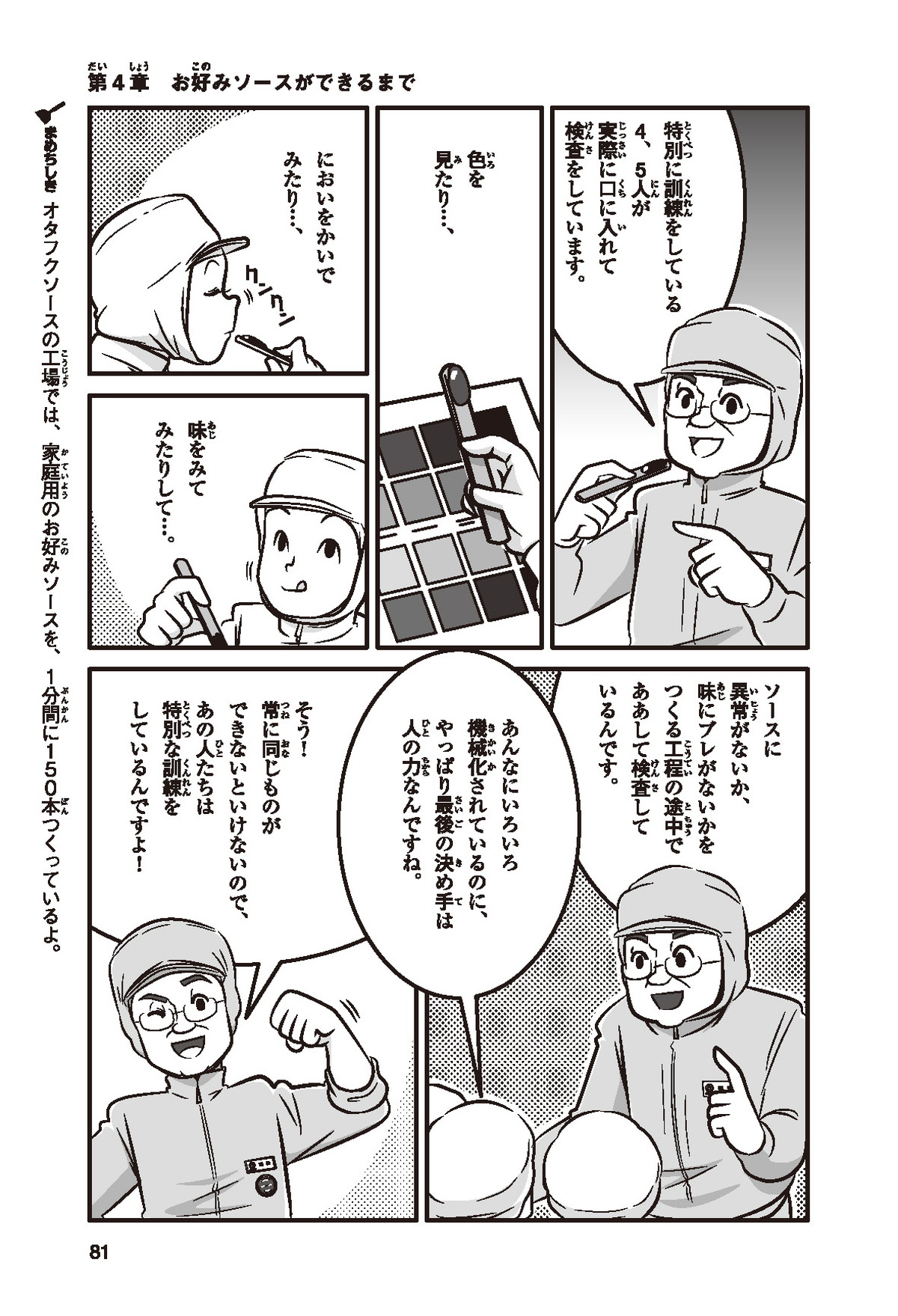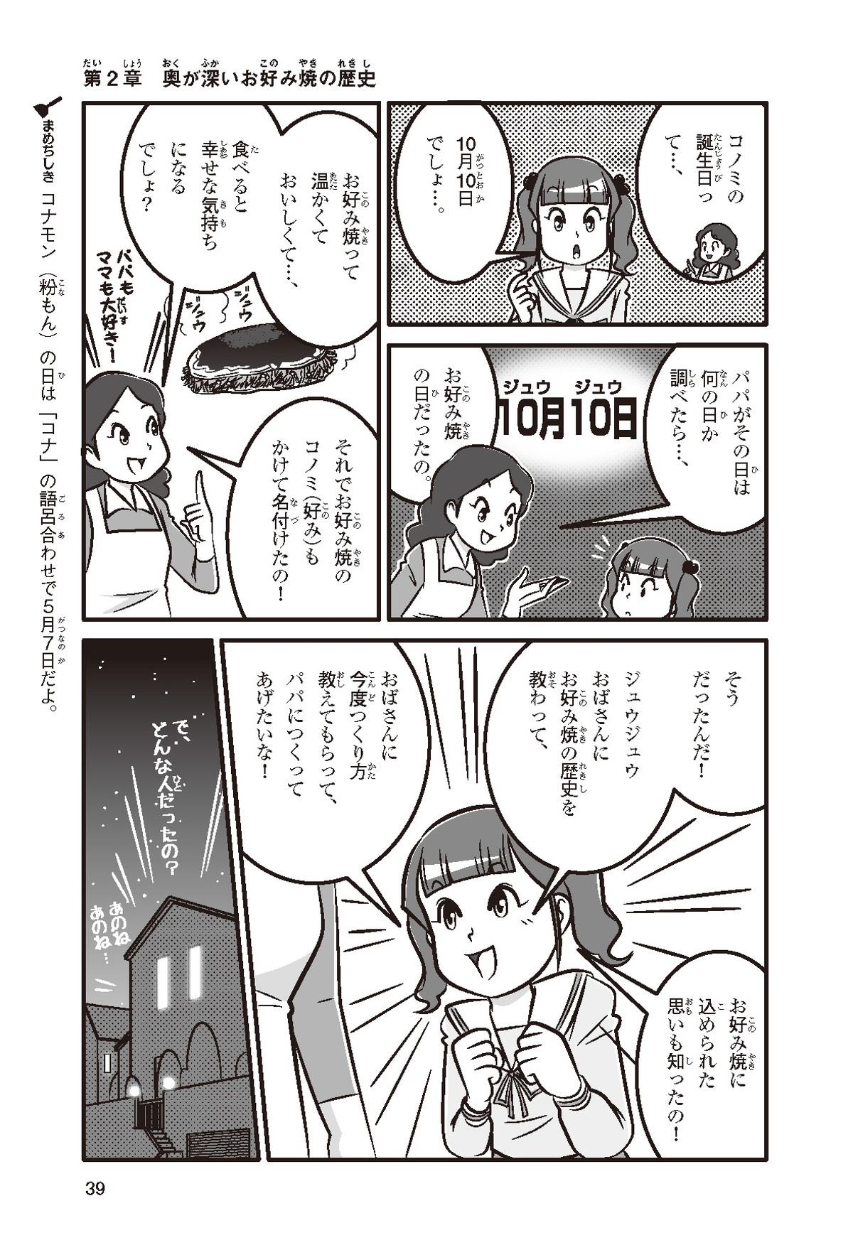 野菜よりも肉が好きなソウスケ。お料理が上手になりたいコノミ。お父さんと夕飯がなかなか一緒に食べられないのが寂しいヒロシの前に、ジュウジュウおばさんが現れる。「お好み焼には「食べることの大事がいっぱい詰まっていて」「お好み焼を食べればたいていのことは解決する」と言うジュウジュウおばさんは、3人を歴史の旅に連れて行く。やがて、お好み焼に興味を持った3人は、お好み焼の決め手がソースだということを知る。ソーズは何でできているのか、どうやってとろみがついているのか、ソースにはひみつがいっぱい。工場や研究所でそのひみつを探っていくよ。ジュウジュウおばさんにお好み焼の作り方を教わった3人は、自分の家に戻って、お好み焼の作り方の歌に合わせて、おいしいお好み焼を作るのだけれど・・・さて、ヒロシはお父さんと夕飯にお好み焼を食べることができたかな。