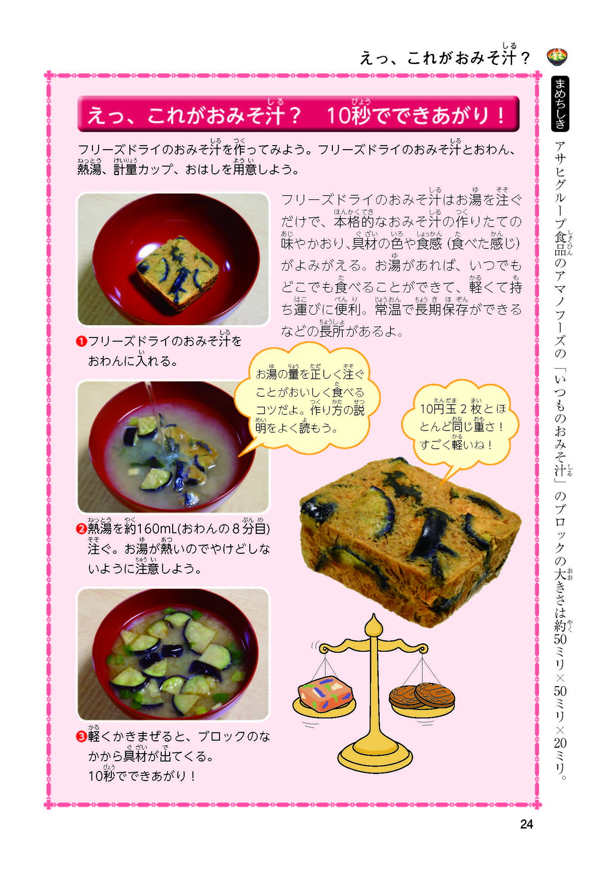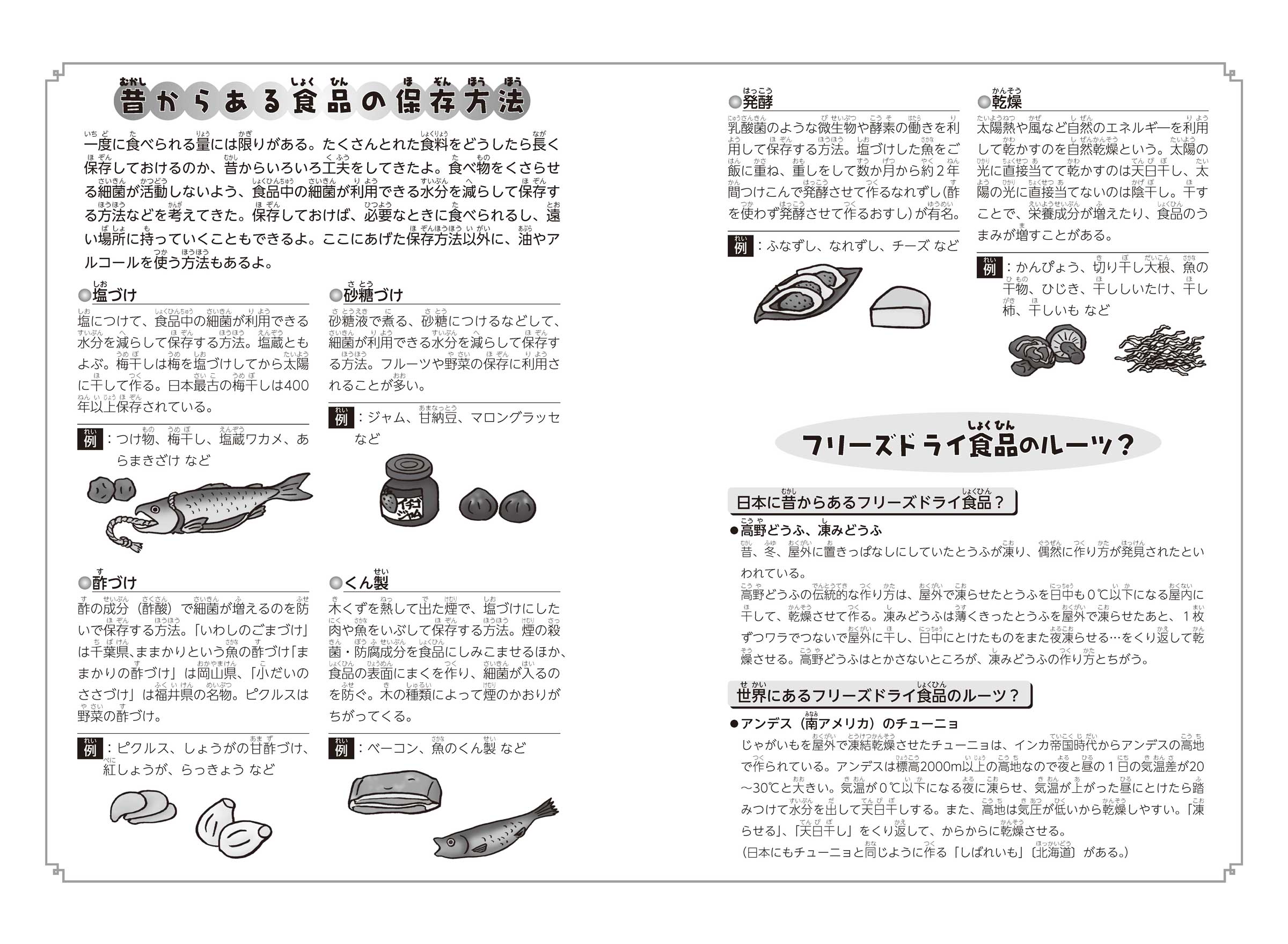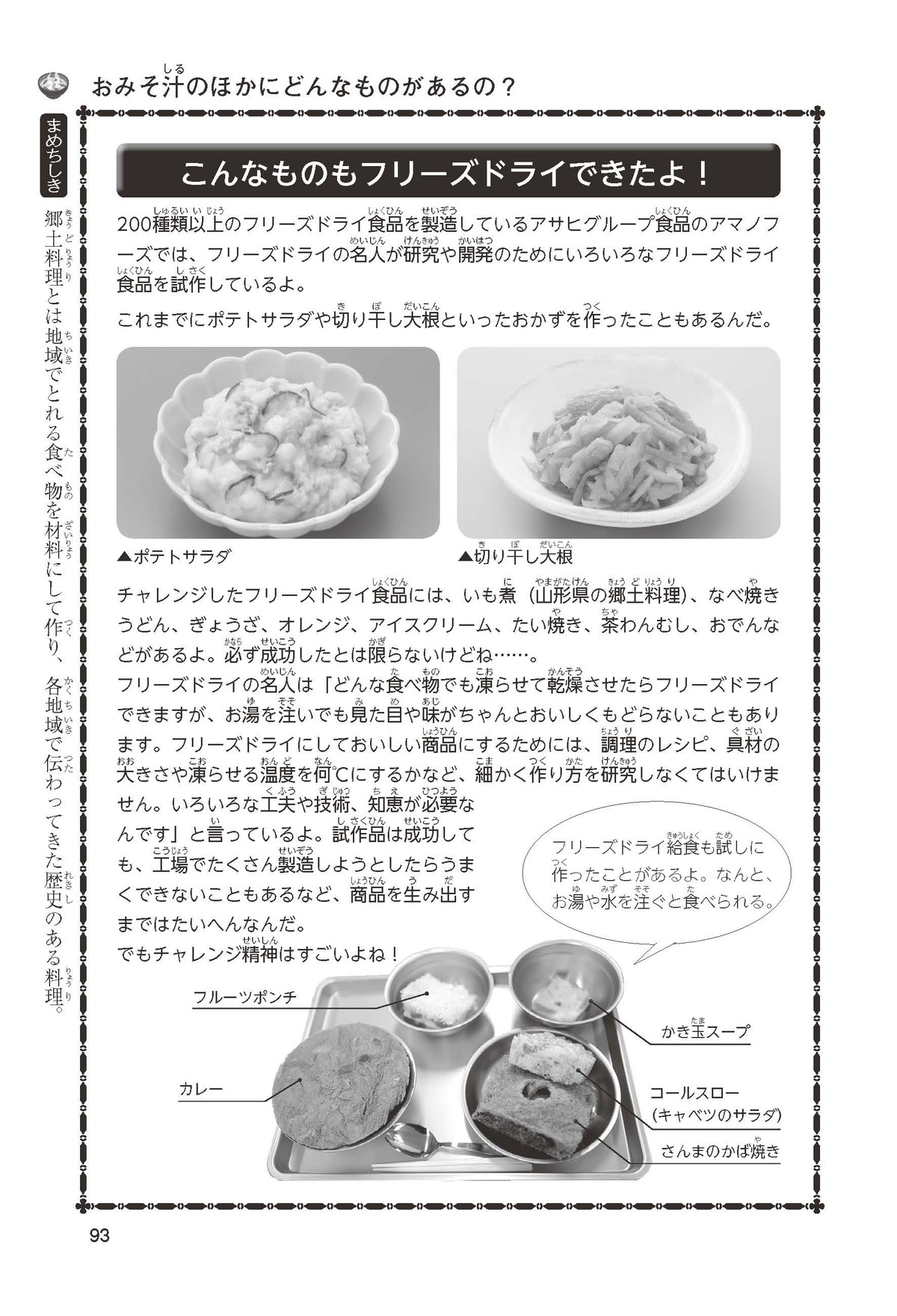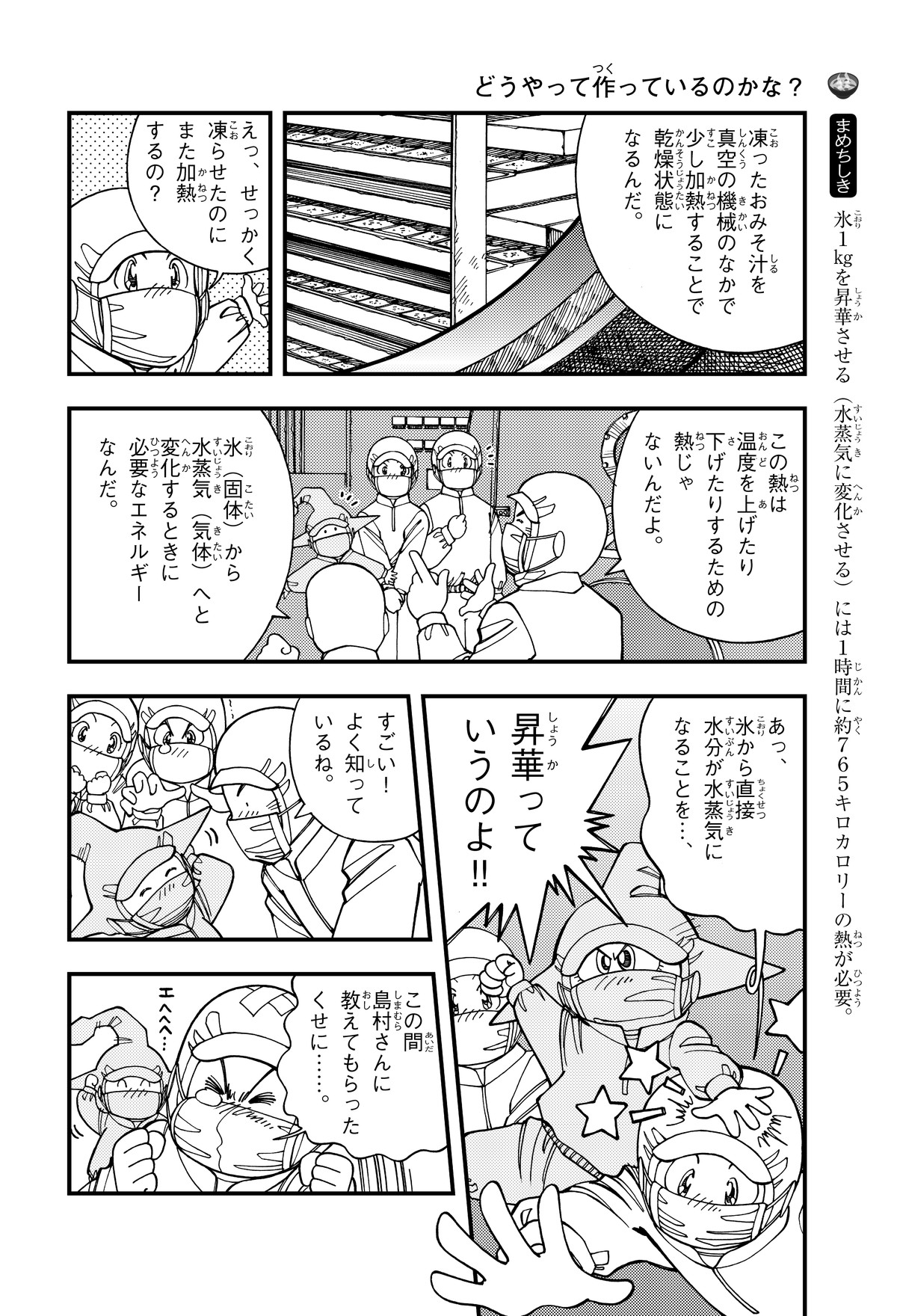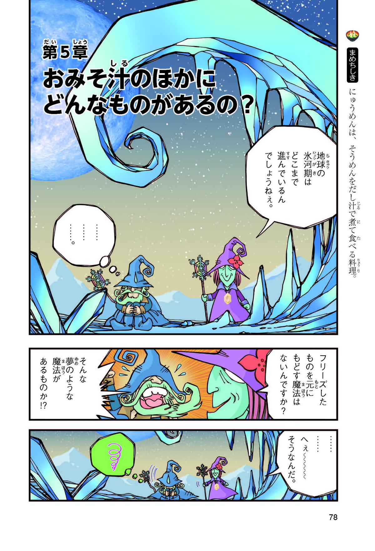 小学5年生の創太(そうた)とユイが愛犬を散歩させていたら、宇宙(うちゅう)から来た妖精(ようせい)のせいでトラブル発生! 妖精(ようせい)と二人がもめていると、なぞの二人組が助けてくれる。この二人組、じつはフリーズドライ食品を作っているんだって。その代表はおみそ汁(しる)。でもフリーズドライってなに? 凍(こお)らせて乾燥(かんそう)させるんだって? いったいどういうことなんだろう?
