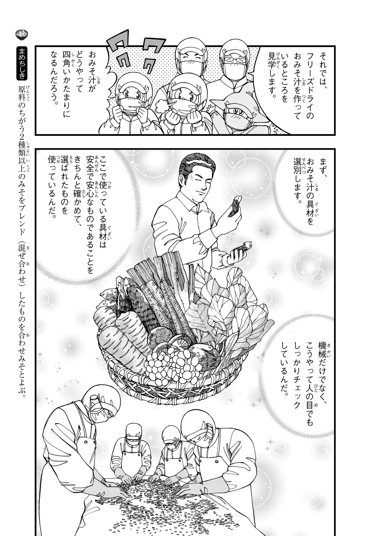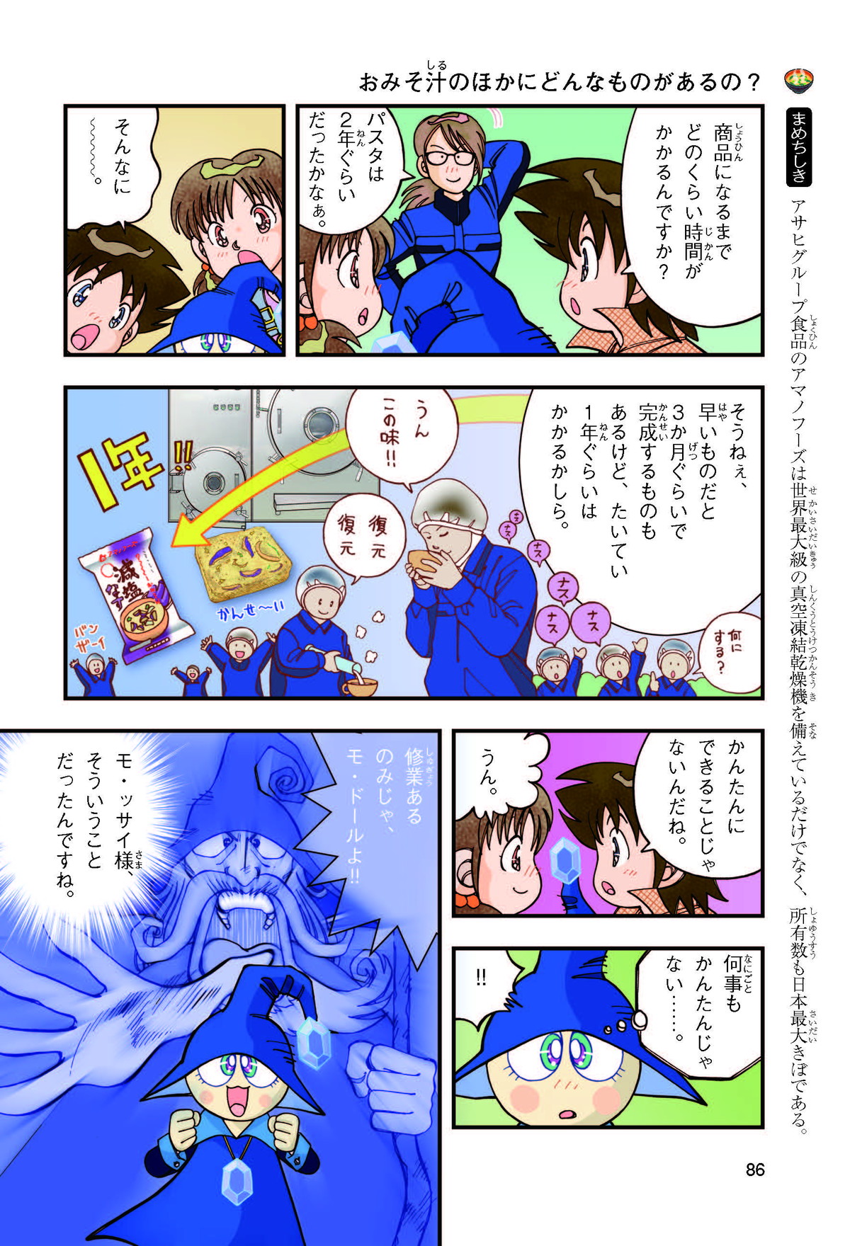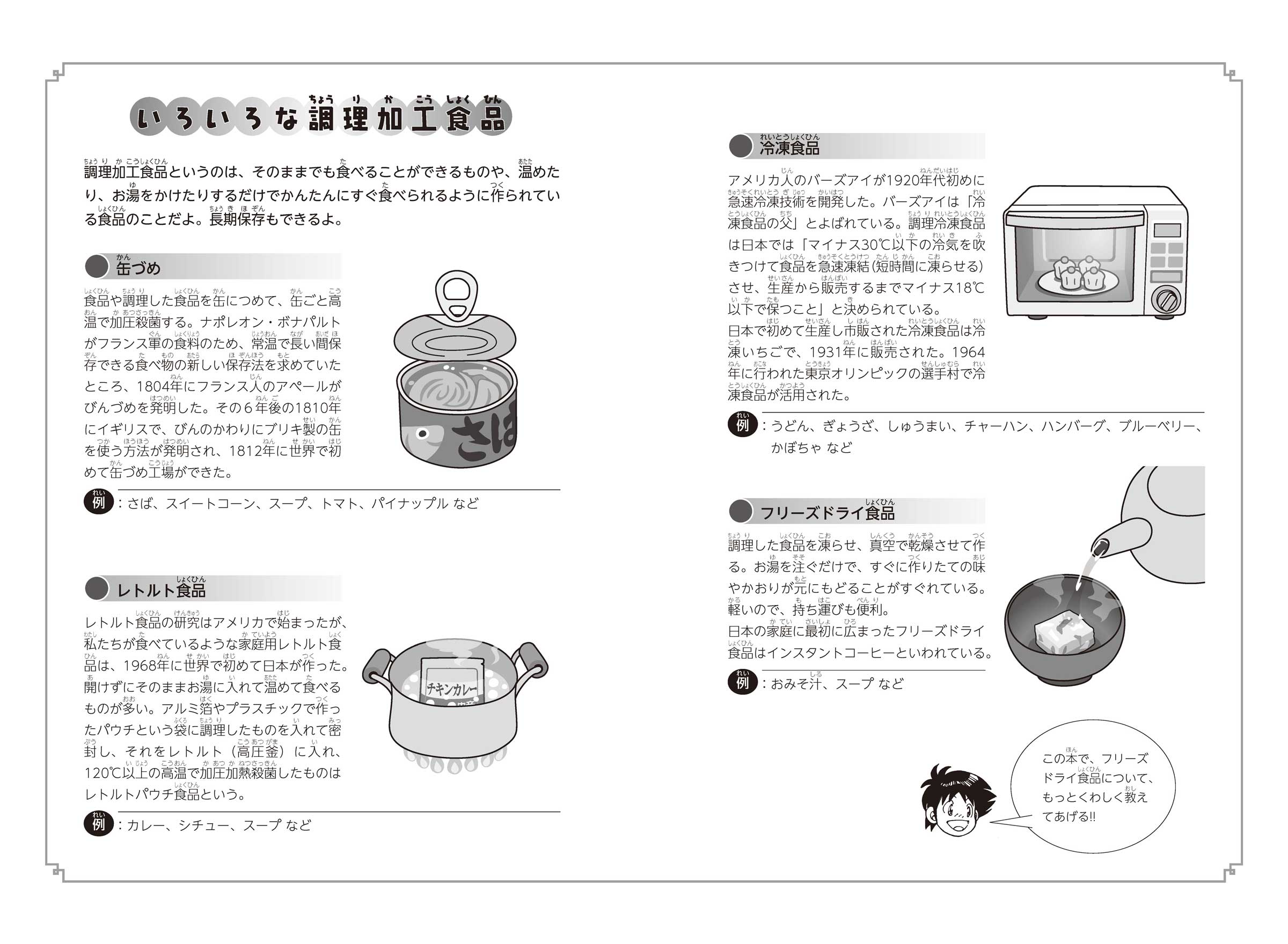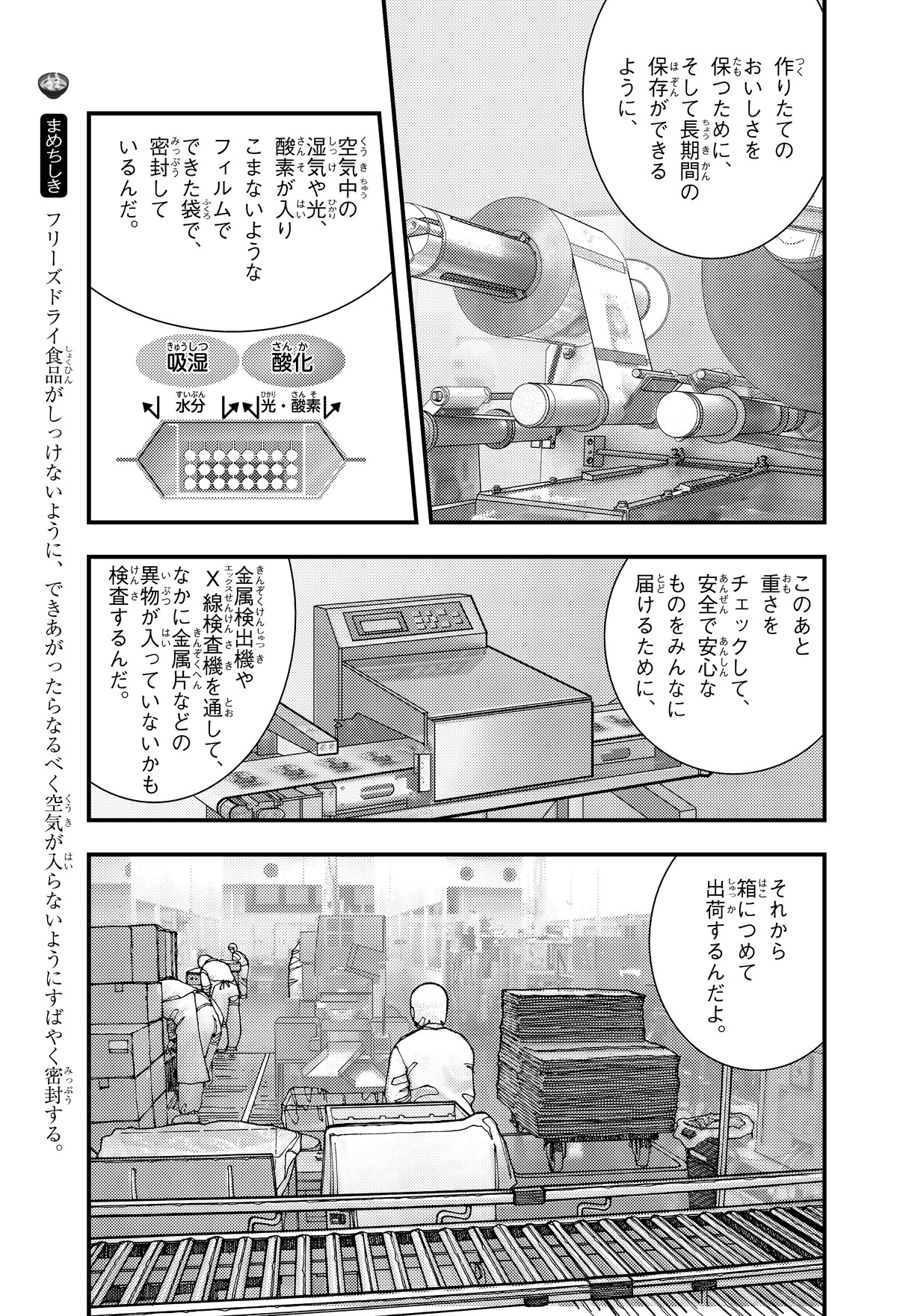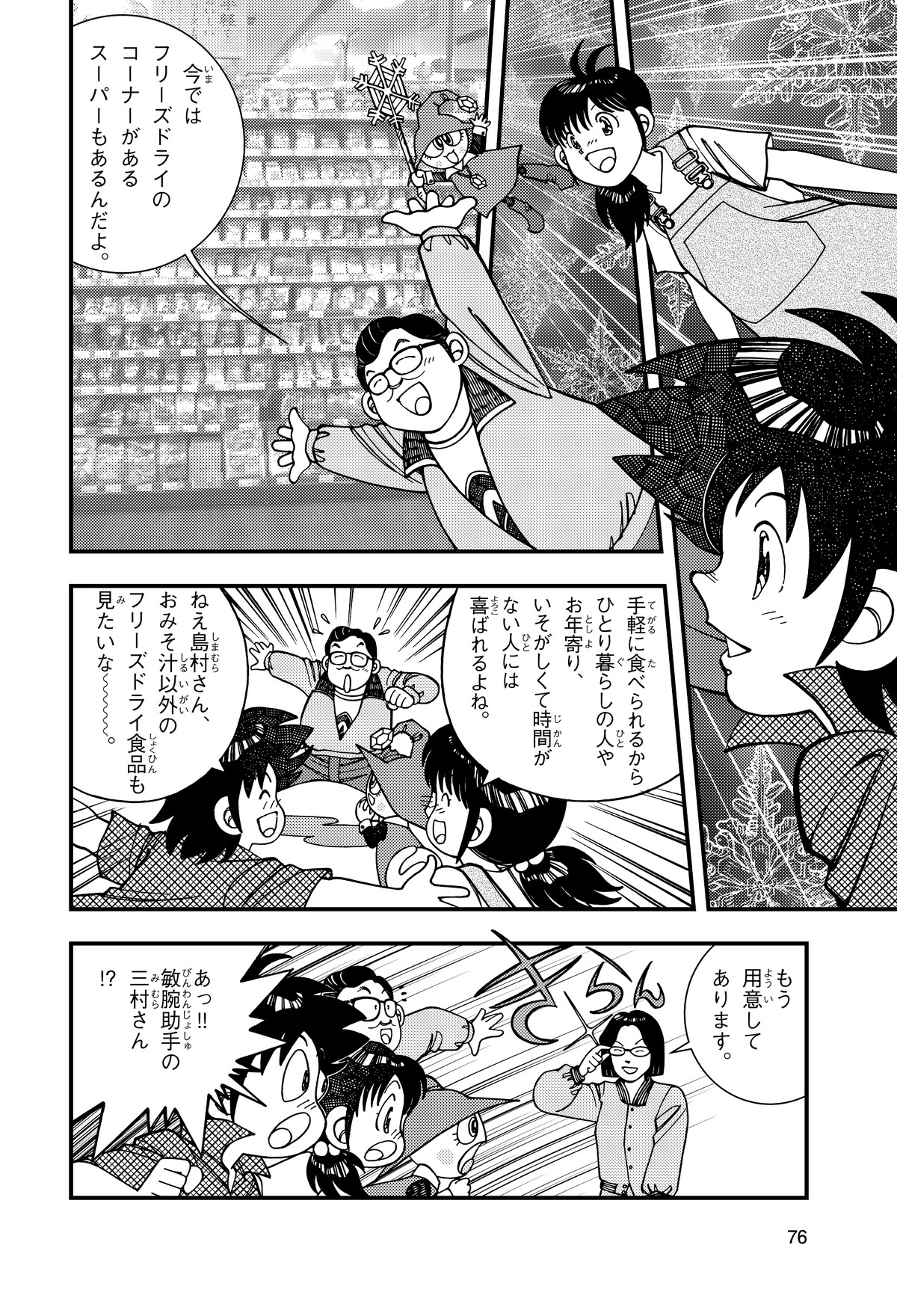 小学5年生の創太(そうた)とユイが愛犬を散歩させていたら、宇宙(うちゅう)から来た妖精(ようせい)のせいでトラブル発生! 妖精(ようせい)と二人がもめていると、なぞの二人組が助けてくれる。この二人組、じつはフリーズドライ食品を作っているんだって。その代表はおみそ汁(しる)。でもフリーズドライってなに? 凍(こお)らせて乾燥(かんそう)させるんだって? いったいどういうことなんだろう?