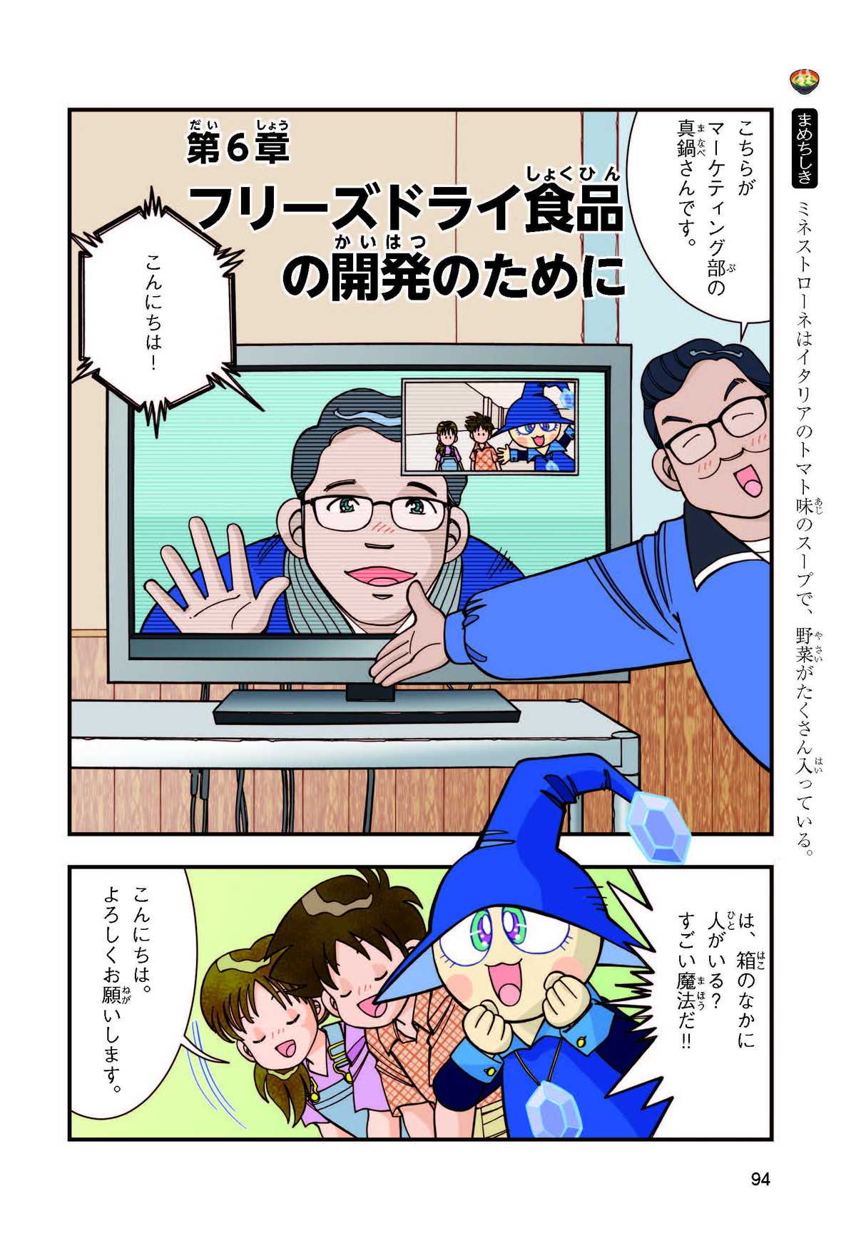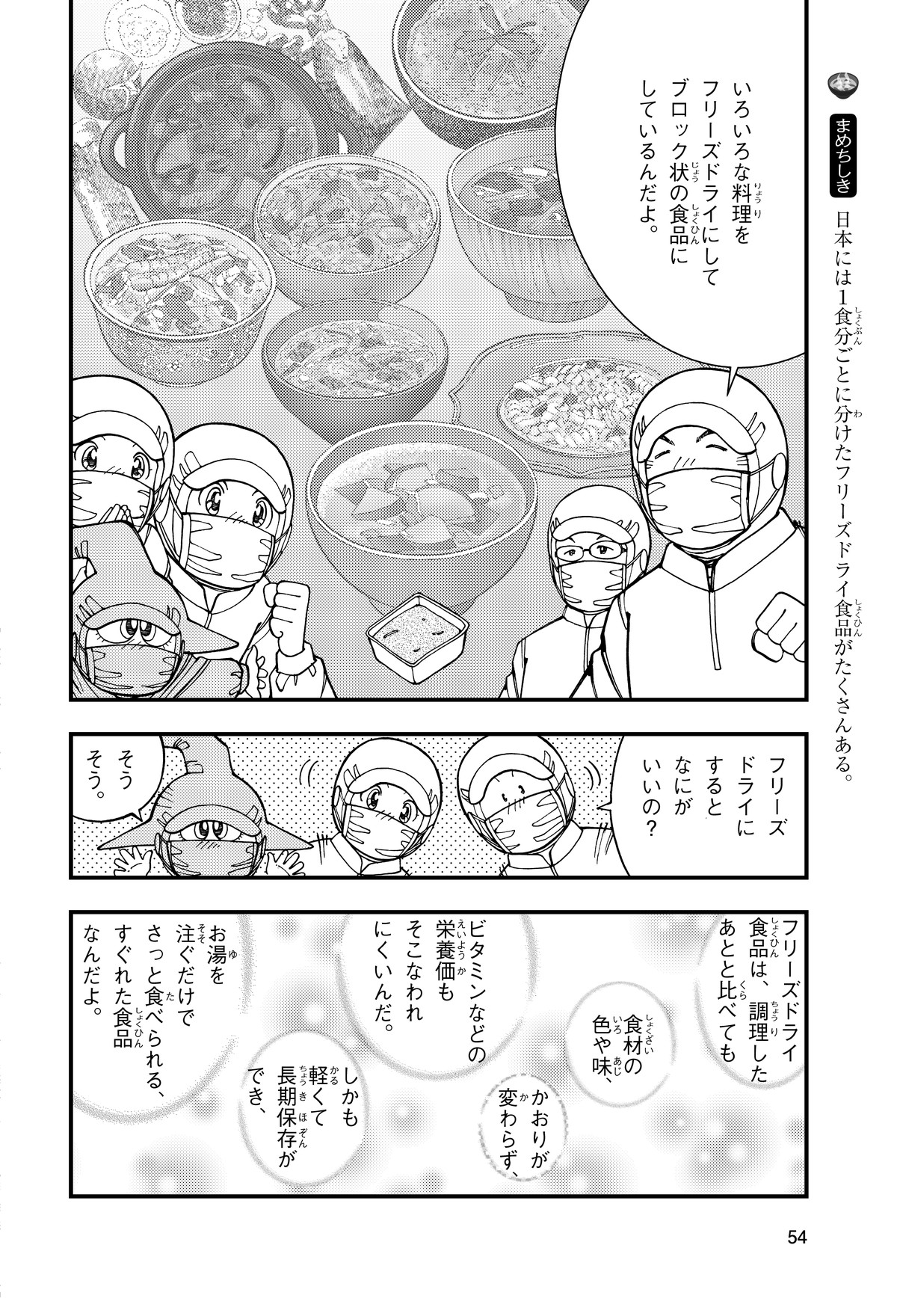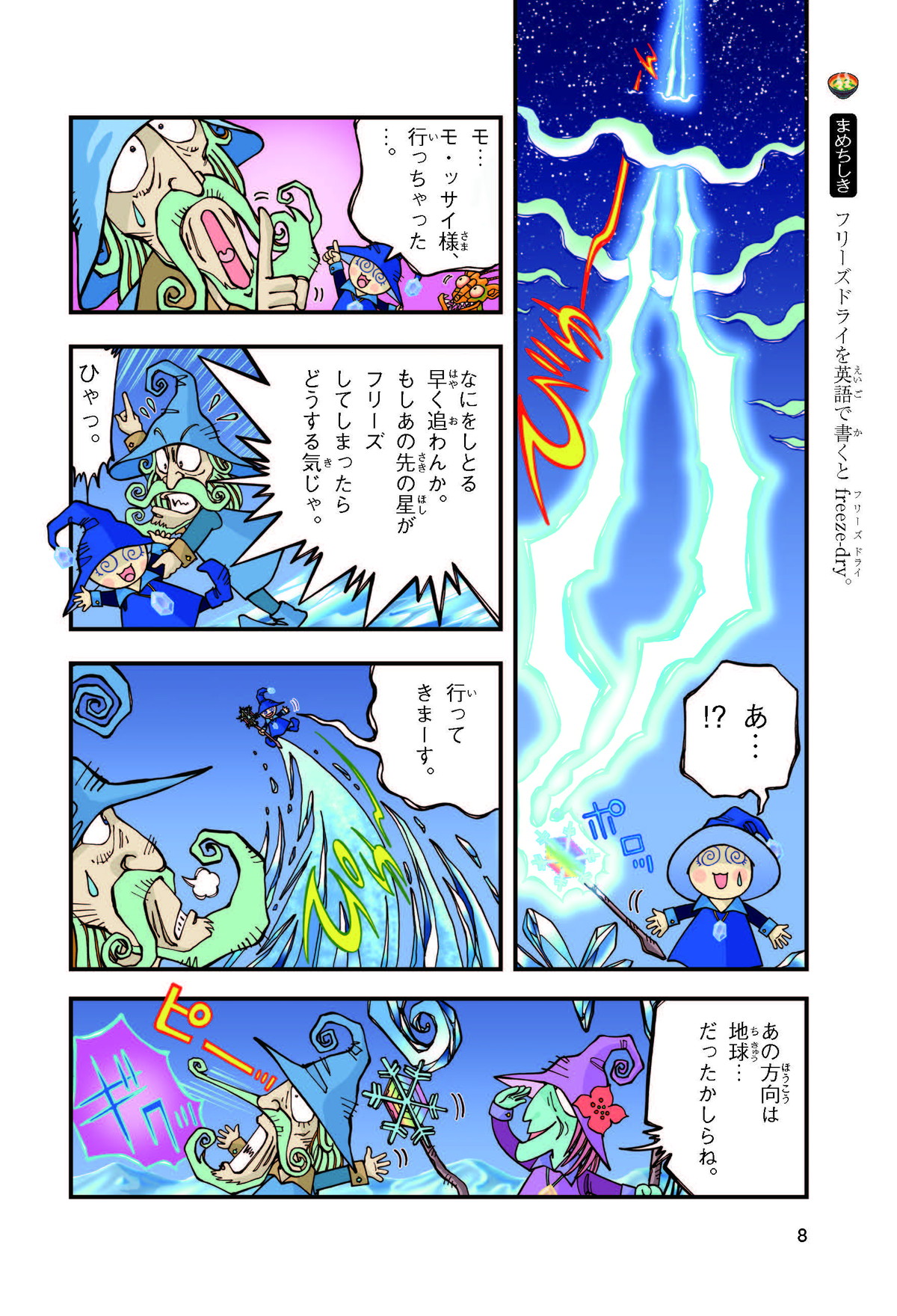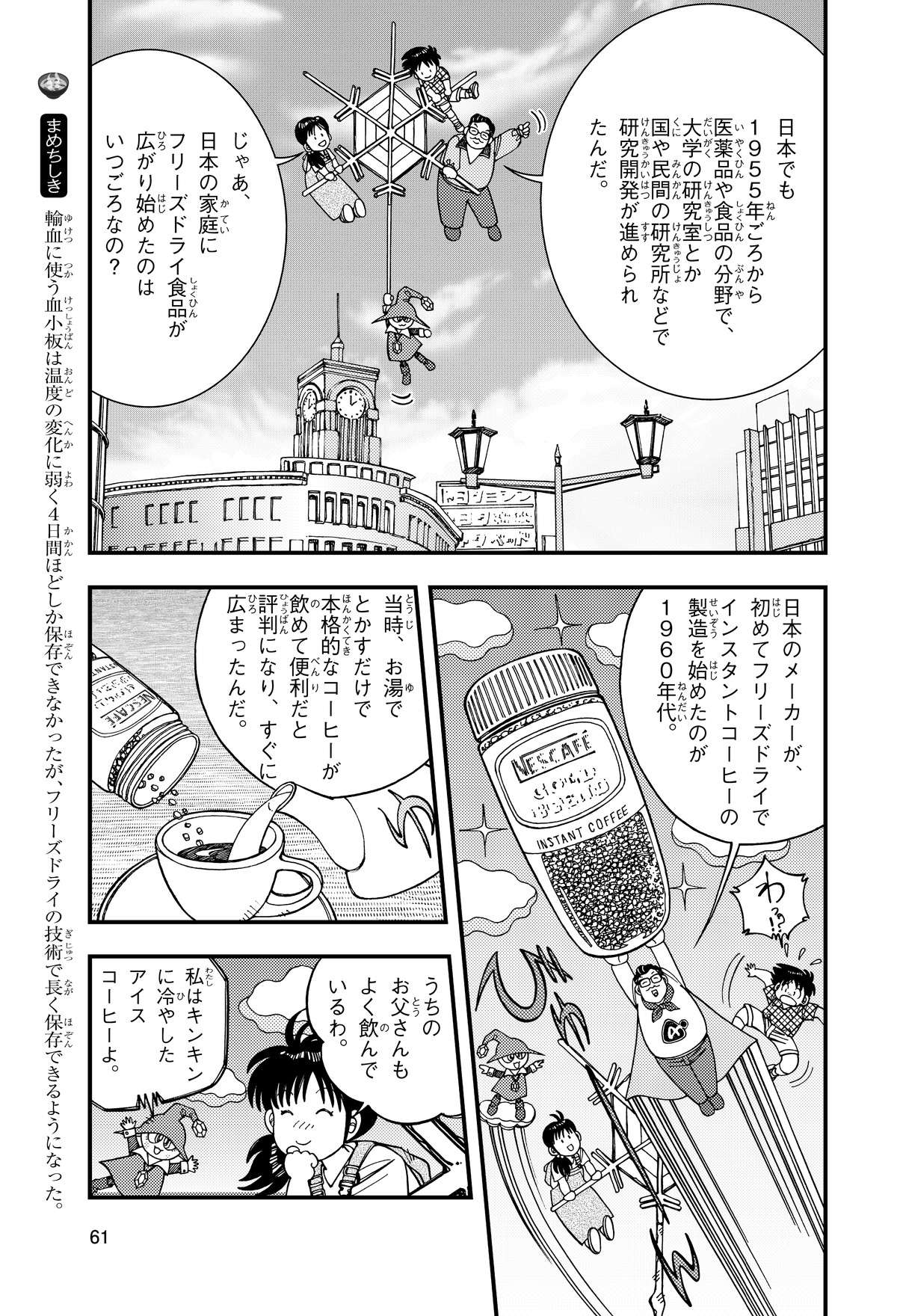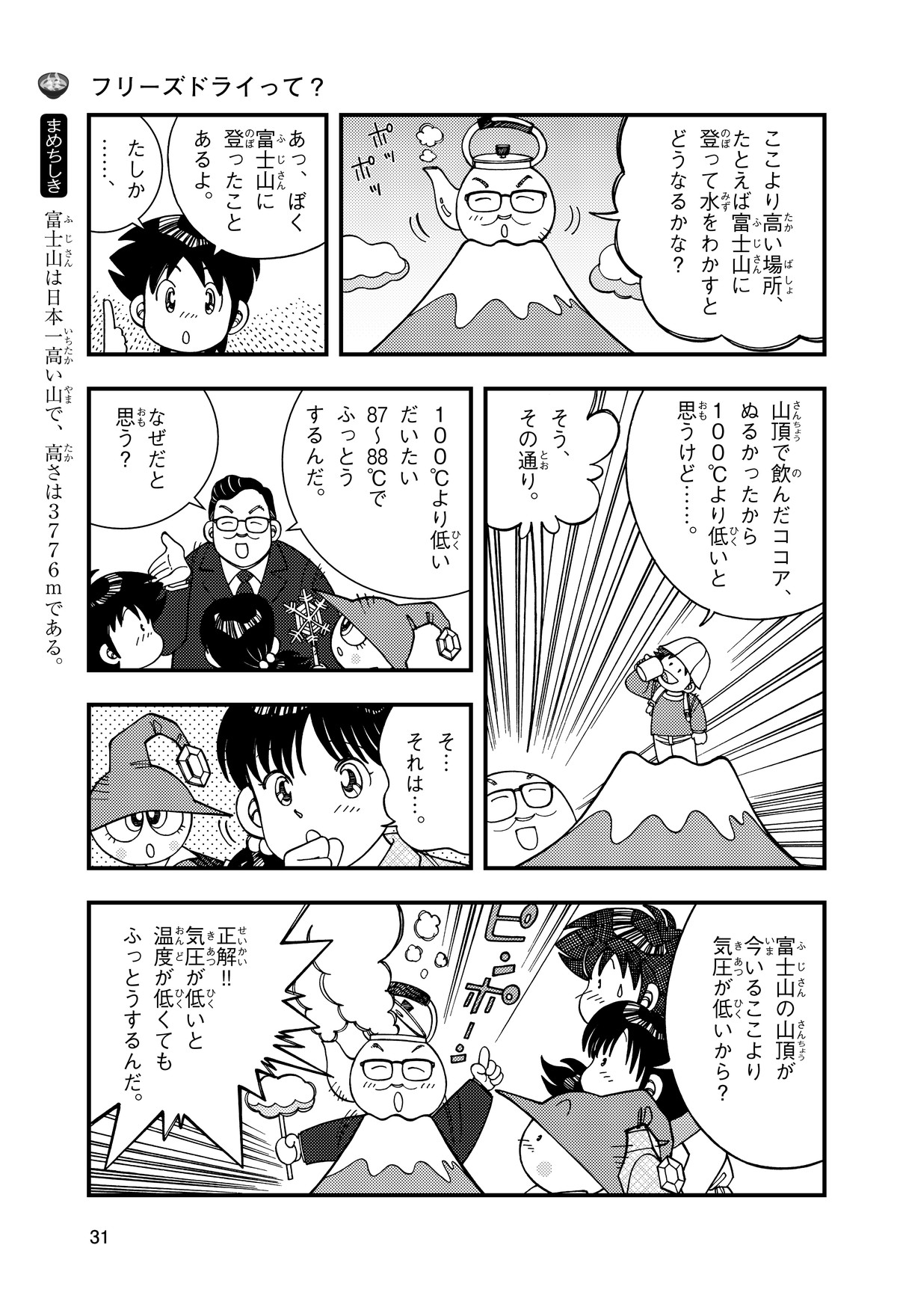 小学5年生の創太(そうた)とユイが愛犬を散歩させていたら、宇宙(うちゅう)から来た妖精(ようせい)のせいでトラブル発生! 妖精(ようせい)と二人がもめていると、なぞの二人組が助けてくれる。この二人組、じつはフリーズドライ食品を作っているんだって。その代表はおみそ汁(しる)。でもフリーズドライってなに? 凍(こお)らせて乾燥(かんそう)させるんだって? いったいどういうことなんだろう?