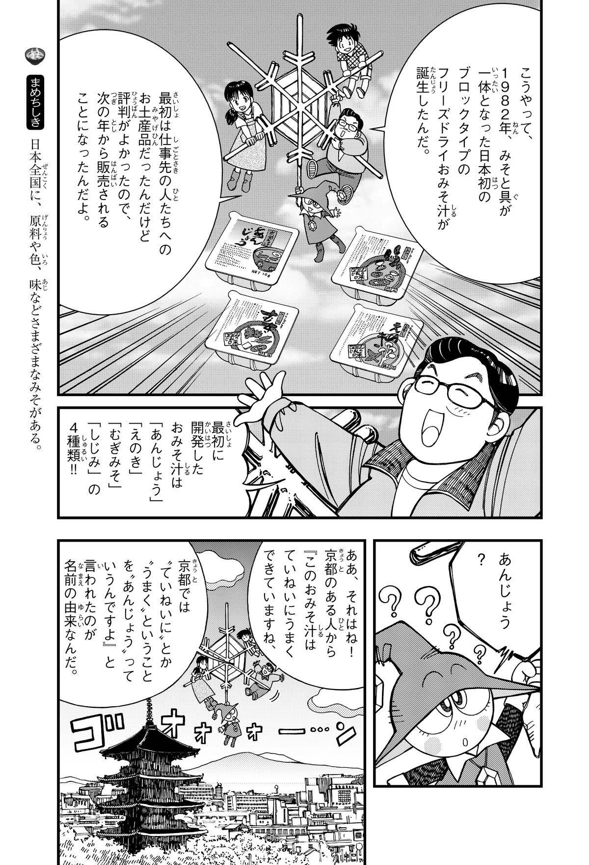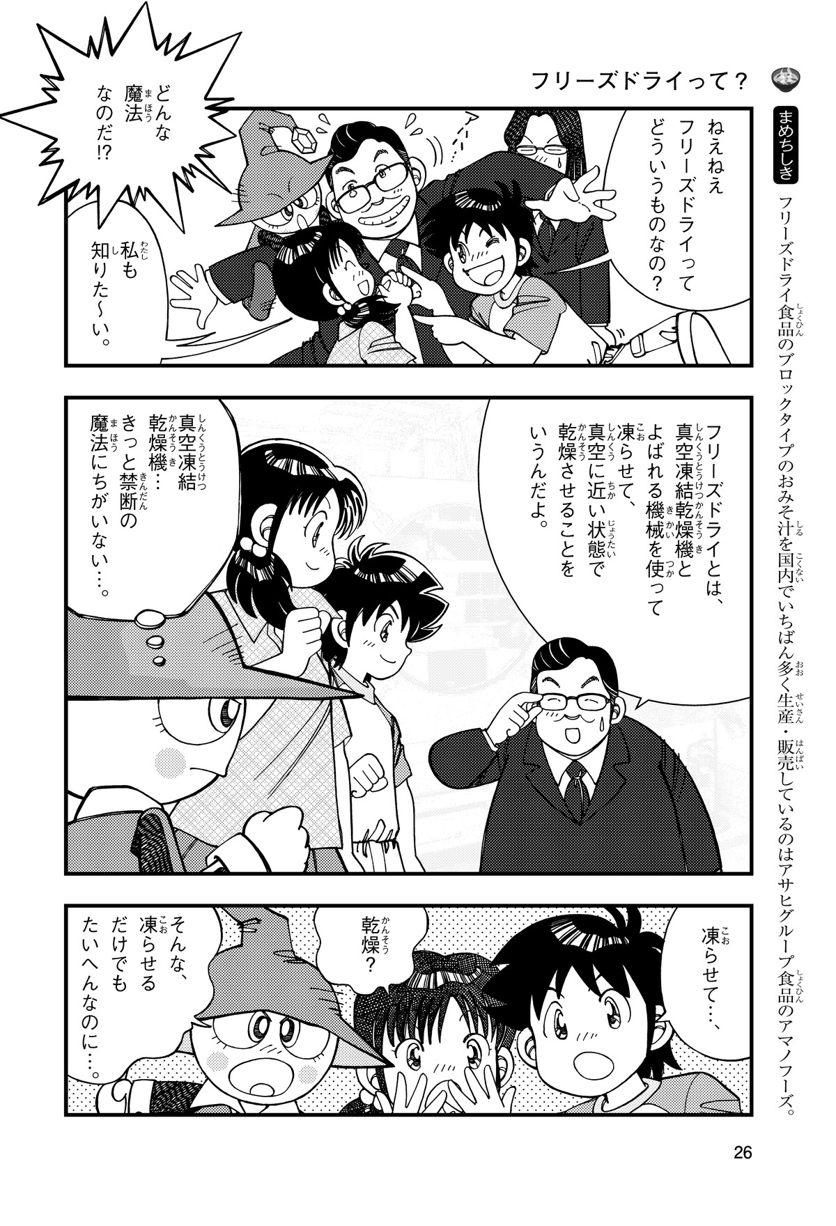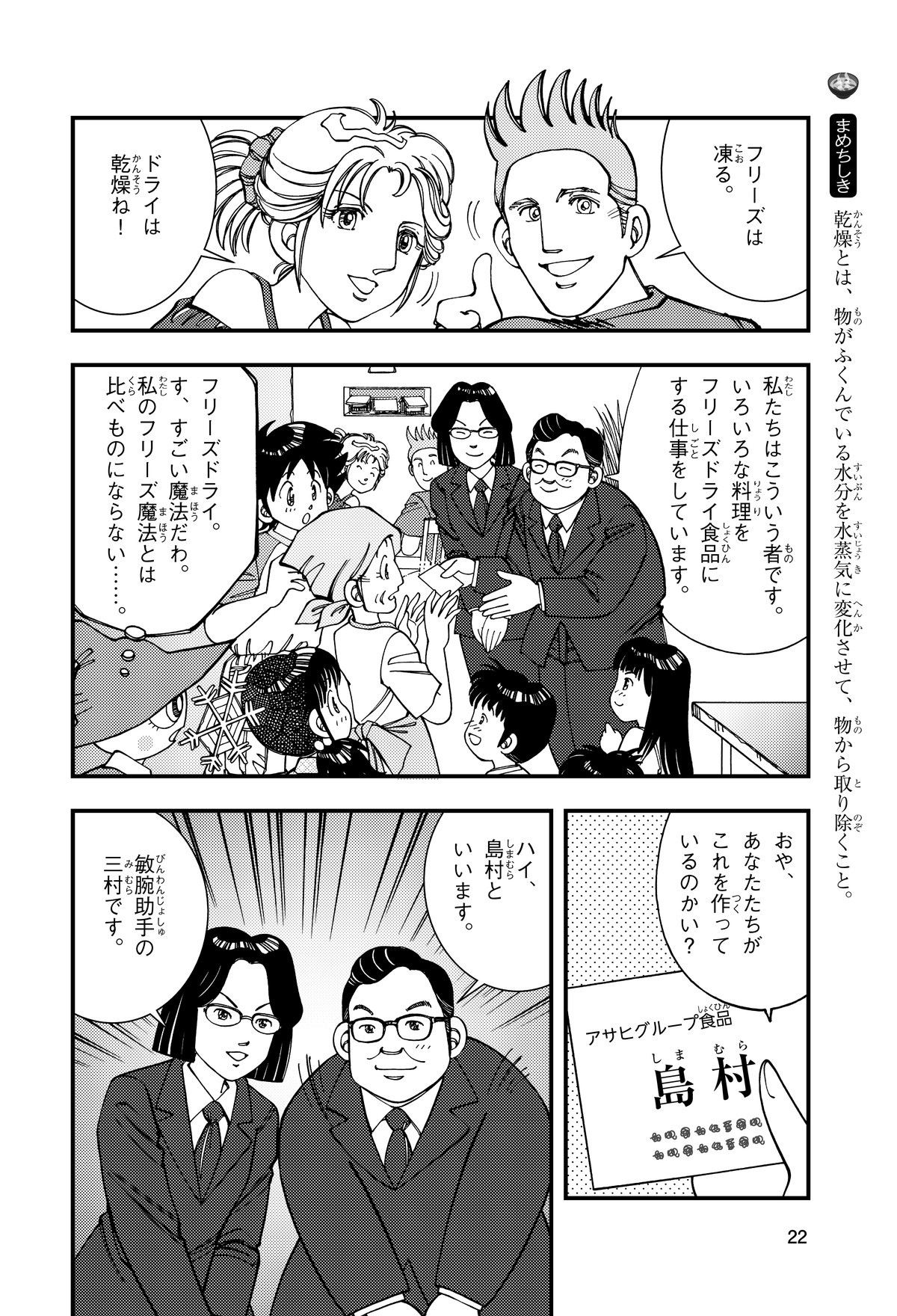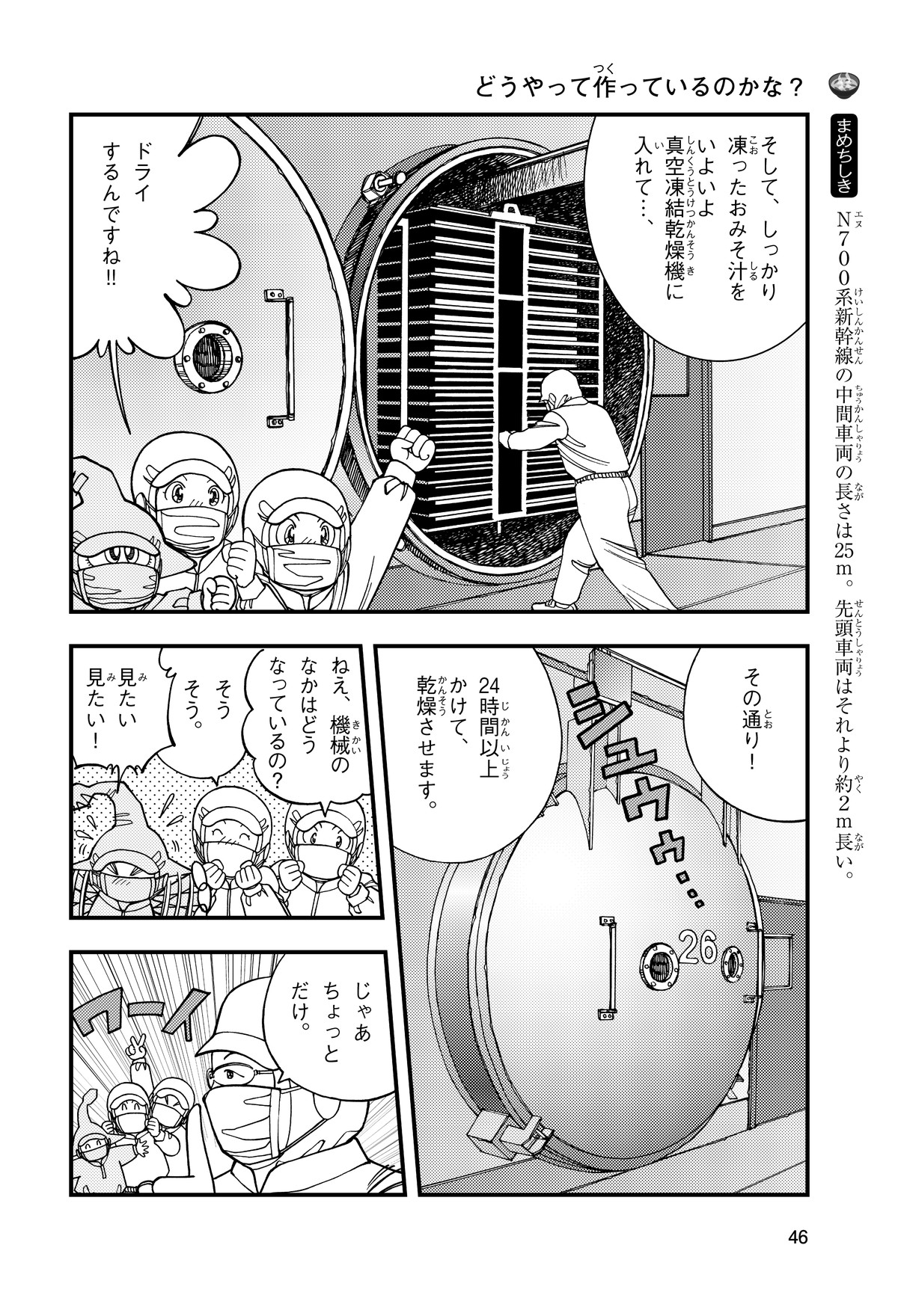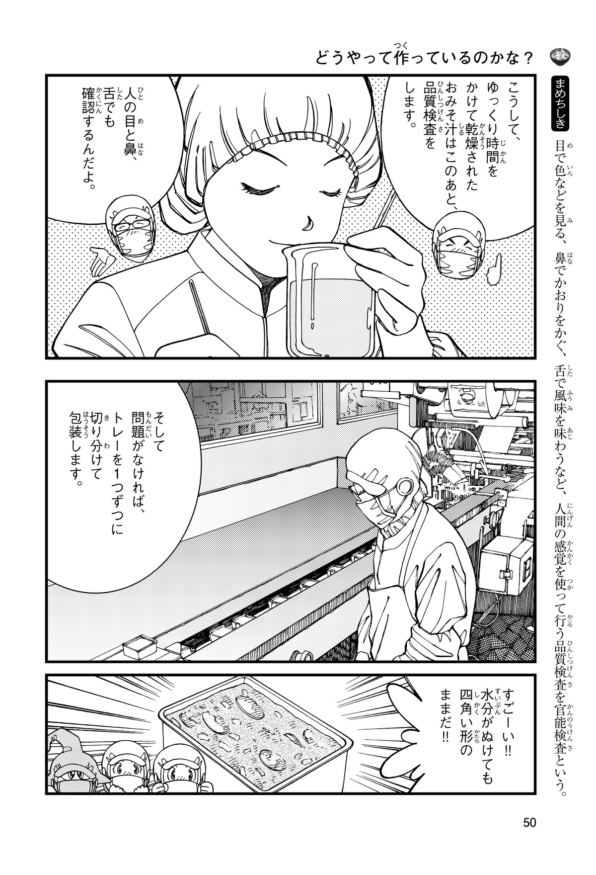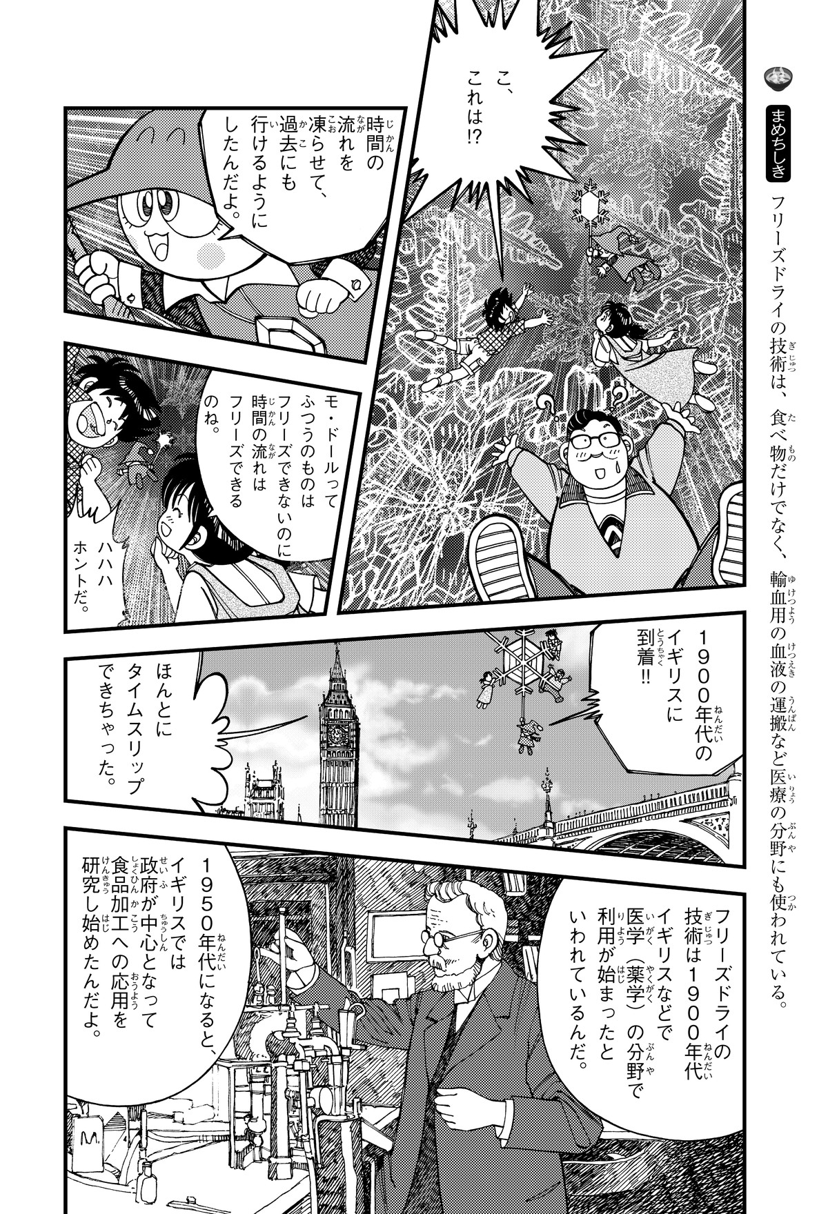小学5年生の創太(そうた)とユイが愛犬を散歩させていたら、宇宙(うちゅう)から来た妖精(ようせい)のせいでトラブル発生! 妖精(ようせい)と二人がもめていると、なぞの二人組が助けてくれる。この二人組、じつはフリーズドライ食品を作っているんだって。その代表はおみそ汁(しる)。でもフリーズドライってなに? 凍(こお)らせて乾燥(かんそう)させるんだって? いったいどういうことなんだろう?