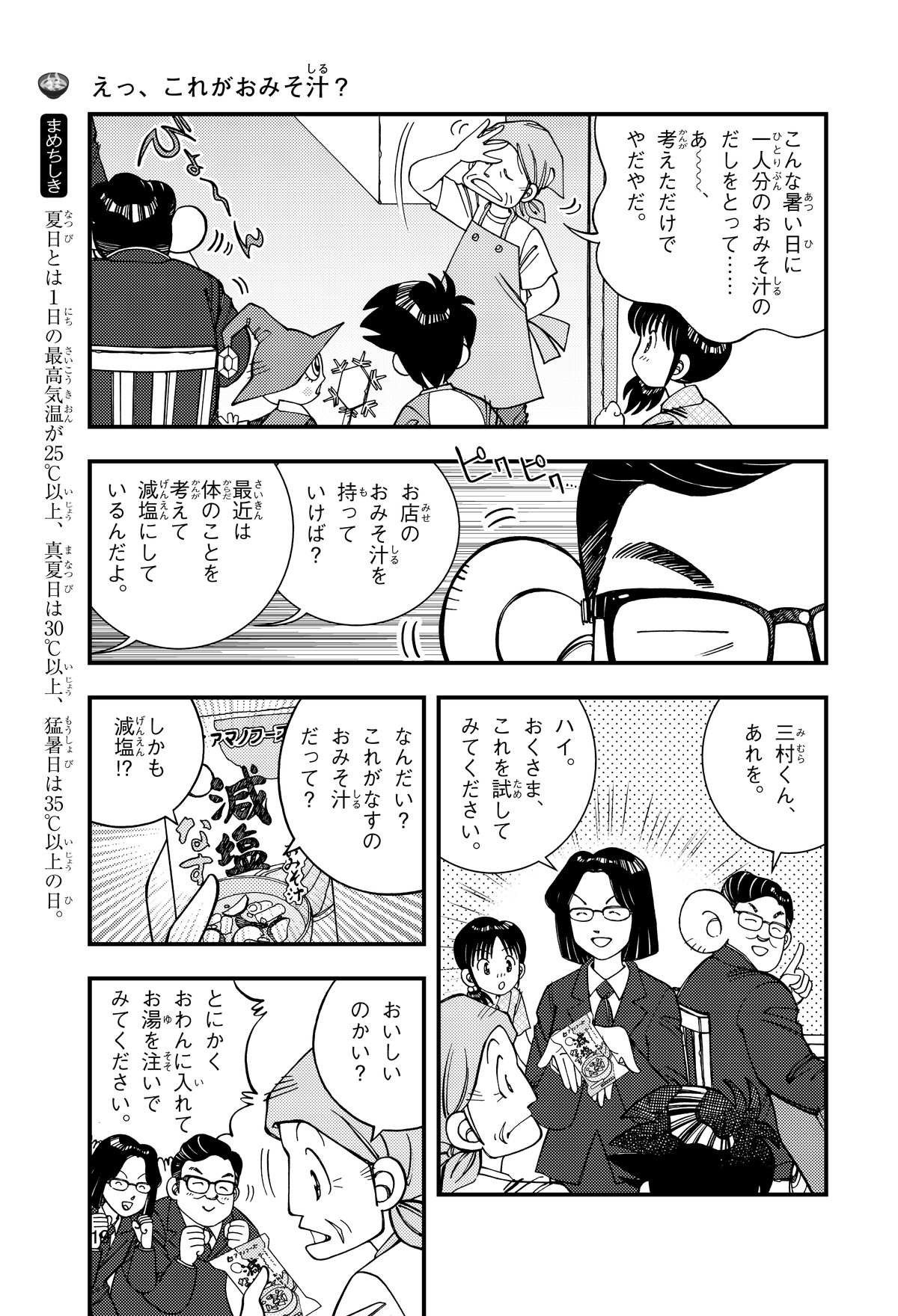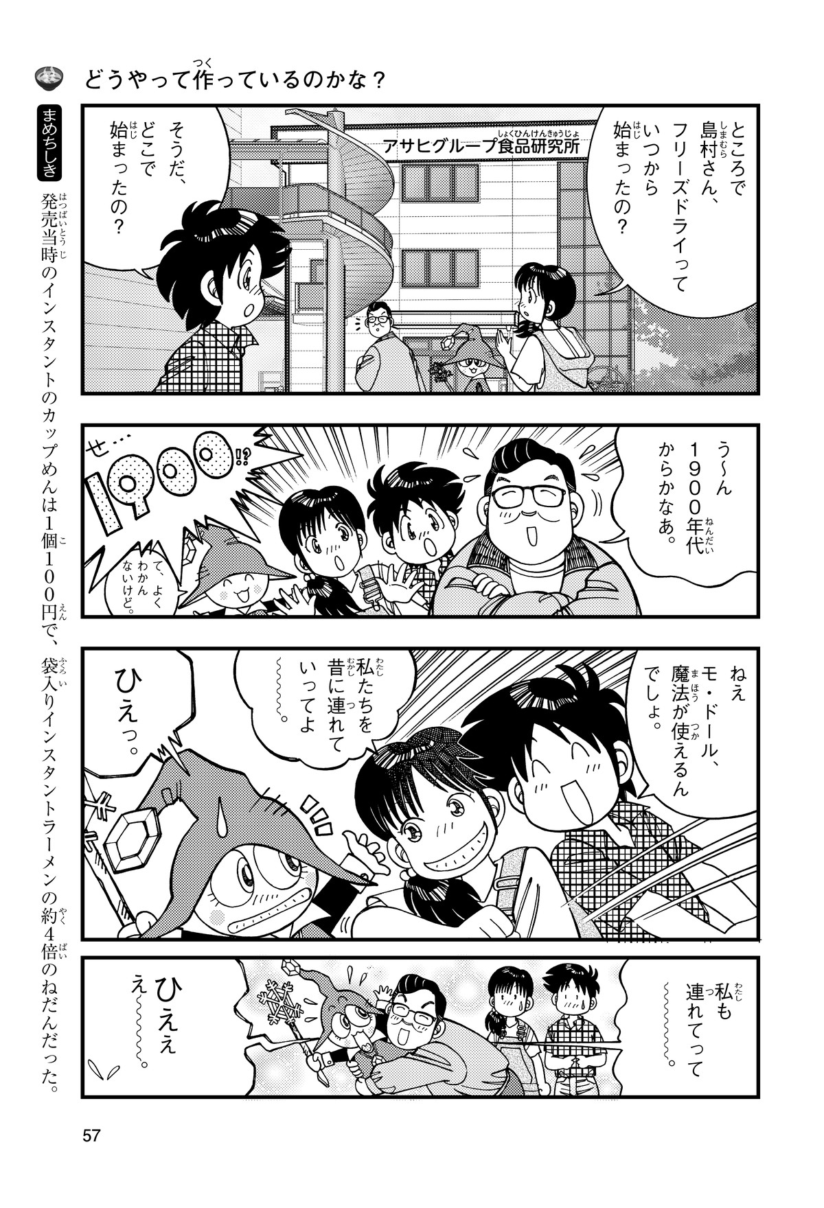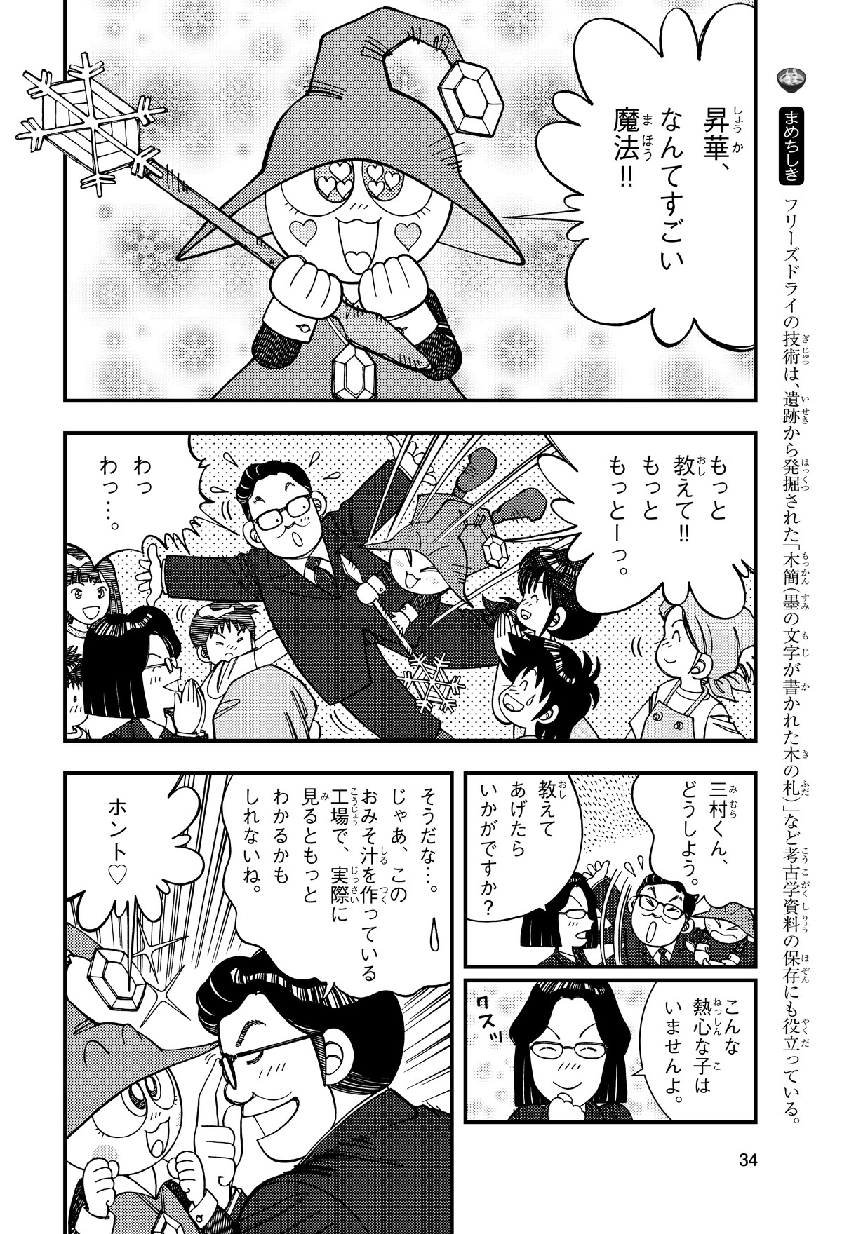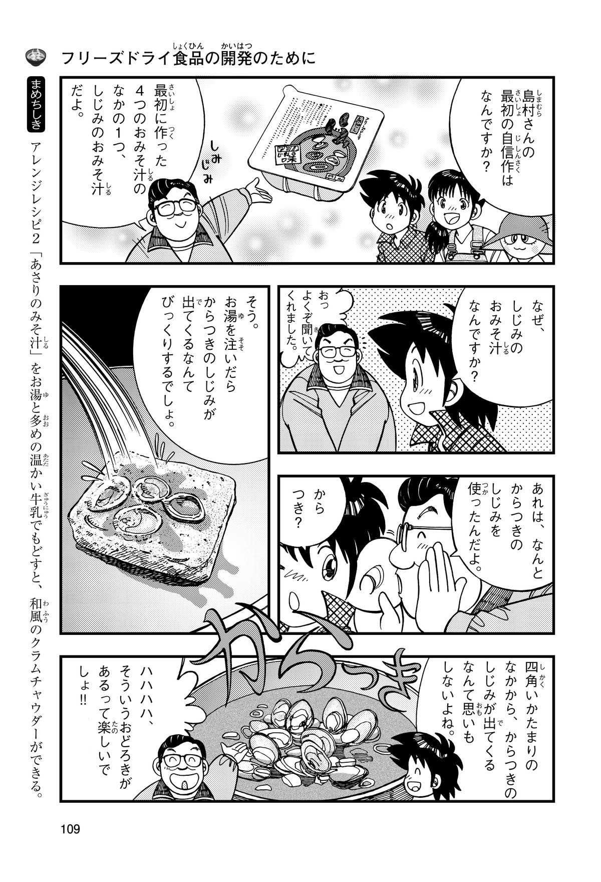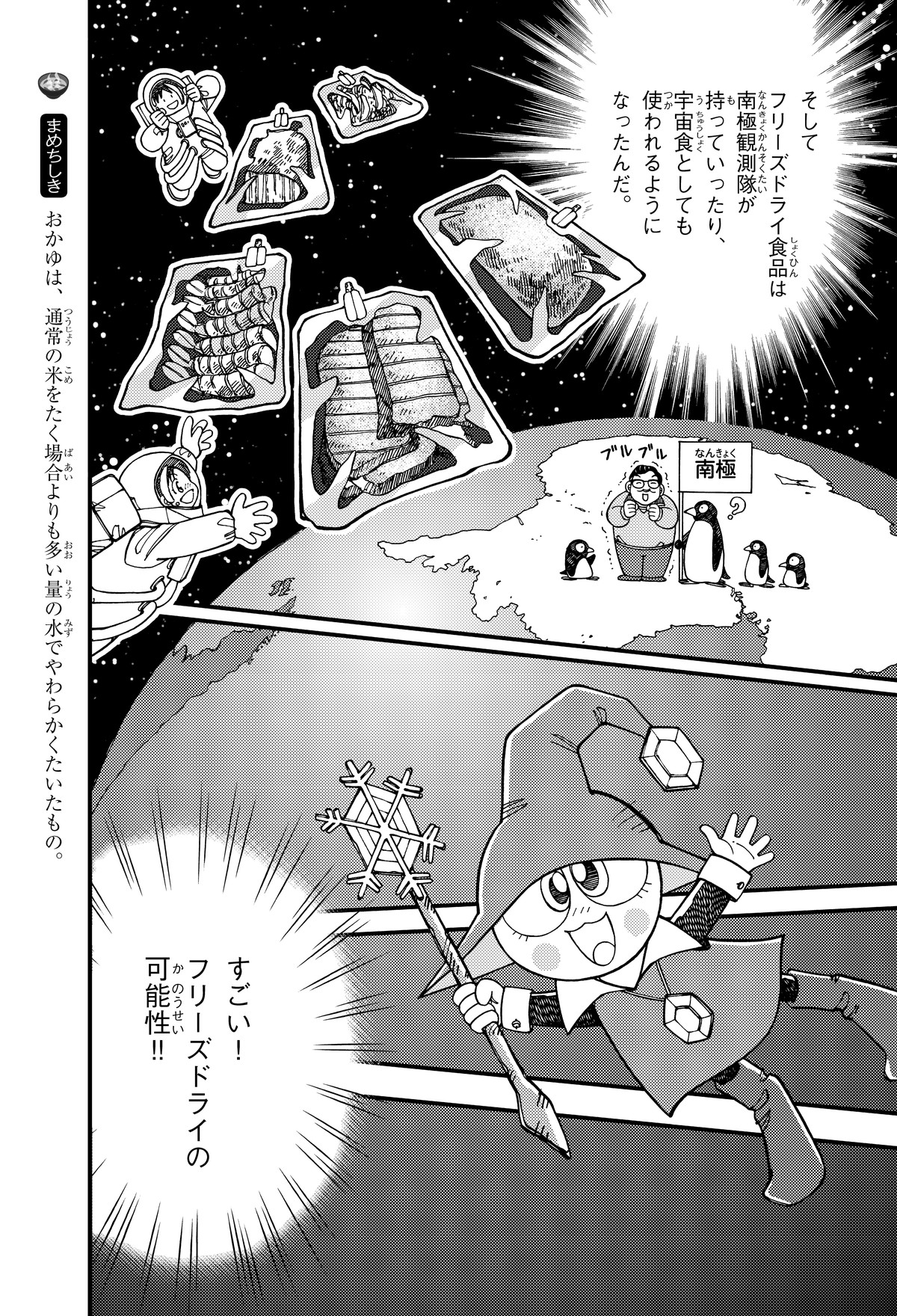 小学5年生の創太(そうた)とユイが愛犬を散歩させていたら、宇宙(うちゅう)から来た妖精(ようせい)のせいでトラブル発生! 妖精(ようせい)と二人がもめていると、なぞの二人組が助けてくれる。この二人組、じつはフリーズドライ食品を作っているんだって。その代表はおみそ汁(しる)。でもフリーズドライってなに? 凍(こお)らせて乾燥(かんそう)させるんだって? いったいどういうことなんだろう?